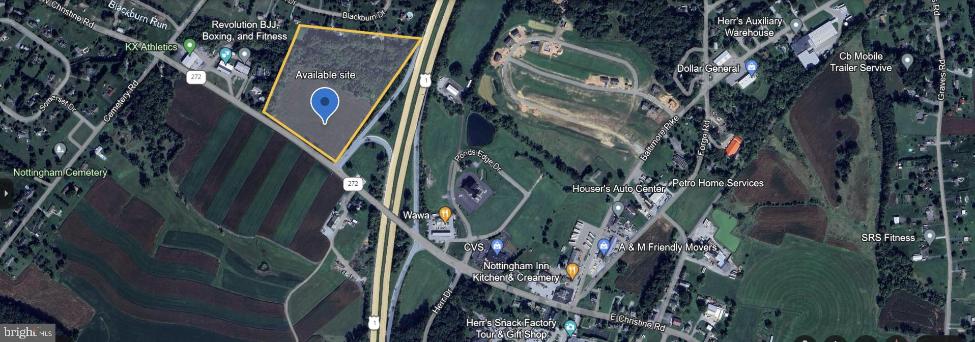 15 +/- acres located at the interchange of US Route 1 & Rt 272. Open ground, currently farmed. Prime location for convenience store, gas stations, pharmacy, hotel and many other possible uses. Check with the township for confirmation of zoning and uses.