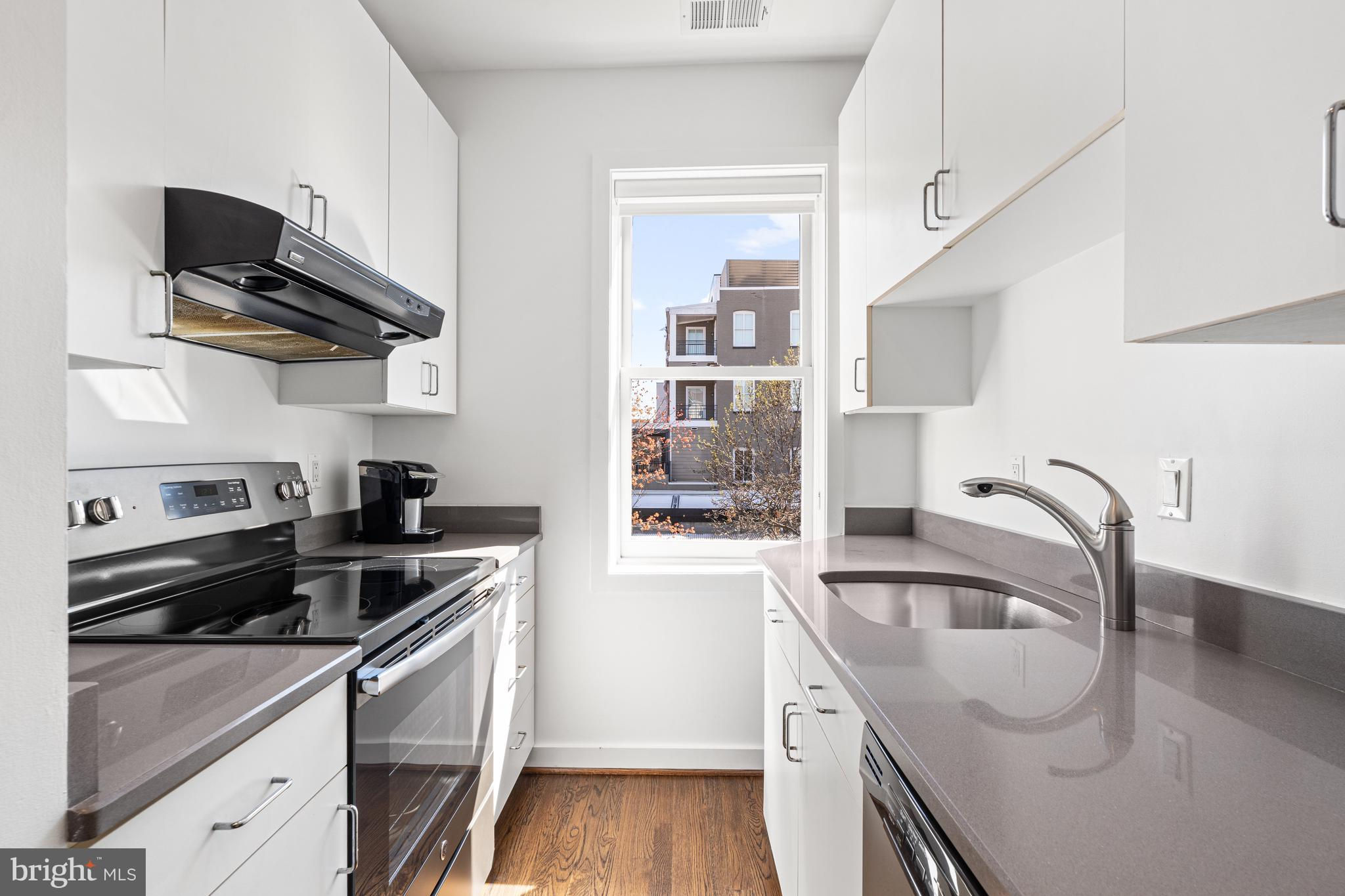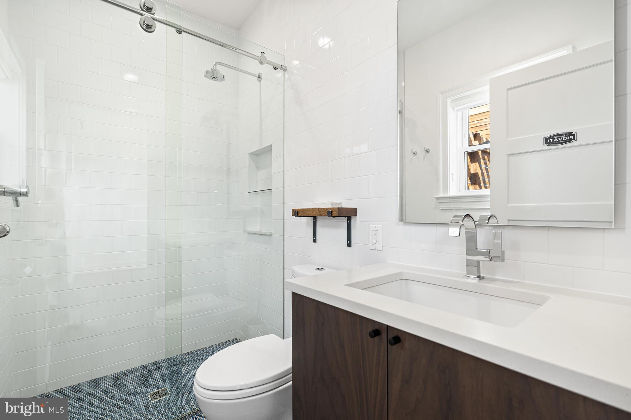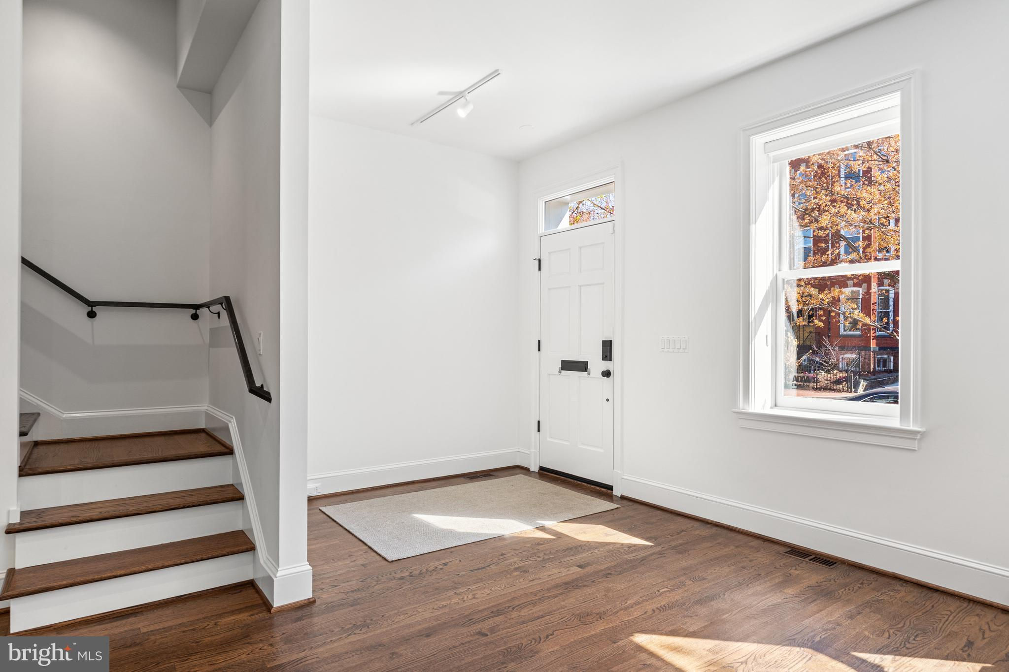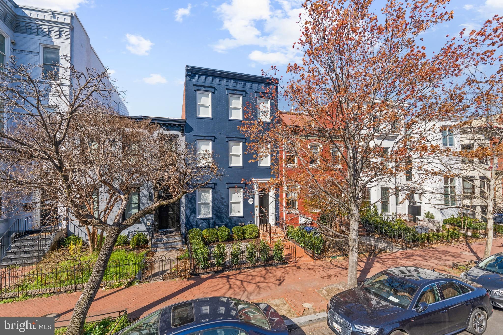 Sited on a quiet, tree-lined street in the heart of Logan Circle; 1013 O Street, NW is a reimagined townhome that underwent an innovative renovation in 2017. Currently home to an art gallery, the 3-level residence has many modern conveniences that create an ideal environment for the work-from-home approach so many have come to know. Soaring ceilings and gracious open living spaces span the 2,450 square foot interior while a professionally landscaped and hardscaped garden greet guests in the front; and a patio and two upper-level decks offer ideal outdoor living space in the rear. The Entry Level hosts the in-home Gallery or generous office space while the private living spaces encompass the Second and Third Levels with principal living rooms, Kitchen, full bathroom, and powder room. The home’s MU4 zoning and separate electric meters lend an opportunity for work/living flexibility or a simple conversion to two separate dwelling units; the property could also easily be transferred into a single-family residence with 3 bedrooms. There is currently 1 bedroom in the property. 2 private, off-street parking spaces complete the offering. Located on a charming block in the heart of Logan Circle, this townhome is perfectly sited nearby the shopping and dining destinations of DC’s renowned 14th Street; ample grocery stores include Giant, Whole Foods, and Trader Joes; the U Street / Shaw Metro station, and numerous parks and green spaces.