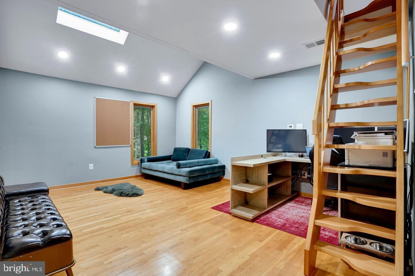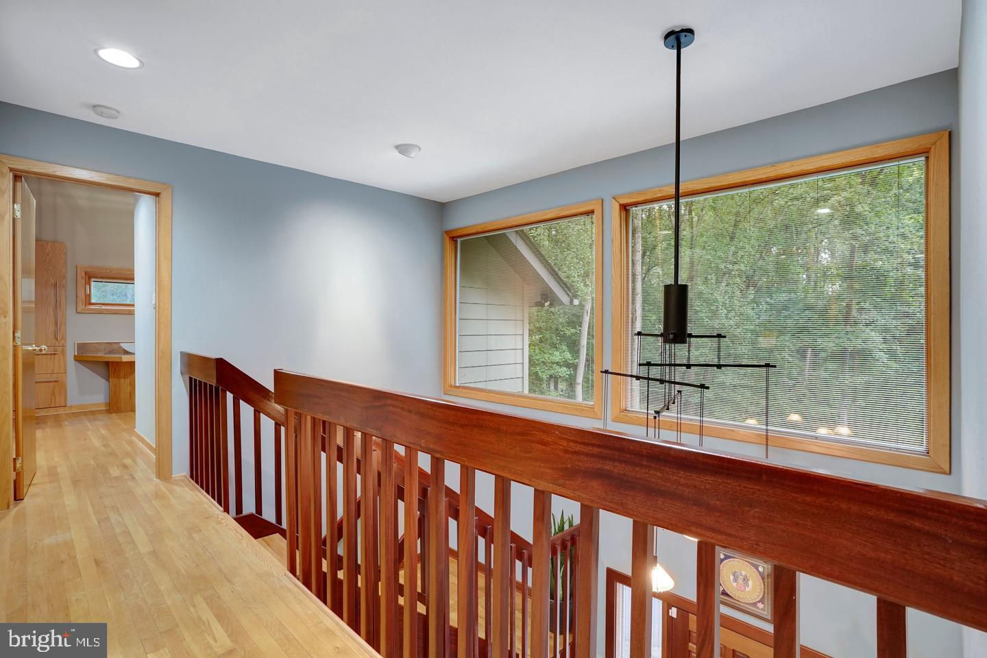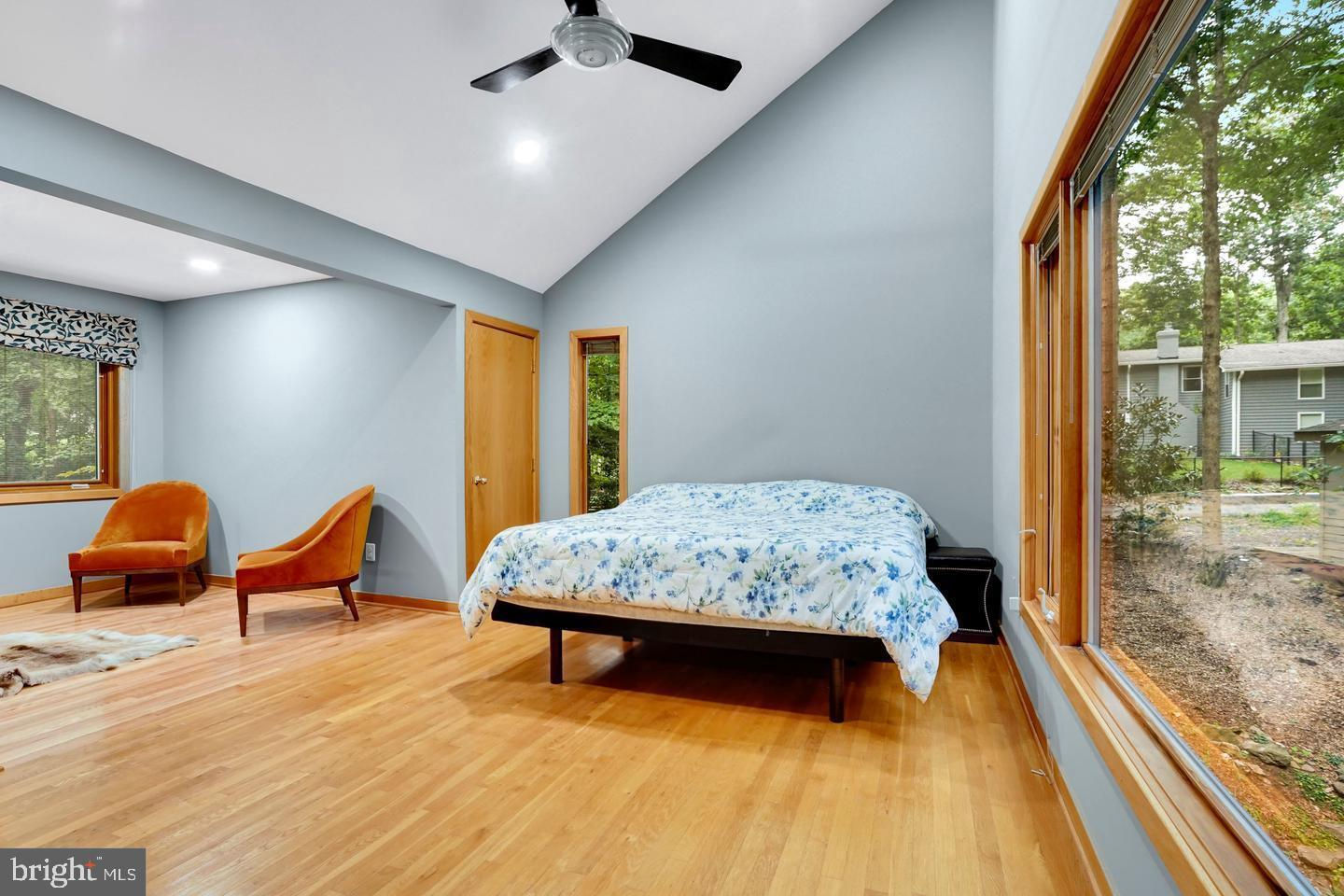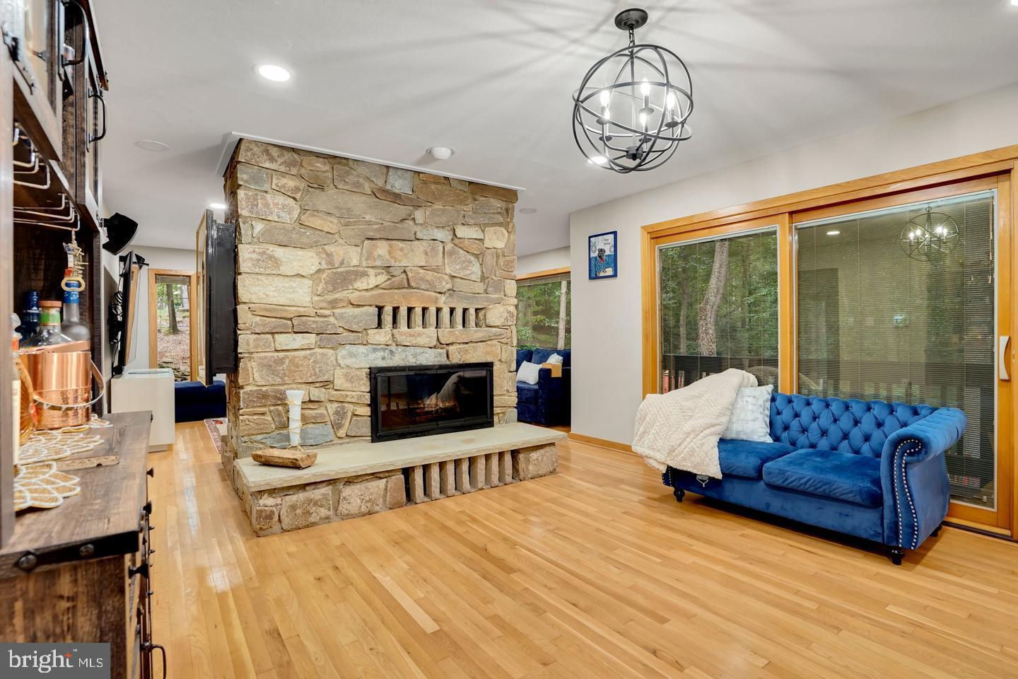 Contemporary Retreat on a Private Wooded Lot. Nestled on 3.12 acres with wooded and water views, this beautifully updated contemporary home offers the perfect blend of modern style and natural serenity. With 4 bedrooms, 3.5 bathrooms, and hardwood floors on all three levels, this move-in ready home is designed for both comfort and sophistication. The main level features walls of windows that flood the living and dining rooms with light, both warmed by a striking two-sided stone fireplace. The updated kitchen boasts an island with gas cooking, generous storage, and seamless flow into the sunny family room with scenic views. Upstairs, the owner’s suite is a bright retreat with skylights, a private balcony, loft office space, and a spa-like bathroom with dual vanities, soaking tub, oversized glass shower, and separate water closet. The walk-out lower level impresses with a wood-burning fireplace, full-size window, wet bar, and full bath—perfect for entertaining or guest accommodations. Updates include, new recessed lighting with dimmers, dining room chandelier, ceiling fans, and a newly paved driveway. Security upgrades feature cameras with 24-hour recording, motion, door, and glass sensors. The basement has been enhanced with additional cabinetry, a small fridge, and a new partition for privacy. With its thoughtful upgrades, stunning views, and a peaceful wooded setting, this home is ready to welcome its next owner.