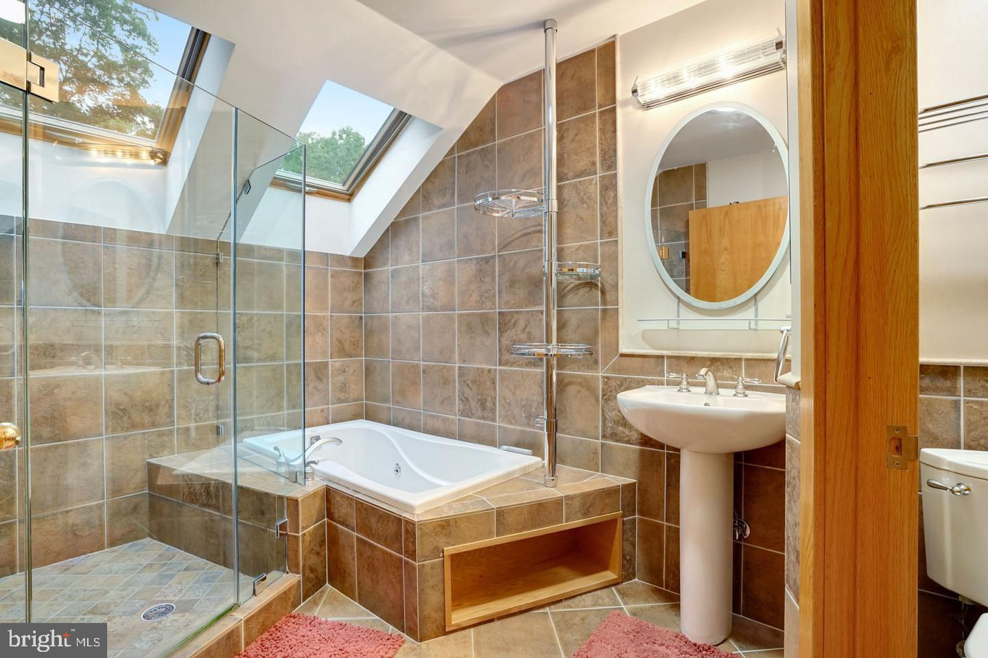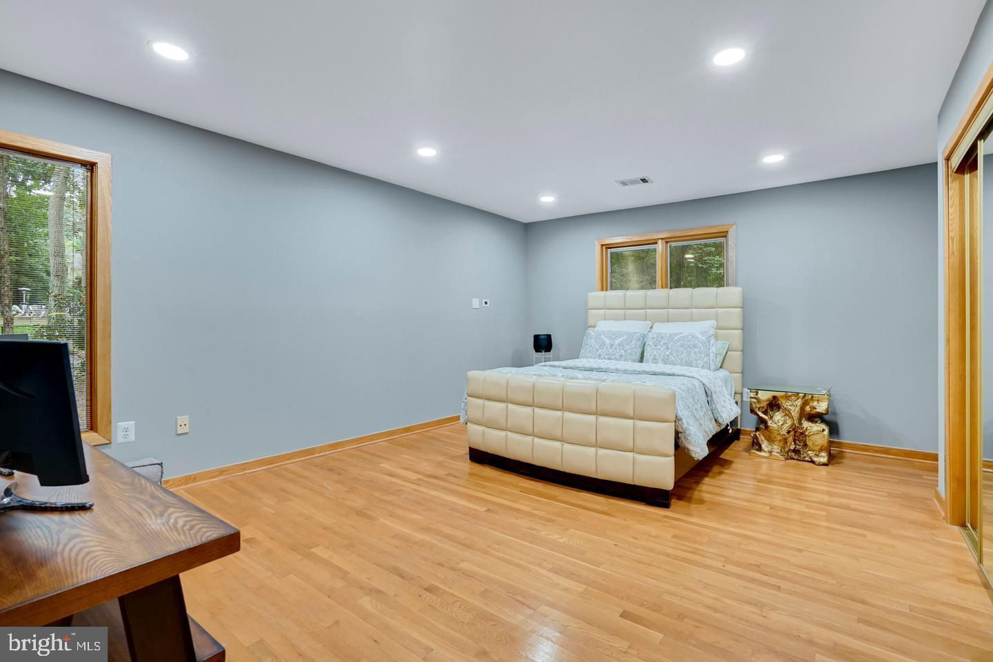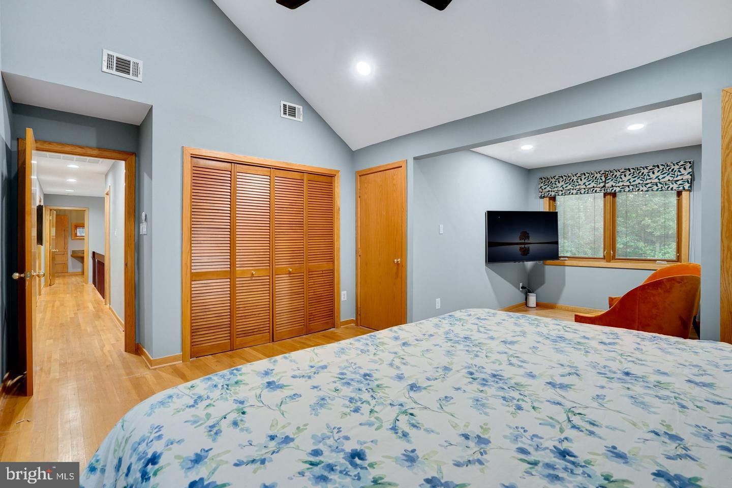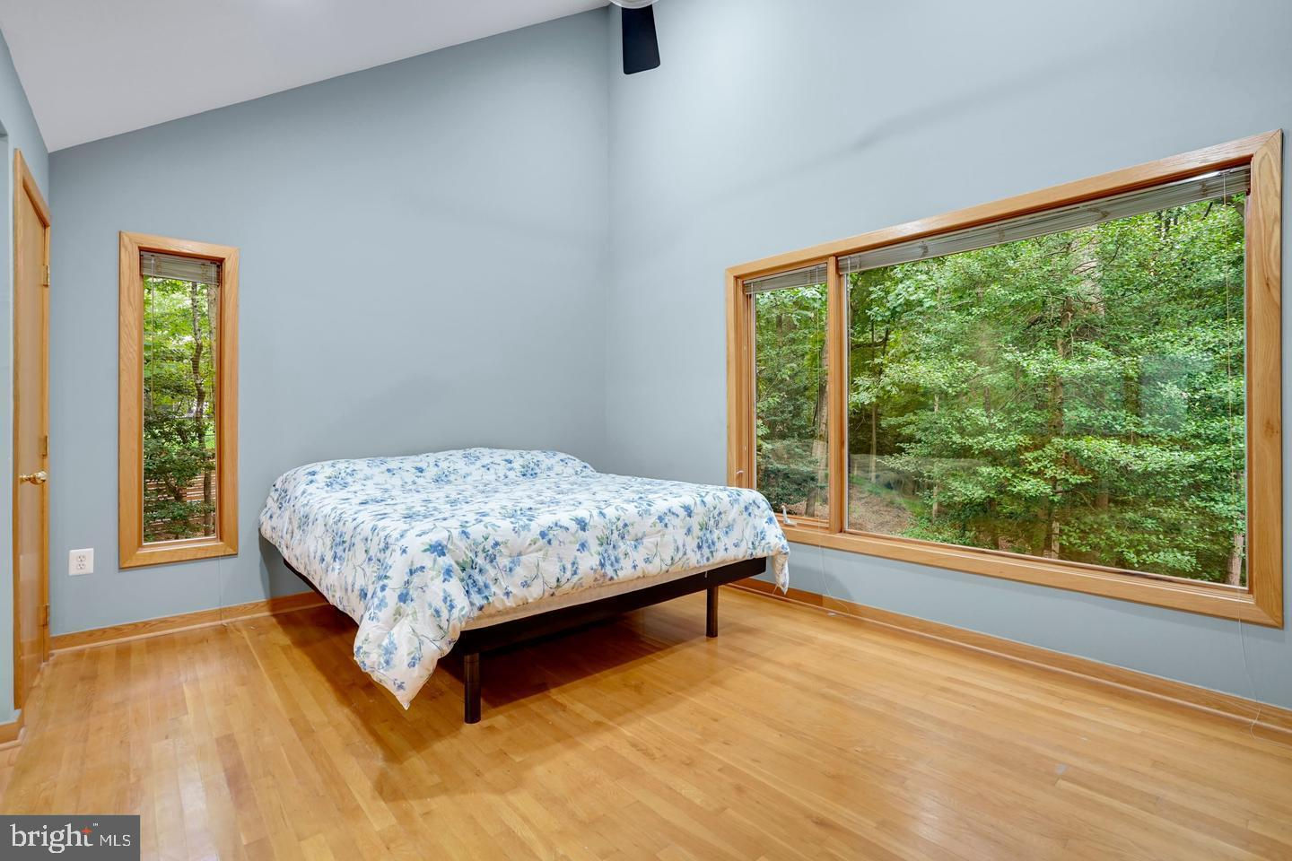 Contemporary Retreat on a Private Wooded Lot. Nestled on 3.12 acres with wooded and water views, this beautifully updated contemporary home offers the perfect blend of modern style and natural serenity. With 4 bedrooms, 3.5 bathrooms, and hardwood floors on all three levels, this move-in ready home is designed for both comfort and sophistication. The main level features walls of windows that flood the living and dining rooms with light, both warmed by a striking two-sided stone fireplace. The updated kitchen boasts an island with gas cooking, generous storage, and seamless flow into the sunny family room with scenic views. Upstairs, the owner’s suite is a bright retreat with skylights, a private balcony, loft office space, and a spa-like bathroom with dual vanities, soaking tub, oversized glass shower, and separate water closet. The walk-out lower level impresses with a wood-burning fireplace, full-size window, wet bar, and full bath—perfect for entertaining or guest accommodations. Updates include, new recessed lighting with dimmers, dining room chandelier, ceiling fans, and a newly paved driveway. Security upgrades feature cameras with 24-hour recording, motion, door, and glass sensors. The basement has been enhanced with additional cabinetry, a small fridge, and a new partition for privacy. With its thoughtful upgrades, stunning views, and a peaceful wooded setting, this home is ready to welcome its next owner.