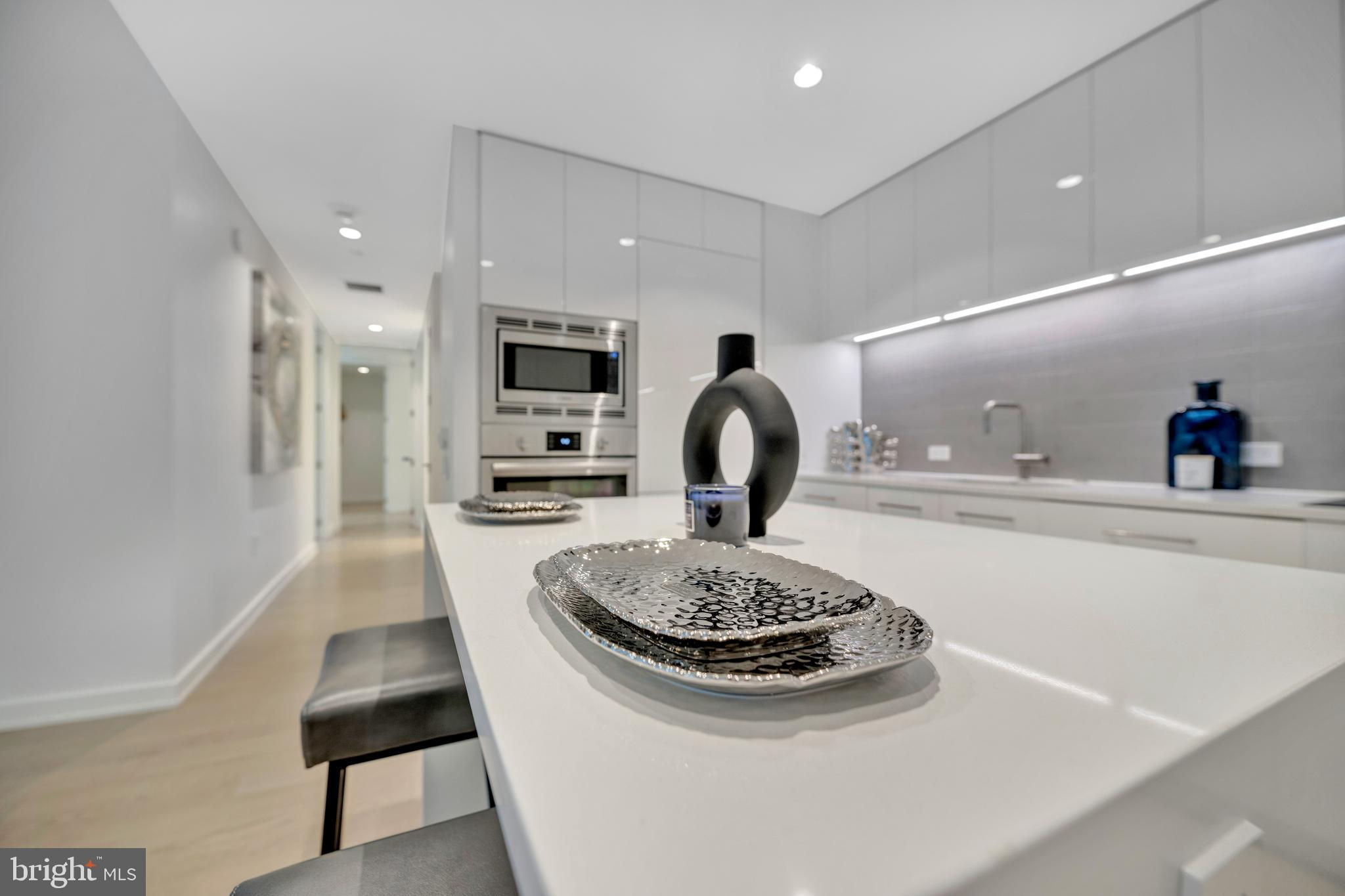 Welcome to The Westlight! This is one of the best full-service and luxury condos with white glove service (if not the only best in the city) designed by internationally-acclaimed architect Enrique Norten. Spacious 2 bedrooms / 2 bathrooms unit with floor-to-ceiling glass windows allows plenty of natural light to the open floor plan. This unit features natural oak wood floors throughout, sound-proof low E glass, fresh air filtration system (no re-circulated air). Gourmet kitchen is well equipped with Italian cabinetry, quartz counter top, beautiful island, Bosch appliances, and upgraded induction cooktop that will please any chef in the home. Owner's Suite features walk-in closet with shelving, and spa-inspired bathroom with teak shower floor. Westlight amenities are endless: 24-hour front desk concierge and full time building manager. Doorman, porter, and on-site engineer provide an elevated level of White Glove services. 25-meter heated rooftop swimming pool with stunning panoramic city views. Expansive sundeck with green space and exclusive grilling stations and separate seating areas. State-of-the-art fitness facility featuring Peloton and Technogym equipment. Private, controlled-access underground parking with 1 assigned space 1 assigned parking space in the underground parking (EV charging stations are available). Private meeting space and business center. Private clubroom with catering kitchen and outdoor grilling terrace. Dog washing station & Bicycle storage. Most utilities are included. Perfect location in West End: walk to Georgetown, Dupont Circle and Downtown, Trader Joe’s, Whole Foods, George Washington University, etc.