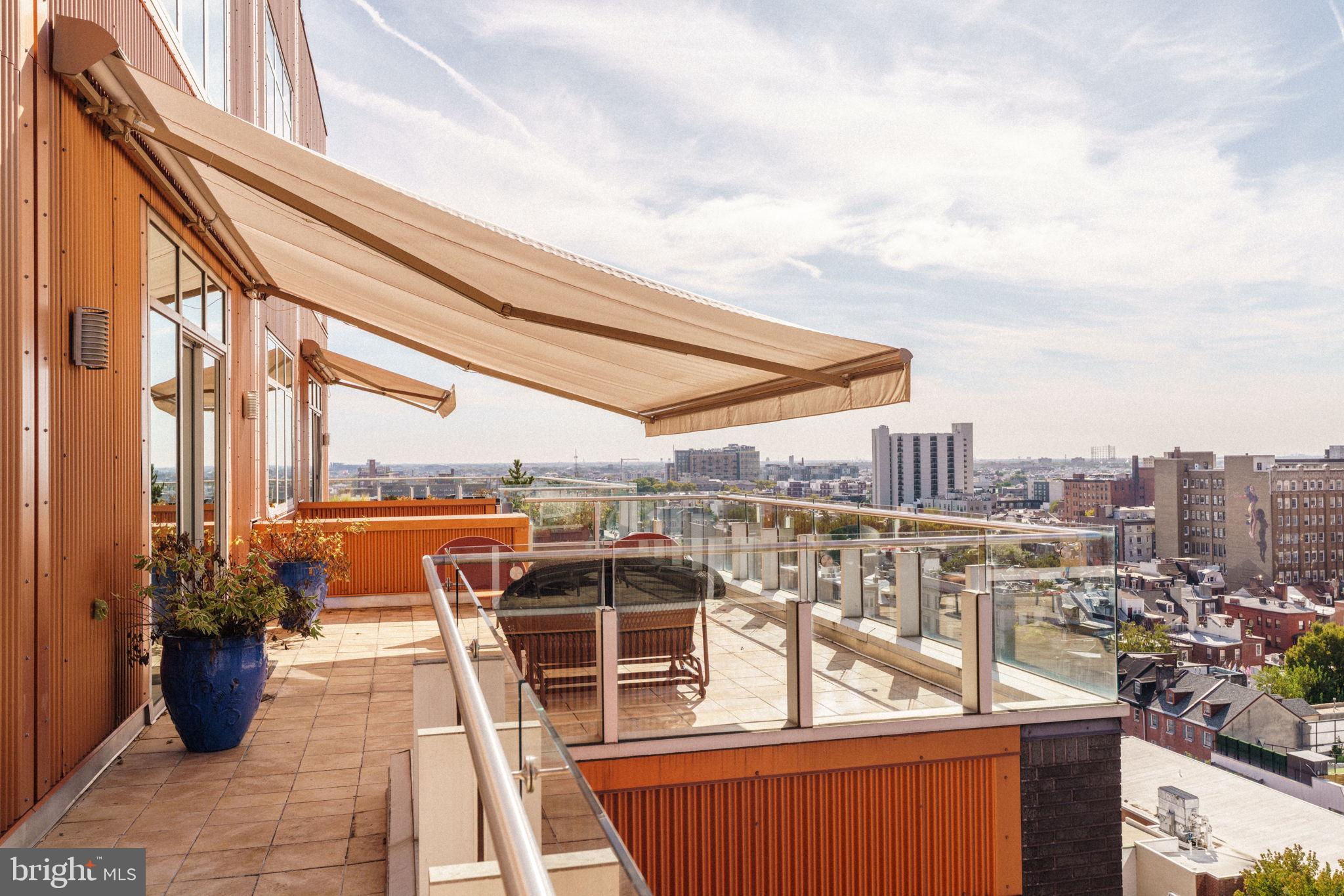 Rarely available, this PENTHOUSE in Washington Square West features an extraordinary 850 sq ft private double TERRACE with retractable awning, offering unmatched outdoor living and breathtaking sunsets over the city with 2 CAR PARKING AND STORAGE! Inside, over 1,700 sq ft of renovated sun-filled space includes floor-to-ceiling windows, an open layout with hardwood floors, recessed lighting, and a sleek gas fireplace. The chef’s kitchen with island seating for 6+ is outfitted with new Thermador appliances, quartzite countertops, and custom cabinetry, while the flexible floor plan provides 3 bedrooms or 2 plus a study/media room. Enjoy recently remodeled bathrooms, seven custom closets plus a private STORAGE room as well as 24-hour concierge service, TWO-CAR valet parking, and remarkably low condo fees in a financially stable building that hasn’t had an assessment in over 14 years. Steps from Jefferson Hospital and minutes to both Rittenhouse and Washington Squares, this is Center City living at its finest.