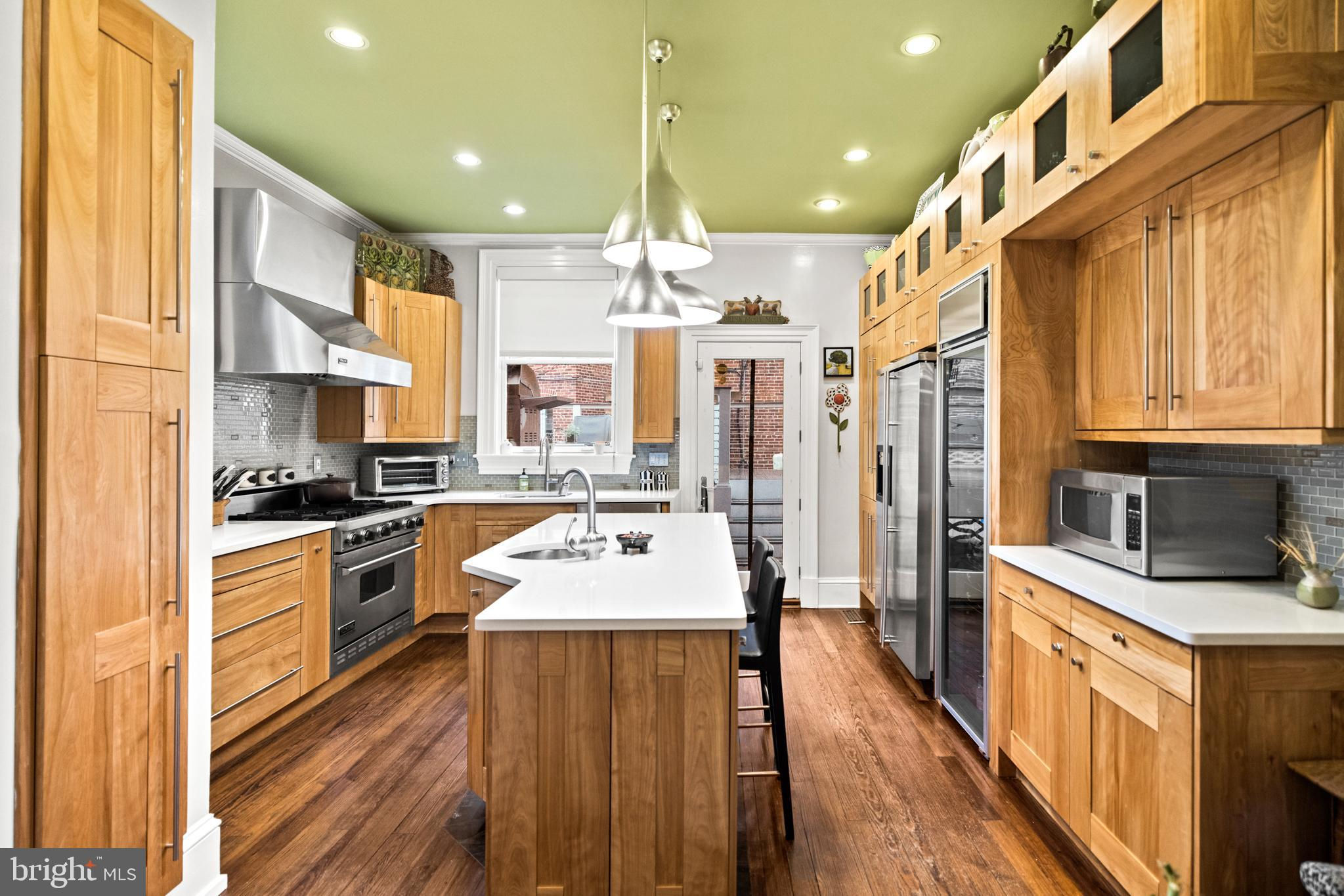 Nestled on a highly coveted block of Rhode Island Avenue, and just a stone’s throw to Logan Circle (3 houses away from the circle), this Grand Dame Victorian beckons you with it’s charming curb appeal, a nod to it’s historic past, yet meticulously renovated for modern living. This stunning home features 4 bedrooms, 4.5 bathrooms and over 4000 SF of living space across 4 finished levels, including a fully-finished English basement apartment! As you approach the home, you’ll notice the substantial and wide front steps, which usher you past the Historic Marker on the front side of the home. Inside, you’re ushered into the vestibule, a nod to this home’s history and a great area for welcoming guests. As you move further into the home, you’ll notice the gorgeous hardwood floors which run throughout the first and second floors, crown molding, and the abundance of natural light flooding through the large windows. The dining room features a decorative fireplace and a graceful bay window. Making your way to the living room you’ll pass by the built-in glass shelves, perfect for displaying your treasures. The living room features wainscoting and a floral-esque sputnik-style chandelier. The gourmet kitchen is a home chef’s dream, and features warm-toned custom cabinetry, quartz countertops, Viking stainless steel appliances, plenty of storage, and a large kitchen island with a (second) sink, seating, and additional storage, plus direct access to the large deck, perfect for enjoying your morning coffee or unwinding with a glass of wine at the end of the day. Completing the main level is a convenient powder room, perfect for guests! Upstairs are 3 bedrooms and 3 full bathrooms. The primary bedroom is an oasis and boasts gorgeous hardwood floors, large windows, including bay windows, all of which feature plantation shutters, and 3 closets, including a large walk-in closet with closet organizers and built-in drawers. The attached en-suite bathroom provides the ultimate spa-experience and features a skylight, dual vanity, walk-in shower with seating bench and an oversized, frosted window for an abundance of light! The secondary bedrooms feature beautiful hardwood floors and ample closet space. The bedroom on the upper most level also features an en-suite bathroom. The lower level is a self-contained English basement apartment, and features an open floor plan with a spacious living room with gas fireplace, a well-appointed kitchen boasting granite countertops, stainless steel appliances, including an electric range, and plenty of cabinet space! The bedroom features 2 closets! Finishing off the lower level is a full bath and convenient in-unit laundry! All of this PLUS plenty of storage space for bikes, suitcases, or anything else you can imagine, and 1 parking space directly behind the home! With so much to love inside, there’s even more to love just outside your front door! Immerse yourself in the vibrant tapestry of the neighborhood. Being right off Logan Circle you have a Walkscore of 95, you’re moments away from some of DC’s most celebrated restaurants (Le Diplomate, Barcelona Wine Bar), Whole Foods, various shops, and other amenities. Additionally, you’re blocks to Mount Vernon Square Metro, for seamless connectivity to the vibrant pulse of the City (Downtown, Navy Yard, Penn Quarter & more!). Discover a harmonious blend of historical charm and contemporary luxury. Lifestyle, Location and Luxury. You can have it all. Welcome Home!