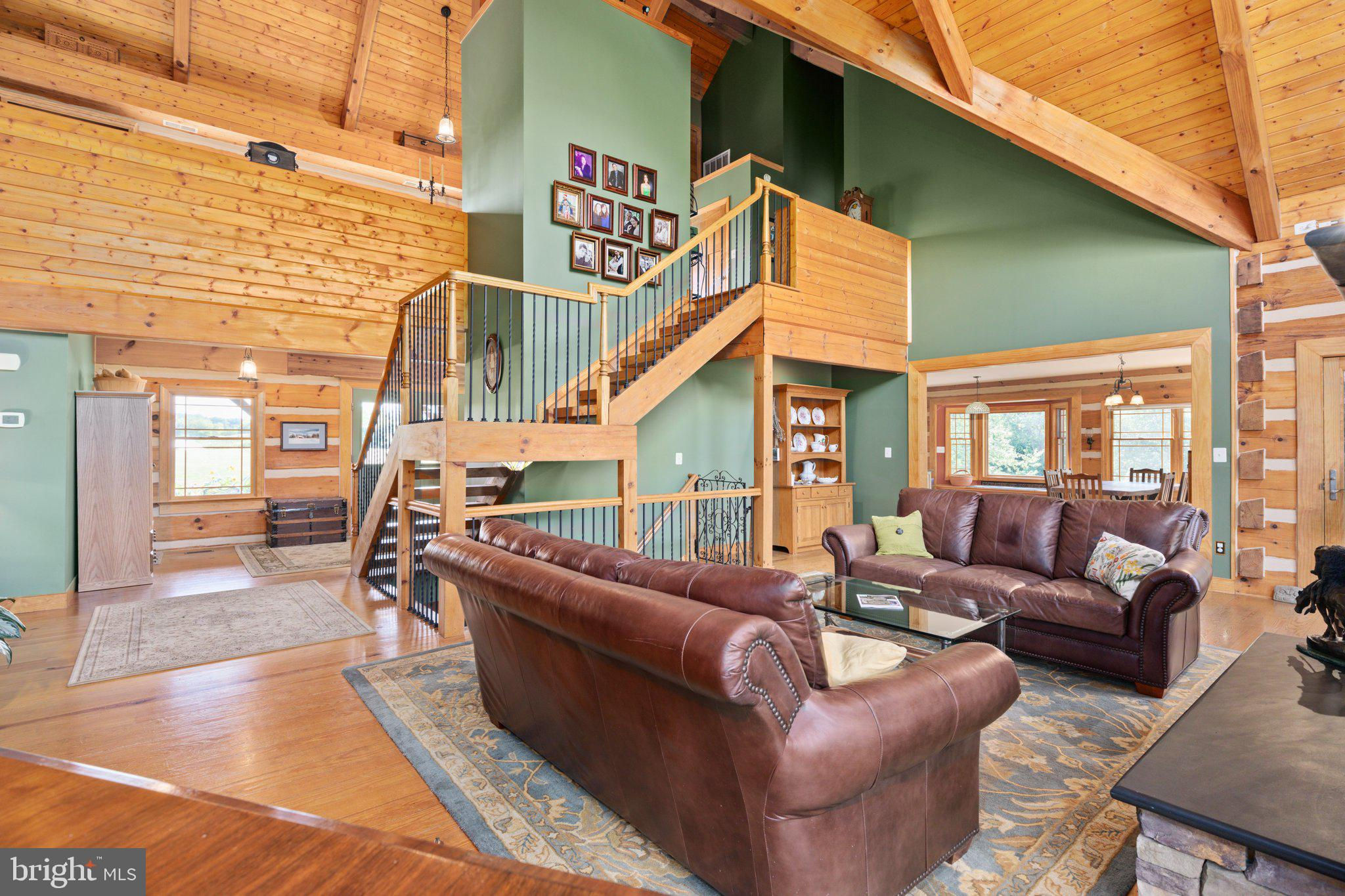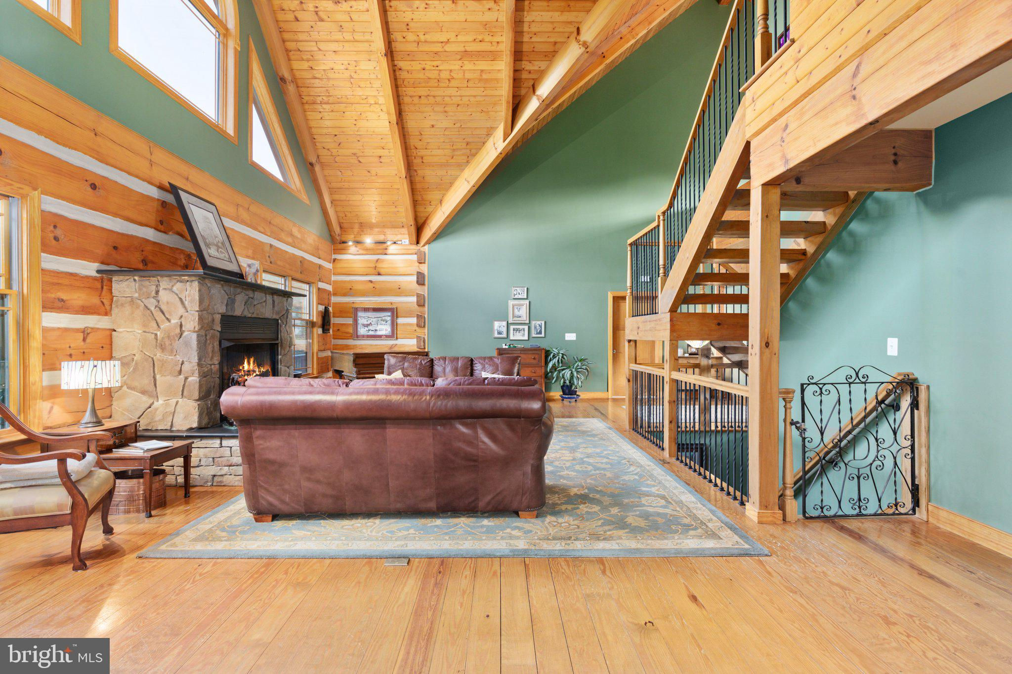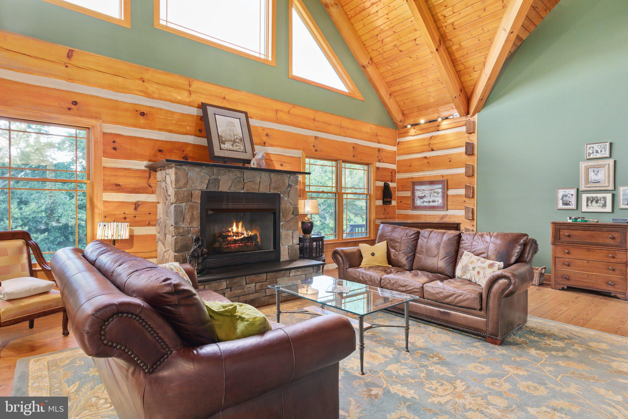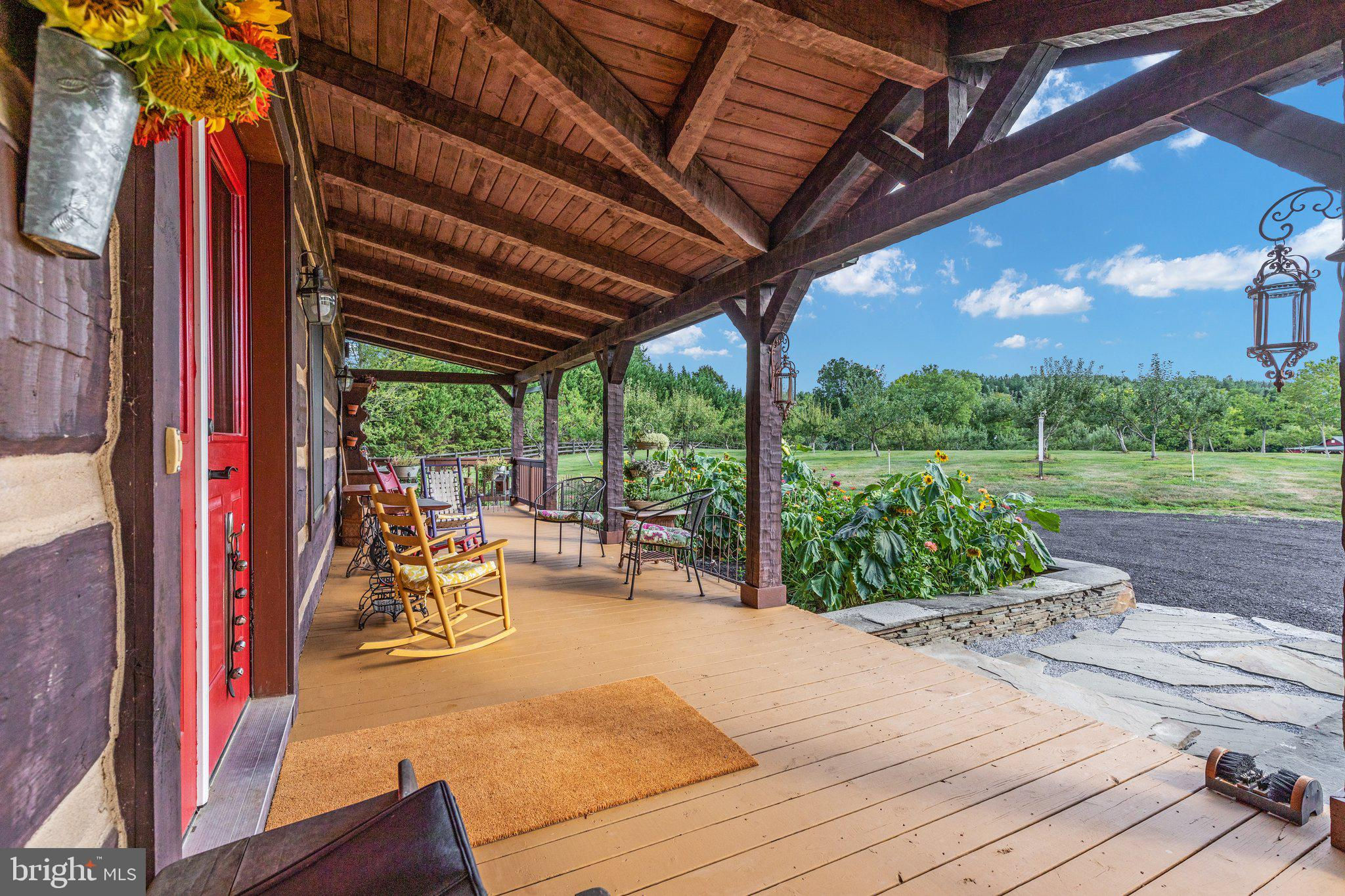 Welcome to 11407 Olde Stone Lane, where rustic elegance meets architectural excellence. This extraordinary log home, a collaborative labor of love between the owners and renowned local log home builder Ronald Hawes, in partnership with Munsey Log Homes in Tennessee, stands as a true masterpiece of craftsmanship. Crafted with precision, the Eastern white pine logs were meticulously hand-hewn and dovetailed in the timeless Appalachian style. On the outside, this is a classic log home with dry-laid stone walls bordering bountiful garden beds, while on the inside, clean and modern finishes make this home the ultimate turnkey featuring: 4 bedrooms, 4 bathrooms, an elevator, a large open kitchen, vaulted ceilings, and porches on the front and back. Nestled within the scenic Potomac Highlands, this remarkable property spans an expansive 36 acres on a bluff safely perched more than 200ft above the gentle meanders of the Potomac River. A walking trail down the bluff takes you to the property's 838ft of frontage along the picturesque river. On this property, you're surrounded by peace and quiet, and yet you're just 30 minutes from Frederick and Leesburg and 20 minutes from beautiful Harpers Ferry. If you need to commute into DC, you're 5 minutes from the Brunswick rail station, where the MARC train will take you straight to DC in 90 stress-free minutes. Not to mention, the quaint towns of Lovettsville and Brunswick are equally close at hand, full of wonderful restaurants, breweries, shops, and essentials. The property’s unique status in land use designation not only reflects its environmental stewardship but also bestows the practical advantage of reduced taxes. Of this sprawling landscape, eleven acres are thoughtfully devoted to horticulture where a tapestry of blossoms and greenery thrives. An additional three acres have been allocated to agricultural pursuits, a testament to the property's commitment to sustainable practices. Most notably, twenty-one acres stand adorned with a flourishing orchard, featuring a bountiful array of fruit trees, and a serene expanse of forestry. However, what sets this property apart is its heartwarming partnership with "A Farm Less Ordinary," a noble 501c3 non-profit organization dedicated to providing meaningful employment opportunities to adults with intellectual and developmental disabilities. Here, the land not only bears fruit but also nurtures the human spirit, fostering a sense of community, purpose, and inclusivity while tending to the earth's bounty. The organization leases part of the agricultural land on an annual basis. The property also includes many auxiliary structures that complement its working character: the big red barn includes ample storage and workspace and is adorned by solar panels that generate power for the log home. The barn was also designed with versatility in mind, as the unfinished second floor could accommodate an apartment with a walkout balcony through the hay doors. In addition, there is a 32x48ft pole barn completed in 2021 and a 20x40ft pole barn completed in 2015. A stone springhouse greets you as you wind your way onto the property, and though it looks charmingly antique, it was built in 2021 with native stone in order to encase a 1500-gallon cistern that can pump water from the dry hydrant pond. The pond, featuring a substantial 120ft dam and stretching 220ft in length, reaches depths exceeding 11ft. Serving as a picturesque and tranquil centerpiece on the property, the pond combines both practical utility and scenic beauty. 11407 Olde Stone Lane epitomizes meticulous craftsmanship, thoughtful design, and sustainable living. With its breathtaking log home, versatile barns, and location on the Potomac River, this property offers a unique and harmonious lifestyle, seamlessly marrying luxury with rustic charm. It beckons you to experience the beauty and functionality of this extraordinary estate and make it your very own piece of paradise.