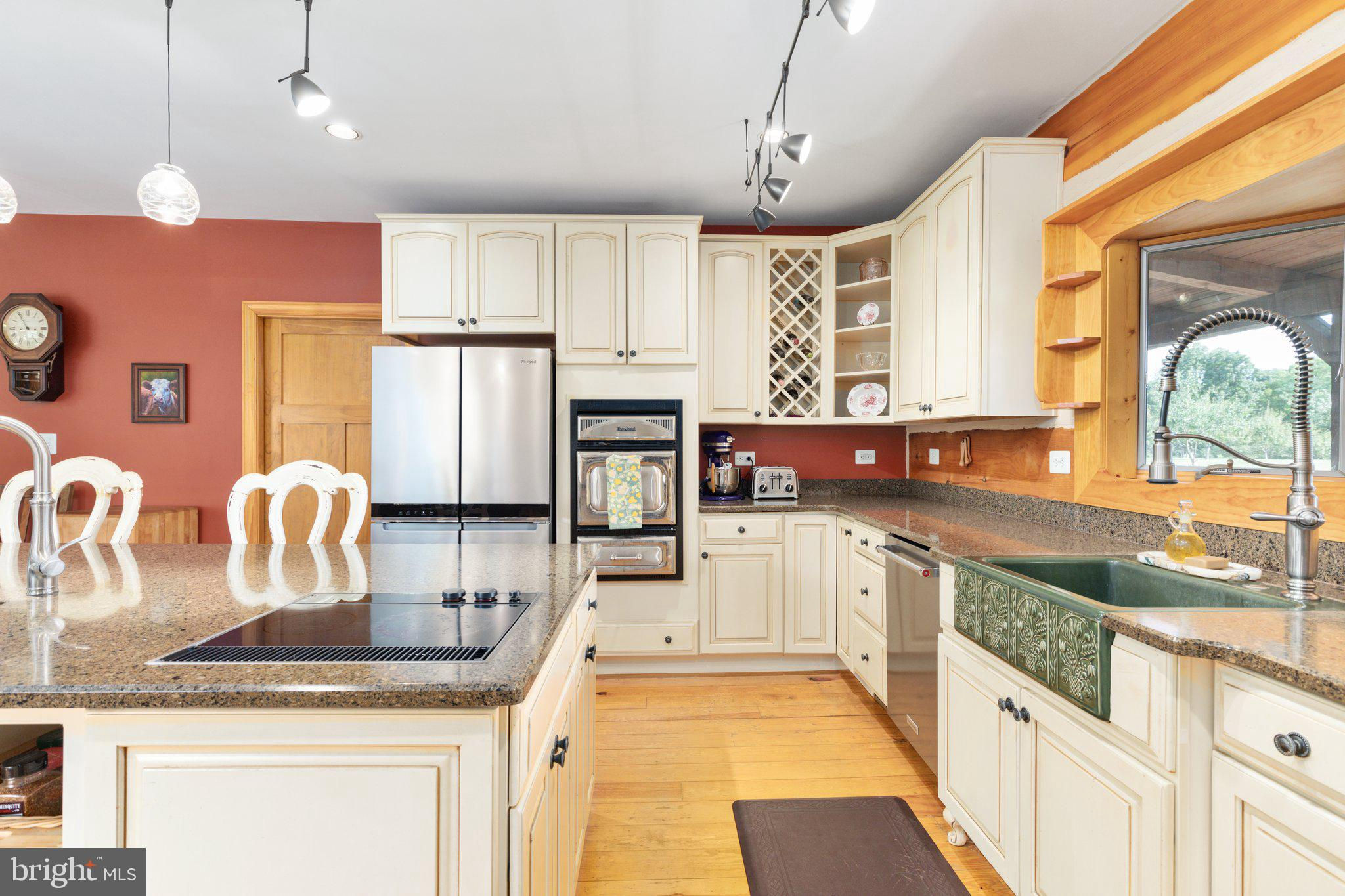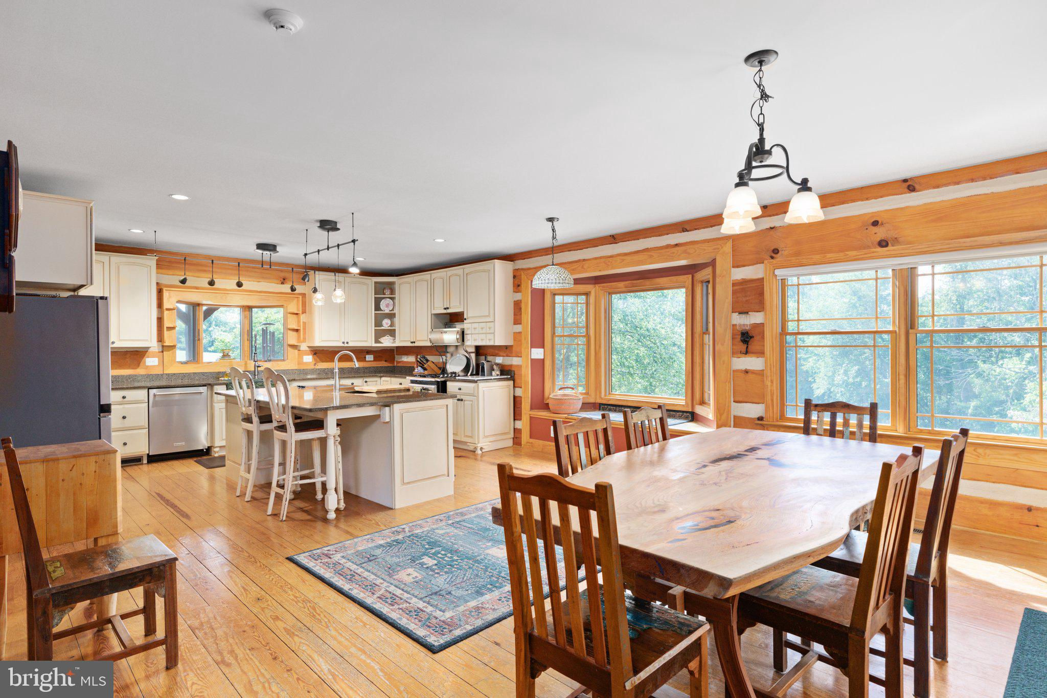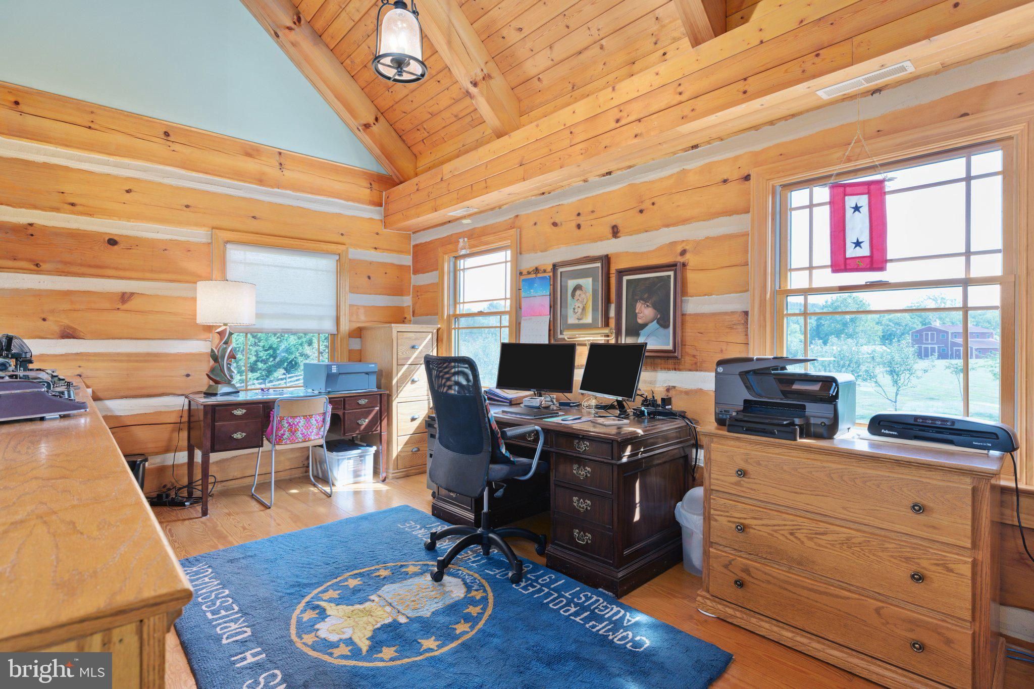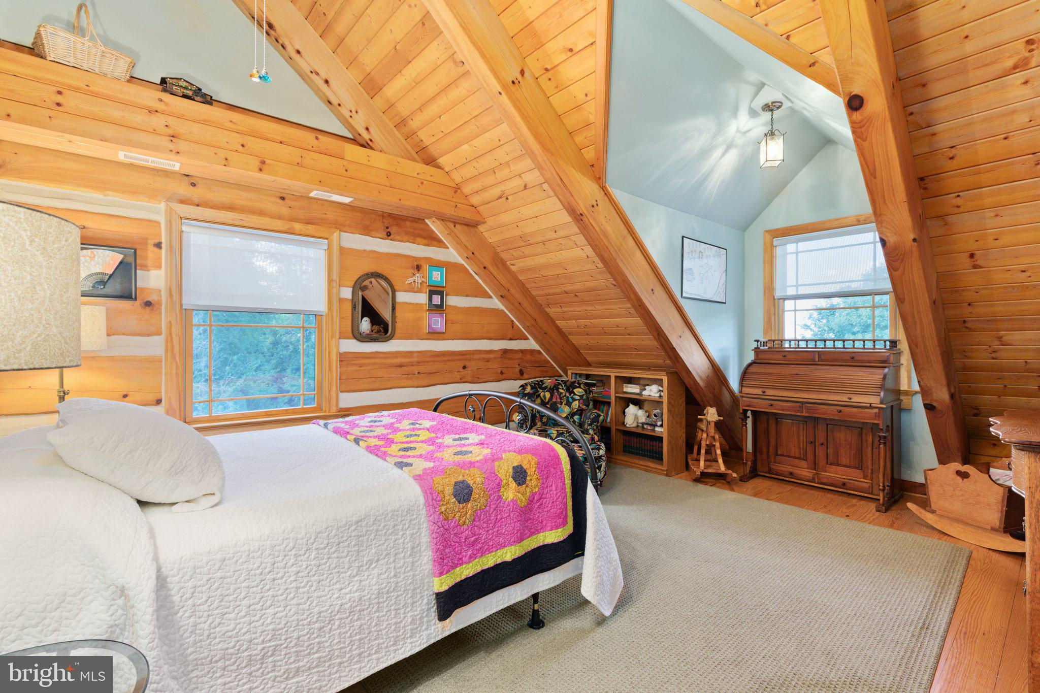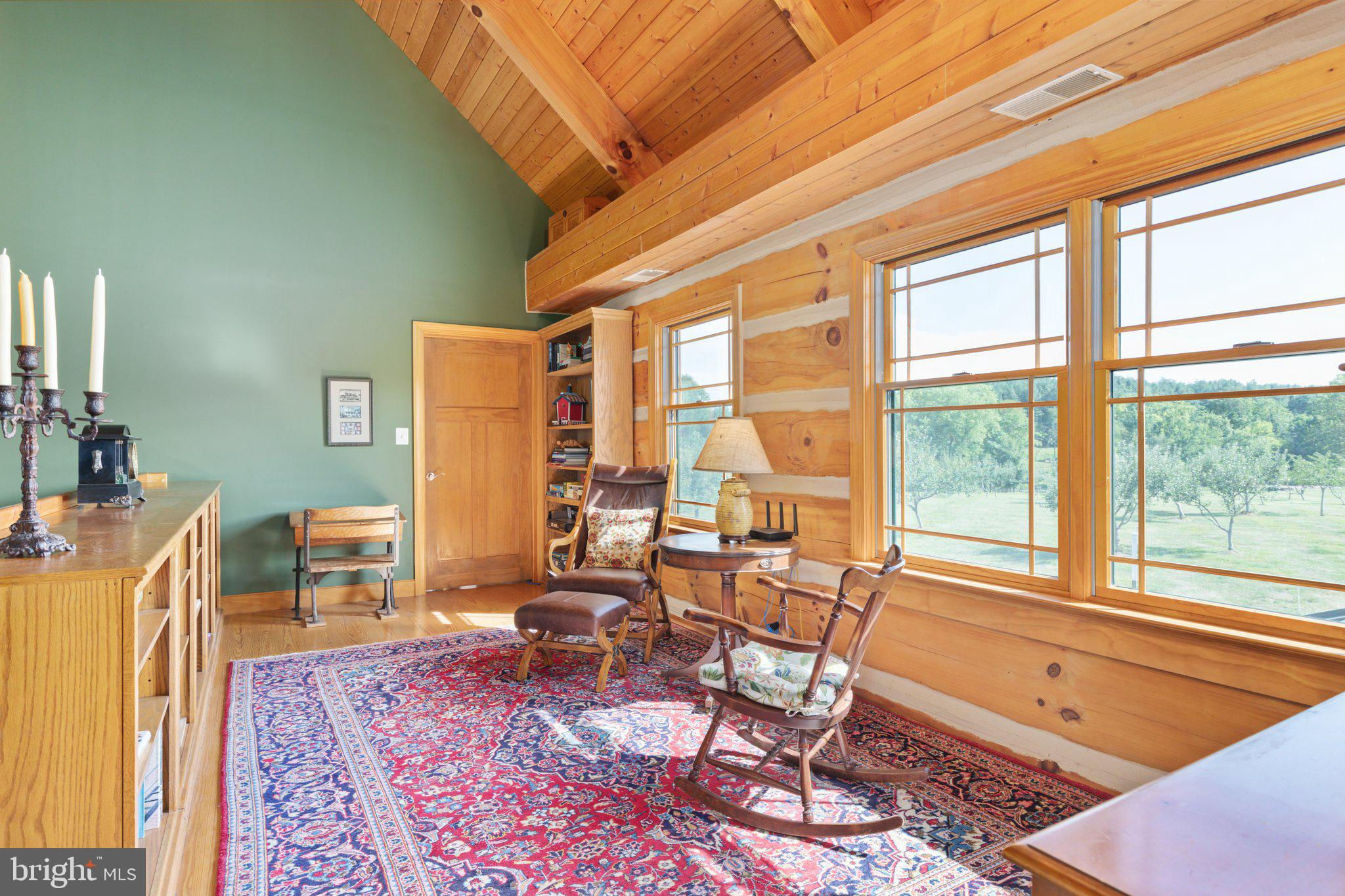 Welcome to 11407 Olde Stone Lane, where rustic elegance meets architectural excellence. This extraordinary log home, a collaborative labor of love between the owners and renowned local log home builder Ronald Hawes, in partnership with Munsey Log Homes in Tennessee, stands as a true masterpiece of craftsmanship. Crafted with precision, the Eastern white pine logs were meticulously hand-hewn and dovetailed in the timeless Appalachian style. On the outside, this is a classic log home with dry-laid stone walls bordering bountiful garden beds, while on the inside, clean and modern finishes make this home the ultimate turnkey featuring: 4 bedrooms, 4 bathrooms, an elevator, a large open kitchen, vaulted ceilings, and porches on the front and back. Nestled within the scenic Potomac Highlands, this remarkable property spans an expansive 36 acres on a bluff safely perched more than 200ft above the gentle meanders of the Potomac River. A walking trail down the bluff takes you to the property's 838ft of frontage along the picturesque river. On this property, you're surrounded by peace and quiet, and yet you're just 30 minutes from Frederick and Leesburg and 20 minutes from beautiful Harpers Ferry. If you need to commute into DC, you're 5 minutes from the Brunswick rail station, where the MARC train will take you straight to DC in 90 stress-free minutes. Not to mention, the quaint towns of Lovettsville and Brunswick are equally close at hand, full of wonderful restaurants, breweries, shops, and essentials. The property’s unique status in land use designation not only reflects its environmental stewardship but also bestows the practical advantage of reduced taxes. Of this sprawling landscape, eleven acres are thoughtfully devoted to horticulture where a tapestry of blossoms and greenery thrives. An additional three acres have been allocated to agricultural pursuits, a testament to the property's commitment to sustainable practices. Most notably, twenty-one acres stand adorned with a flourishing orchard, featuring a bountiful array of fruit trees, and a serene expanse of forestry. However, what sets this property apart is its heartwarming partnership with "A Farm Less Ordinary," a noble 501c3 non-profit organization dedicated to providing meaningful employment opportunities to adults with intellectual and developmental disabilities. Here, the land not only bears fruit but also nurtures the human spirit, fostering a sense of community, purpose, and inclusivity while tending to the earth's bounty. The organization leases part of the agricultural land on an annual basis. The property also includes many auxiliary structures that complement its working character: the big red barn includes ample storage and workspace and is adorned by solar panels that generate power for the log home. The barn was also designed with versatility in mind, as the unfinished second floor could accommodate an apartment with a walkout balcony through the hay doors. In addition, there is a 32x48ft pole barn completed in 2021 and a 20x40ft pole barn completed in 2015. A stone springhouse greets you as you wind your way onto the property, and though it looks charmingly antique, it was built in 2021 with native stone in order to encase a 1500-gallon cistern that can pump water from the dry hydrant pond. The pond, featuring a substantial 120ft dam and stretching 220ft in length, reaches depths exceeding 11ft. Serving as a picturesque and tranquil centerpiece on the property, the pond combines both practical utility and scenic beauty. 11407 Olde Stone Lane epitomizes meticulous craftsmanship, thoughtful design, and sustainable living. With its breathtaking log home, versatile barns, and location on the Potomac River, this property offers a unique and harmonious lifestyle, seamlessly marrying luxury with rustic charm. It beckons you to experience the beauty and functionality of this extraordinary estate and make it your very own piece of paradise.