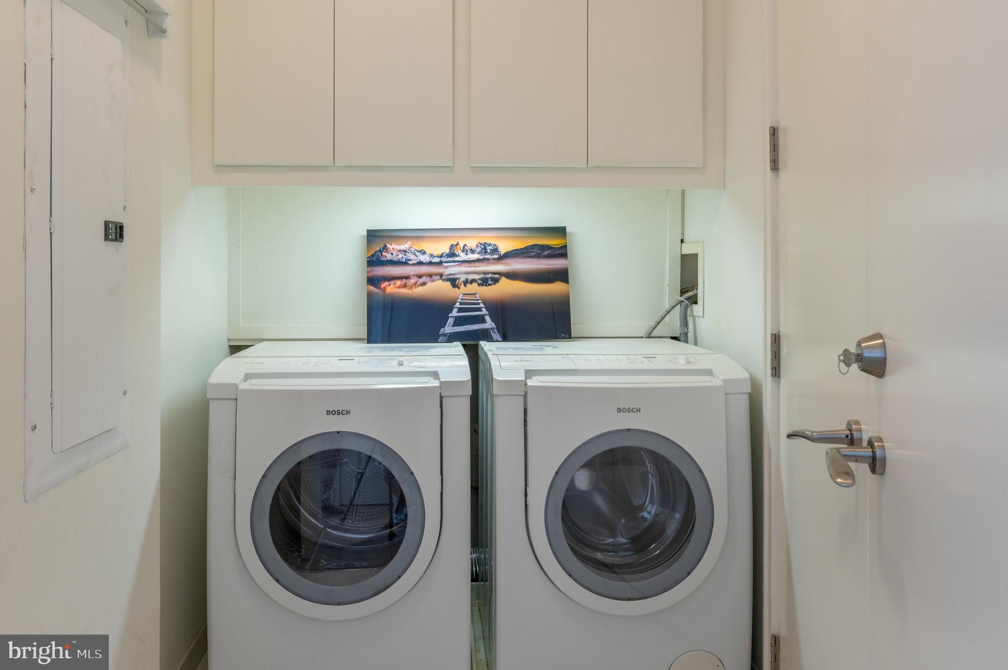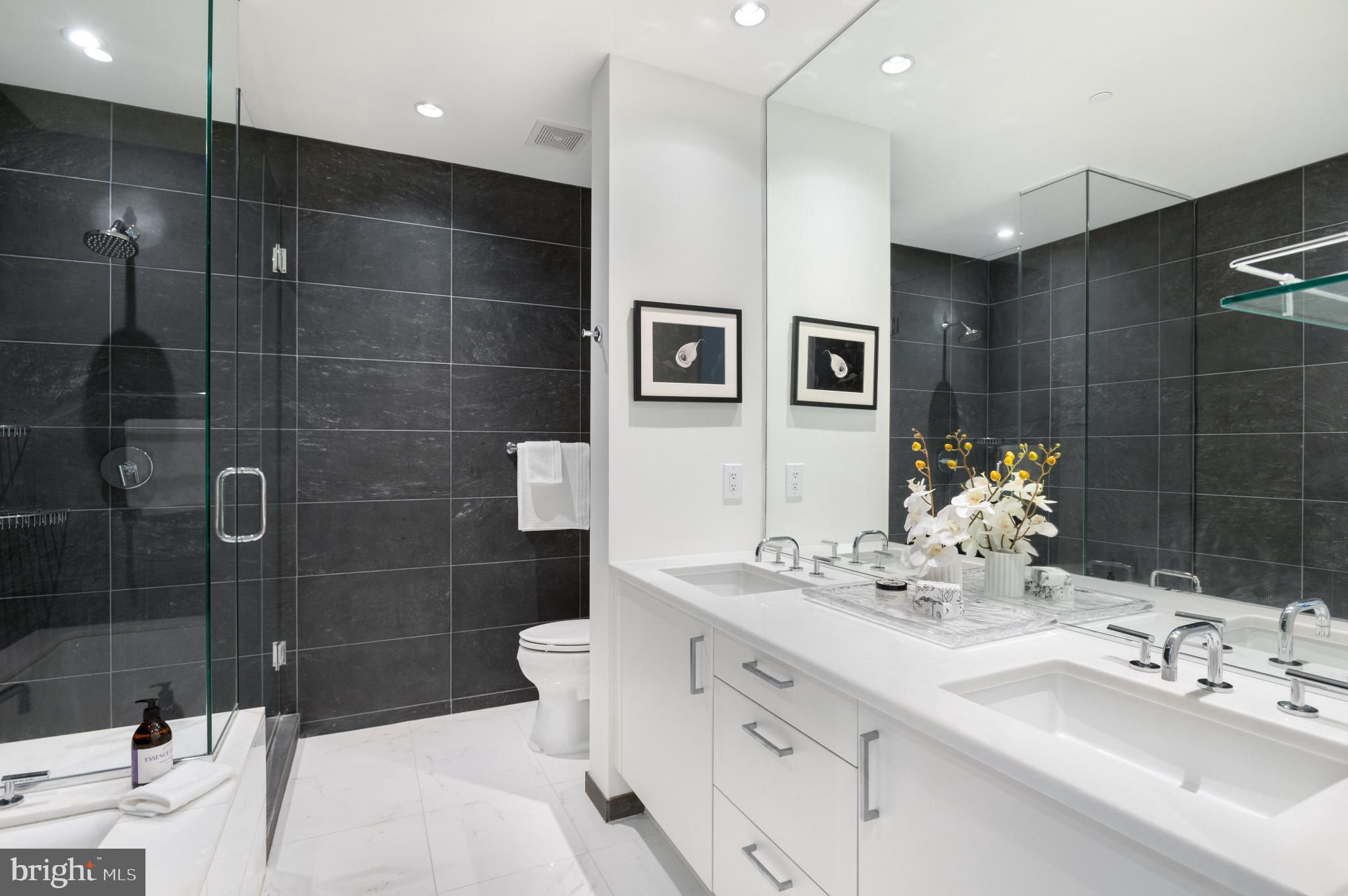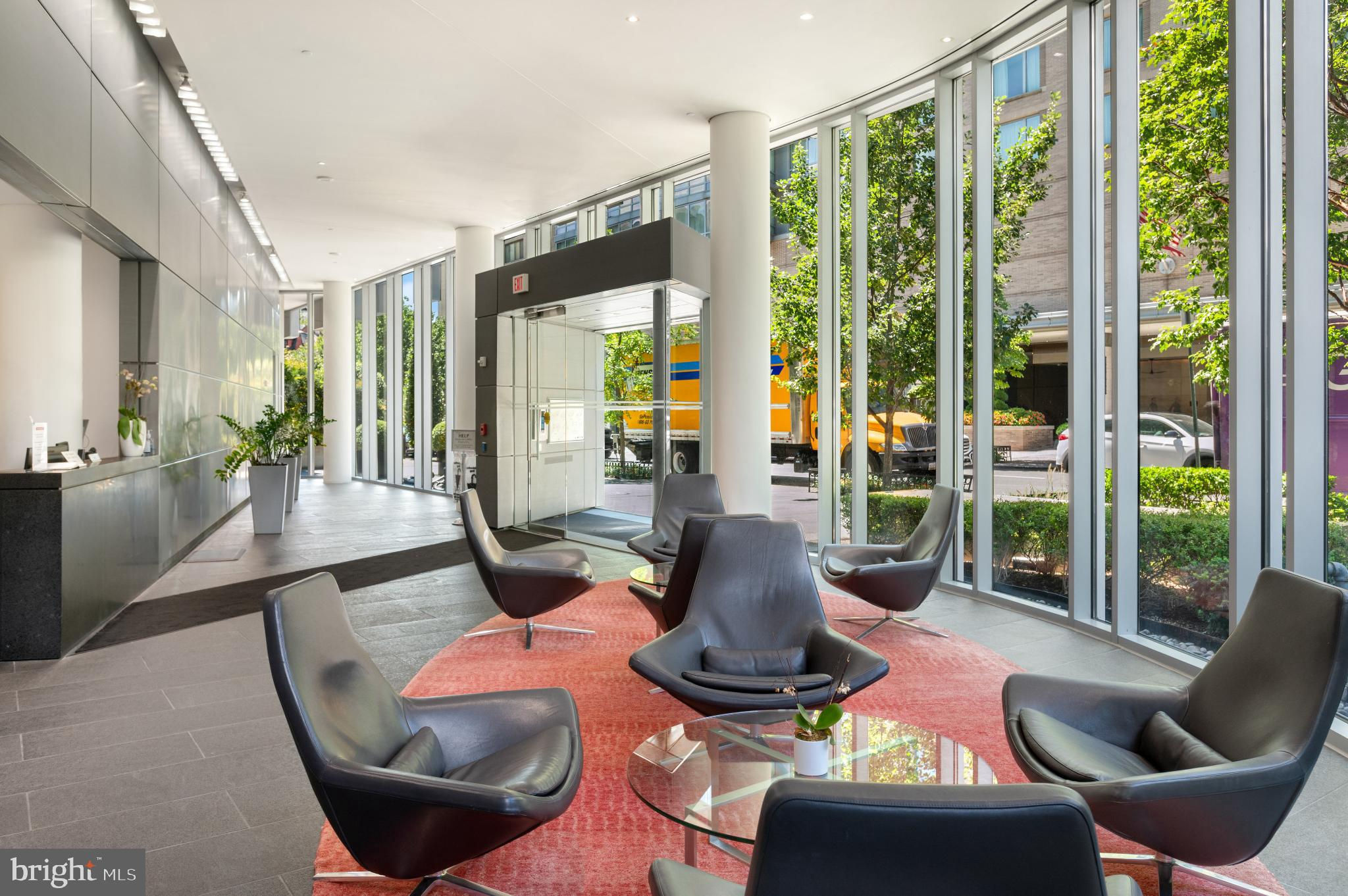 A rare opportunity to own a 3-bedroom condo in the acclaimed 22 West Condominium in DC’s sought-after West End! This expansive residence offers 2,143 interior SF, 3 Bed, 3 Baths, dramatic scale with an inviting entry foyer and a spectacular living room framed by two walls (eastern and western exposure!) of floor-to-ceiling windows overlooking tree lined 22nd St and New Hampshire Ave. The chef’s kitchen showcases Poggenpohl cabinetry, granite counters, and Sub-Zero and Bosch appliances. Recent upgrades include modern ceiling lighting, new bath flooring, a sliding door in the primary bath, motorized shades and curtains, and efficient dual HVAC systems. A custom Italian glass sliding wall by Ramadesio creates a flexible den/office (3rd Br) with privacy and light, while interiors are enhanced with recently refinished hardwood floors, and an accent column with a striking French mural. Two side-by-side garage spaces and a large storage unit convey. 22 West delivers the ease of full-service living with 24-hour front desk concierge, doorman, and on-site management. Residents enjoy a heated rooftop pool with expansive sundeck and grilling stations, a modern fitness center, and stylish party and meeting rooms that make entertaining effortless. The monthly condominium fee is truly all-inclusive—covering electricity, gas, water, heating and cooling, cable TV, Verizon Fios high-speed internet, and more—removing the burden of multiple bills and creating a seamless lock-and-leave lifestyle. Perfectly positioned in the heart of the West End, the building is steps to Trader Joe’s, Whole Foods, Equinox, Metro, and the endless dining and cultural options of Georgetown and Dupont Circle.