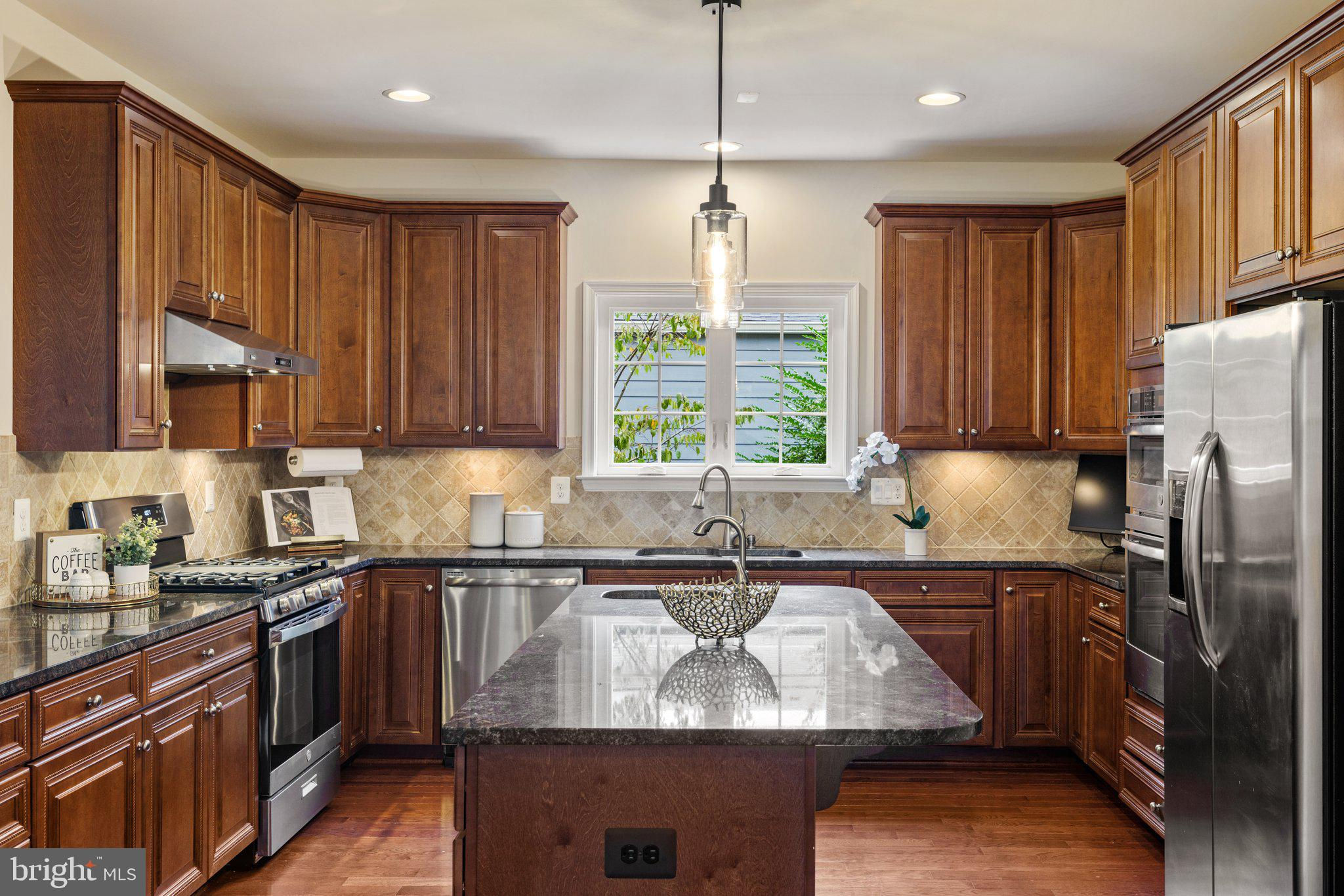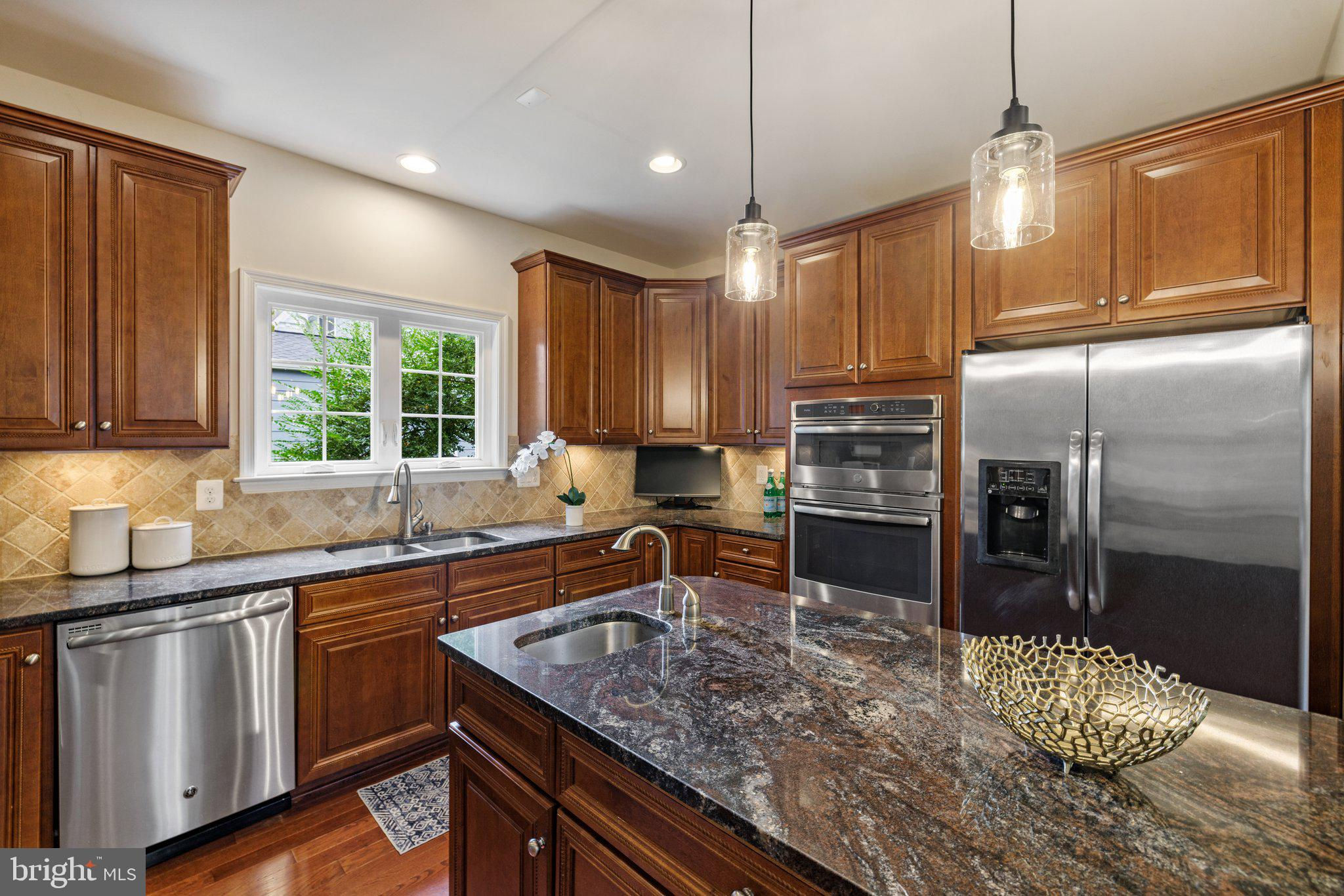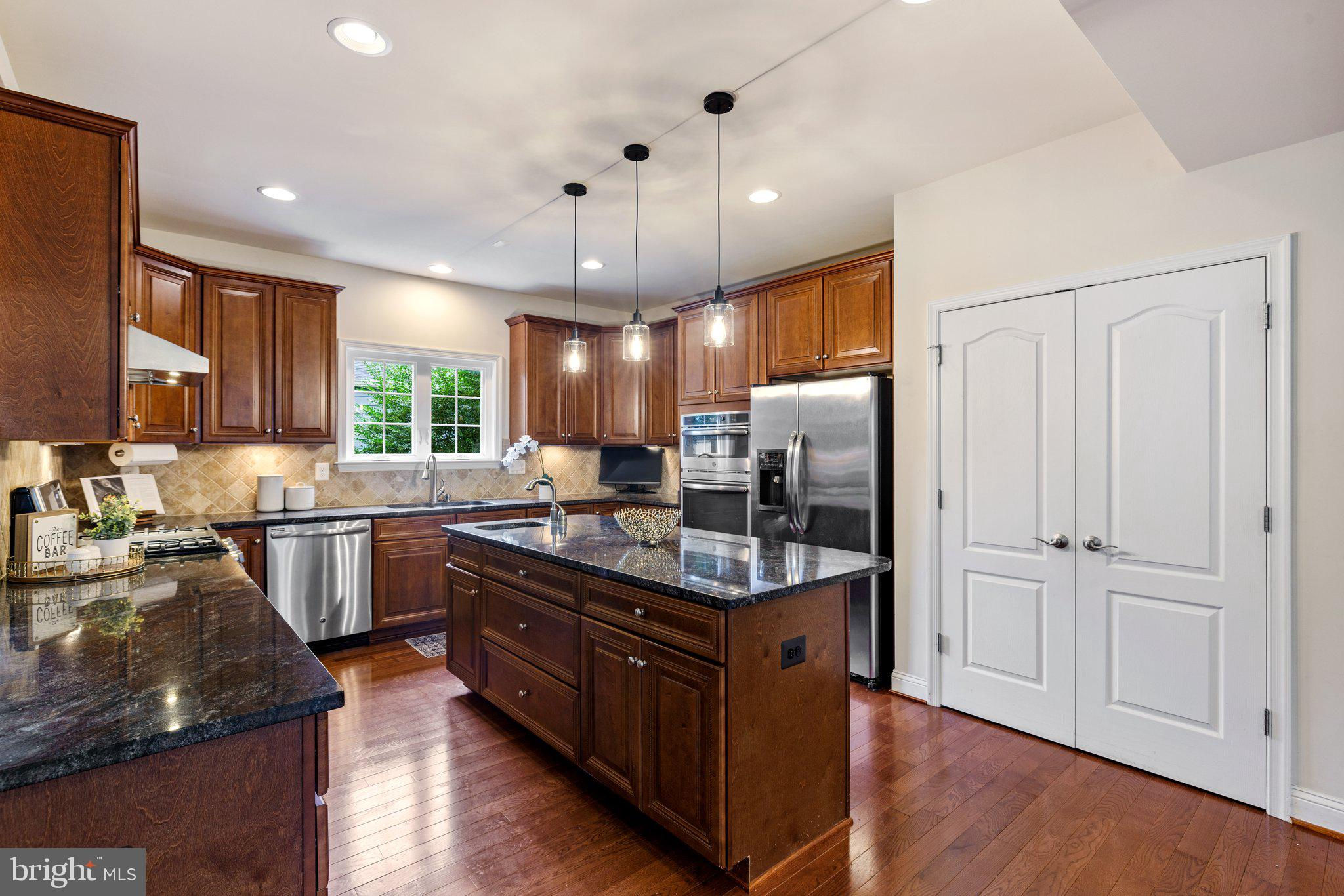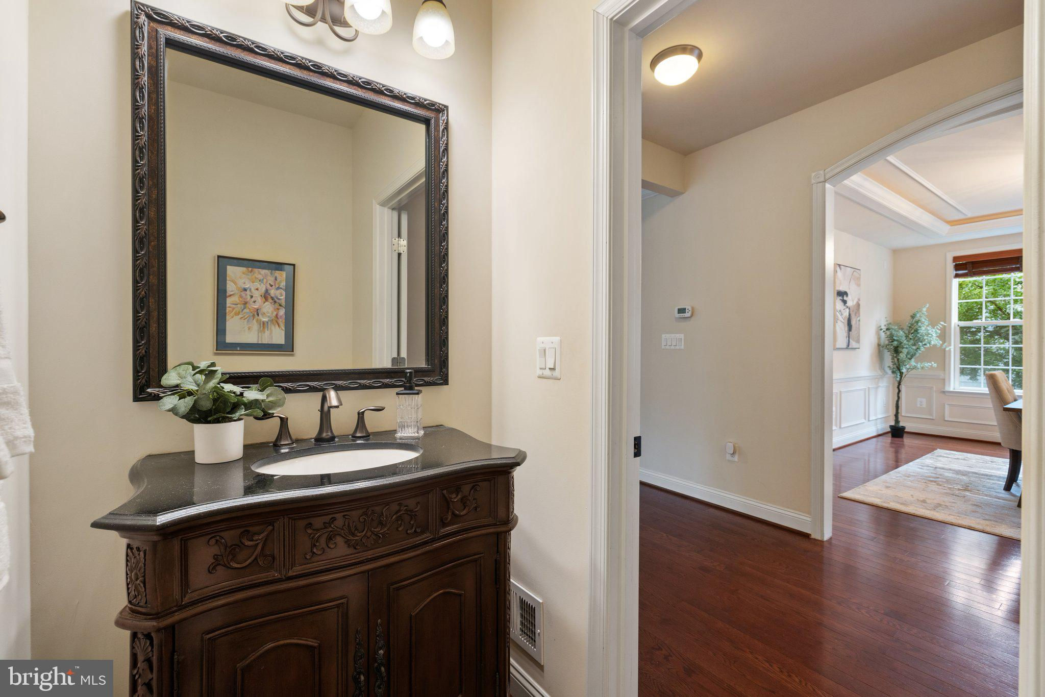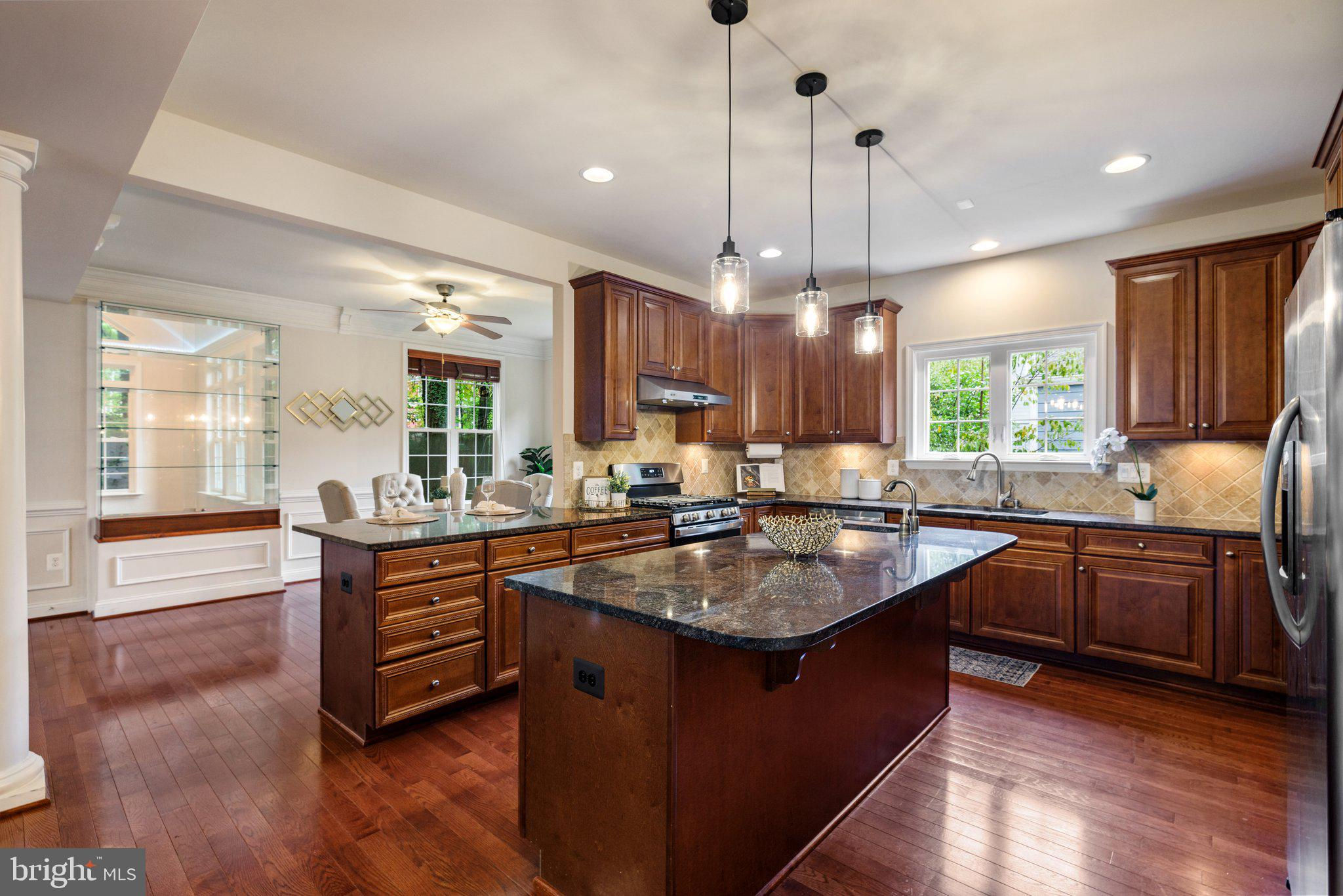 Move in ready custom built home in highly sought after location in downtown Vienna, walkable to Maple Ave and Church Street! Built in 2013, the main entry welcomes you into a foyer with cherry hardwood floors throughout. Passing through the dining room with illuminated tray ceiling and chandelier, you'll find the hallway/mudroom entrance from the garage, half bath, and hall closet. The rest of the main level is open with a massive family room with coffered ceiling focused on a 42" electric fireplace (gas is still available to convert back to gas), a large morning room open to the kitchen with pantry, stainless steel appliances, granite counters, large island with overhang, soft close cabinets, and window overlooking the side yard. In 2019, the owners added a sunroom with vaulted ceiling, tile floors, and lots of windows. The sunroom leads to a deck overlooking the large, flat lot. The garage features overhead storage, a level 2 EV charger with 240v, new garage door and MyQ garage door opener installed in 2024. The upper level features carpet throughout. The primary suite features an illuminated tray ceiling, with a sitting area, two walk in closets, an en-suite bathroom with jetted jacuzzi tub, walk in shower, dual sinks, and a water closet. There's a covered front porch you can access from the primary bedroom as well as the other bedroom in the front of the home. That bedroom features a large walk in closet, and an en-suite bathroom with tub. There are two additional bedrooms each with two closets and en-suite bathrooms. The upper level also enjoys a loft area perfect for hang out or homework space. Enjoy the laundry room and linen closet on the upper level as well. There are 8' ceilings on the upper level and 9' ceilings on the main and basement. The lower level features 2 bedrooms that each has a walk in closet, carpeting, and share a hallway bathroom with a tub/shower - perfect for au pair/in law/guest suite. There's a media room, rec room, full laundry room, and a large storage/mechanical room. There's a door with stairs out to the yard. Additionally the rec room has a full sink with granite counter, upper cabinets, space for a dishwasher, and a vent used for a hot plate for guests. Smart home features like 42 Enphase Solar Panels, whole house water filtration, coax cables in every room, gutter guards, and a long list of other features. Enjoy living in Vienna with town events like the Halloween Parade, Oktoberfest, Chillin on Church, ViVa Vienna, Church Street Stroll, and the Farmer's Market held at the nearby Community Center. This house sits nearby to many restaurants, retail, W&OD trail, Whole Foods, Giant, and several coffee shops.