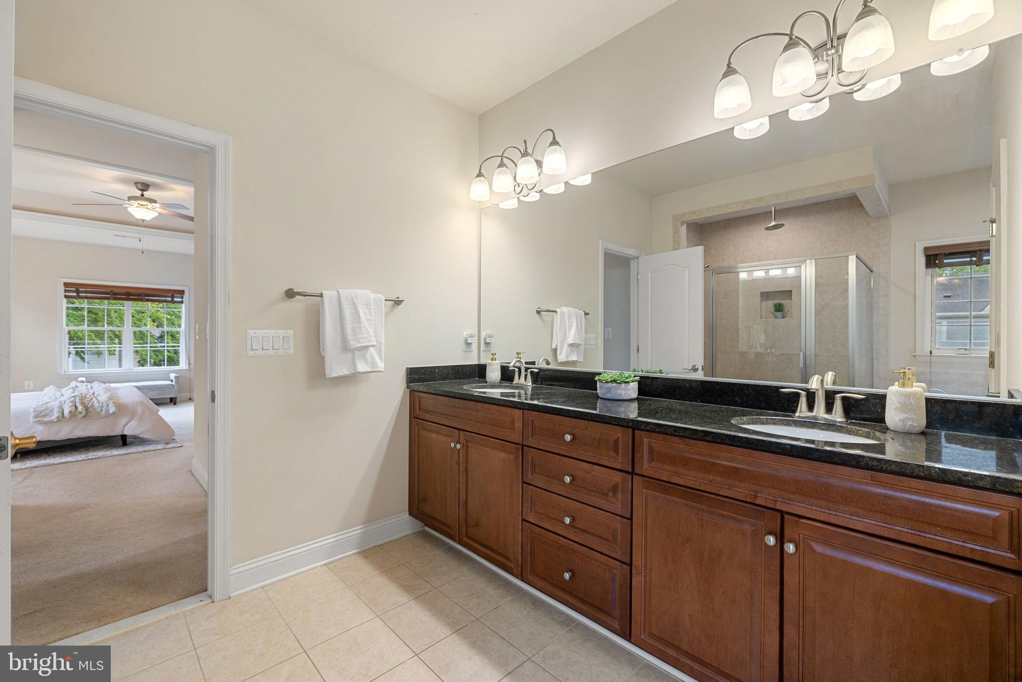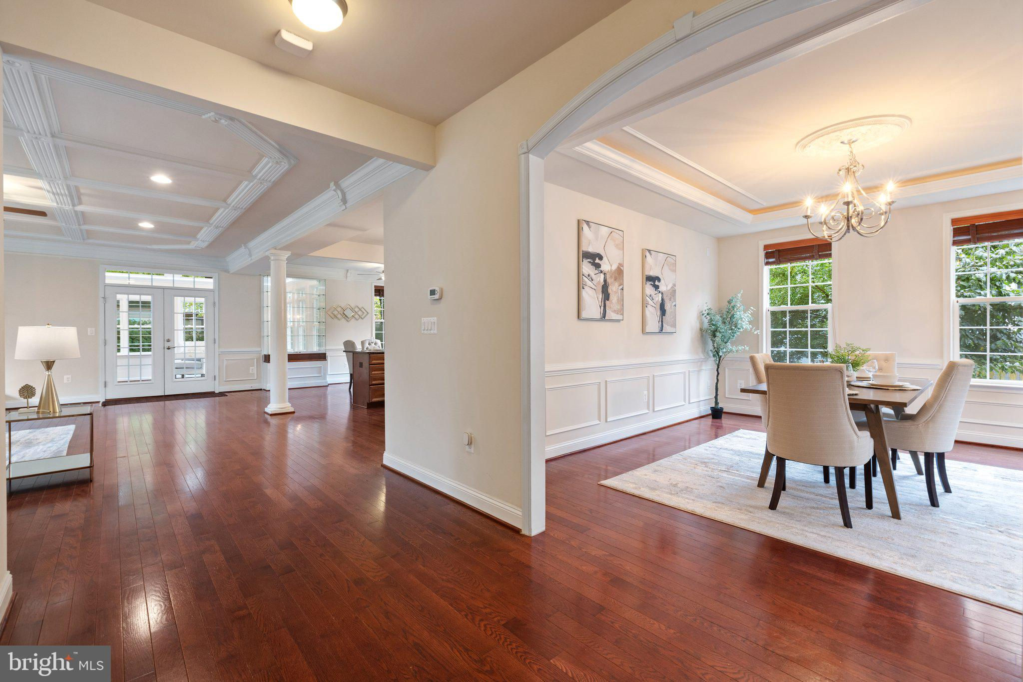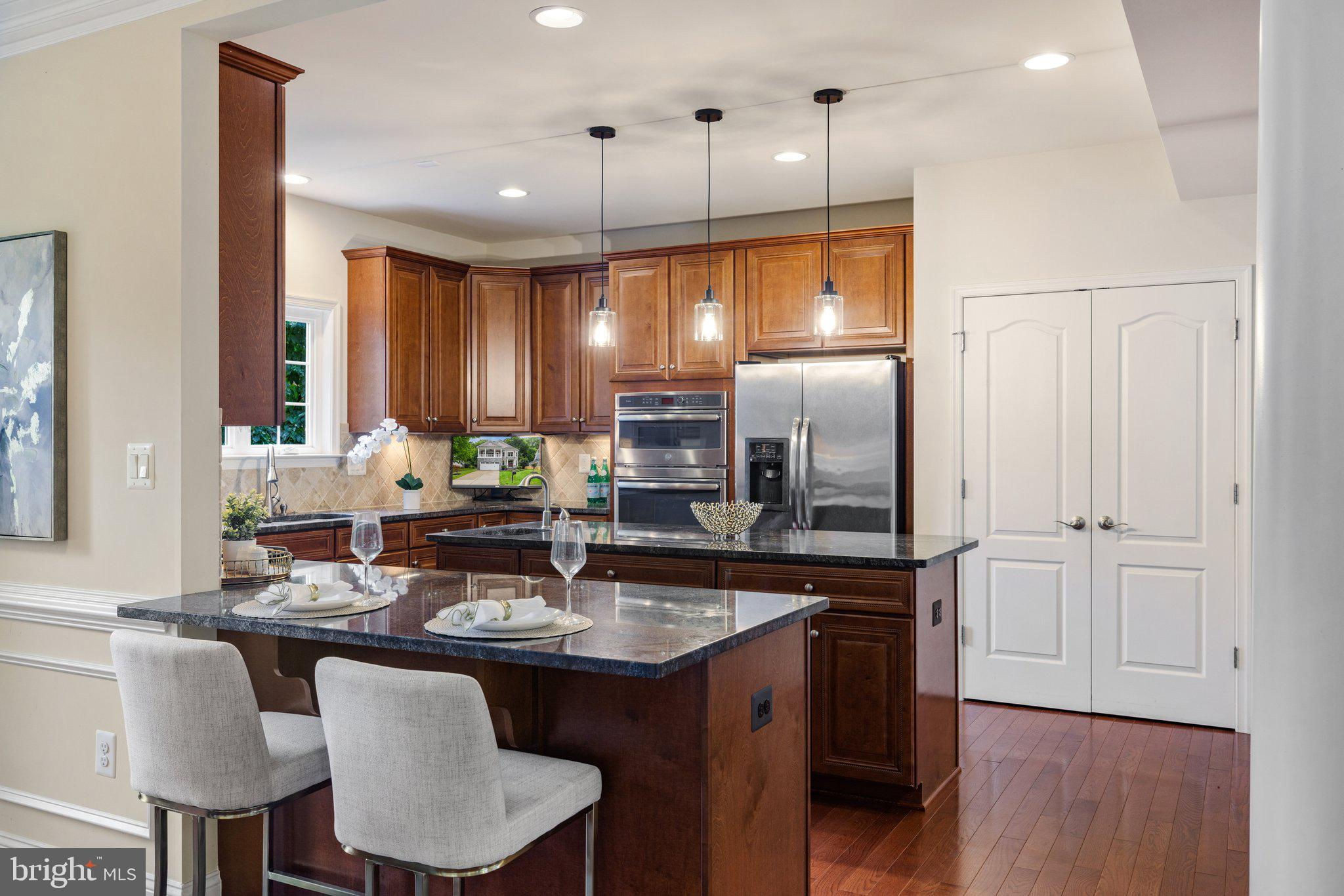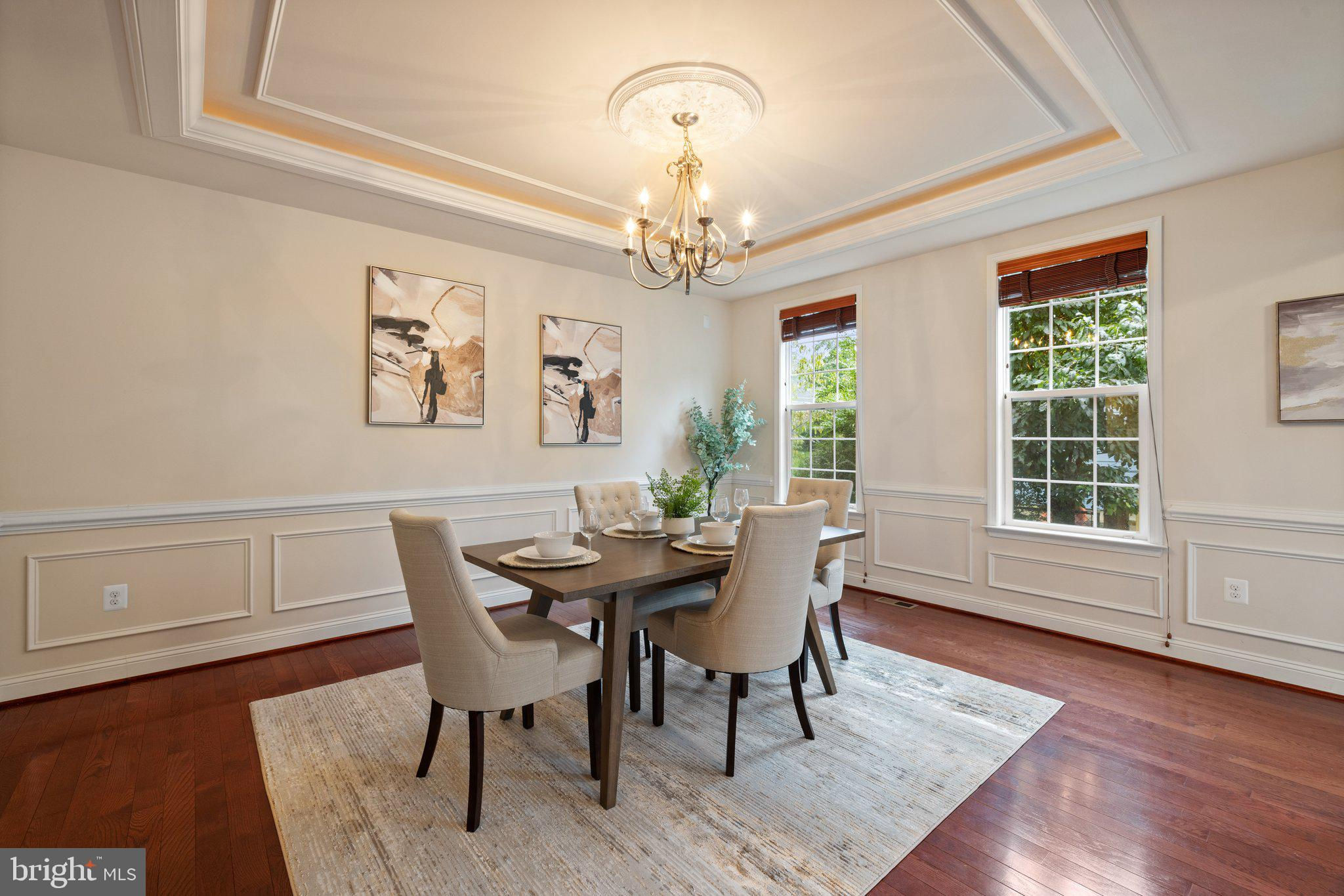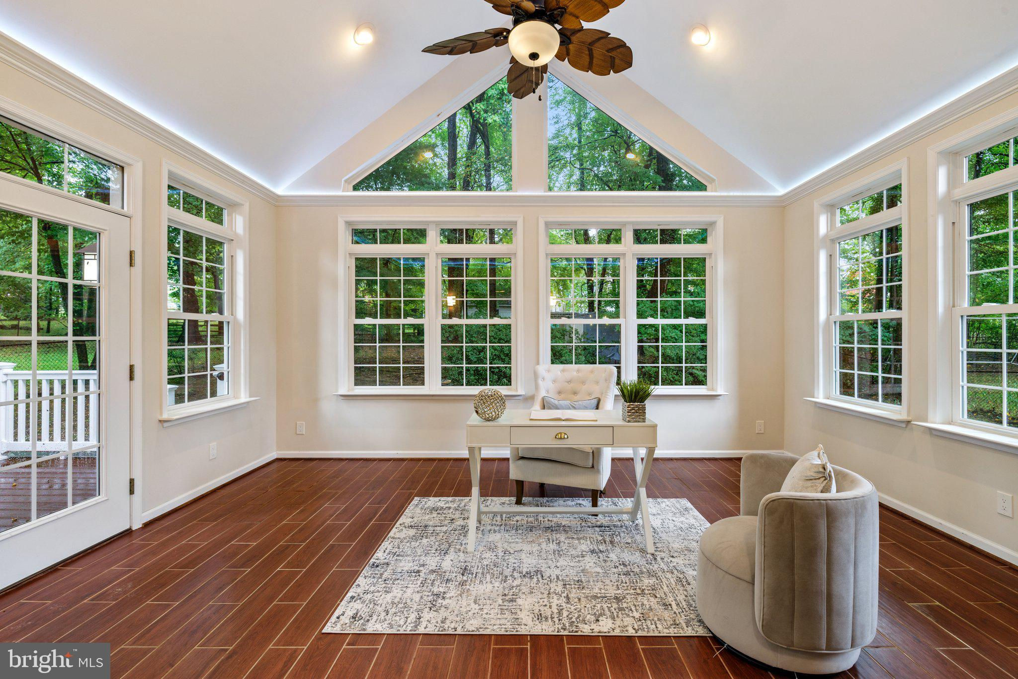 Move in ready custom built home in highly sought after location in downtown Vienna, walkable to Maple Ave and Church Street! Built in 2013, the main entry welcomes you into a foyer with cherry hardwood floors throughout. Passing through the dining room with illuminated tray ceiling and chandelier, you'll find the hallway/mudroom entrance from the garage, half bath, and hall closet. The rest of the main level is open with a massive family room with coffered ceiling focused on a 42" electric fireplace (gas is still available to convert back to gas), a large morning room open to the kitchen with pantry, stainless steel appliances, granite counters, large island with overhang, soft close cabinets, and window overlooking the side yard. In 2019, the owners added a sunroom with vaulted ceiling, tile floors, and lots of windows. The sunroom leads to a deck overlooking the large, flat lot. The garage features overhead storage, a level 2 EV charger with 240v, new garage door and MyQ garage door opener installed in 2024. The upper level features carpet throughout. The primary suite features an illuminated tray ceiling, with a sitting area, two walk in closets, an en-suite bathroom with jetted jacuzzi tub, walk in shower, dual sinks, and a water closet. There's a covered front porch you can access from the primary bedroom as well as the other bedroom in the front of the home. That bedroom features a large walk in closet, and an en-suite bathroom with tub. There are two additional bedrooms each with two closets and en-suite bathrooms. The upper level also enjoys a loft area perfect for hang out or homework space. Enjoy the laundry room and linen closet on the upper level as well. There are 8' ceilings on the upper level and 9' ceilings on the main and basement. The lower level features 2 bedrooms that each has a walk in closet, carpeting, and share a hallway bathroom with a tub/shower - perfect for au pair/in law/guest suite. There's a media room, rec room, full laundry room, and a large storage/mechanical room. There's a door with stairs out to the yard. Additionally the rec room has a full sink with granite counter, upper cabinets, space for a dishwasher, and a vent used for a hot plate for guests. Smart home features like 42 Enphase Solar Panels, whole house water filtration, coax cables in every room, gutter guards, and a long list of other features. Enjoy living in Vienna with town events like the Halloween Parade, Oktoberfest, Chillin on Church, ViVa Vienna, Church Street Stroll, and the Farmer's Market held at the nearby Community Center. This house sits nearby to many restaurants, retail, W&OD trail, Whole Foods, Giant, and several coffee shops.