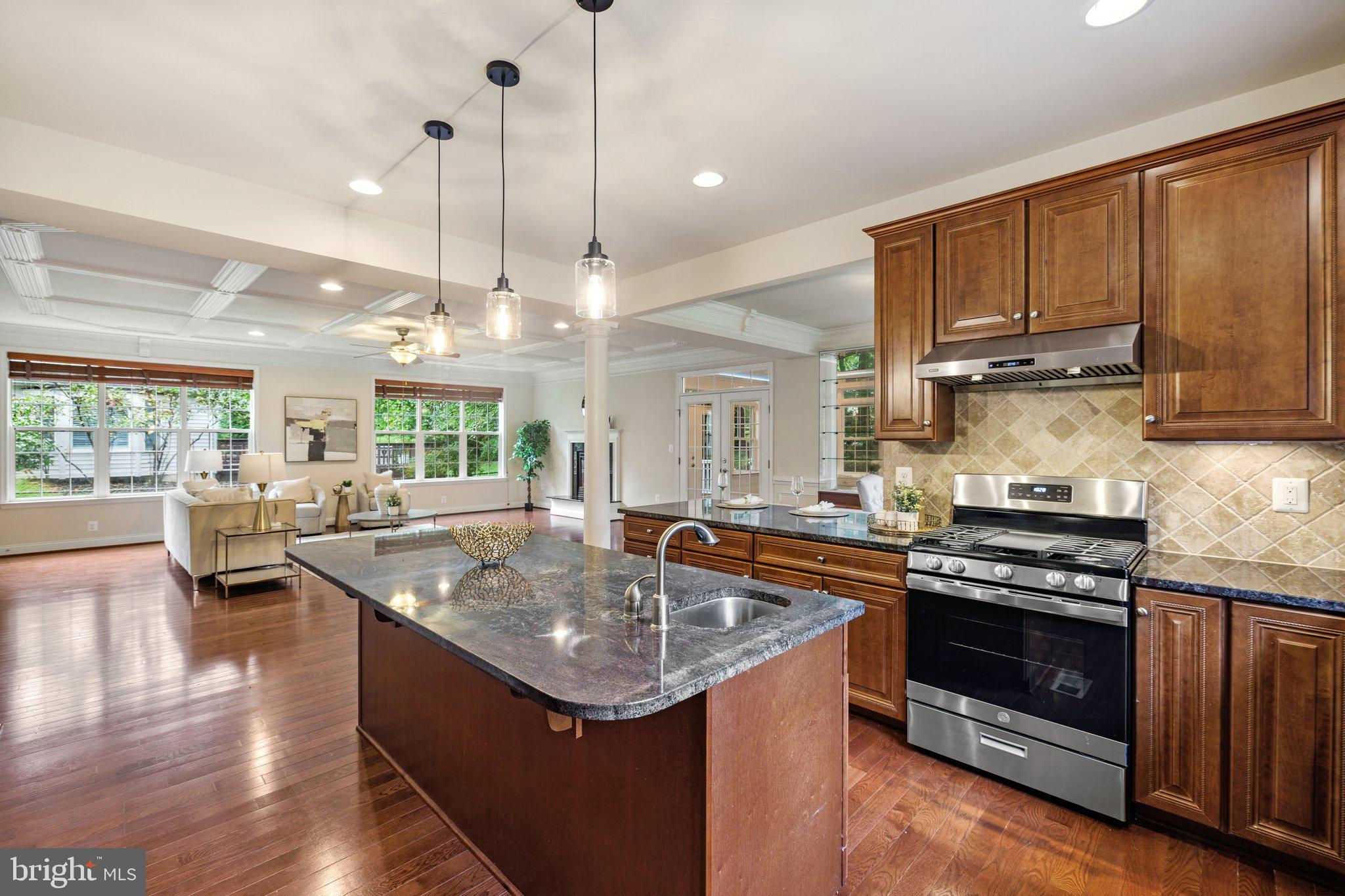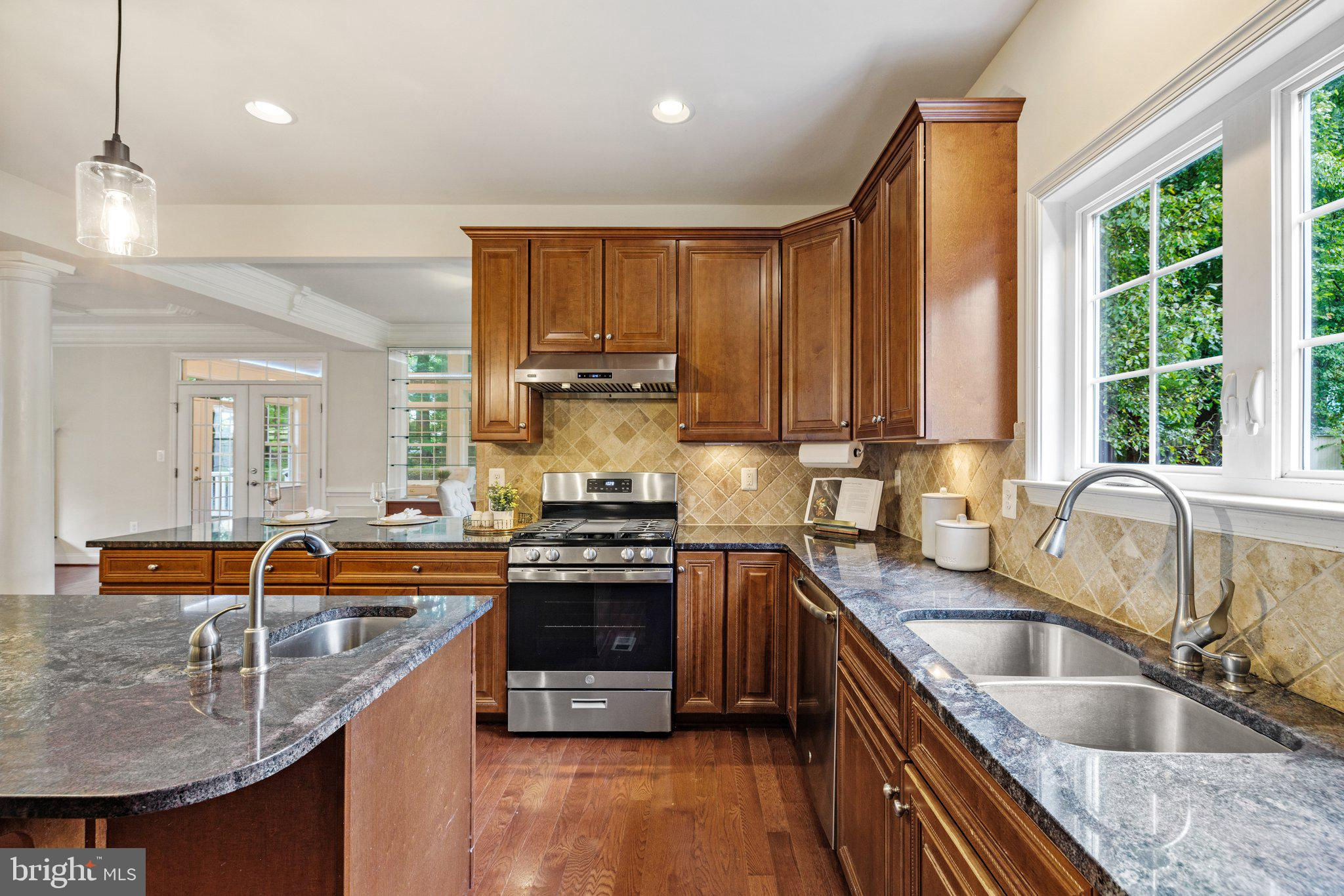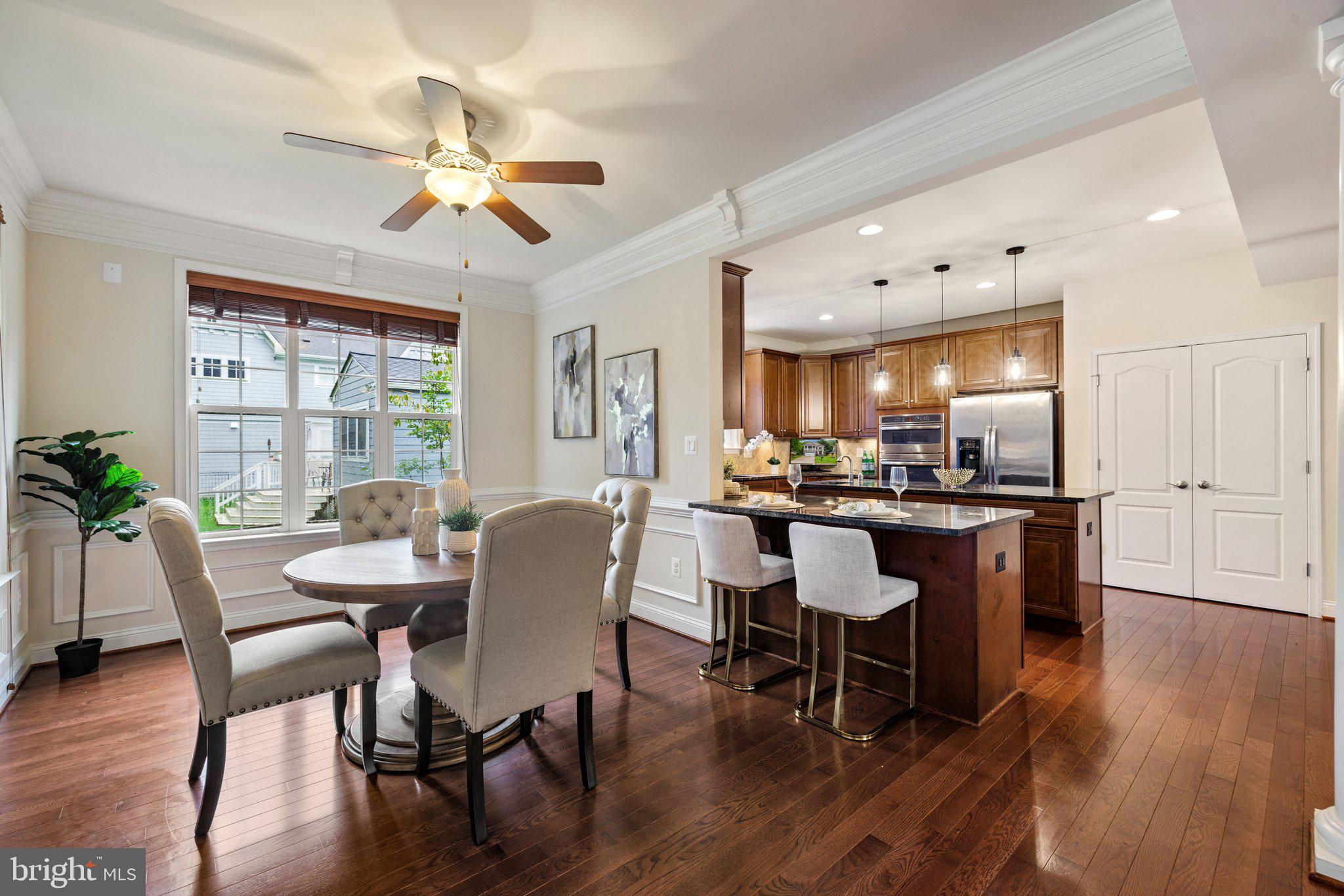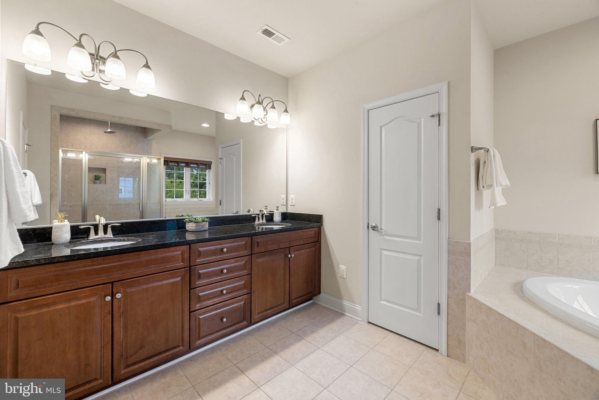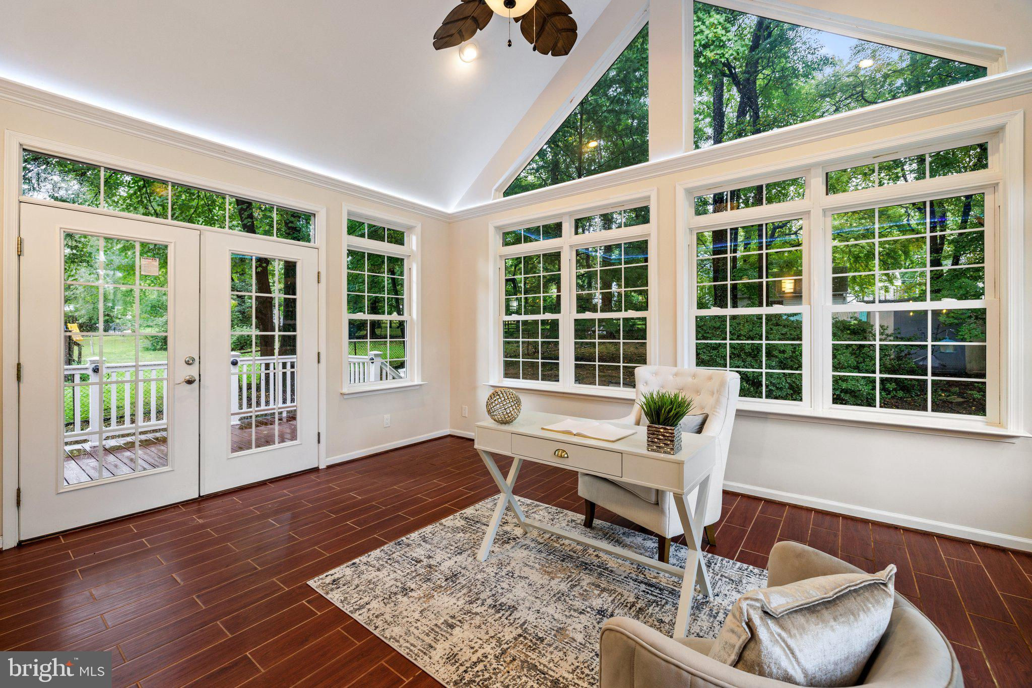 Move in ready custom built home in highly sought after location in downtown Vienna, walkable to Maple Ave and Church Street! Built in 2013, the main entry welcomes you into a foyer with cherry hardwood floors throughout. Passing through the dining room with illuminated tray ceiling and chandelier, you'll find the hallway/mudroom entrance from the garage, half bath, and hall closet. The rest of the main level is open with a massive family room with coffered ceiling focused on a 42" electric fireplace (gas is still available to convert back to gas), a large morning room open to the kitchen with pantry, stainless steel appliances, granite counters, large island with overhang, soft close cabinets, and window overlooking the side yard. In 2019, the owners added a sunroom with vaulted ceiling, tile floors, and lots of windows. The sunroom leads to a deck overlooking the large, flat lot. The garage features overhead storage, a level 2 EV charger with 240v, new garage door and MyQ garage door opener installed in 2024. The upper level features carpet throughout. The primary suite features an illuminated tray ceiling, with a sitting area, two walk in closets, an en-suite bathroom with jetted jacuzzi tub, walk in shower, dual sinks, and a water closet. There's a covered front porch you can access from the primary bedroom as well as the other bedroom in the front of the home. That bedroom features a large walk in closet, and an en-suite bathroom with tub. There are two additional bedrooms each with two closets and en-suite bathrooms. The upper level also enjoys a loft area perfect for hang out or homework space. Enjoy the laundry room and linen closet on the upper level as well. There are 8' ceilings on the upper level and 9' ceilings on the main and basement. The lower level features 2 bedrooms that each has a walk in closet, carpeting, and share a hallway bathroom with a tub/shower - perfect for au pair/in law/guest suite. There's a media room, rec room, full laundry room, and a large storage/mechanical room. There's a door with stairs out to the yard. Additionally the rec room has a full sink with granite counter, upper cabinets, space for a dishwasher, and a vent used for a hot plate for guests. Smart home features like 42 Enphase Solar Panels, whole house water filtration, coax cables in every room, gutter guards, and a long list of other features. Enjoy living in Vienna with town events like the Halloween Parade, Oktoberfest, Chillin on Church, ViVa Vienna, Church Street Stroll, and the Farmer's Market held at the nearby Community Center. This house sits nearby to many restaurants, retail, W&OD trail, Whole Foods, Giant, and several coffee shops.