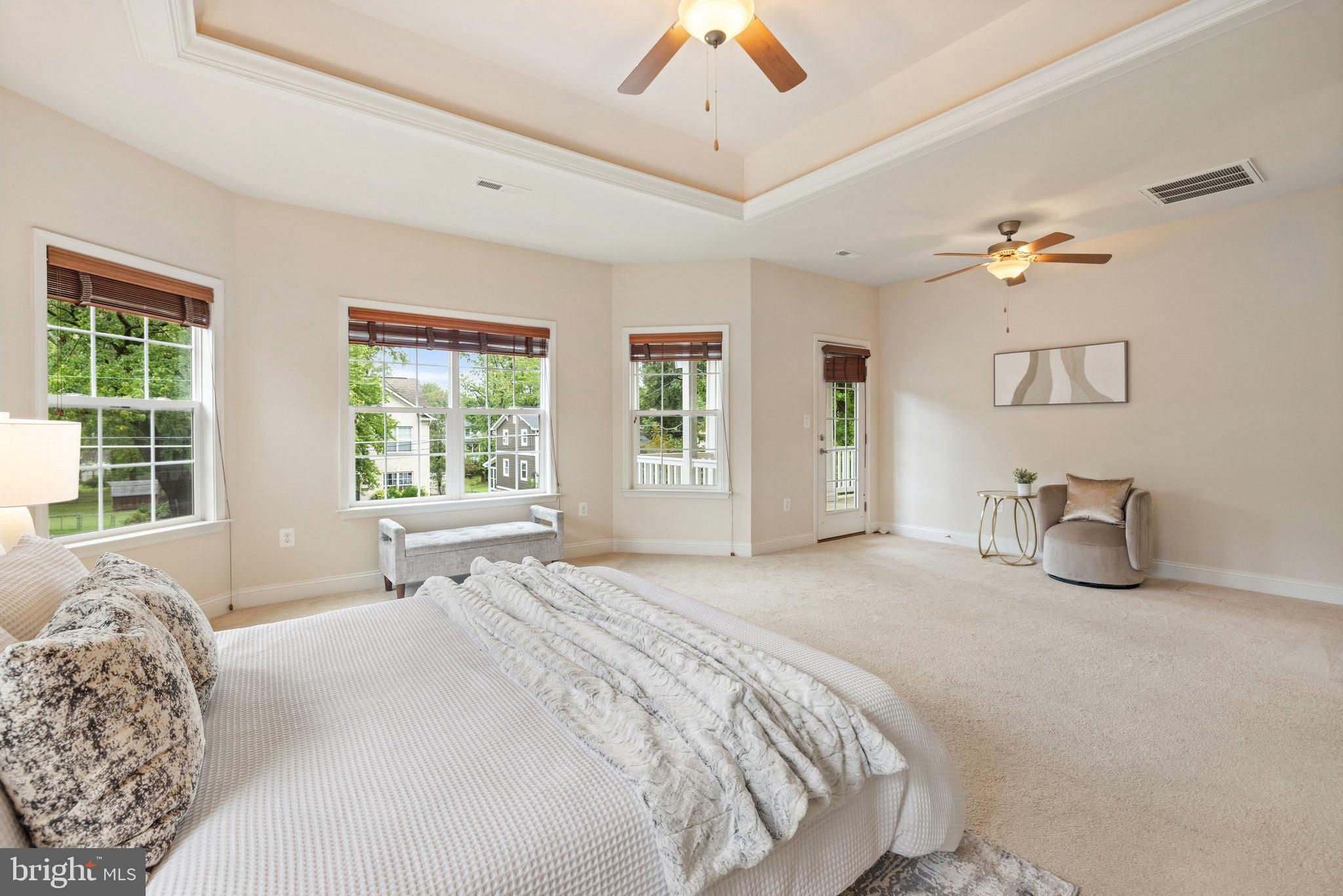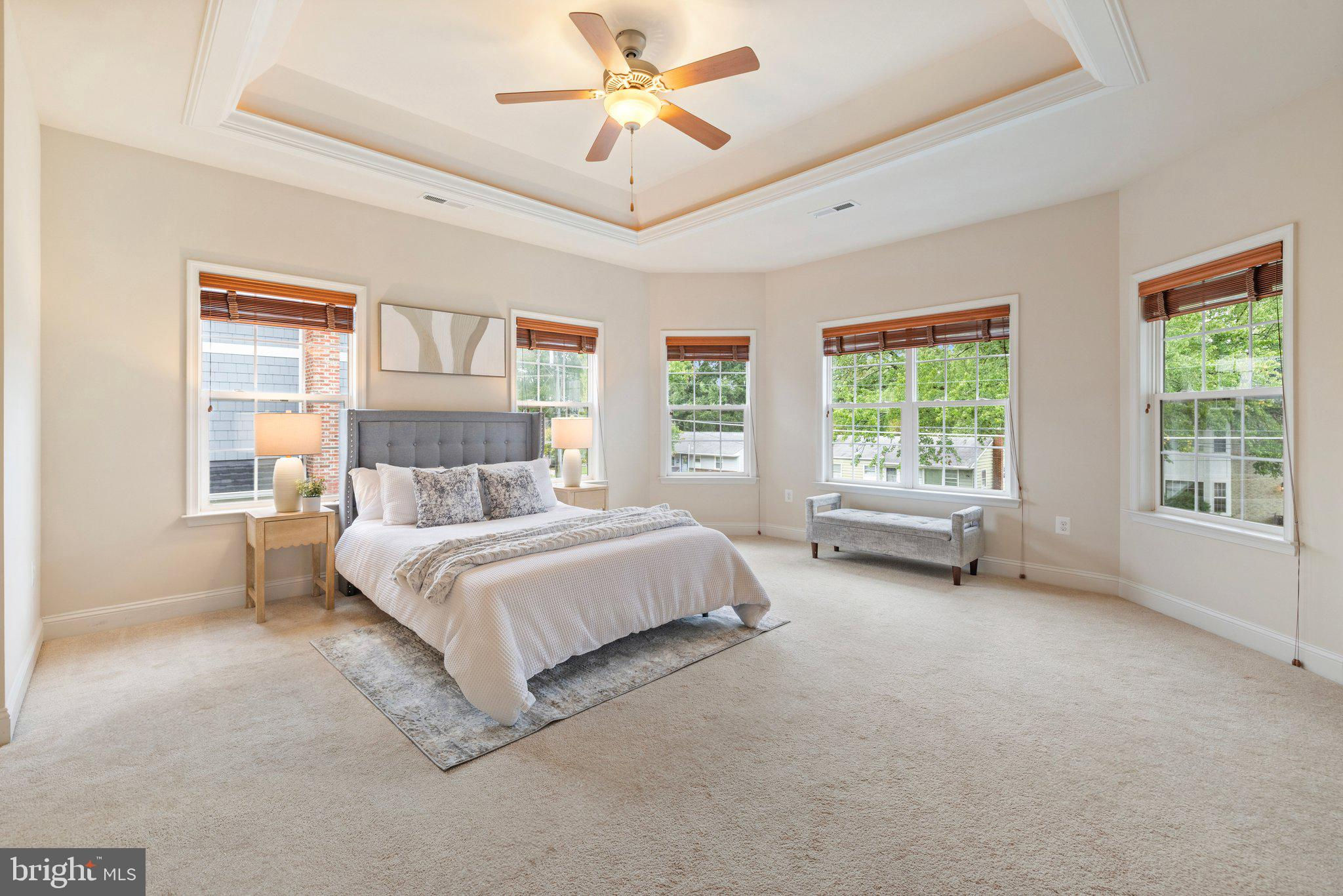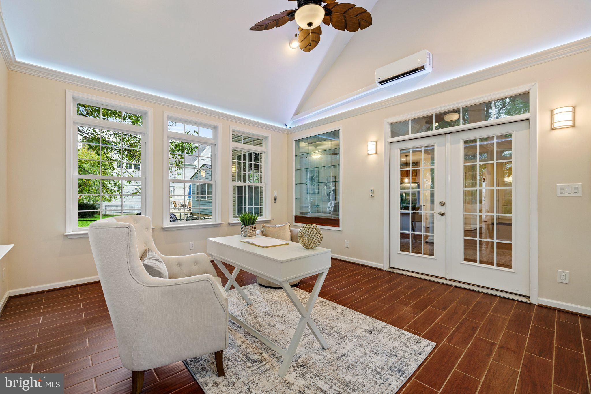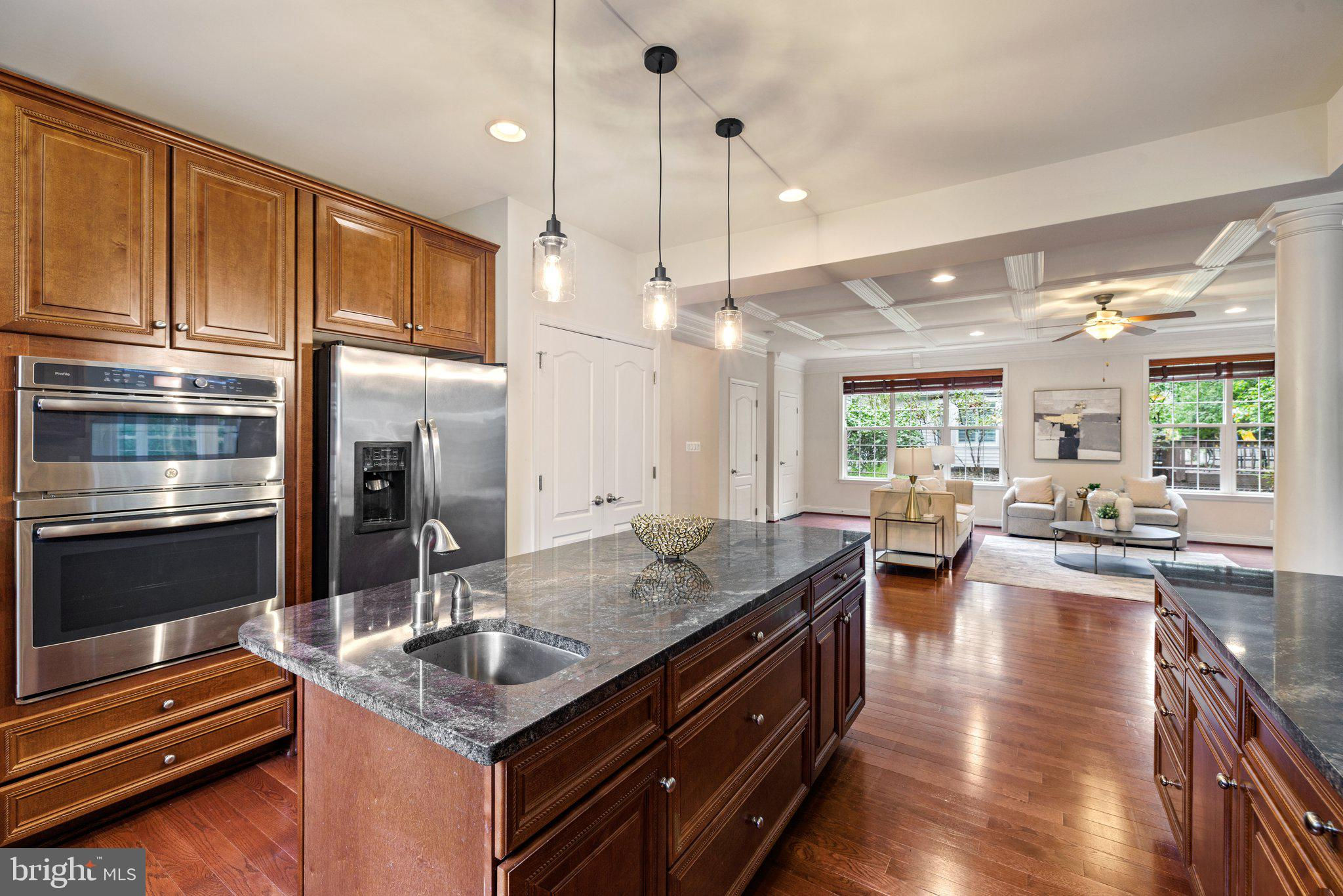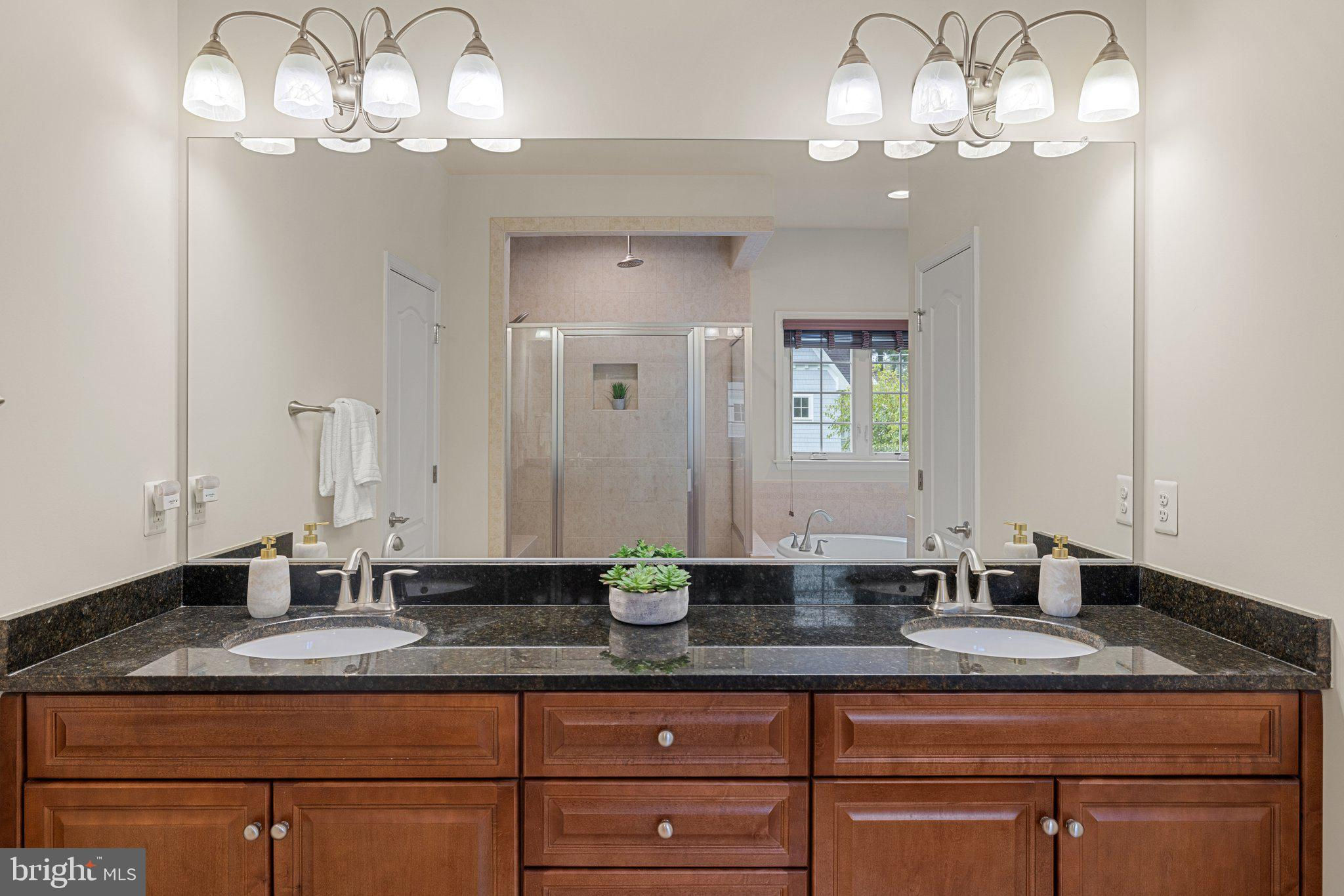 Move in ready custom built home in highly sought after location in downtown Vienna, walkable to Maple Ave and Church Street! Built in 2013, the main entry welcomes you into a foyer with cherry hardwood floors throughout. Passing through the dining room with illuminated tray ceiling and chandelier, you'll find the hallway/mudroom entrance from the garage, half bath, and hall closet. The rest of the main level is open with a massive family room with coffered ceiling focused on a 42" electric fireplace (gas is still available to convert back to gas), a large morning room open to the kitchen with pantry, stainless steel appliances, granite counters, large island with overhang, soft close cabinets, and window overlooking the side yard. In 2019, the owners added a sunroom with vaulted ceiling, tile floors, and lots of windows. The sunroom leads to a deck overlooking the large, flat lot. The garage features overhead storage, a level 2 EV charger with 240v, new garage door and MyQ garage door opener installed in 2024. The upper level features carpet throughout. The primary suite features an illuminated tray ceiling, with a sitting area, two walk in closets, an en-suite bathroom with jetted jacuzzi tub, walk in shower, dual sinks, and a water closet. There's a covered front porch you can access from the primary bedroom as well as the other bedroom in the front of the home. That bedroom features a large walk in closet, and an en-suite bathroom with tub. There are two additional bedrooms each with two closets and en-suite bathrooms. The upper level also enjoys a loft area perfect for hang out or homework space. Enjoy the laundry room and linen closet on the upper level as well. There are 8' ceilings on the upper level and 9' ceilings on the main and basement. The lower level features 2 bedrooms that each has a walk in closet, carpeting, and share a hallway bathroom with a tub/shower - perfect for au pair/in law/guest suite. There's a media room, rec room, full laundry room, and a large storage/mechanical room. There's a door with stairs out to the yard. Additionally the rec room has a full sink with granite counter, upper cabinets, space for a dishwasher, and a vent used for a hot plate for guests. Smart home features like 42 Enphase Solar Panels, whole house water filtration, coax cables in every room, gutter guards, and a long list of other features. Enjoy living in Vienna with town events like the Halloween Parade, Oktoberfest, Chillin on Church, ViVa Vienna, Church Street Stroll, and the Farmer's Market held at the nearby Community Center. This house sits nearby to many restaurants, retail, W&OD trail, Whole Foods, Giant, and several coffee shops.