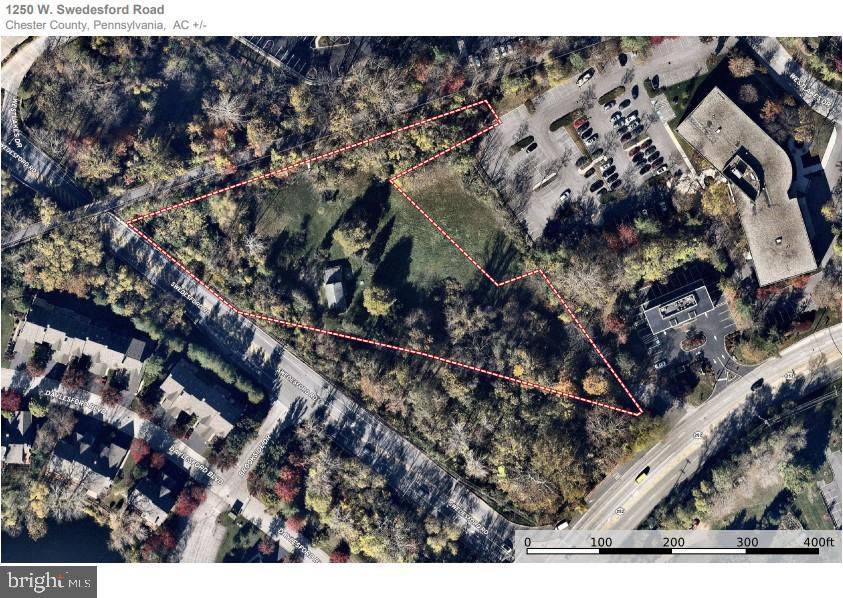 Generous sized 2.4 acres of commercial or residential development land located at a hard intersection, in close proximity to Route 202 in Berwyn, PA. Zoning permits various uses including retail, office, hotel and multi-family. Available property is located in a rapidly growing area with a high job concentration with an average household income for the region is $200,000.00 a year, which is double the national average. Hotel and retail concept plan on file., or possible (10) $1M+ Condos project with Commercial. This highly visible corner property comes with 917 feet of road frontage on Swedesford Road making it an ideal property for retailors and hotels. This property backs the the Chester Valley Trail and has traffic counts at 19,629 VPD in both directions. Corner parcel also available. Please see listing agent for details.