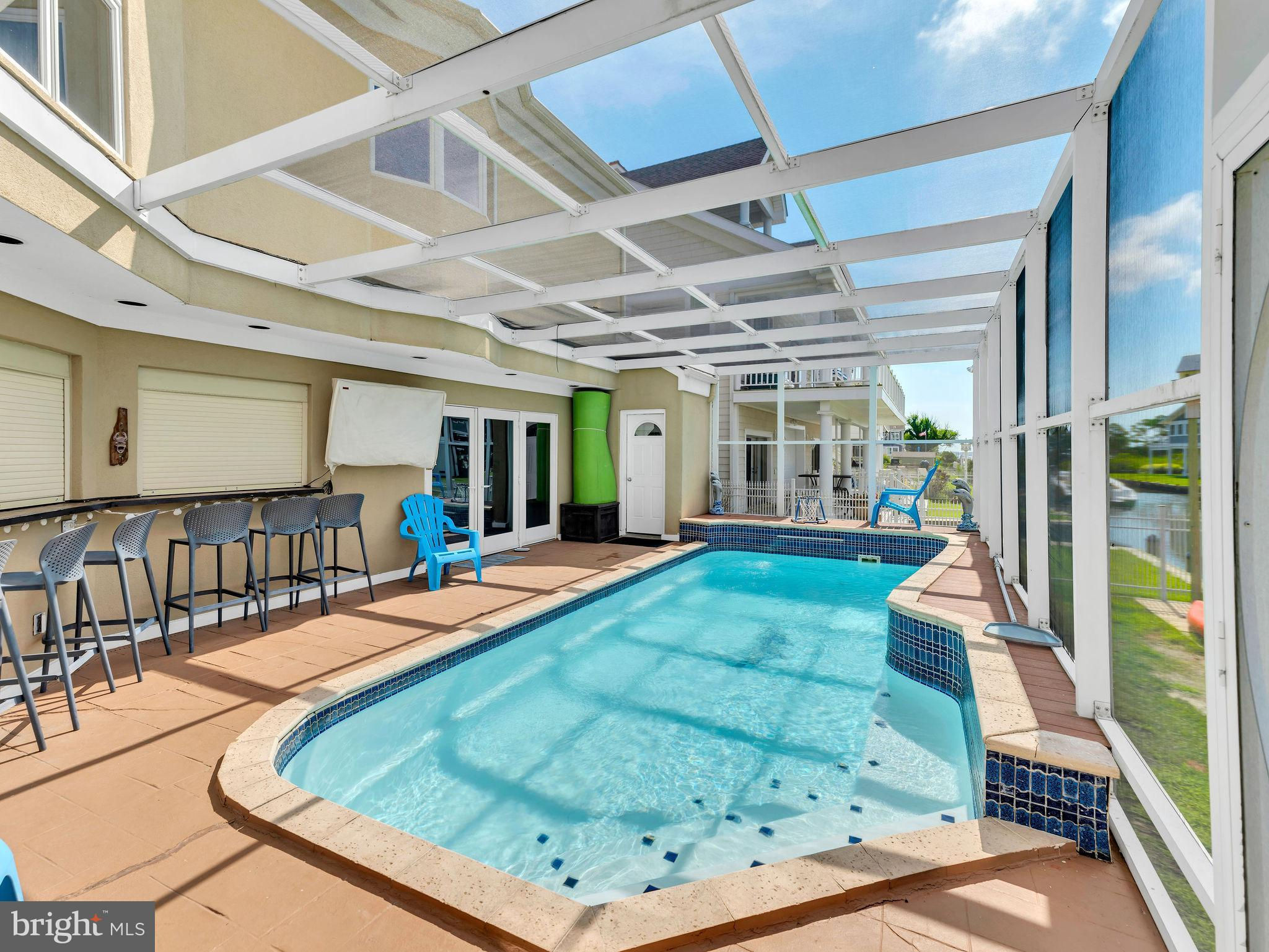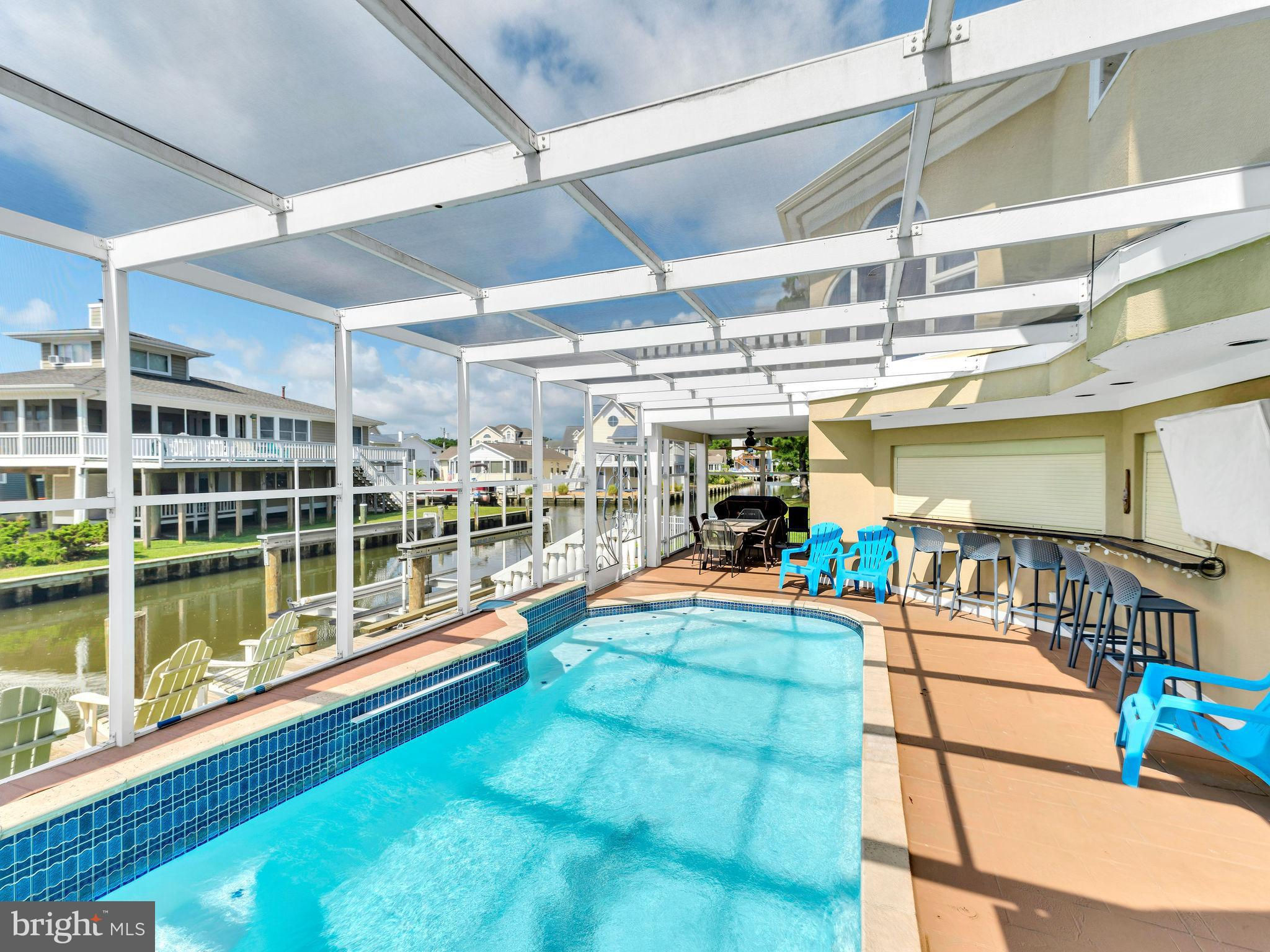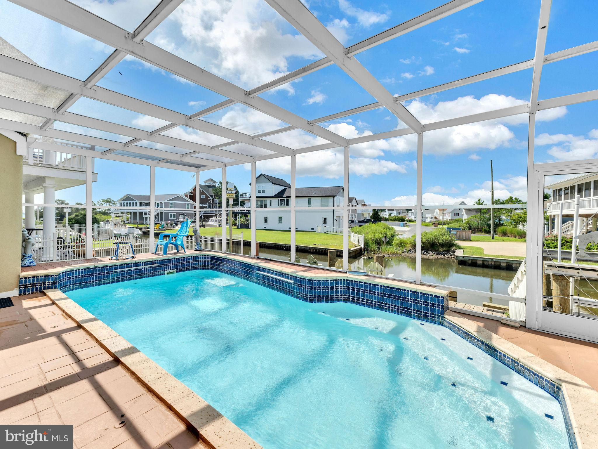 Welcome to the Best of West Ocean City – Where Coastal Elegance Meets Waterfront Luxury This exceptional south-facing waterfront residence offers panoramic, unobstructed views of the Ocean City skyline, blending refined coastal design with high-end amenities for a truly one-of-a-kind lifestyle. With 60± feet of bulkhead, a brand-new seawall, and a private boat lift just steps from your outdoor living area, this is a water lover’s paradise designed for effortless enjoyment and entertaining. Step into resort-style living with a fully screened, Florida-style heated pool oasis featuring a tranquil waterfall, outdoor bar/kitchenette, beverage fridge, ice maker, sink and microwave, and bar seating. Whether you’re hosting sunset cocktails or al fresco dinners under the stars, this outdoor retreat brings relaxation and sophistication together beautifully. Inside, the home offers a thoughtfully designed layout with multiple living zones. The first floor includes a poolside family room with its own washer and dryer, a private guest suite, and two additional serene sleeping retreats—ideal as guest bedrooms, reading nooks, home office, home gym or flex spaces for extended family. Upstairs, the open-concept living area features a dramatic great room, chef’s kitchen with gas cooktop and premium appliances, and a spacious dining area—perfectly designed for entertaining. The luxurious primary suite is a private sanctuary, offering a electric fireplace, whirlpool spa bath, walk-in closet, and a private balcony overlooking the peaceful canal. Two additional bedrooms, plus the iconic “Whiskey Room” with its cozy fireplace and sweeping bay views, complete the second level. Additional highlights include an elevator, oversized garage, city sewer, private well with water softener, and recent upgrades including a new roof, updated HVAC system, and an owned propane tank. From luxury finishes to resort-style outdoor living, this extraordinary property delivers the ultimate in coastal living. Don’t miss your chance to own a true slice of paradise in one of Ocean City’s most coveted waterfront communities.