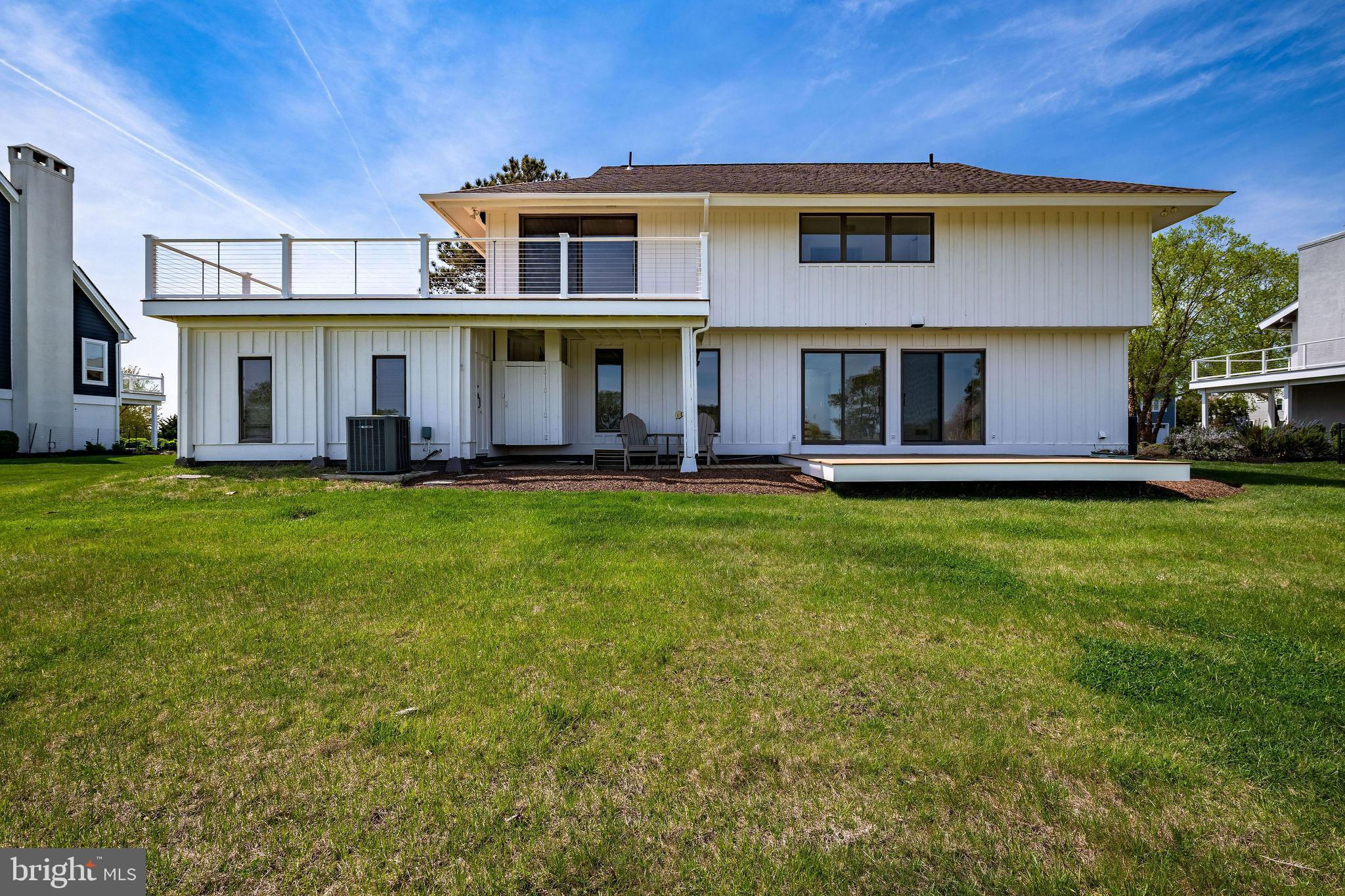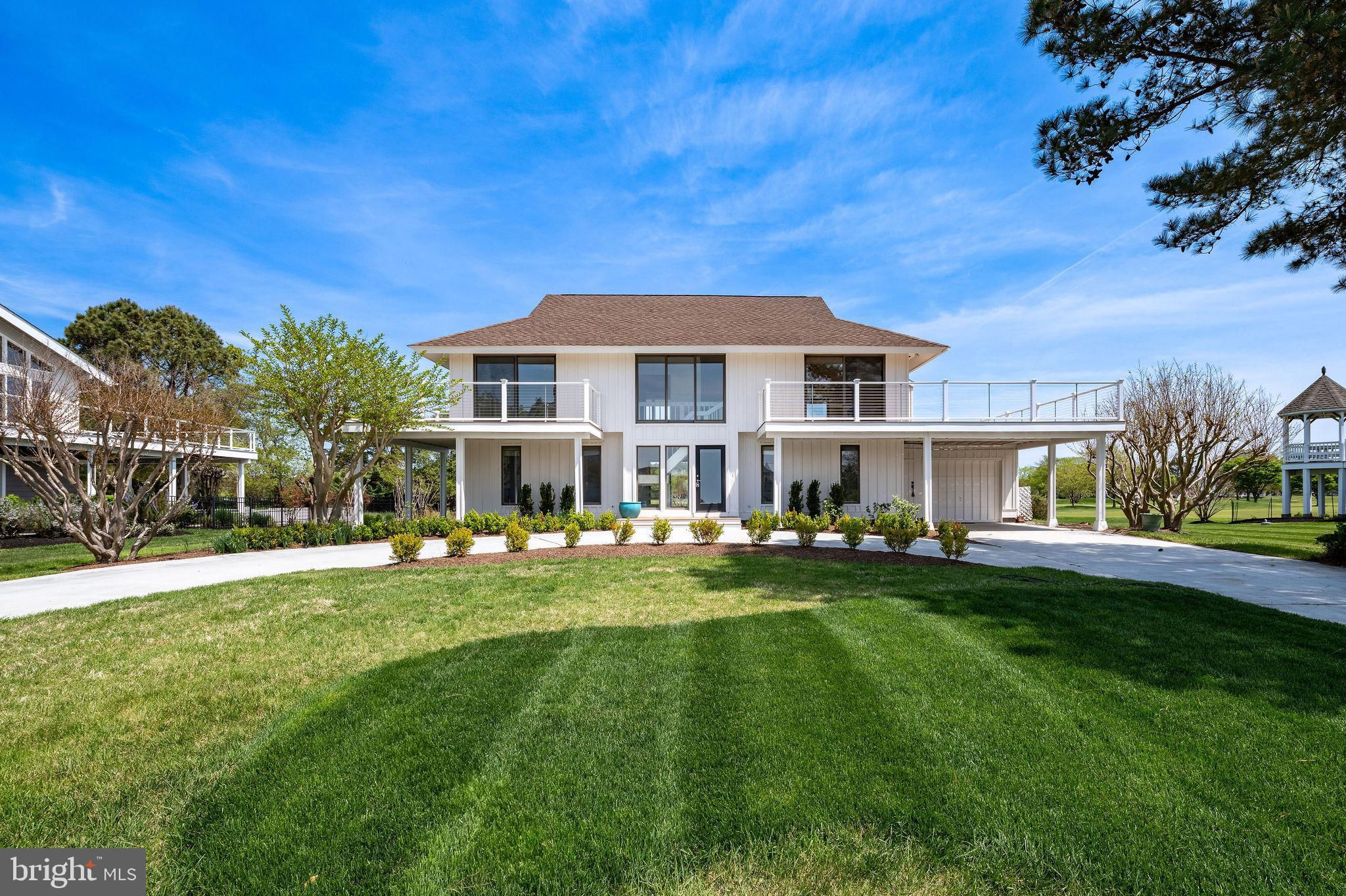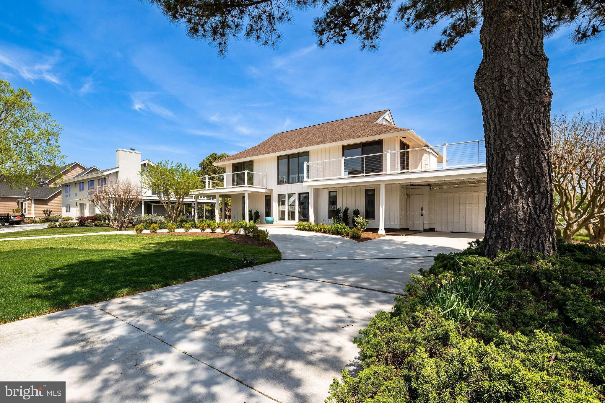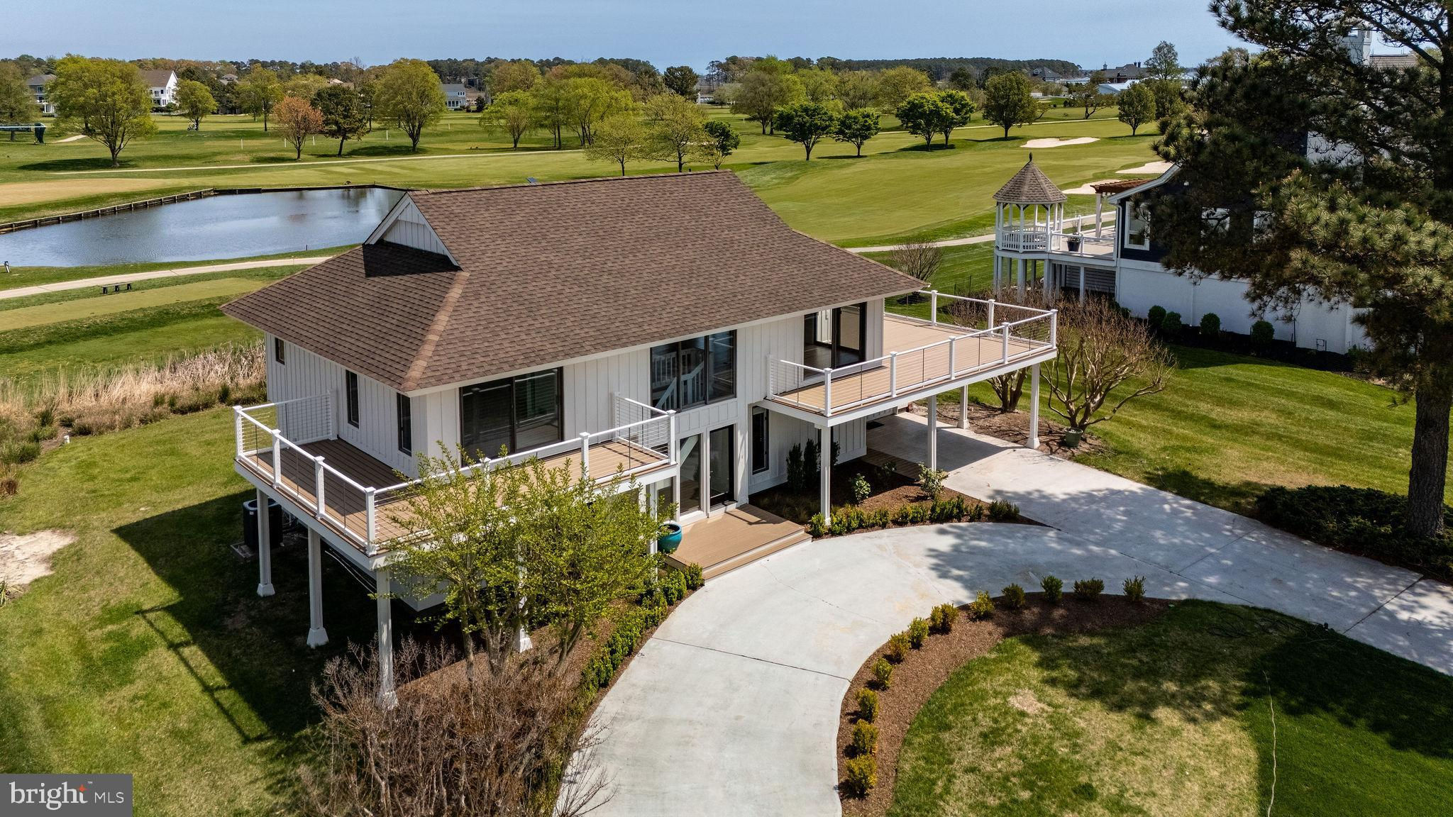 COASTAL STYLE AND BREATHTAKING VIEWS! Blending the perfect balance of coastal style and breathtaking views, this luxury residence is among the finest in the prestigious Rehoboth Beach Yacht and Country Club community. This exceptional home was thoughtfully designed to take full advantage of the stunning panoramic views overlooking the Rehoboth Bay and RBYCC championship 18-hole golf course. Offering two levels of robust living space, this residence offers endless lifestyle options making it simply a spectacular place for family and friends to gather. Inside well crafted, airy, light-filled spaces with simple classic lines inspire coastal sensibility at its finest. From its privileged position on the second level, the great room is designed with tall Anderson windows and sliders bathes the space in natural light and bay breezes, offering an invitation to meander outside for glorious sunrise or sunsets views on an new expansive wrap-around deck. Enjoy an open floor plan that flows seamlessly into the gourmet kitchen featuring crisp-white custom cabinetry complemented by quartz counters and backsplash, suite of stainless-steel appliances, highlighted by feature and under cabinet lighting. Adjacent to the kitchen is the breakfast-nook, the perfect spot to catch a panoramic sunrise over the golf course and pond. Retreat, rejuvenate, and rest in the luxurious second level primary bedroom suite appointed with a generous walk-in closet with custom built-ins, and a private wrap-around balcony. The ensuite offers a spacious, spa-like bath with dual sink vanity and make-up area inset, glass stall shower, and private soaking tub and water closet. The second level floor plan also includes the perfect half bath. On the lower level, a flexible living space emerges offering another entertaining and gathering space, showcasing more sweeping panoramic views, with direct access to the outdoor living space. Expansive glass sliders open to a multi-level deck and patio space, framed in a lush landscape of mature raspberry dazzle crape myrtles, fragrant magnolias, tall grasses, and seasonal blooming perennials, it’s the perfect outdoor living experience. Spend your evening watching golfers’ tee-off on the 18th while you enjoy a glass of wine, all from the vantage point of this backyard oasis. This level also offers two bedrooms, each with full ensuite, and large-scaled closets complete with custom built-ins, a fourth bedroom or office, a laundry room, and interior access to the garage, outfitted with additional custom storage, and workbench. Recent updates include 2nd Fl. HVAC and water heater (2022), fresh paint (2025), new gas fireplace (2025), new flooring and carpet (2025), and a new composite deck and railings (2025). The ultimate opportunity to create your own coastal retreat awaits, bring your dreams and ideas, and start living your best life at the beach. Come home to comfort, luxury and resort-style living at its finest. Being only 6 homes from Rehoboth Country Club makes it within walking distance.