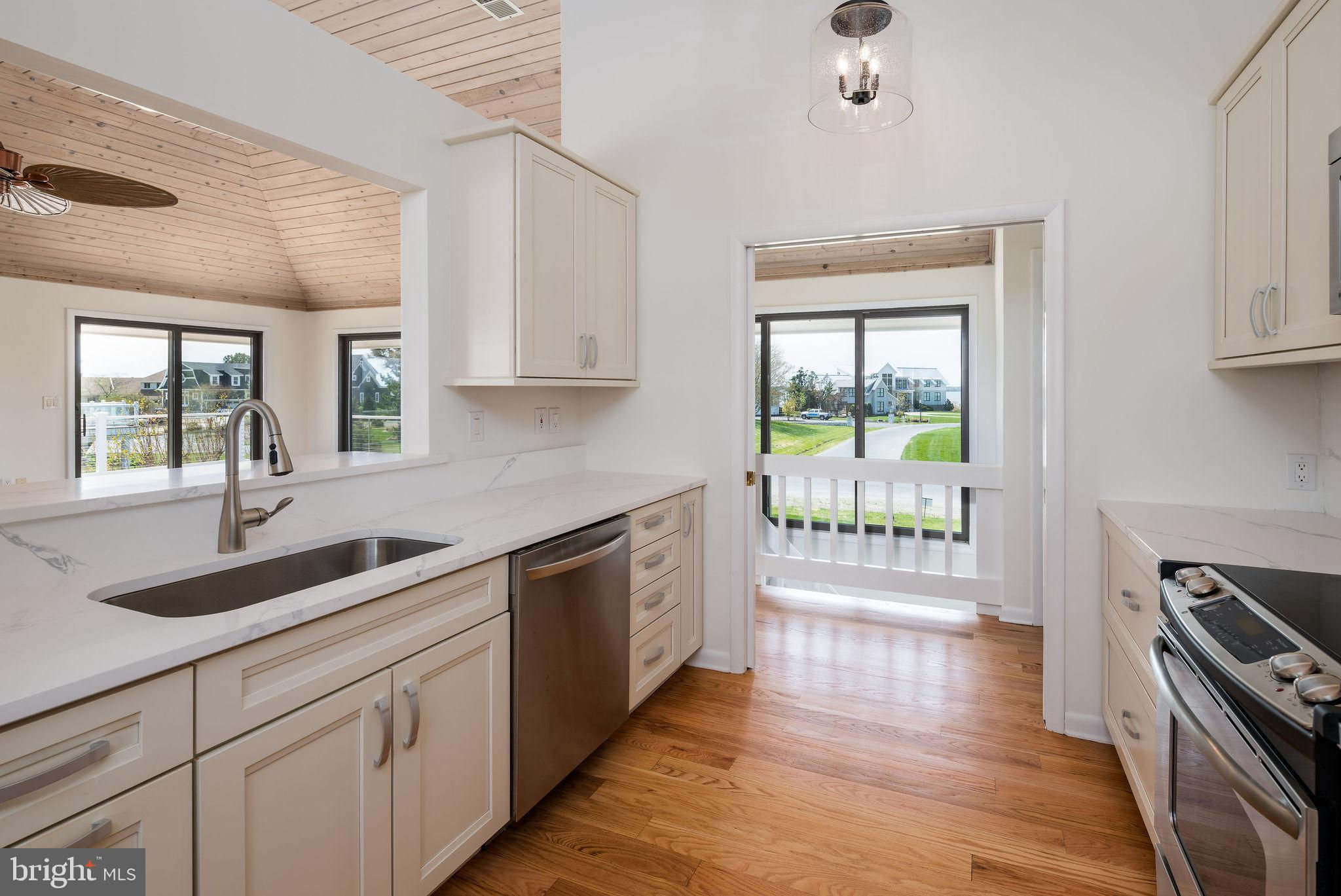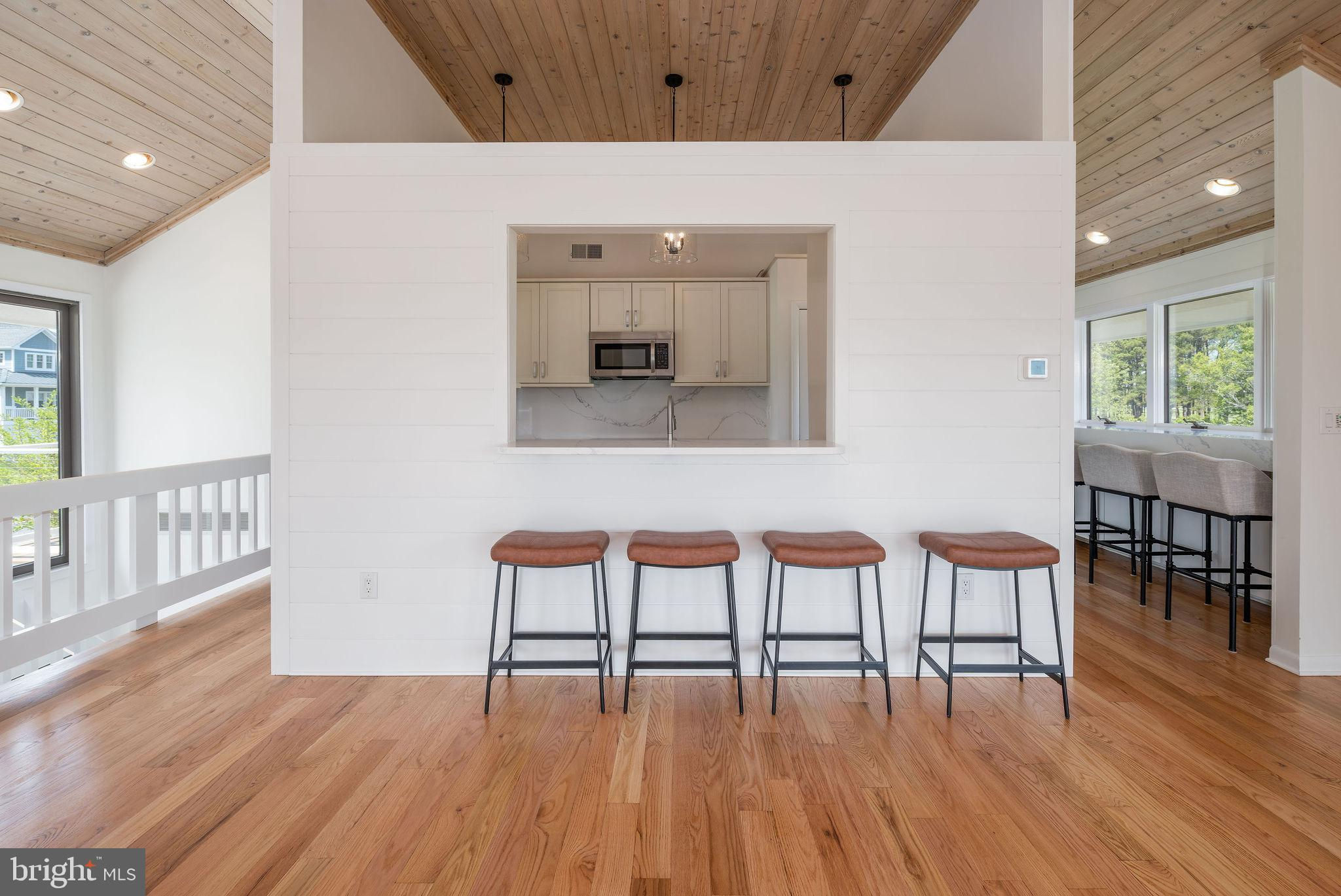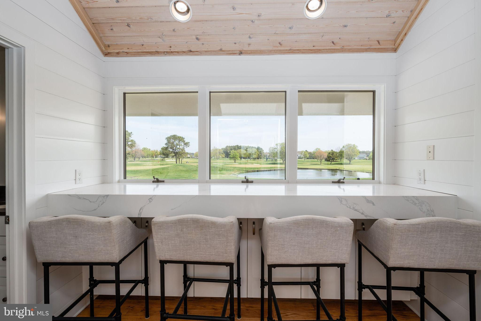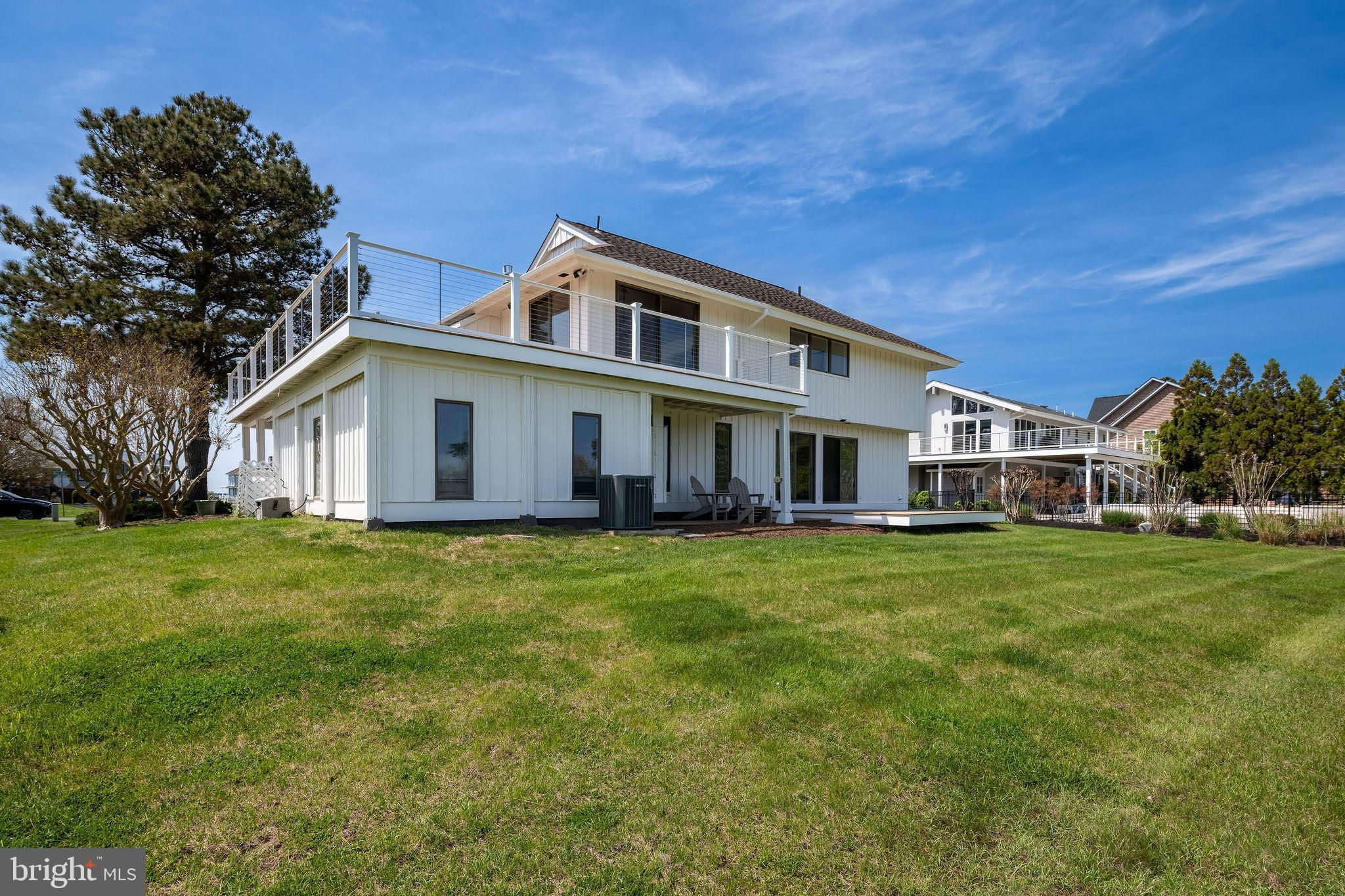 COASTAL STYLE AND BREATHTAKING VIEWS! Blending the perfect balance of coastal style and breathtaking views, this luxury residence is among the finest in the prestigious Rehoboth Beach Yacht and Country Club community. This exceptional home was thoughtfully designed to take full advantage of the stunning panoramic views overlooking the Rehoboth Bay and RBYCC championship 18-hole golf course. Offering two levels of robust living space, this residence offers endless lifestyle options making it simply a spectacular place for family and friends to gather. Inside well crafted, airy, light-filled spaces with simple classic lines inspire coastal sensibility at its finest. From its privileged position on the second level, the great room is designed with tall Anderson windows and sliders bathes the space in natural light and bay breezes, offering an invitation to meander outside for glorious sunrise or sunsets views on an new expansive wrap-around deck. Enjoy an open floor plan that flows seamlessly into the gourmet kitchen featuring crisp-white custom cabinetry complemented by quartz counters and backsplash, suite of stainless-steel appliances, highlighted by feature and under cabinet lighting. Adjacent to the kitchen is the breakfast-nook, the perfect spot to catch a panoramic sunrise over the golf course and pond. Retreat, rejuvenate, and rest in the luxurious second level primary bedroom suite appointed with a generous walk-in closet with custom built-ins, and a private wrap-around balcony. The ensuite offers a spacious, spa-like bath with dual sink vanity and make-up area inset, glass stall shower, and private soaking tub and water closet. The second level floor plan also includes the perfect half bath. On the lower level, a flexible living space emerges offering another entertaining and gathering space, showcasing more sweeping panoramic views, with direct access to the outdoor living space. Expansive glass sliders open to a multi-level deck and patio space, framed in a lush landscape of mature raspberry dazzle crape myrtles, fragrant magnolias, tall grasses, and seasonal blooming perennials, it’s the perfect outdoor living experience. Spend your evening watching golfers’ tee-off on the 18th while you enjoy a glass of wine, all from the vantage point of this backyard oasis. This level also offers two bedrooms, each with full ensuite, and large-scaled closets complete with custom built-ins, a fourth bedroom or office, a laundry room, and interior access to the garage, outfitted with additional custom storage, and workbench. Recent updates include 2nd Fl. HVAC and water heater (2022), fresh paint (2025), new gas fireplace (2025), new flooring and carpet (2025), and a new composite deck and railings (2025). The ultimate opportunity to create your own coastal retreat awaits, bring your dreams and ideas, and start living your best life at the beach. Come home to comfort, luxury and resort-style living at its finest. Being only 6 homes from Rehoboth Country Club makes it within walking distance.