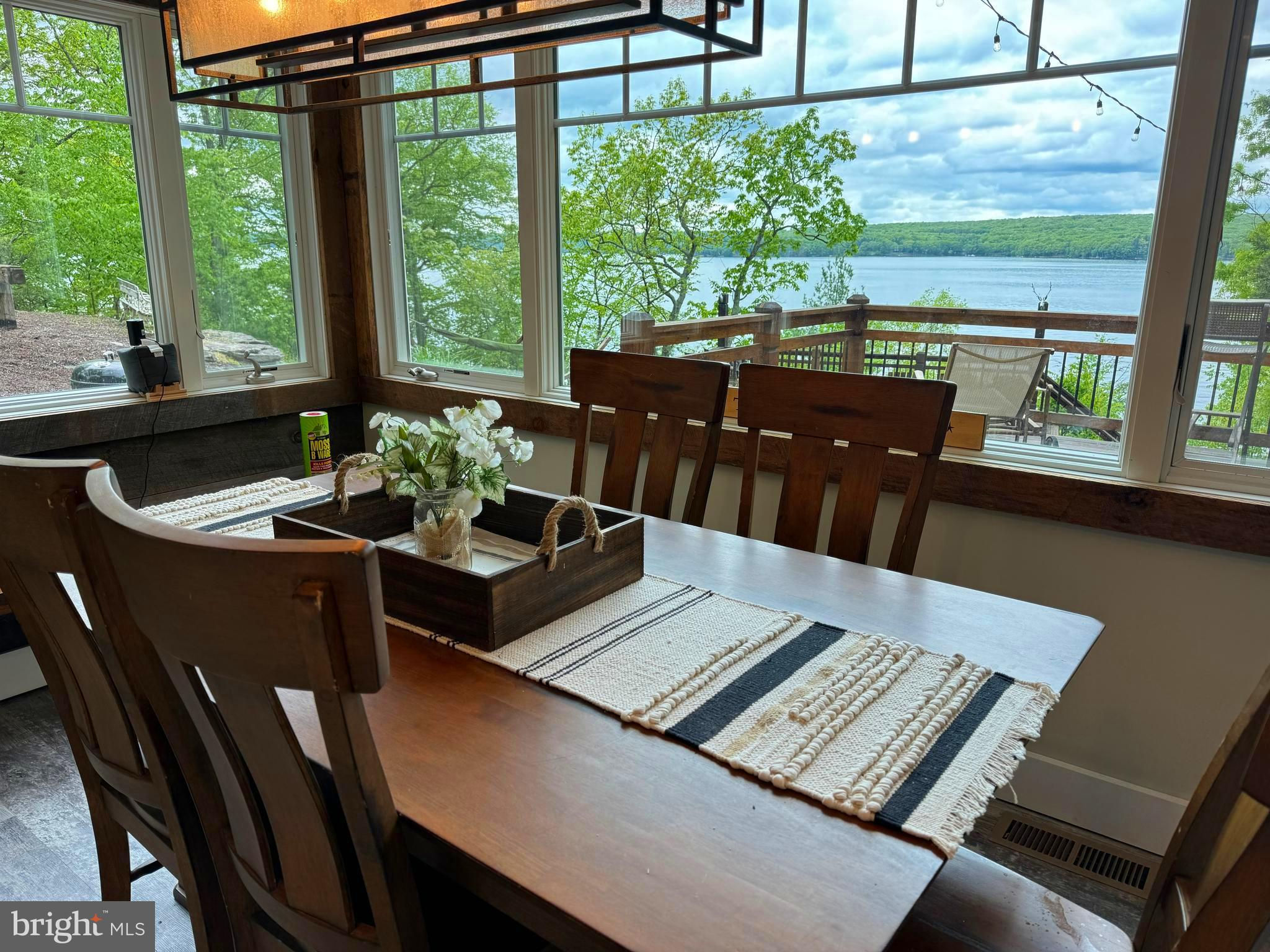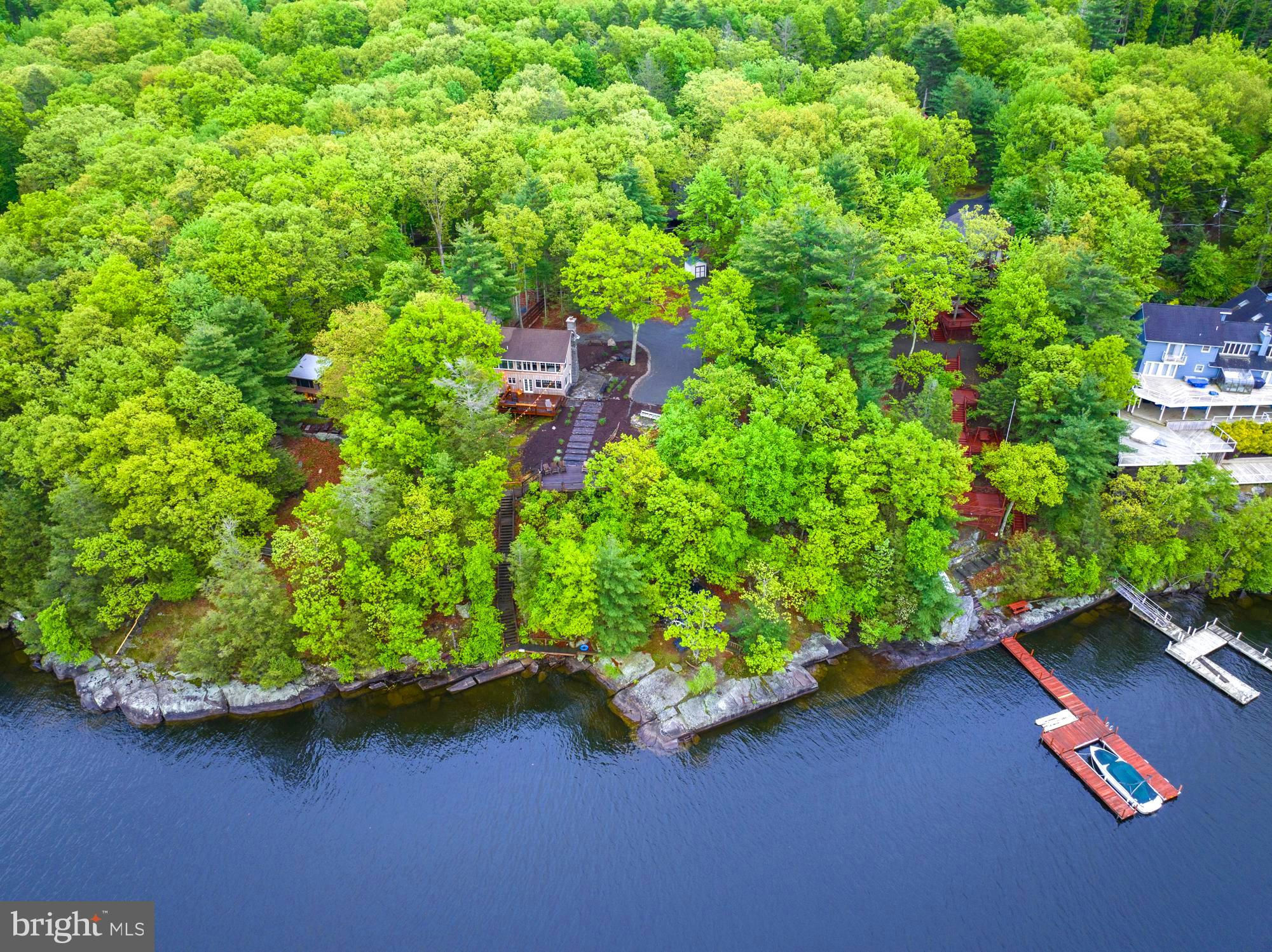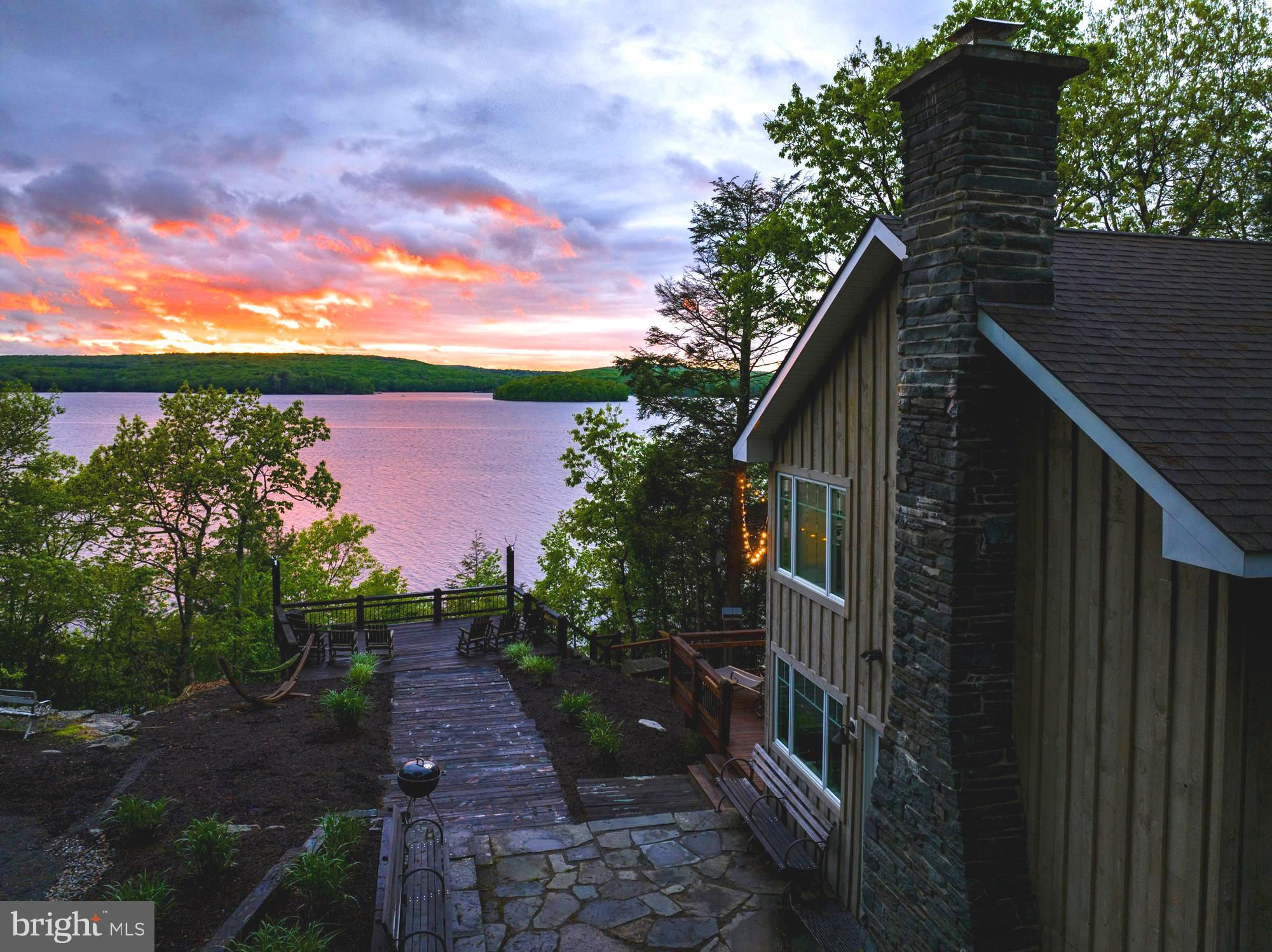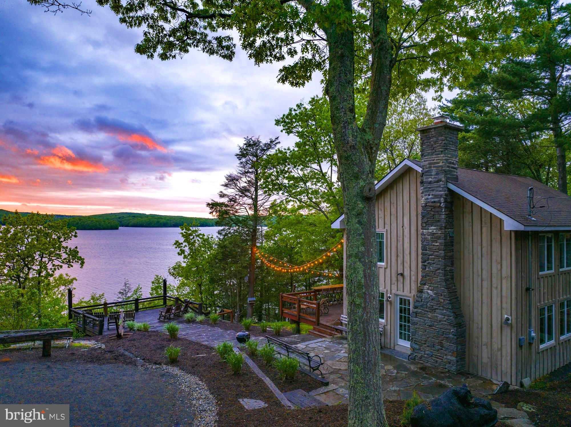 You've probably heard the term "million-dollar view" before, right? Well, this is a 2-million-dollar view. This stunning waterfront compound on over an acre with 88 ft of lake frontage on Lake Wallenpaupack features three residential cabins (known in the area as Gumble Cottages) on the property for privacy amongst the family for their spectacular weekend getaway! Lake Wallenpaupack is the second largest lake in PA which has 52 miles of shoreline, with a length of 13 miles and a maximum depth of 60 feet, and this property is on the deepest part of the lake with views of the sunset. The 180-degree view of the lake from the vantage point of the private patio is a spectacle, especially at dusk with one word describing the experience as "magical", comparable to watching the fireworks at Disney World. This property has a lot of history with the prior owner being Manfred Bass, the creator/designer of the Macy's Day Parade floats in NYC. The recently renovated main cabin has been redone down to the studs and the raised roof with wagon wheel beams is simply beautiful. The main cabin hosts an open floor plan with windows which provide wonderful views of the lake, and its deck is the perfect place to kick back and relax. Steel studs have been inserted in the lake which can be used to install a private dock up to 50 ft long, water trampoline, floating dock, mooring, etc. The middle and front Gumble Cottages are both equipped with an outdoor shower, Wi-Fi, separate utilities, full electric service, and have plenty of room for personalization. Tafton is located in Pike County which has significantly lower taxes in comparison to the other counties surrounding the lake. The location is ideal as it's close to well know area restaurants, brewery, wineries, stores, waterfalls, etc. Schedule a showing today!