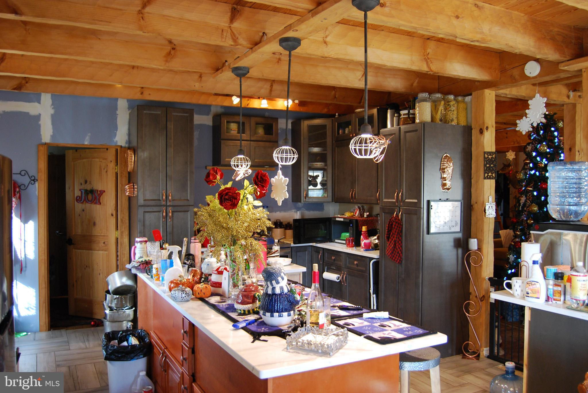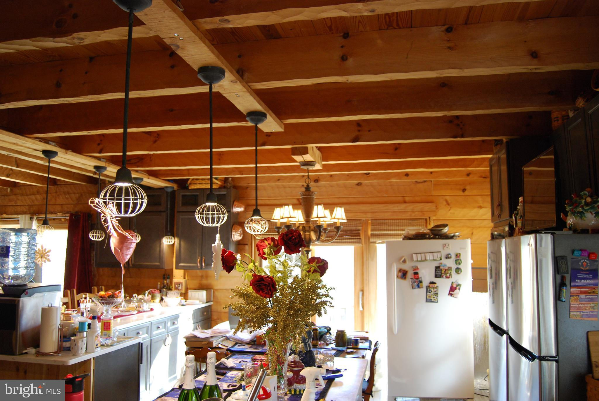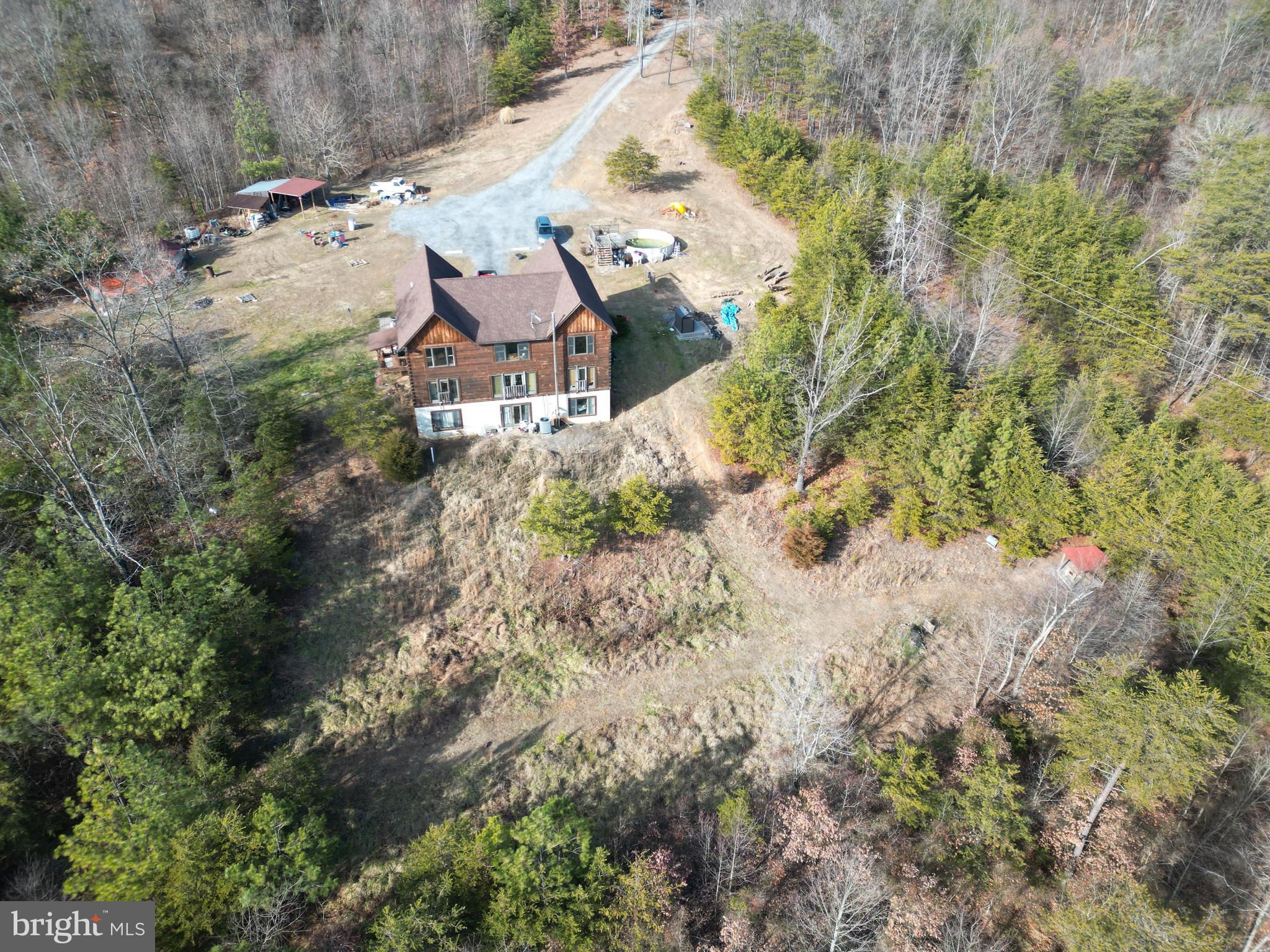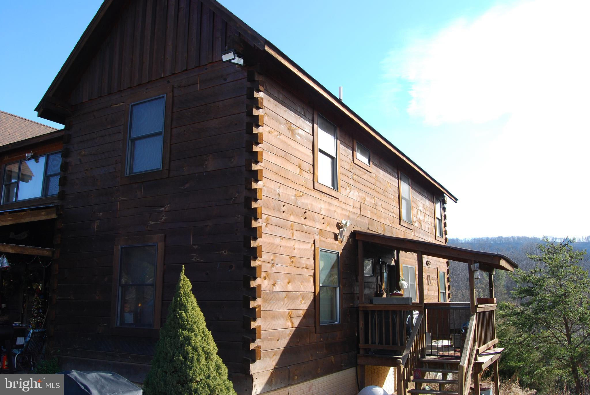 Step into a world of rustic elegance with this custom-built cabin, a masterpiece of hand-hued logs that weaves nature seamlessly into the fabric of your home. This large custom cabin, boasting an open floor plan, embraces the warmth and character of post-and-beam construction throughout all three floors. As you enter, a grand open living room captures your attention, providing a welcoming space that extends your gaze into the second floor, creating an ambiance of spaciousness and connection. With the potential for finishing both the basement and upstairs, you have the unique opportunity to tailor this cabin to your vision, adding your personal touch to every corner. Experience the comfort of radiant heat, a luxurious touch that permeates the basement floor, offering cozy warmth throughout. Adding to the eco-friendly charm, an outdoor woodstove not only supplies heat to the hot water heater but also fuels the radiant heat system, ensuring your home is efficiently warmed by the beauty of natural resources. Surrounding this cabin is a vast expanse of land, approximately 65 acres that span from the ridge tops to the creek below, creating a haven of privacy and natural beauty. Over three quarters of a mile of this pristine landscape offers you the luxury of a private retreat, where every sunrise and sunset unfolds in breathtaking beauty. Nature enthusiasts and hunters will be delighted by the abundant wildlife that graces this property. Deer and turkeys roam freely, creating a dynamic ecosystem that brings the spirit of the outdoors to your doorstep. In addition to the natural splendor, this property is currently enrolled in forestry management, providing not only a connection to nature but also valuable tax benefits. This thoughtful consideration adds both ecological and economic value to your investment. For those who love to host, or for those seeking additional accommodations, two new power panels are in place, ready to welcome campers or RVs. This thoughtful addition opens the door to endless possibilities for guests or vacationing in your own backyard. Don't miss this chance to own not just a cabin but a lifestyle, where the beauty of hand-hued logs meets the grandeur of natural landscapes. Create a legacy of comfort, warmth, and connection to nature in this magnificent retreat. Schedule your showing today and experience the enchantment for yourself. Option to purchase just 21 acres with home and will be subdivided out. Property sold AS-IS and all inspections will be for information purposes only.