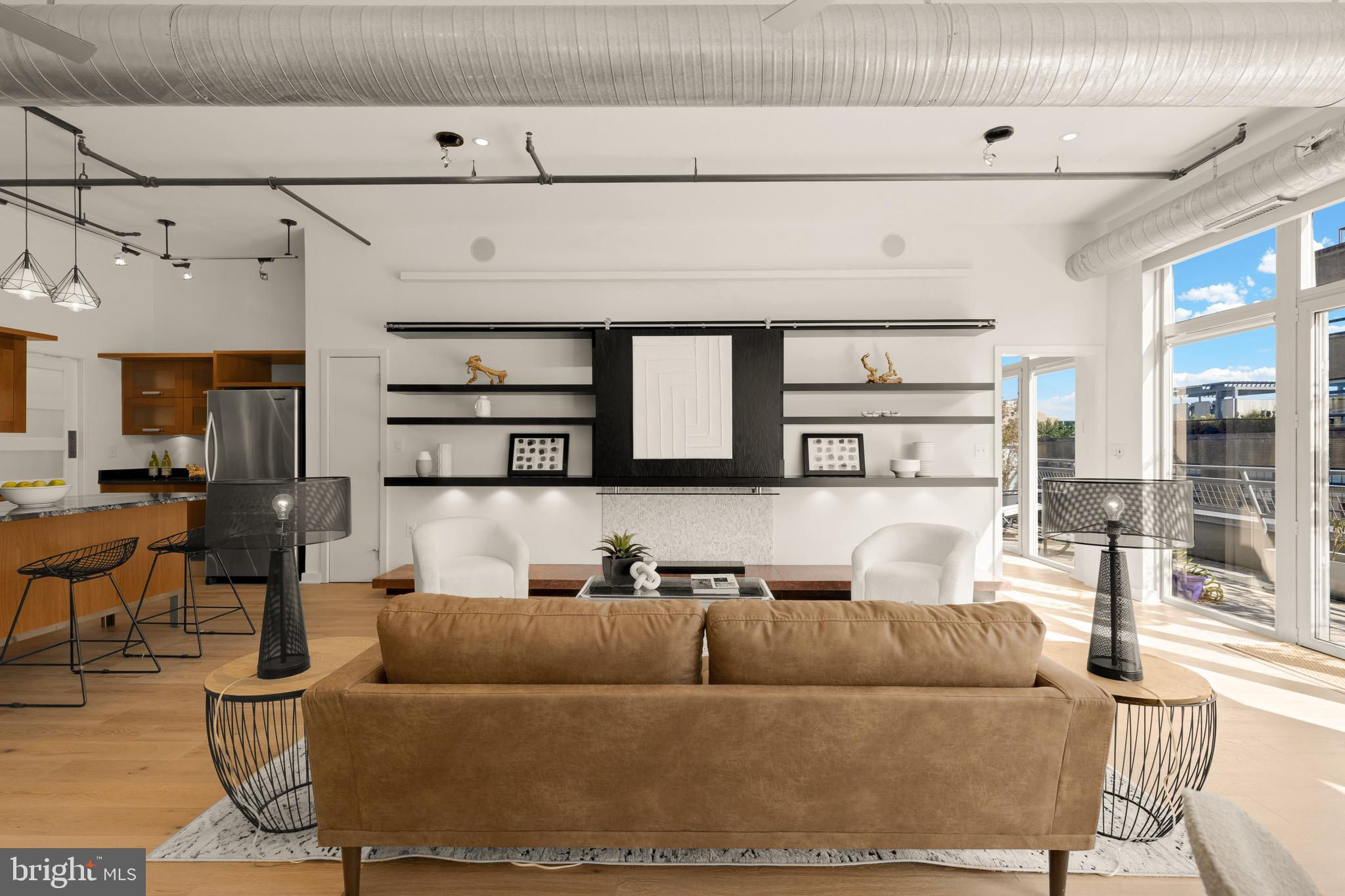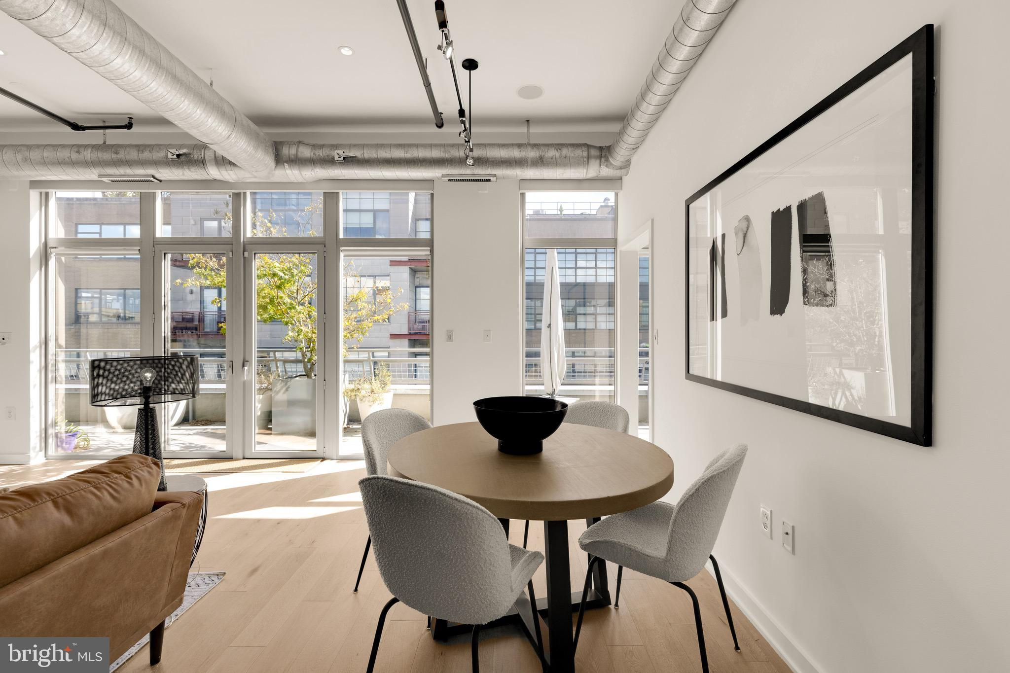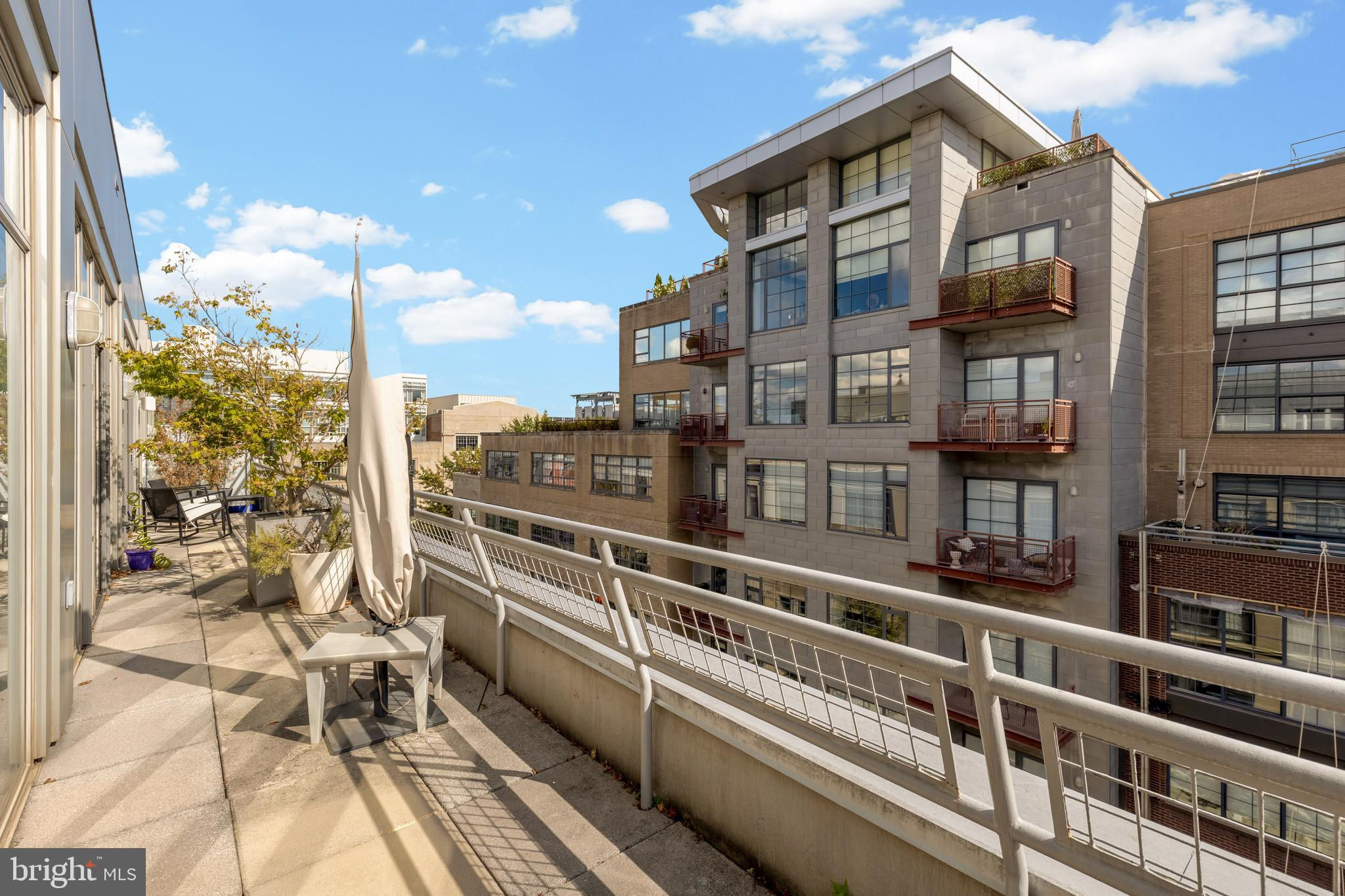 Perfectly positioned along sought-after Church Street, this rare offering at Lofts 14 is the largest available one-level condo in Logan Circle. Spanning 1,800 square feet, this contemporary three-bedroom, two-and-a-half-bath home pairs expansive open living with modern loft-inspired design. The open-concept living and dining area features soaring ceilings, wide-plank hardwood floors, and floor-to-ceiling windows overlooking the vibrant Church Street corridor. The sleek, modern kitchen is anchored by an oversized island, premium stainless-steel appliances, and ample cabinetry—ideal for both entertaining and everyday living. The defining element of this home is its private terrace, stretching the full length of the residence to create effortless indoor-outdoor flow. A flexible den or third bedroom sits just off the main entry, while both full bedrooms include en-suite baths and generous closet storage. The primary suite enjoys direct access to the terrace, offering a private retreat in the heart of the city. Additional conveniences include a powder room for guests, a spacious laundry room with side-by-side washer and dryer, and one assigned garage parking space. Set within one of Logan Circle’s most iconic buildings and just steps from 14th Street’s acclaimed restaurants, cafés, and boutiques, Residence 523 at Lofts 14 delivers an exceptional combination of scale, style, and location—truly a rare opportunity in one of DC’s most vibrant neighborhoods.