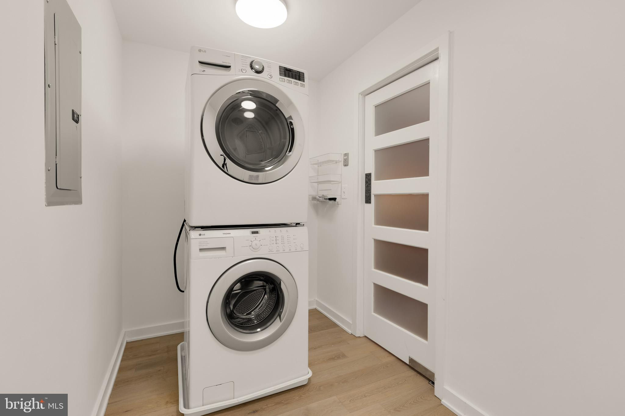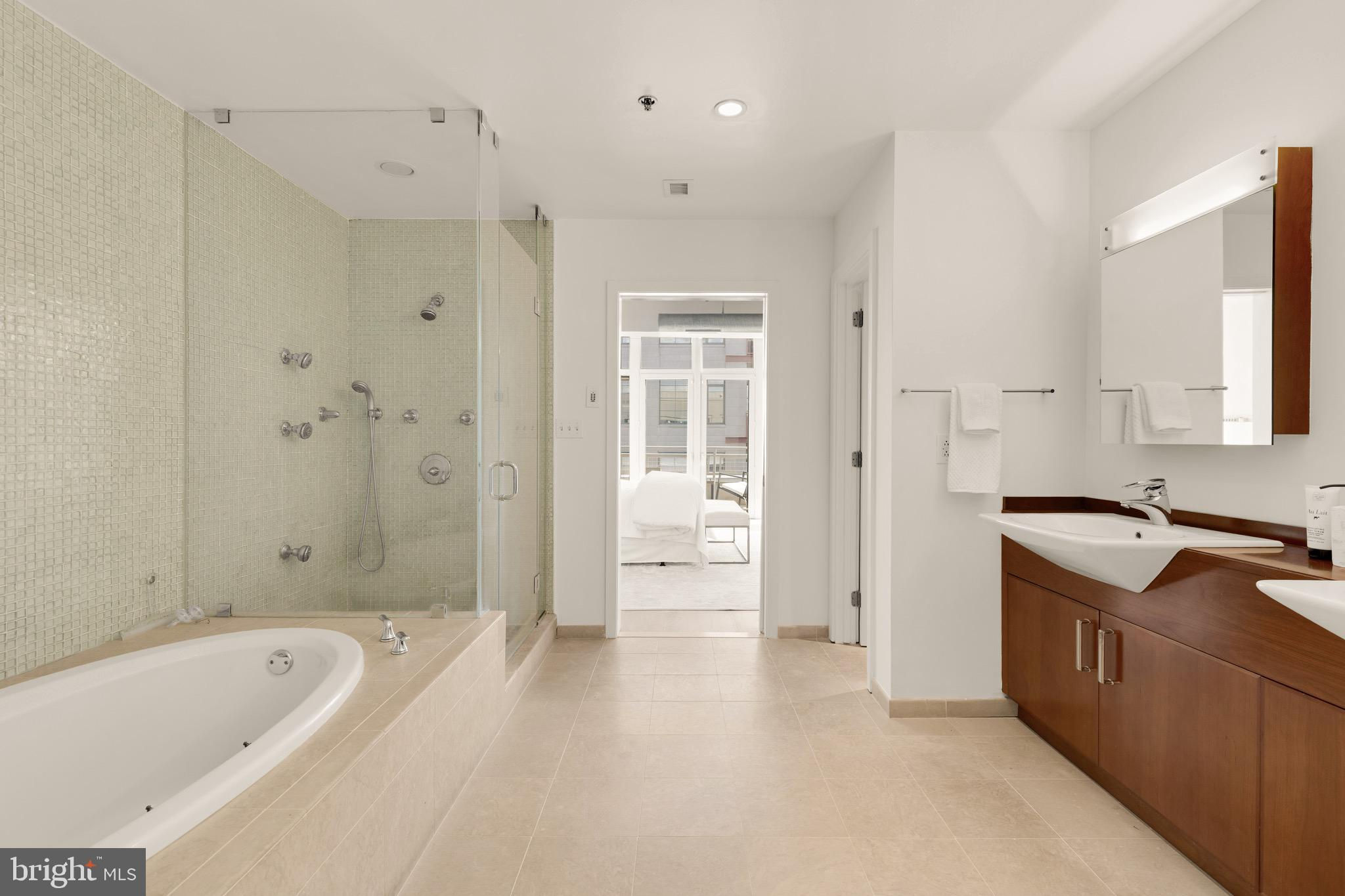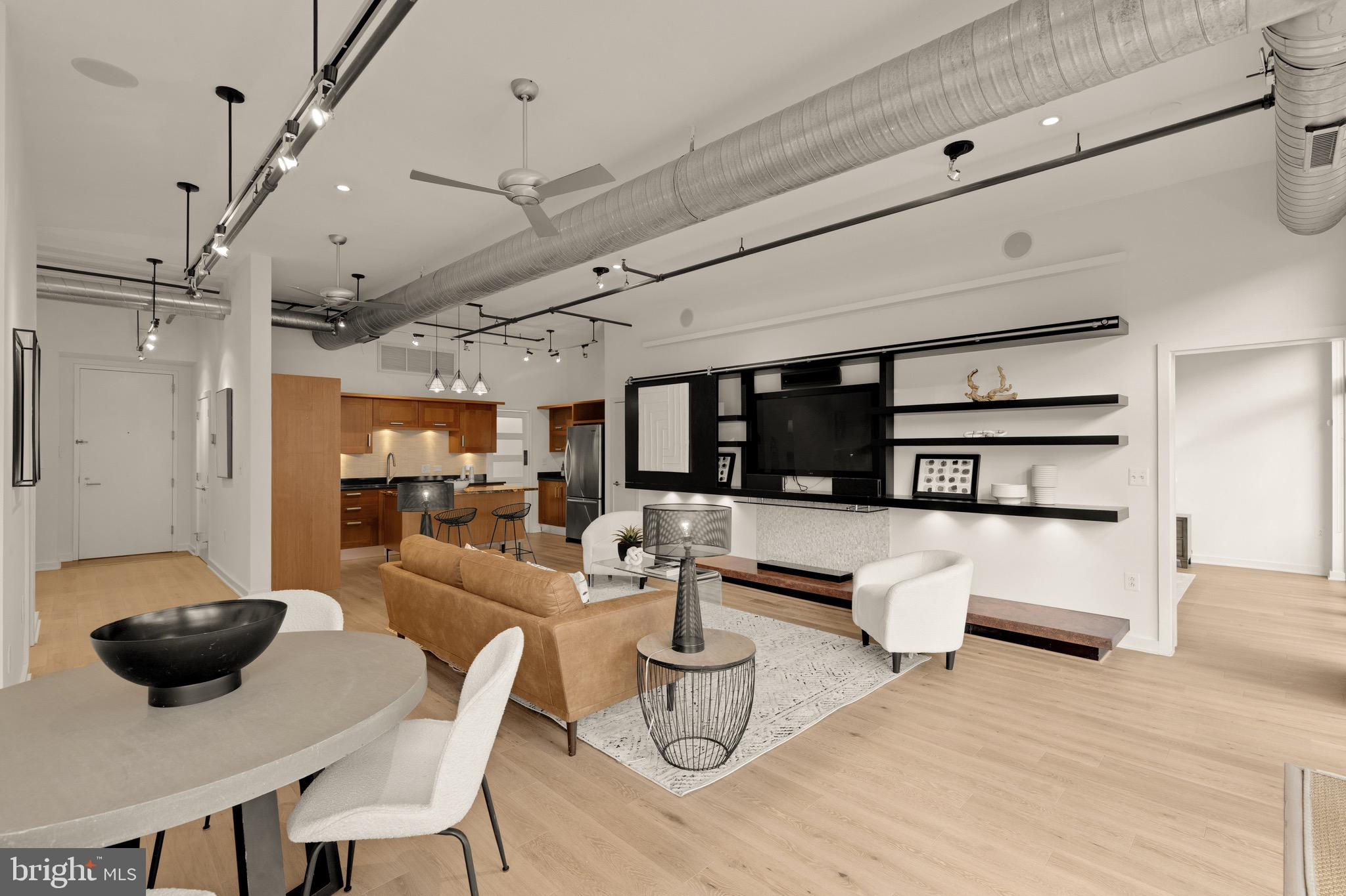 Perfectly positioned along sought-after Church Street, this rare offering at Lofts 14 is the largest available one-level condo in Logan Circle. Spanning 1,800 square feet, this contemporary three-bedroom, two-and-a-half-bath home pairs expansive open living with modern loft-inspired design. The open-concept living and dining area features soaring ceilings, wide-plank hardwood floors, and floor-to-ceiling windows overlooking the vibrant Church Street corridor. The sleek, modern kitchen is anchored by an oversized island, premium stainless-steel appliances, and ample cabinetry—ideal for both entertaining and everyday living. The defining element of this home is its private terrace, stretching the full length of the residence to create effortless indoor-outdoor flow. A flexible den or third bedroom sits just off the main entry, while both full bedrooms include en-suite baths and generous closet storage. The primary suite enjoys direct access to the terrace, offering a private retreat in the heart of the city. Additional conveniences include a powder room for guests, a spacious laundry room with side-by-side washer and dryer, and one assigned garage parking space. Set within one of Logan Circle’s most iconic buildings and just steps from 14th Street’s acclaimed restaurants, cafés, and boutiques, Residence 523 at Lofts 14 delivers an exceptional combination of scale, style, and location—truly a rare opportunity in one of DC’s most vibrant neighborhoods.