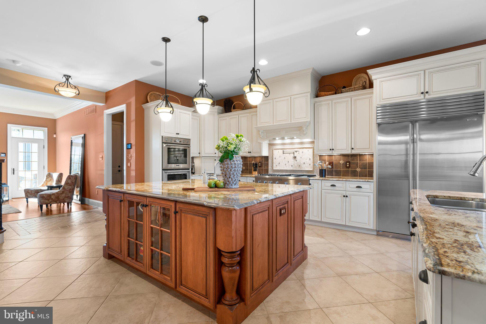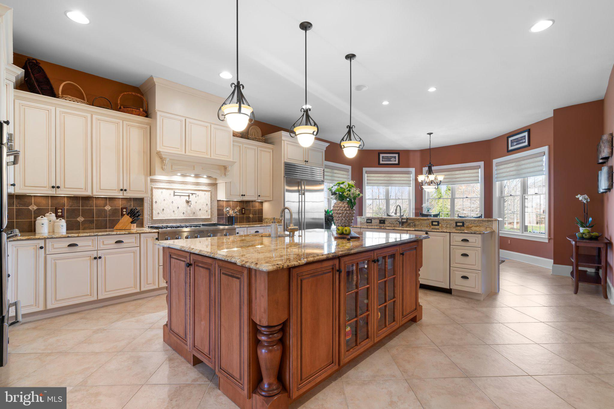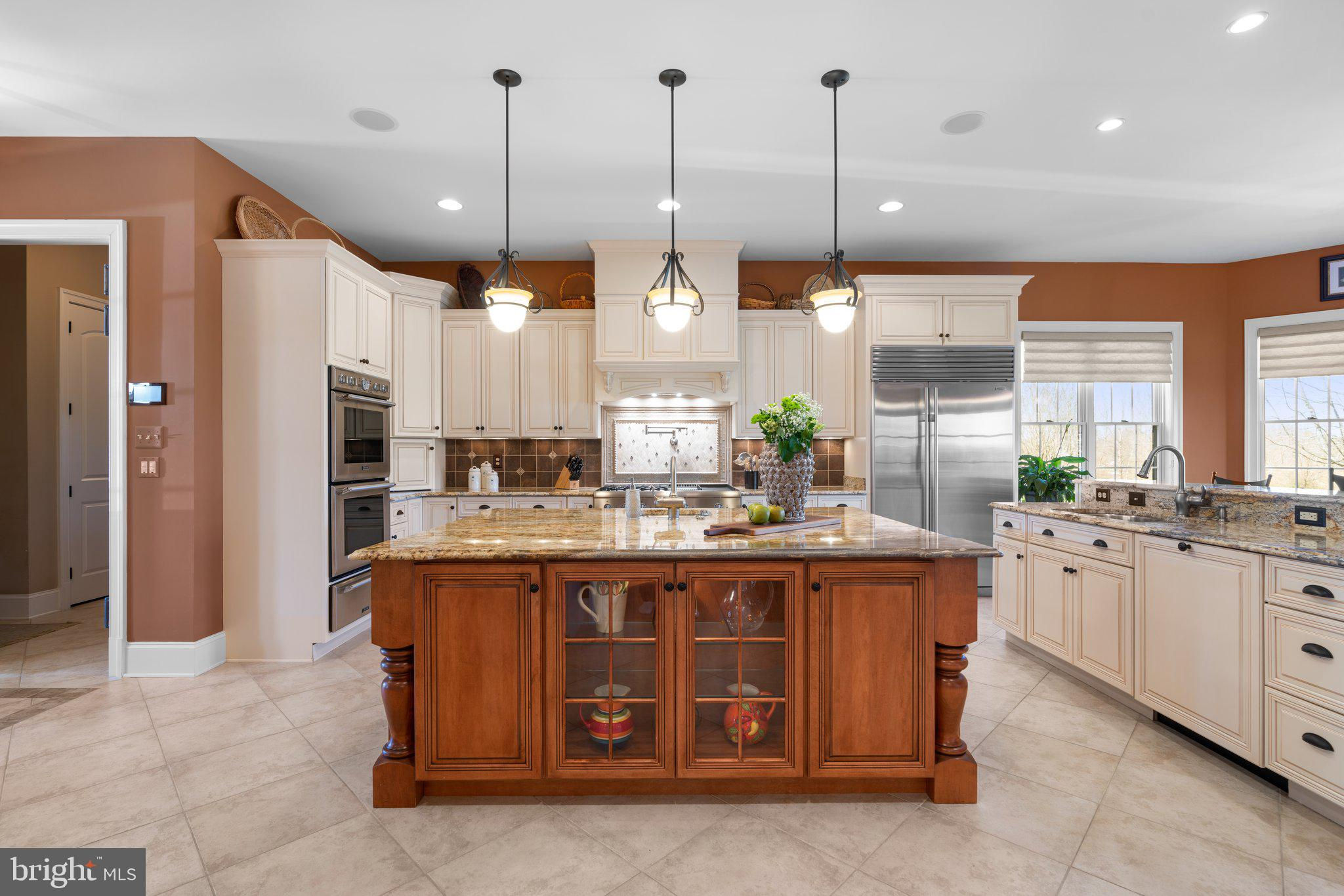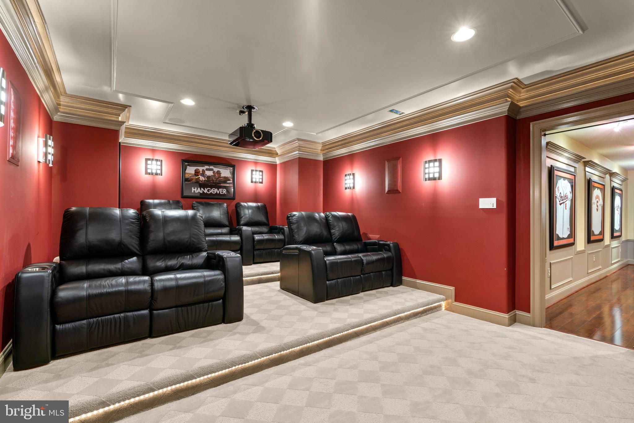 Your patience and persistence are about to pay off. Welcome to 14413 Meadow Mill Way; a truly one-of-a-kind, custom built home sited on a stunning 1.14 acre lot that backs to open space, offering complete privacy. This French colonial was constructed by one of Howard County’s most well respected and renowned custom home builders, Selfridge Builders. Located within one of the strongest school districts in the country, this unique custom home exudes quality throughout every single feature; a true luxury offering. Pull into one of your three garage bays and offer your guests the convenience of the circular driveway in front of your main entrance. Enter through the expansive mudroom room, drop your belongings, and head over to greet your guests in the light-filled, two-story foyer. The wide-plank wood floor, detailed millwork in the moldings, fine finishes, and curved archways immediately create an impression on all those who enter. Each detail was well thought out during the design phase; as you lead your guests into the sunken living room they will be impressed with the coffered ceiling, gas fireplace, and southwestern exposure visible through the three sets of matching French doors that open to the rear patio. The kitchen in this home is exquisite. It stands out as one of the most beautiful, high-end kitchens you will find in a luxury home. Gorgeous, highly-graded granite countertops, custom cabinetry with under-cabinet lights and glass doors, high-end appliances, and two islands with two sinks are just the start. A built-in Miele coffee machine, Sub-Zero fridge, two additional beverage fridges, double wall-oven, and commercial-grade propane range with pot filler will impress even those with the highest expectations. The floor plan was masterfully designed; on the other side of the main level you will find the primary suite wing. Set back from the main hallway with its own entrance, the primary suite offers a gorgeous bedroom with French doors leading to the private rear deck. Around the corner from the entrance to the suite you will find a wet bar with a beverage fridge and more custom cabinetry. Two walk-in closets and an additional accessory closet are fully built out with shelves, drawers, and other convenient storage spaces. The primary bathroom looks like it belongs in a spa and offers custom tile work in a spacious glass-doored shower, two separate vanities each with extra cabinet space, and a stand alone soaking tub. The main level is rounded out with a world-class private office and separate dining area, with wine storage, ready for large formal gatherings. Use one of two staircases to ascend to the upper level of the home. Complete with three bedrooms, three full bathrooms, and a second level living room. The living room stands out as the focal point of the upper level and provides an exceptional space for the homework area, play room, media center, or second home office. Before heading outside to the exceptional rear yard space, check out one of the most entertaining basements in Howard County; featuring a high-end theater room with stadium seating, a full bar larger than many restaurants offer, a gym with rubber floor and glass wall, billiards area, game room, and two additional bedrooms/bonus rooms. Whether you like to host gatherings or you prefer your peace and privacy, this basement set up will stand out as an elite offering and a bold expression of the love and thought the owners placed into this home. The rear yard backs to open space that will never be touched. The expansive stone patio offers space for an outdoor kitchen, lounge area, and gorgeous waterfall. The flat, cleared rear yard is ready for your pool, pickleball court, or golf training area. This property will be expertly transitioned to the new owners with a full orientation of systems, processes, and thorough list of service providers. Please reach out for a list of ages, features, finishes, and additional details on this one of a kind home.