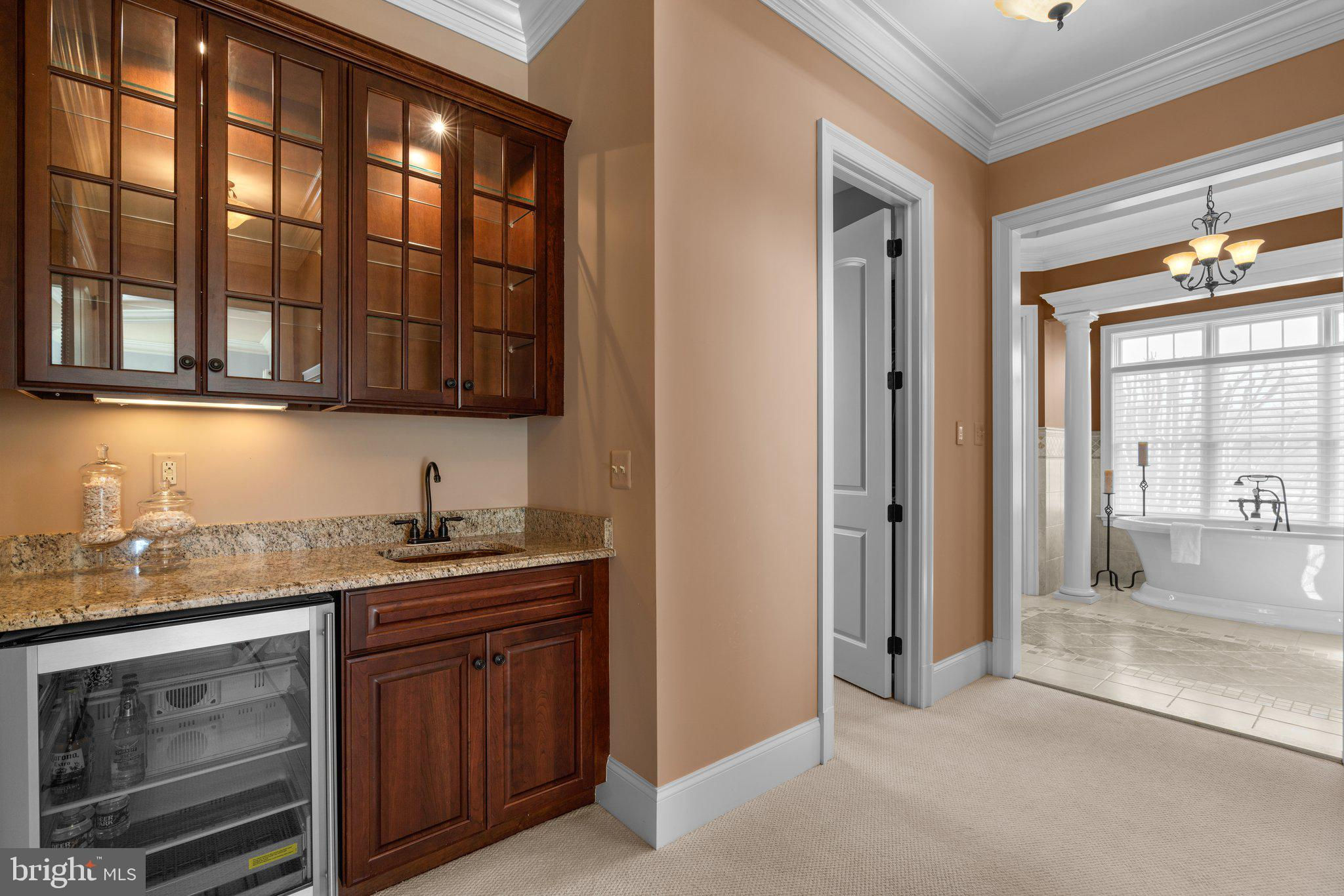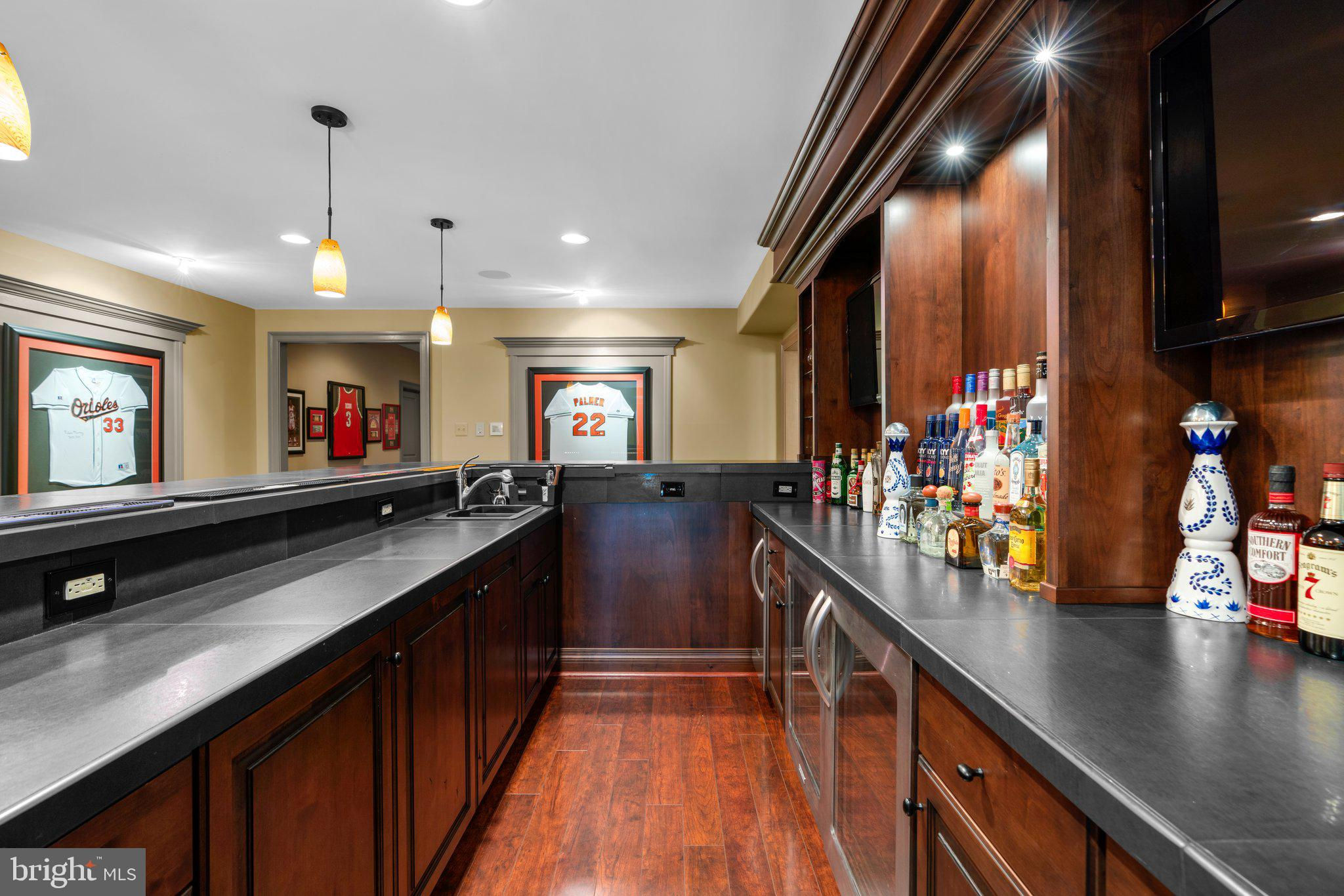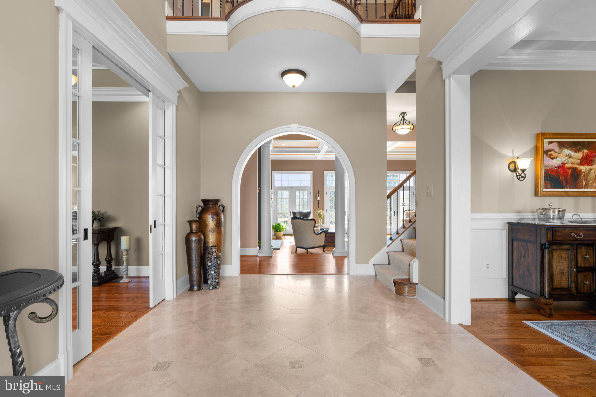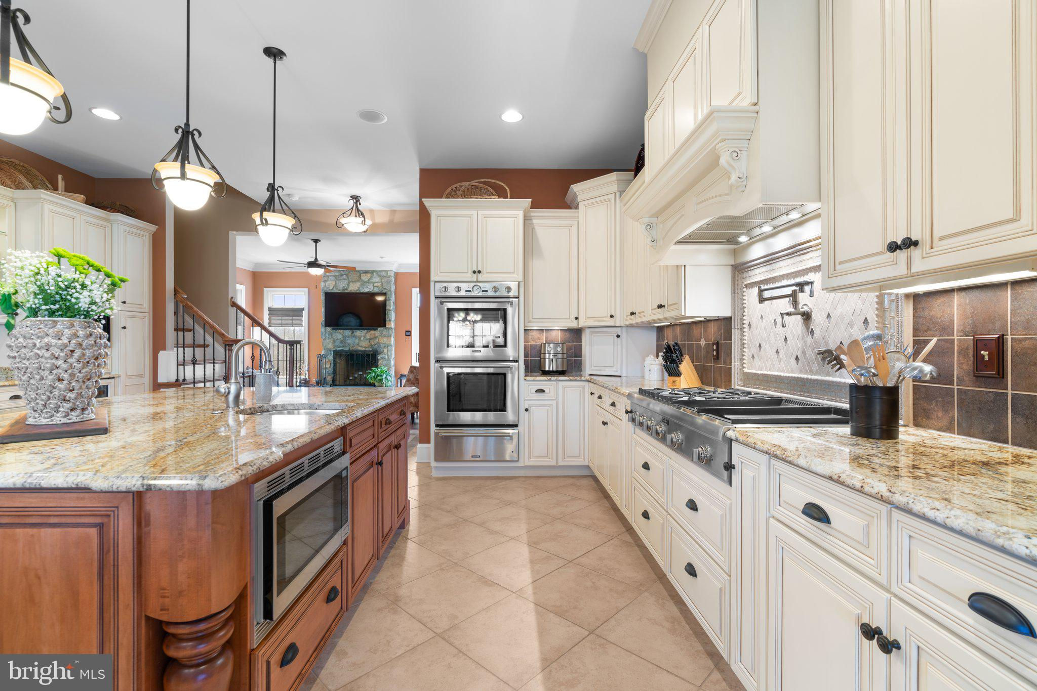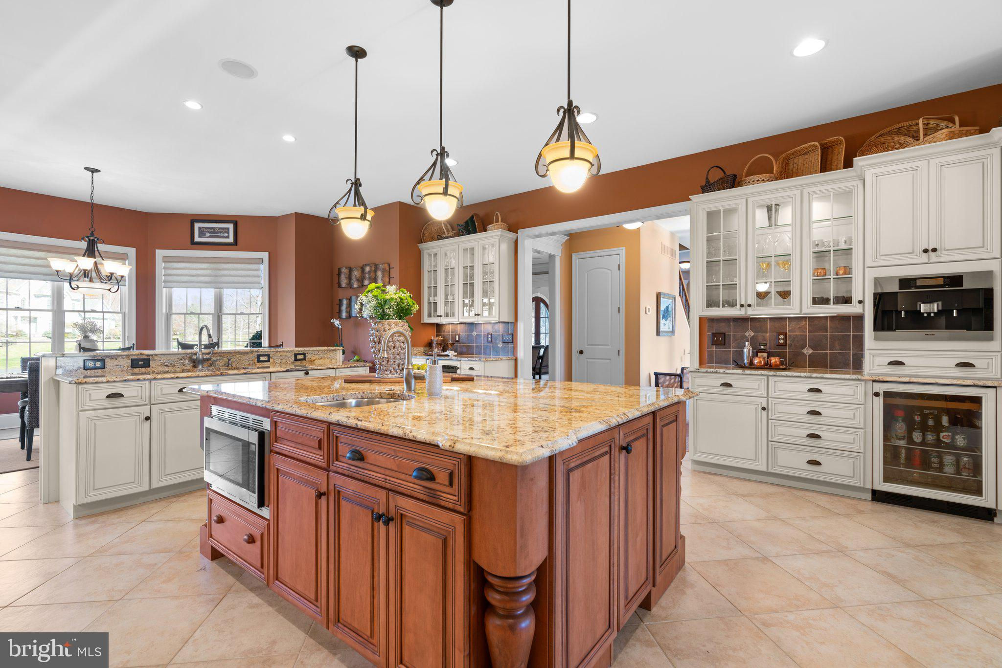 Your patience and persistence are about to pay off. Welcome to 14413 Meadow Mill Way; a truly one-of-a-kind, custom built home sited on a stunning 1.14 acre lot that backs to open space, offering complete privacy. This French colonial was constructed by one of Howard County’s most well respected and renowned custom home builders, Selfridge Builders. Located within one of the strongest school districts in the country, this unique custom home exudes quality throughout every single feature; a true luxury offering. Pull into one of your three garage bays and offer your guests the convenience of the circular driveway in front of your main entrance. Enter through the expansive mudroom room, drop your belongings, and head over to greet your guests in the light-filled, two-story foyer. The wide-plank wood floor, detailed millwork in the moldings, fine finishes, and curved archways immediately create an impression on all those who enter. Each detail was well thought out during the design phase; as you lead your guests into the sunken living room they will be impressed with the coffered ceiling, gas fireplace, and southwestern exposure visible through the three sets of matching French doors that open to the rear patio. The kitchen in this home is exquisite. It stands out as one of the most beautiful, high-end kitchens you will find in a luxury home. Gorgeous, highly-graded granite countertops, custom cabinetry with under-cabinet lights and glass doors, high-end appliances, and two islands with two sinks are just the start. A built-in Miele coffee machine, Sub-Zero fridge, two additional beverage fridges, double wall-oven, and commercial-grade propane range with pot filler will impress even those with the highest expectations. The floor plan was masterfully designed; on the other side of the main level you will find the primary suite wing. Set back from the main hallway with its own entrance, the primary suite offers a gorgeous bedroom with French doors leading to the private rear deck. Around the corner from the entrance to the suite you will find a wet bar with a beverage fridge and more custom cabinetry. Two walk-in closets and an additional accessory closet are fully built out with shelves, drawers, and other convenient storage spaces. The primary bathroom looks like it belongs in a spa and offers custom tile work in a spacious glass-doored shower, two separate vanities each with extra cabinet space, and a stand alone soaking tub. The main level is rounded out with a world-class private office and separate dining area, with wine storage, ready for large formal gatherings. Use one of two staircases to ascend to the upper level of the home. Complete with three bedrooms, three full bathrooms, and a second level living room. The living room stands out as the focal point of the upper level and provides an exceptional space for the homework area, play room, media center, or second home office. Before heading outside to the exceptional rear yard space, check out one of the most entertaining basements in Howard County; featuring a high-end theater room with stadium seating, a full bar larger than many restaurants offer, a gym with rubber floor and glass wall, billiards area, game room, and two additional bedrooms/bonus rooms. Whether you like to host gatherings or you prefer your peace and privacy, this basement set up will stand out as an elite offering and a bold expression of the love and thought the owners placed into this home. The rear yard backs to open space that will never be touched. The expansive stone patio offers space for an outdoor kitchen, lounge area, and gorgeous waterfall. The flat, cleared rear yard is ready for your pool, pickleball court, or golf training area. This property will be expertly transitioned to the new owners with a full orientation of systems, processes, and thorough list of service providers. Please reach out for a list of ages, features, finishes, and additional details on this one of a kind home.
