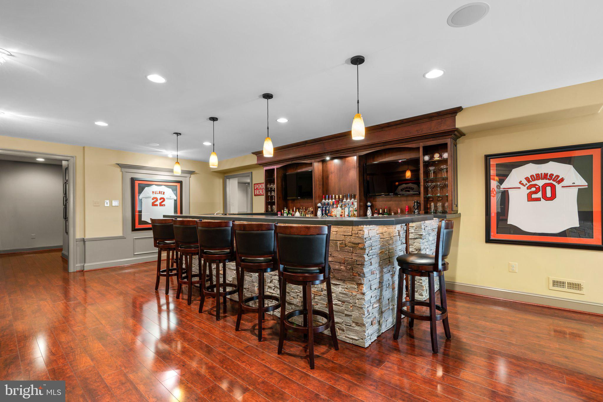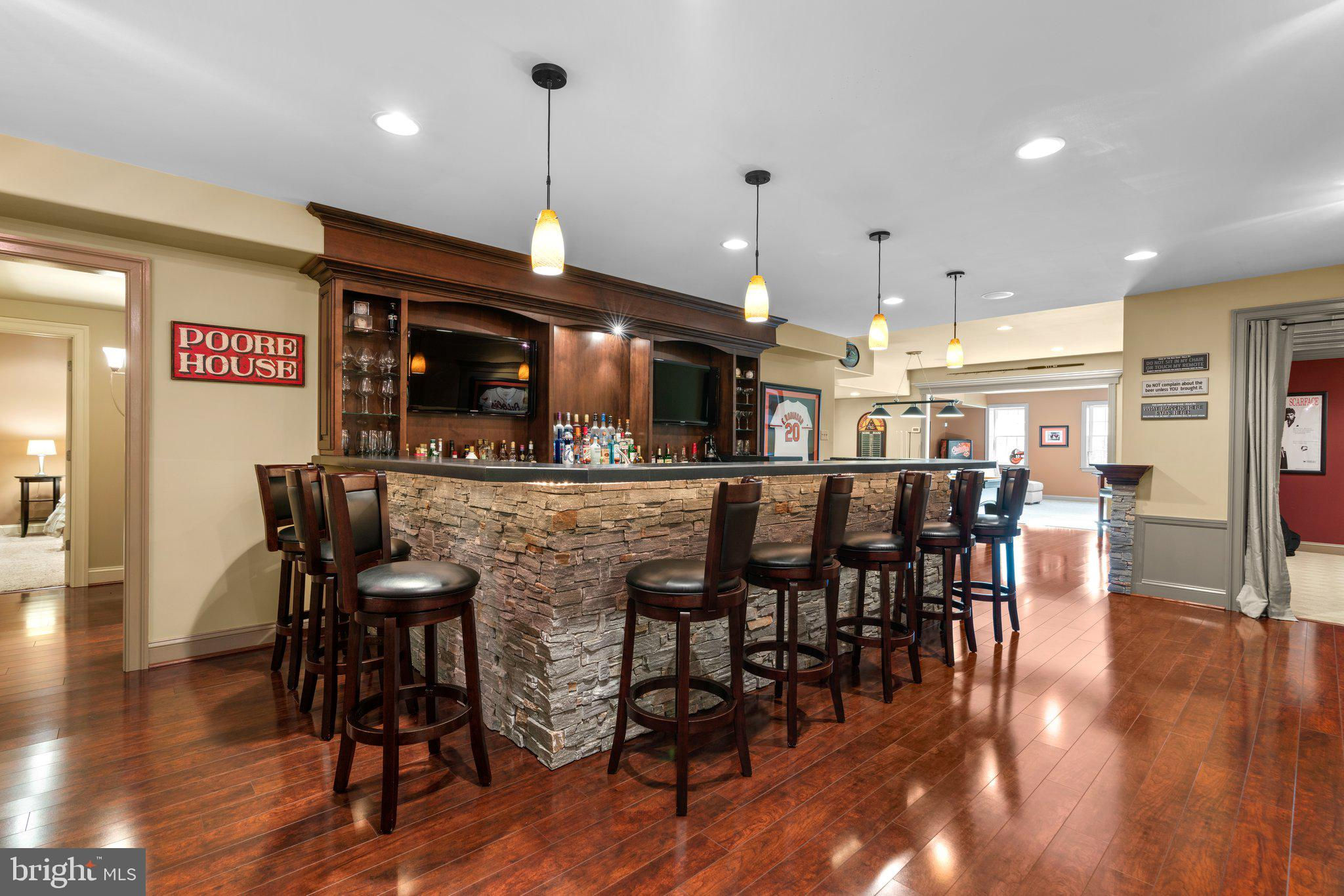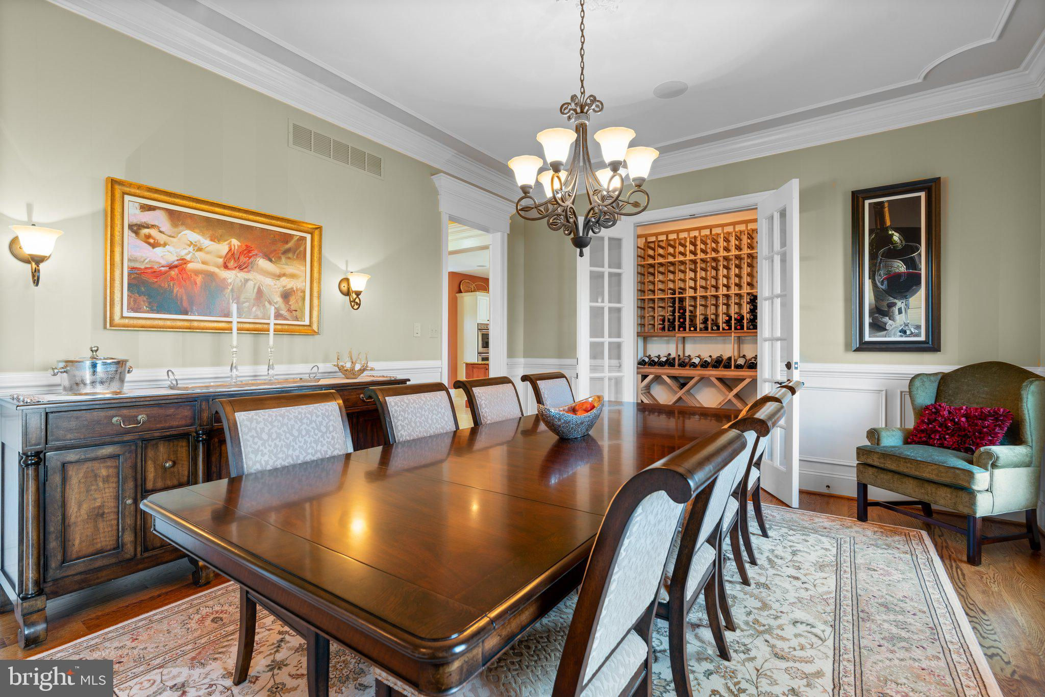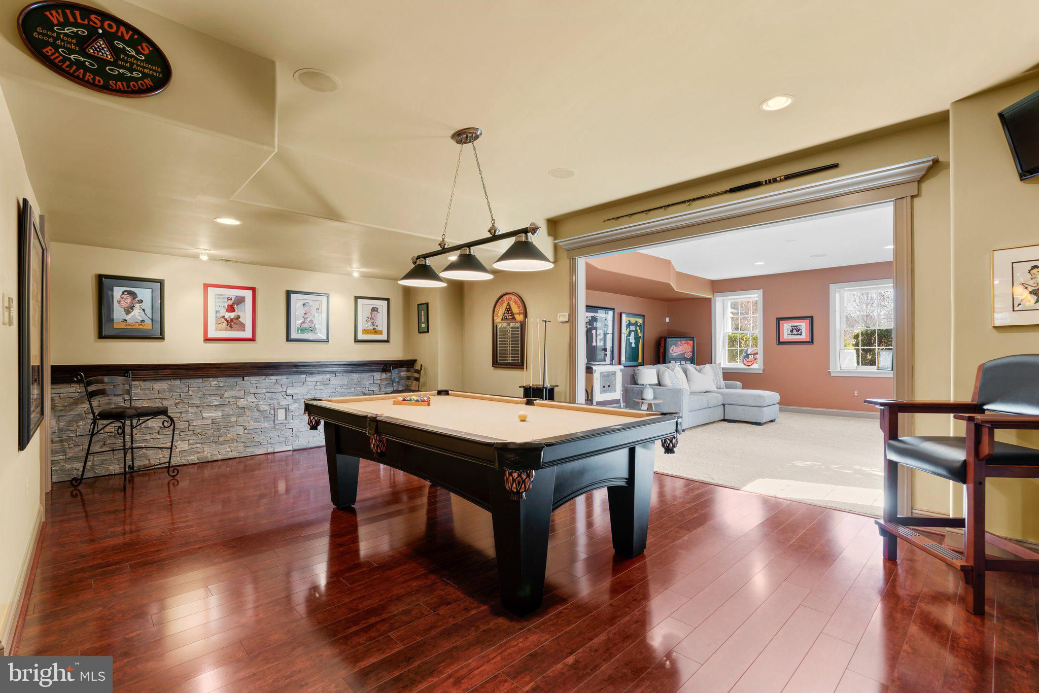 Your patience and persistence are about to pay off. Welcome to 14413 Meadow Mill Way; a truly one-of-a-kind, custom built home sited on a stunning 1.14 acre lot that backs to open space, offering complete privacy. This French colonial was constructed by one of Howard County’s most well respected and renowned custom home builders, Selfridge Builders. Located within one of the strongest school districts in the country, this unique custom home exudes quality throughout every single feature; a true luxury offering. Pull into one of your three garage bays and offer your guests the convenience of the circular driveway in front of your main entrance. Enter through the expansive mudroom room, drop your belongings, and head over to greet your guests in the light-filled, two-story foyer. The wide-plank wood floor, detailed millwork in the moldings, fine finishes, and curved archways immediately create an impression on all those who enter. Each detail was well thought out during the design phase; as you lead your guests into the sunken living room they will be impressed with the coffered ceiling, gas fireplace, and southwestern exposure visible through the three sets of matching French doors that open to the rear patio. The kitchen in this home is exquisite. It stands out as one of the most beautiful, high-end kitchens you will find in a luxury home. Gorgeous, highly-graded granite countertops, custom cabinetry with under-cabinet lights and glass doors, high-end appliances, and two islands with two sinks are just the start. A built-in Miele coffee machine, Sub-Zero fridge, two additional beverage fridges, double wall-oven, and commercial-grade propane range with pot filler will impress even those with the highest expectations. The floor plan was masterfully designed; on the other side of the main level you will find the primary suite wing. Set back from the main hallway with its own entrance, the primary suite offers a gorgeous bedroom with French doors leading to the private rear deck. Around the corner from the entrance to the suite you will find a wet bar with a beverage fridge and more custom cabinetry. Two walk-in closets and an additional accessory closet are fully built out with shelves, drawers, and other convenient storage spaces. The primary bathroom looks like it belongs in a spa and offers custom tile work in a spacious glass-doored shower, two separate vanities each with extra cabinet space, and a stand alone soaking tub. The main level is rounded out with a world-class private office and separate dining area, with wine storage, ready for large formal gatherings. Use one of two staircases to ascend to the upper level of the home. Complete with three bedrooms, three full bathrooms, and a second level living room. The living room stands out as the focal point of the upper level and provides an exceptional space for the homework area, play room, media center, or second home office. Before heading outside to the exceptional rear yard space, check out one of the most entertaining basements in Howard County; featuring a high-end theater room with stadium seating, a full bar larger than many restaurants offer, a gym with rubber floor and glass wall, billiards area, game room, and two additional bedrooms/bonus rooms. Whether you like to host gatherings or you prefer your peace and privacy, this basement set up will stand out as an elite offering and a bold expression of the love and thought the owners placed into this home. The rear yard backs to open space that will never be touched. The expansive stone patio offers space for an outdoor kitchen, lounge area, and gorgeous waterfall. The flat, cleared rear yard is ready for your pool, pickleball court, or golf training area. This property will be expertly transitioned to the new owners with a full orientation of systems, processes, and thorough list of service providers. Please reach out for a list of ages, features, finishes, and additional details on this one of a kind home.