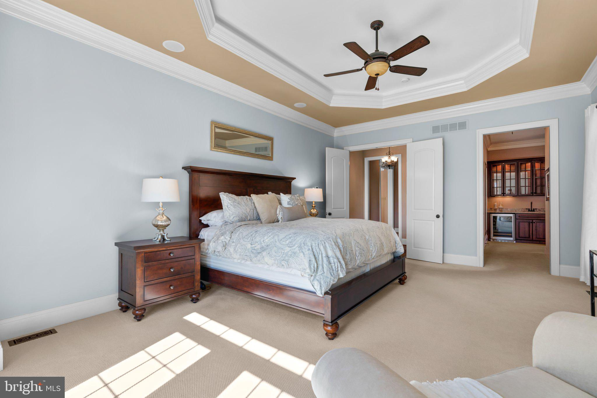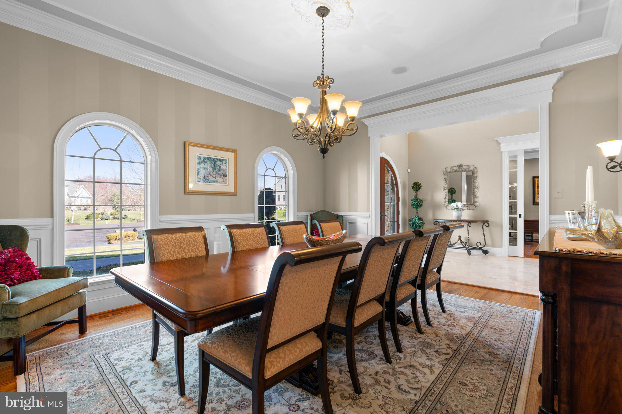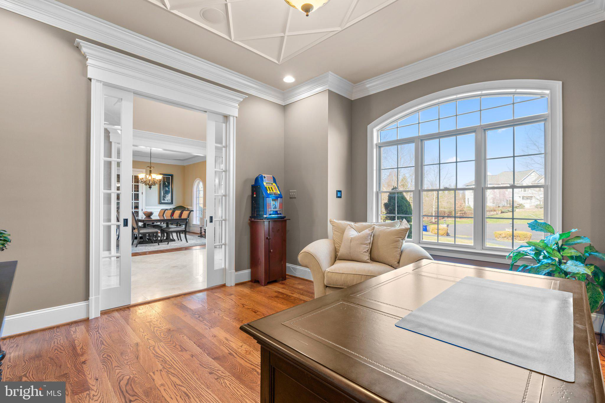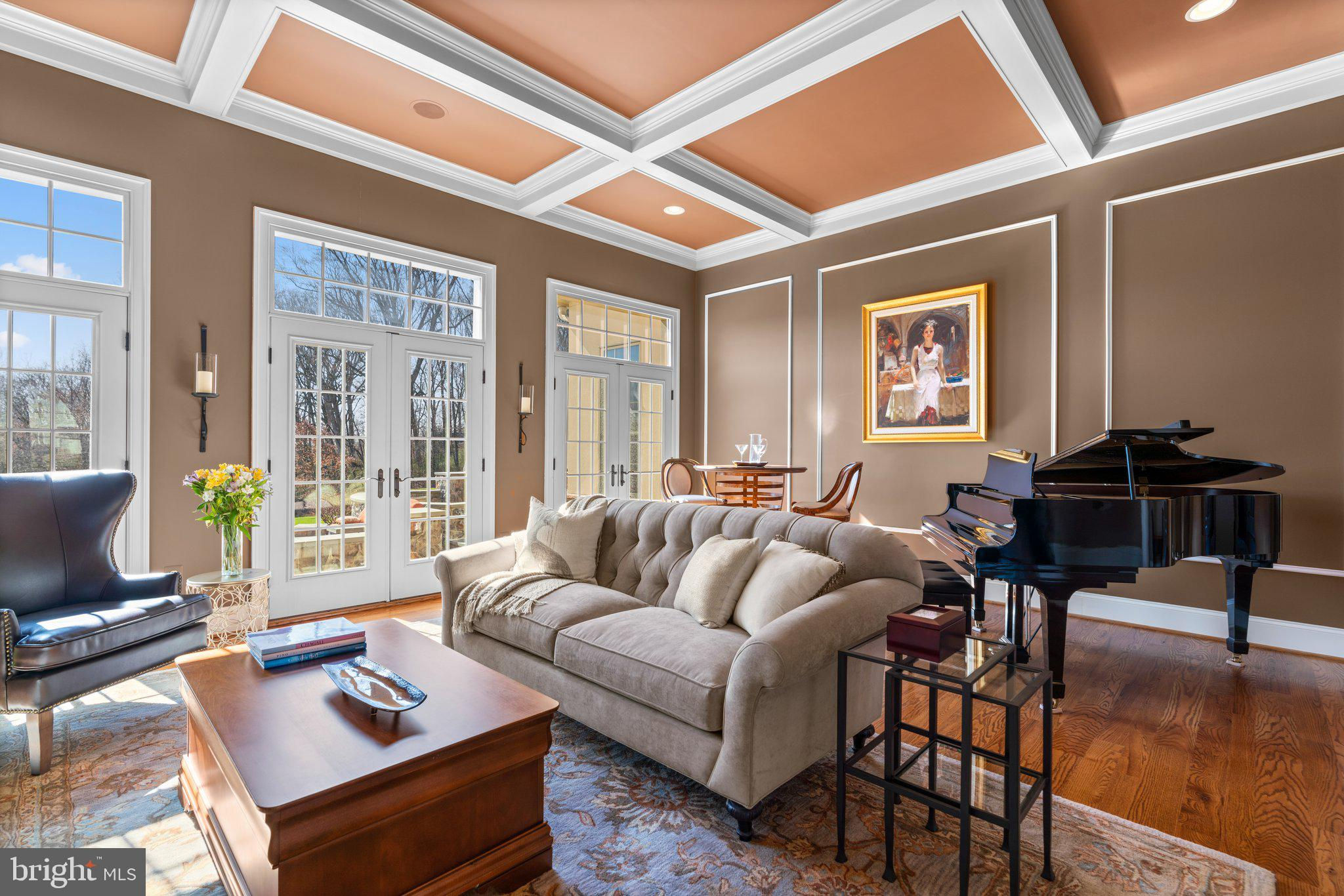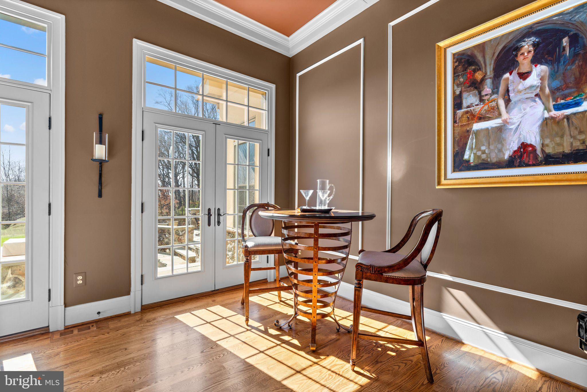 Your patience and persistence are about to pay off. Welcome to 14413 Meadow Mill Way; a truly one-of-a-kind, custom built home sited on a stunning 1.14 acre lot that backs to open space, offering complete privacy. This French colonial was constructed by one of Howard County’s most well respected and renowned custom home builders, Selfridge Builders. Located within one of the strongest school districts in the country, this unique custom home exudes quality throughout every single feature; a true luxury offering. Pull into one of your three garage bays and offer your guests the convenience of the circular driveway in front of your main entrance. Enter through the expansive mudroom room, drop your belongings, and head over to greet your guests in the light-filled, two-story foyer. The wide-plank wood floor, detailed millwork in the moldings, fine finishes, and curved archways immediately create an impression on all those who enter. Each detail was well thought out during the design phase; as you lead your guests into the sunken living room they will be impressed with the coffered ceiling, gas fireplace, and southwestern exposure visible through the three sets of matching French doors that open to the rear patio. The kitchen in this home is exquisite. It stands out as one of the most beautiful, high-end kitchens you will find in a luxury home. Gorgeous, highly-graded granite countertops, custom cabinetry with under-cabinet lights and glass doors, high-end appliances, and two islands with two sinks are just the start. A built-in Miele coffee machine, Sub-Zero fridge, two additional beverage fridges, double wall-oven, and commercial-grade propane range with pot filler will impress even those with the highest expectations. The floor plan was masterfully designed; on the other side of the main level you will find the primary suite wing. Set back from the main hallway with its own entrance, the primary suite offers a gorgeous bedroom with French doors leading to the private rear deck. Around the corner from the entrance to the suite you will find a wet bar with a beverage fridge and more custom cabinetry. Two walk-in closets and an additional accessory closet are fully built out with shelves, drawers, and other convenient storage spaces. The primary bathroom looks like it belongs in a spa and offers custom tile work in a spacious glass-doored shower, two separate vanities each with extra cabinet space, and a stand alone soaking tub. The main level is rounded out with a world-class private office and separate dining area, with wine storage, ready for large formal gatherings. Use one of two staircases to ascend to the upper level of the home. Complete with three bedrooms, three full bathrooms, and a second level living room. The living room stands out as the focal point of the upper level and provides an exceptional space for the homework area, play room, media center, or second home office. Before heading outside to the exceptional rear yard space, check out one of the most entertaining basements in Howard County; featuring a high-end theater room with stadium seating, a full bar larger than many restaurants offer, a gym with rubber floor and glass wall, billiards area, game room, and two additional bedrooms/bonus rooms. Whether you like to host gatherings or you prefer your peace and privacy, this basement set up will stand out as an elite offering and a bold expression of the love and thought the owners placed into this home. The rear yard backs to open space that will never be touched. The expansive stone patio offers space for an outdoor kitchen, lounge area, and gorgeous waterfall. The flat, cleared rear yard is ready for your pool, pickleball court, or golf training area. This property will be expertly transitioned to the new owners with a full orientation of systems, processes, and thorough list of service providers. Please reach out for a list of ages, features, finishes, and additional details on this one of a kind home.