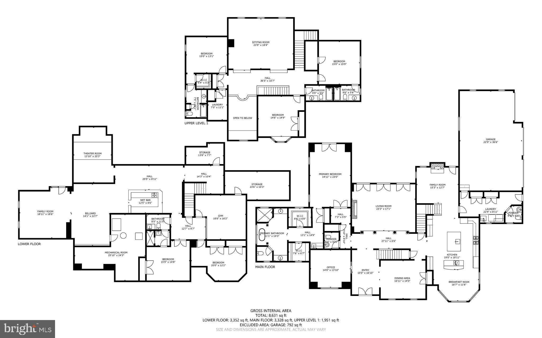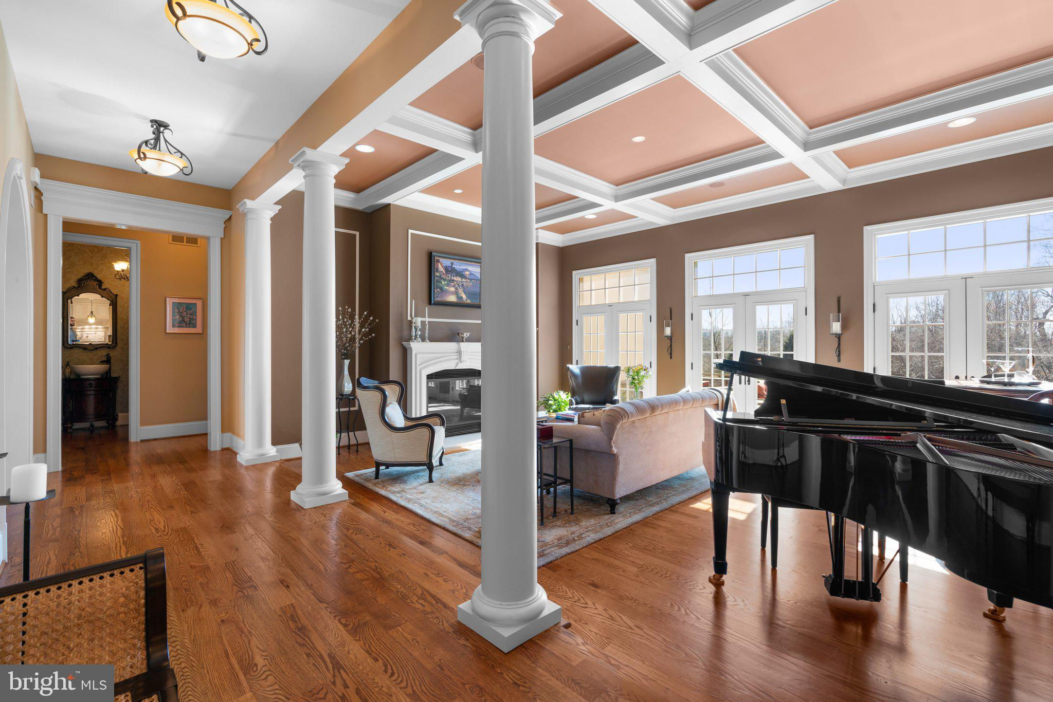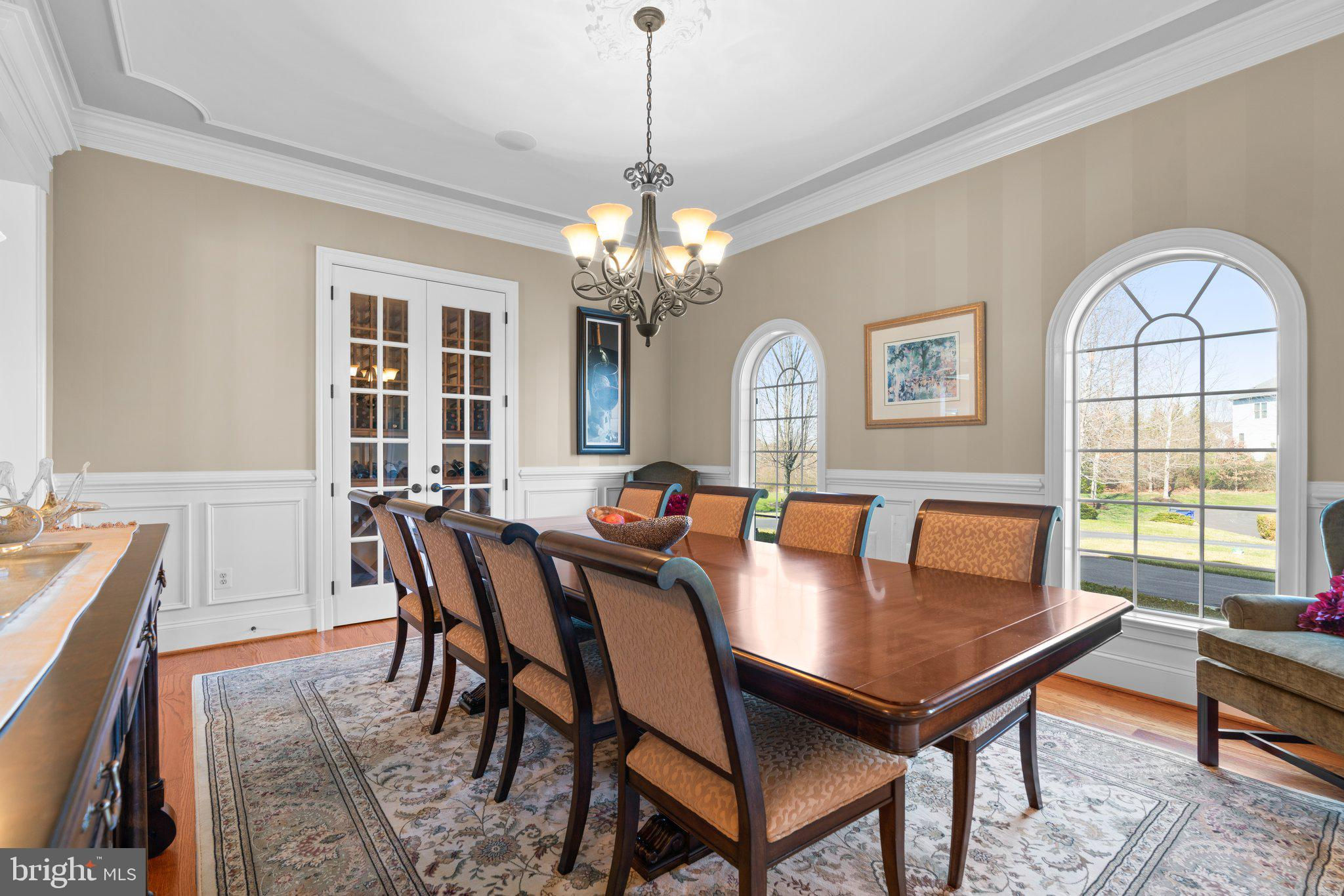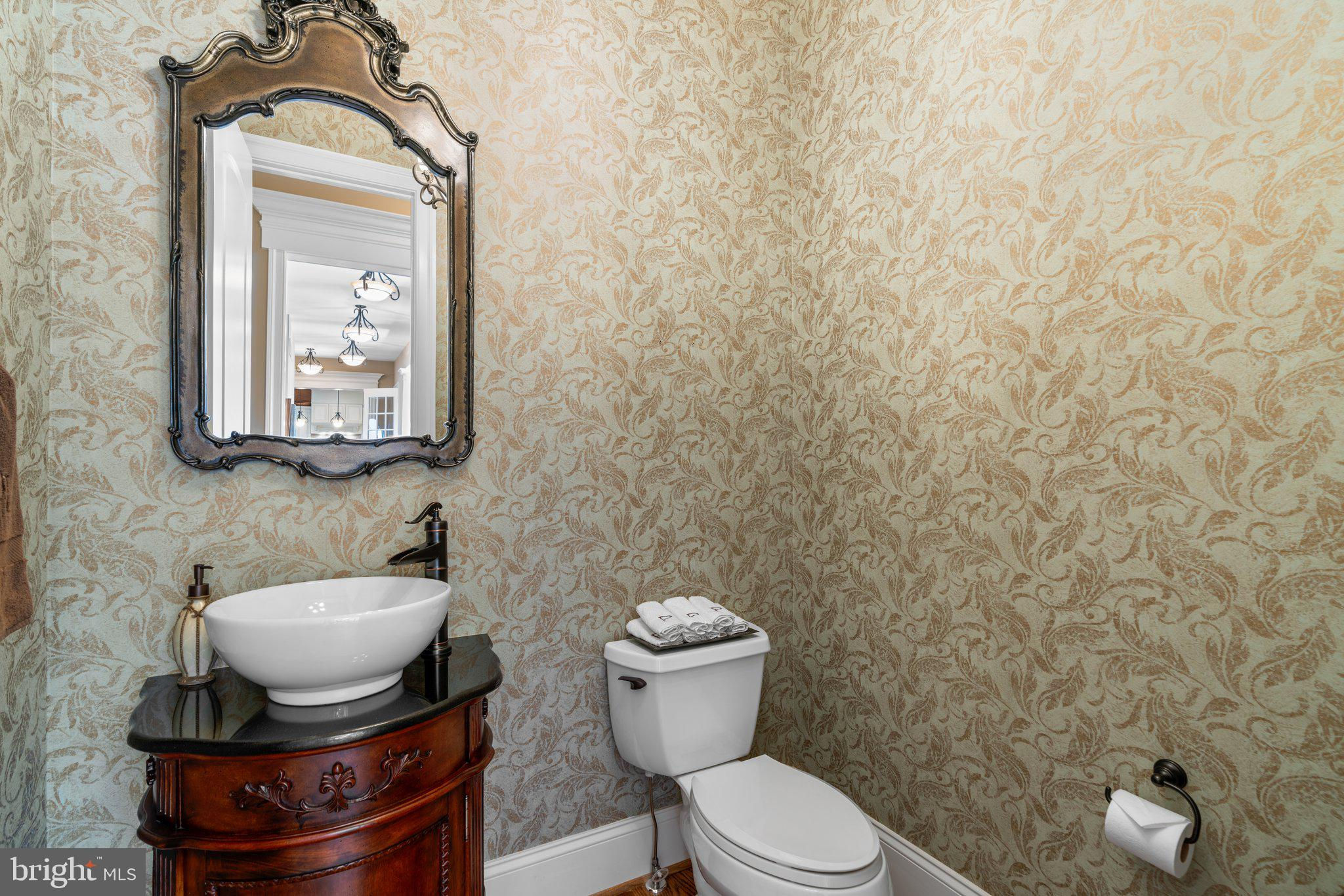 Your patience and persistence are about to pay off. Welcome to 14413 Meadow Mill Way; a truly one-of-a-kind, custom built home sited on a stunning 1.14 acre lot that backs to open space, offering complete privacy. This French colonial was constructed by one of Howard County’s most well respected and renowned custom home builders, Selfridge Builders. Located within one of the strongest school districts in the country, this unique custom home exudes quality throughout every single feature; a true luxury offering. Pull into one of your three garage bays and offer your guests the convenience of the circular driveway in front of your main entrance. Enter through the expansive mudroom room, drop your belongings, and head over to greet your guests in the light-filled, two-story foyer. The wide-plank wood floor, detailed millwork in the moldings, fine finishes, and curved archways immediately create an impression on all those who enter. Each detail was well thought out during the design phase; as you lead your guests into the sunken living room they will be impressed with the coffered ceiling, gas fireplace, and southwestern exposure visible through the three sets of matching French doors that open to the rear patio. The kitchen in this home is exquisite. It stands out as one of the most beautiful, high-end kitchens you will find in a luxury home. Gorgeous, highly-graded granite countertops, custom cabinetry with under-cabinet lights and glass doors, high-end appliances, and two islands with two sinks are just the start. A built-in Miele coffee machine, Sub-Zero fridge, two additional beverage fridges, double wall-oven, and commercial-grade propane range with pot filler will impress even those with the highest expectations. The floor plan was masterfully designed; on the other side of the main level you will find the primary suite wing. Set back from the main hallway with its own entrance, the primary suite offers a gorgeous bedroom with French doors leading to the private rear deck. Around the corner from the entrance to the suite you will find a wet bar with a beverage fridge and more custom cabinetry. Two walk-in closets and an additional accessory closet are fully built out with shelves, drawers, and other convenient storage spaces. The primary bathroom looks like it belongs in a spa and offers custom tile work in a spacious glass-doored shower, two separate vanities each with extra cabinet space, and a stand alone soaking tub. The main level is rounded out with a world-class private office and separate dining area, with wine storage, ready for large formal gatherings. Use one of two staircases to ascend to the upper level of the home. Complete with three bedrooms, three full bathrooms, and a second level living room. The living room stands out as the focal point of the upper level and provides an exceptional space for the homework area, play room, media center, or second home office. Before heading outside to the exceptional rear yard space, check out one of the most entertaining basements in Howard County; featuring a high-end theater room with stadium seating, a full bar larger than many restaurants offer, a gym with rubber floor and glass wall, billiards area, game room, and two additional bedrooms/bonus rooms. Whether you like to host gatherings or you prefer your peace and privacy, this basement set up will stand out as an elite offering and a bold expression of the love and thought the owners placed into this home. The rear yard backs to open space that will never be touched. The expansive stone patio offers space for an outdoor kitchen, lounge area, and gorgeous waterfall. The flat, cleared rear yard is ready for your pool, pickleball court, or golf training area. This property will be expertly transitioned to the new owners with a full orientation of systems, processes, and thorough list of service providers. Please reach out for a list of ages, features, finishes, and additional details on this one of a kind home.