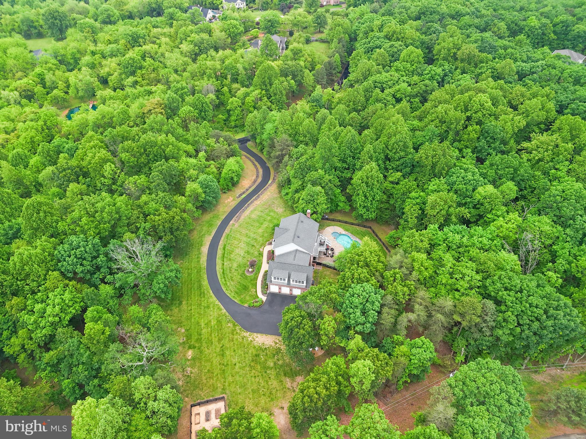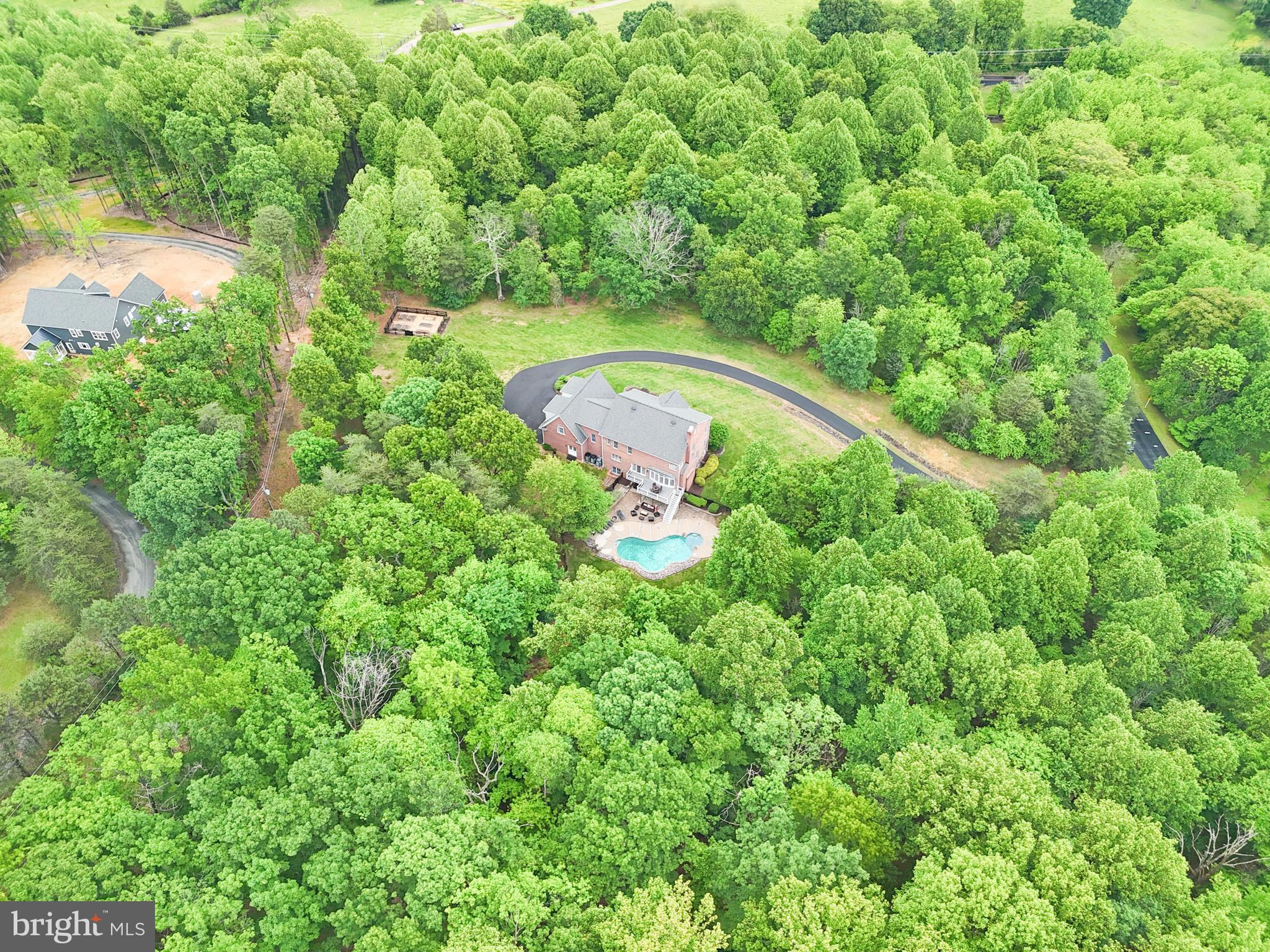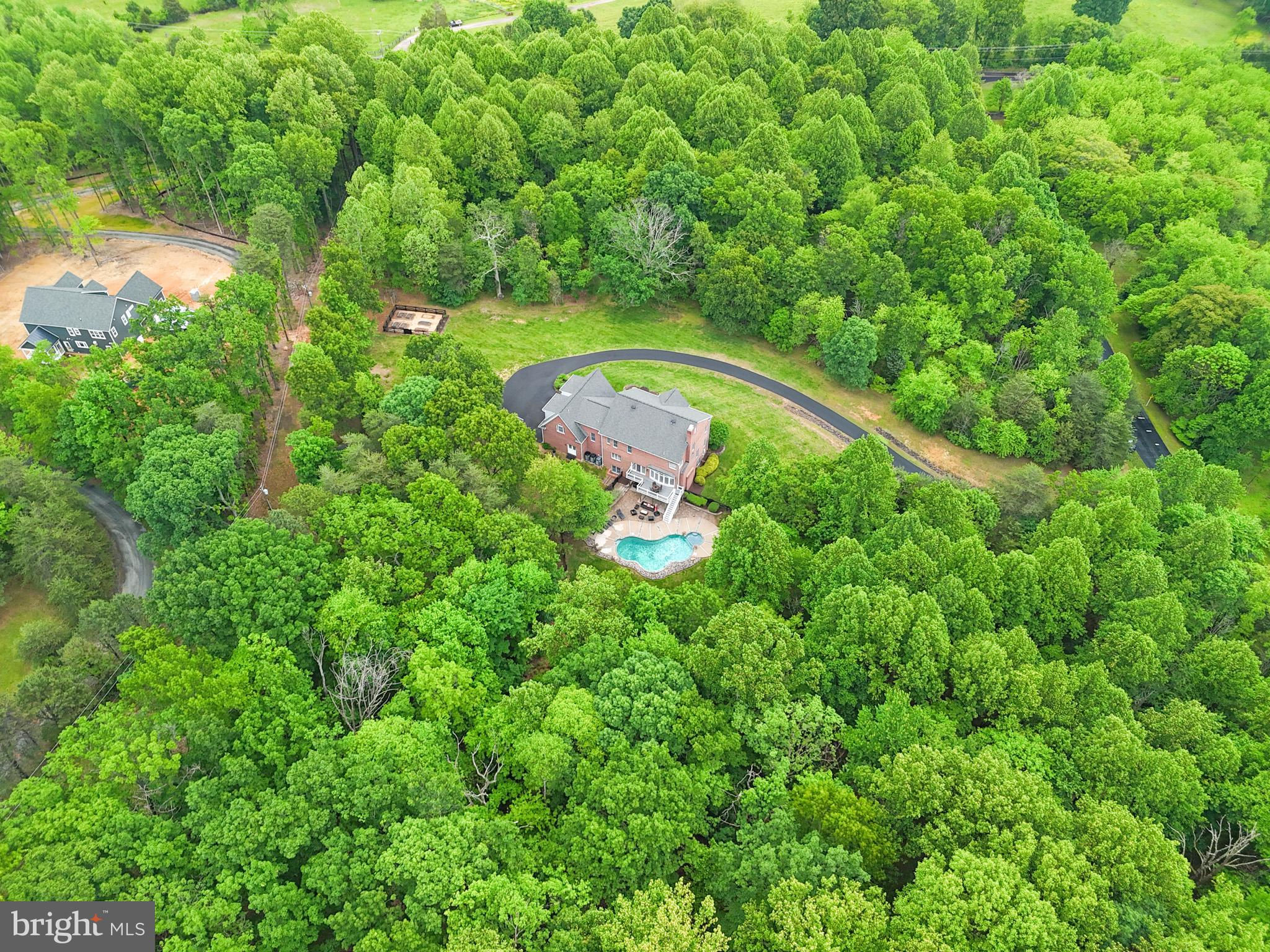 New Price! Escape to your beautiful private oasis on this stunning 10+acre lot with in-ground pool. Enter the front door of this Luxurious Brick Home you are greeted by a Sunny 2 story foyer with freshly refinished wood floors, large chandelier and dramatic curved staircase. Flanking the foyer are the dining room and office with gleaming refinished hardwood floors. Double French doors lead into the office from the foyer.Dining room is accented by chair rail, chandelier and plenty of entertaining space for a large table. Continuing through the foyer towards the kitchen and family room, the ceramic tile flooring mimics wood planks. You will notice the 10ft ceilings. The family room has coffered ceilings and two custom built in shelves surrounding the stone fireplace. The large Curved Bay Window overlooks the deck, trees, patio and pool below. The high end gourmet kitchen is a chef’s dream. The gorgeous custom cabinetry and island added in 2020. The granite island has plenty of room for 4 or more chairs. Extra-largeSub-Zero Refrigerator. The Wolf Stove is dual fuel with propane gas top and electric ovens. It includes a dedicated Pot Filler faucet, 6 gas burners, 1 Griddle and 2 electric ovens. The Microwave is built into the kitchen island along with a 3rd Wolfe Electric Oven. Pendant and recessed lights highlight the ceilings and add to the ambience of the kitchen. Gray Glass tile backsplash and tall cabinets reach towards the ceiling offer extra lighted display cabinets. Oversized Walk-In pantry allows plenty of storage space. Kitchen area has space for table. The coffee bar leads to the dining room and provides a mini-fridge, sink and shelves for plenty of mugs for refills. Adjacent to the kitchen is a powder room and bonus room. At end of the hallway you’ll find a second set of wood steps leading upstairs and a doorway to the garage. Heading upstairs you’ll find a large laundry room including several cabinets, counter space for folding and a sink. The stackable washer dryer are easy to use and convenient to the upper level bedrooms. The Upper level has an In-Law Suite with a 3rd staircase, lvp floors, family room, separate bedroom and updated en-suite full bath with new shower door, plank tile flooring and granite. Down the hall are 2 more guest rooms with updated ensuite baths that include the plank tile floors, granite counters and gray tile surrounds. At the end of the hallway the primary bedroom offers large tray ceiling with underlighting as well as recessed lights and ceiling fan. The extra large walk-in closet is customized with beautiful modern cabinets, drawers, shelves for shoes and multiple areas to hang clothing. Luxurious and Soothing Primary Bath is adorned with natural stone backsplash. The large 24” tile plank floors, dual sinks, 4 wall sconces and recessed lights make you feel relaxed in luxury. The shower area offers, 1 Rain shower head plus 3 additional shower heads, Smooth Pebble /Stone flooring, and separate soaking tub to relax and unwind. Very Private with green tree views The Basement offers Large Family Room area with chair rail, 2 seating areas and a brick wood burning fireplace. Great for entertaining. Doors walk out to level patio and inground pool area. You will find a 5th bedroom with ensuite full bath, carpeted flooring, plus an additional bonus room and a separate unfinished area for utility and storage . Outside is your own oasis private fenced in pool area, with trees surrounding you. The property is zoned for Horses. HOA fee includes verizon wifi phone and TV as well as trash removal and snow removal. 3 zoned HVAC systems,2 HVACS in upper level are electric with propane back-up. All 3 HVACS replaced in 2019.Roof and Trex deck replaced 2018. Pool Equipment replaced 2023. Within few minutes drive to rte 66, rte 15. Nearby Shopping , Parks, Breweries and Wineries.