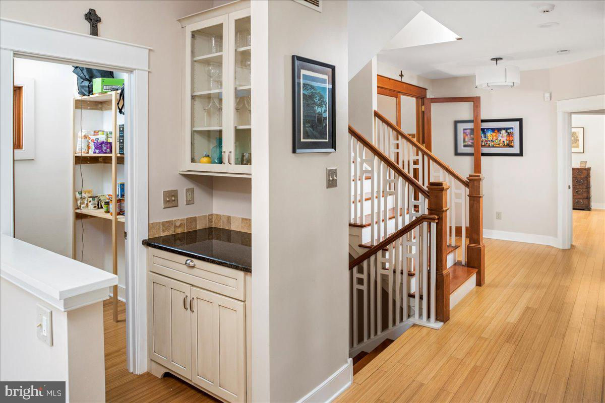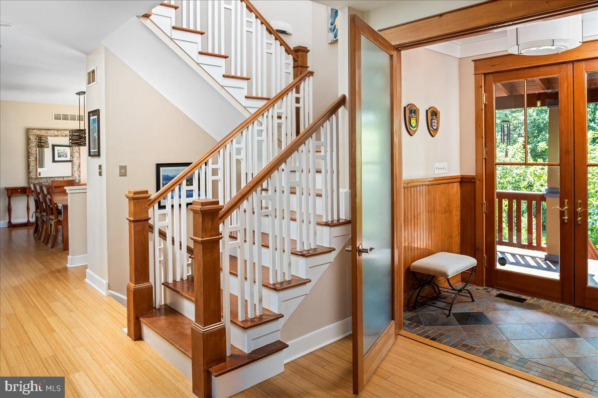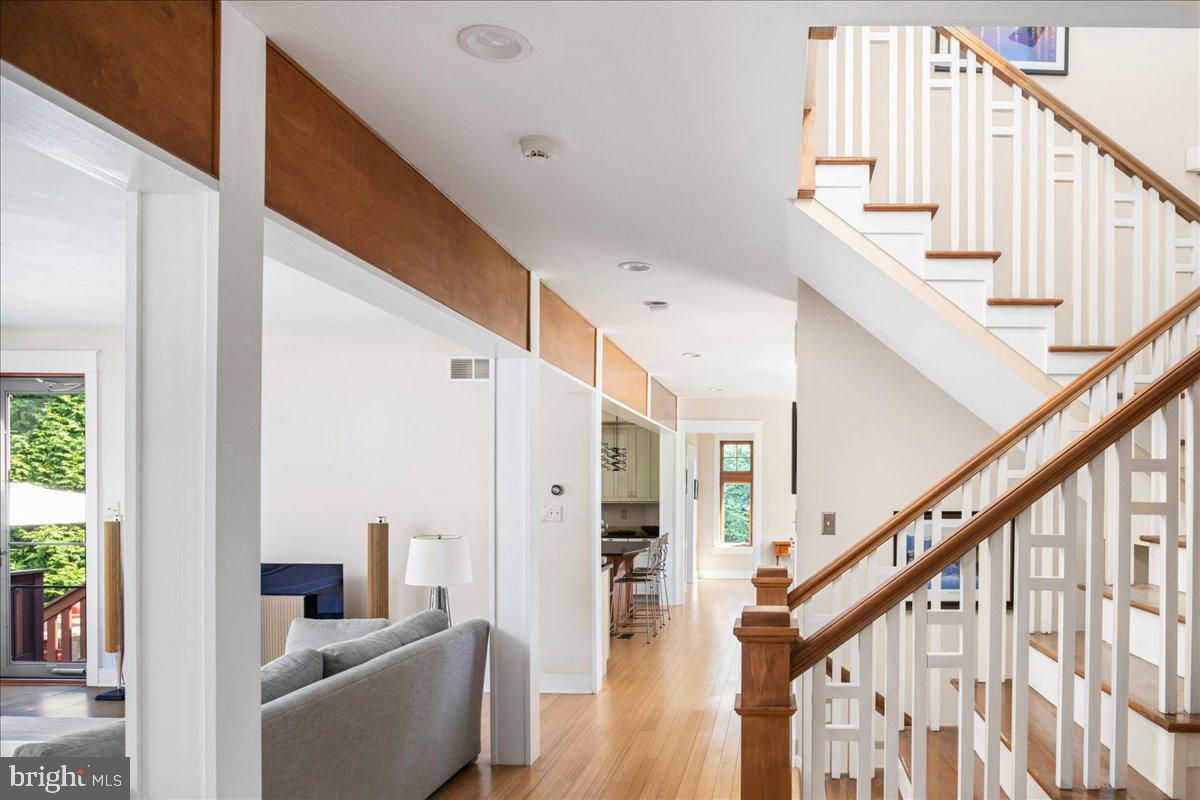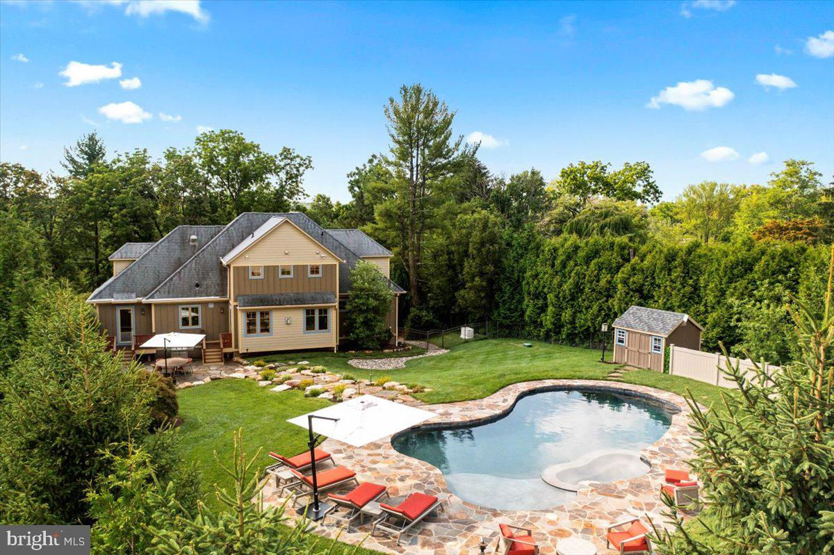 COMPLETELY PRIVATE HALF ACRE LOT IN DOYLESTOWN BOROUGH WITH AN INCREDIBLE POOL AND TRULY UNIQUE HOME. This remarkable modern Craftsman home has been meticulously designed and maintained. Situated on a completely private ½ acre lot on a quiet, non-through street with a custom pool and awe-inspiring landscaping. The owners acquired the adjacent lot, merging the two lots to create this exceptional refuge. The home is custom built using exceptional quality in materials and systems, the current owners continued the integrity with every improvement. Boasting 4 bedrooms and 4 baths, space for an elevator, this home greets you with a grand mahogany front porch inviting you to relax and unwind. Inside, the open design and abundance of natural light create a welcoming atmosphere with serene views from every window. The Great Room takes center stage, featuring a gas fireplace with floor-to-ceiling artisan masonry, the windows have been replaced with larger windows for enhanced visual appeal, light and window seats to enjoy the view. The kitchen and dining area harmoniously combine, optimizing the flow and design offering views outside of the front and back of the home. The kitchen includes a large island, plenty of cabinet space, double oven, walk-in pantry. On the main floor there is a versatile bedroom and full bath that could be converted to a primary suite or used as a main floor office. Additionally, the main floor includes a computer room, large mudroom, laundry room and abundant closet space. The second floor has an open staircase with skylight, a lovely light-filled primary bedroom with beautifully updated ensuite bath, 2 additional bedrooms with attractive architectural details, full bath, great closet and storage space. The lower level has an additional family room, French doors to an office or guest bedroom and ensuite bath and a 2nd mudroom at the garage entrance. New whole house generator. Step into the meticulous landscaped outdoor oasis, a private haven enveloped by mature trees, exquisite landscaping, and hardscaping. Relax on the stone patio or follow the stone walkway to the in-ground pool, a marvel of beauty and peacefulness. The saltwater pool includes swim jets and a spa, all app based and easy to use. The extraordinary hand cut stonework patio and pool surround is magnificent. Designed with sustainability and high performance in mind, natural materials used for walkways and patios, Geothermal HVAC system, Bamboo floors throughout the main living spaces and bedrooms on all 3 floors. Space for an elevator, if desired. This impressive home is a private refuge while still being just a stroll away from of all the wonderful amenities Doylestown borough has to offer… restaurants, shopping, museums and more. With its impeccable design, prime location, and luxurious amenities this home is the epitome of modern living in Doylestown Borough.