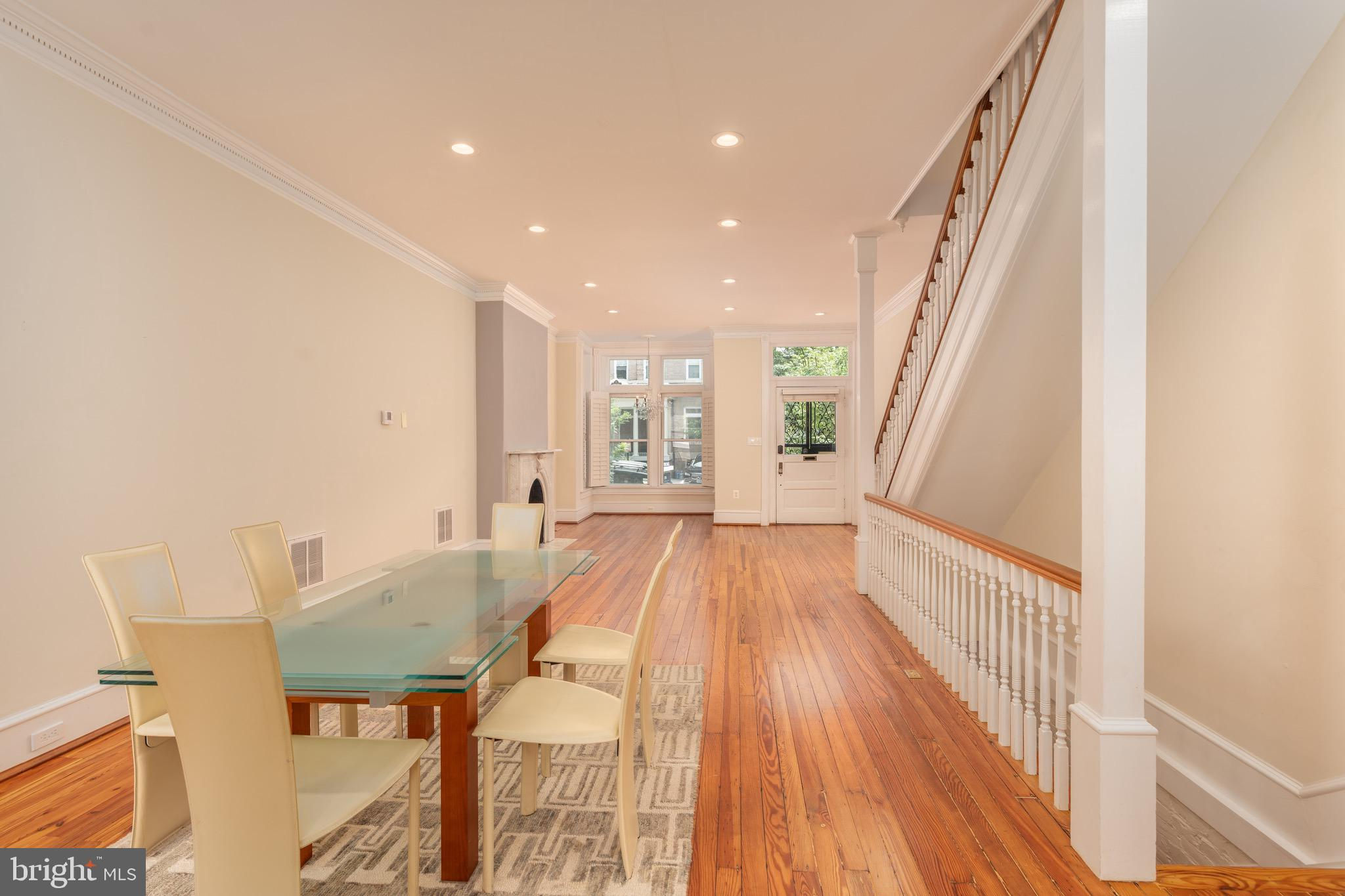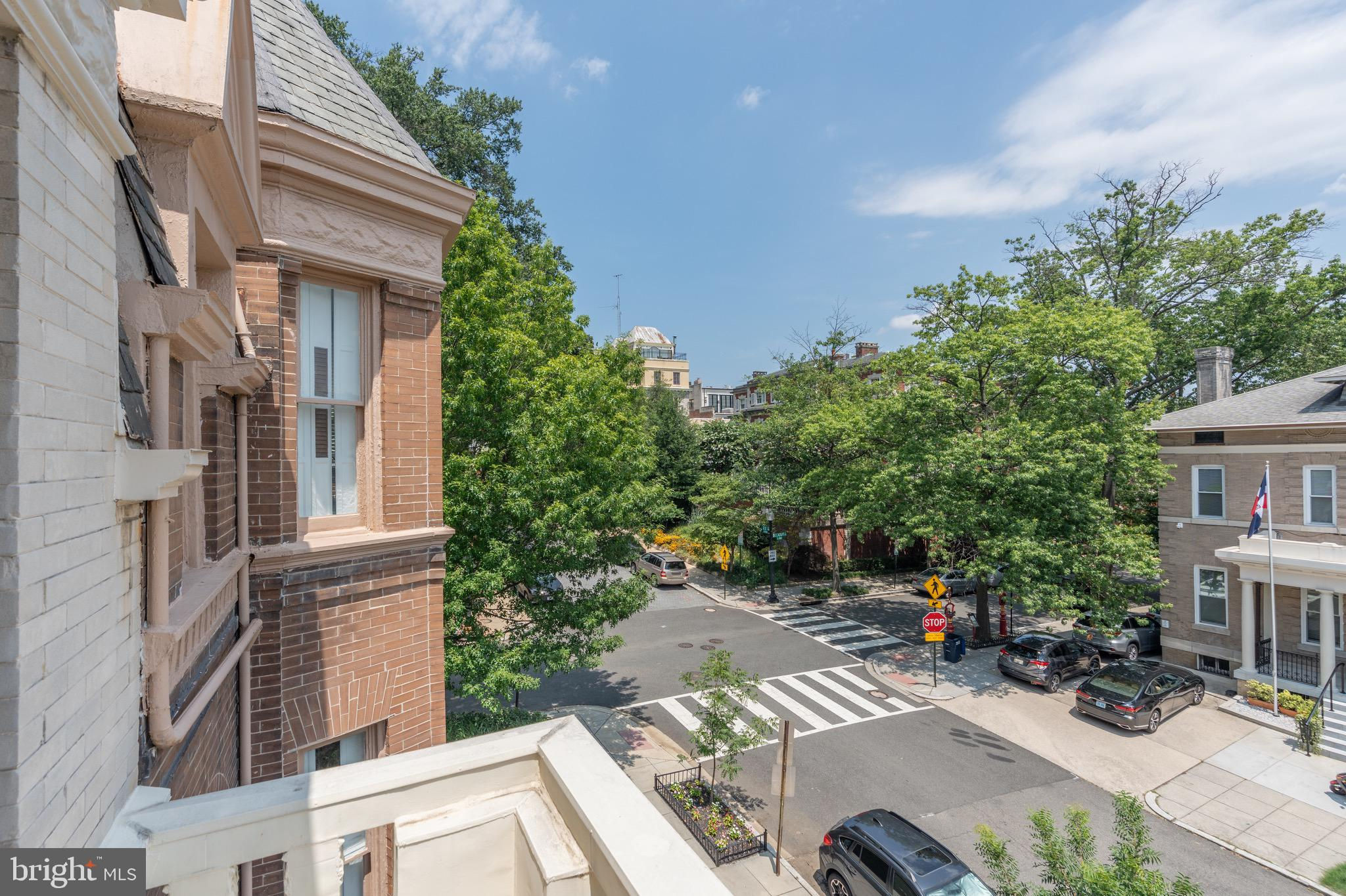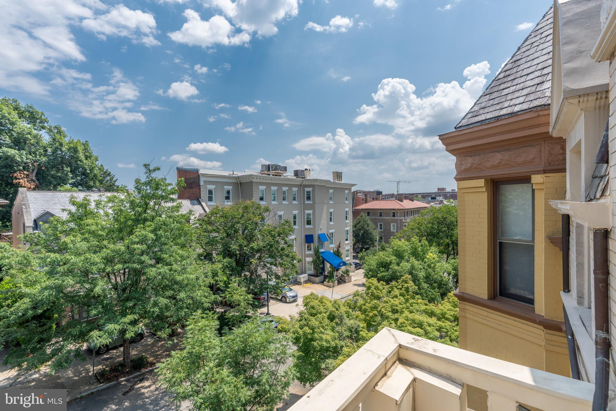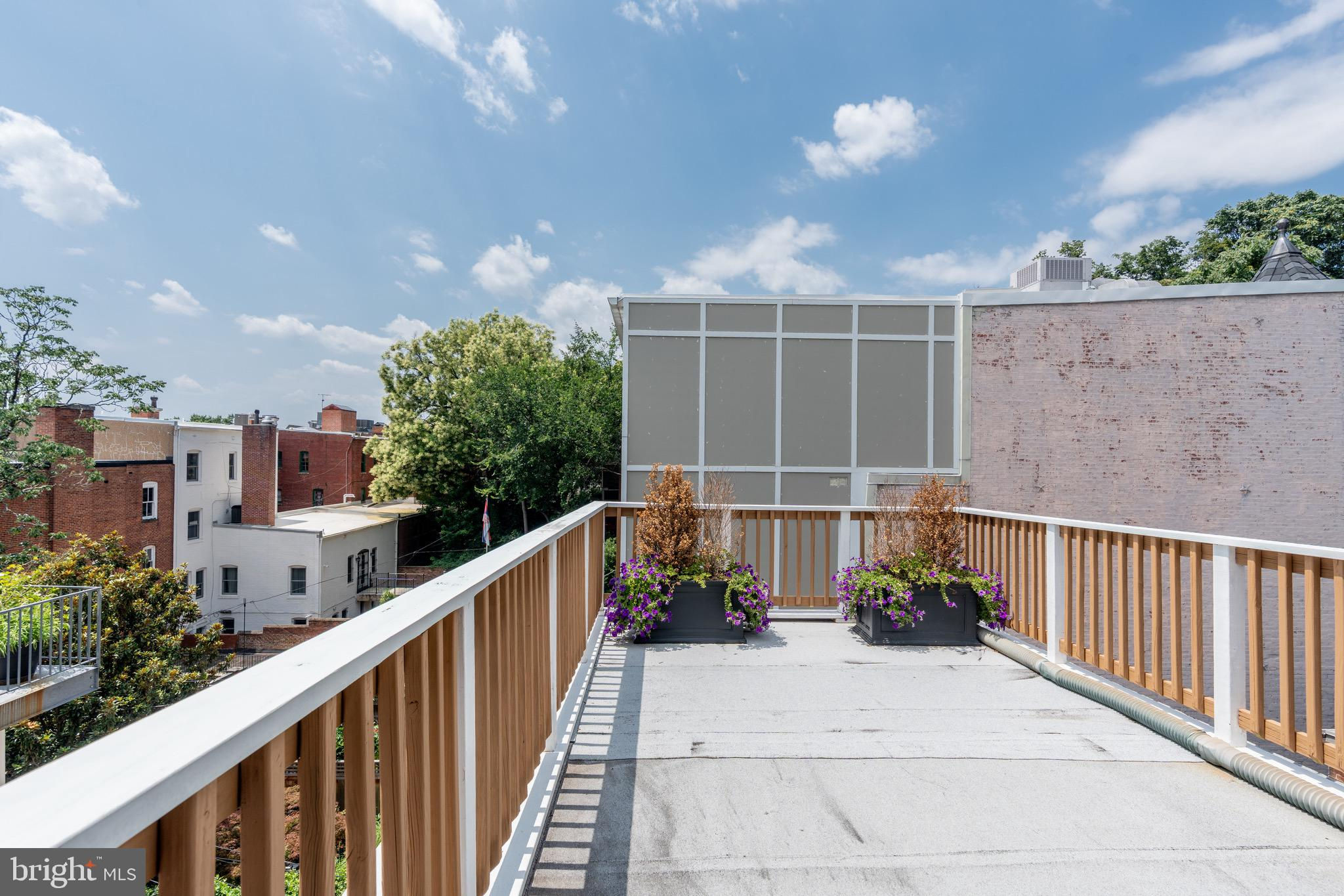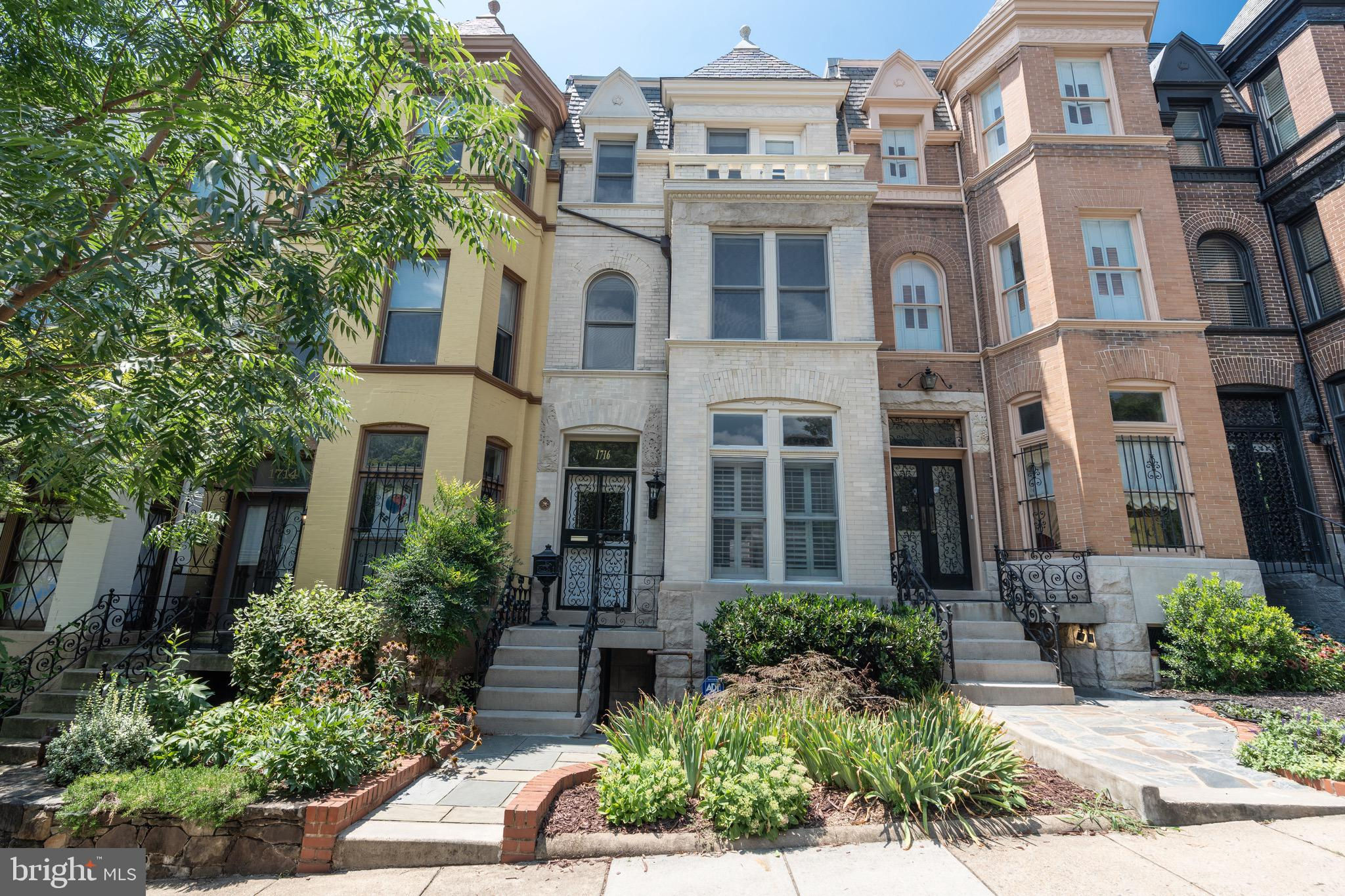 Set on a quiet, tree-lined block in Kalorama, this elegant 5-bedroom, 4.5-bath bayfront townhouse sits among embassies and grand historic residences. Spanning 3,000+ square feet across four impeccably finished levels, it pairs timeless architecture with modern polish. Originally built in the early 1900s and comprehensively reimagined in 2006 by noted builder Ethan Landis, the home showcases soaring ceilings, oversized windows, rich millwork, and refined moldings. Updated systems integrate seamlessly with its historic character for effortless everyday living. The gracious main level unfolds with a sun-filled living room, dining area, and an eat-in chef’s kitchen with custom cabinetry and premium appliances, opening directly to a private rear patio—perfect for morning coffee or evening entertaining. A convenient powder room serves this floor. The second level hosts a tranquil primary suite with generous closet space and a marble bath featuring dual vanities and a glass-enclosed walk-in shower. A second bedroom and hall bath complete the level. The top floor offers two additional bedrooms, a shared bath, and access to both a front-facing balcony and an expansive private rooftop terrace. The fully finished lower level includes a self-contained one-bedroom suite with full kitchen, bath, and separate entrance—ideal for guests, staff, or extended stays. Rich in architectural detail yet thoroughly updated for contemporary living, 1716 22d Street NW delivers refined, turn-key comfort just moments from Dupont Circle, the Spanish Steps, Embassy Row, and Rock Creek Park. A home without compromise.