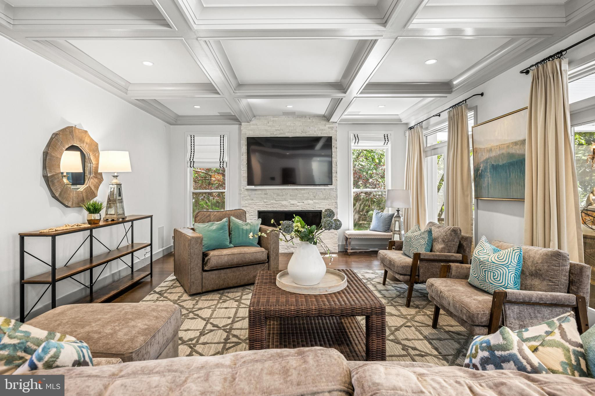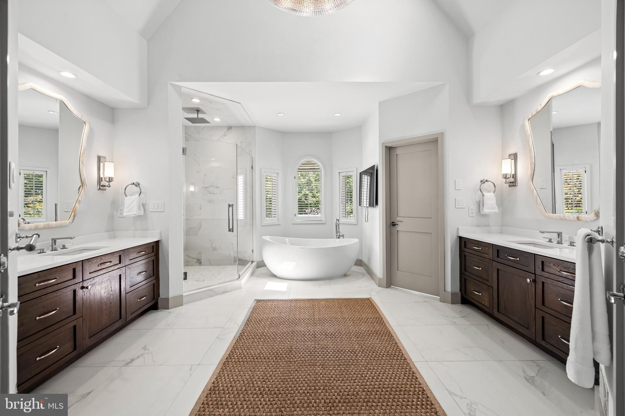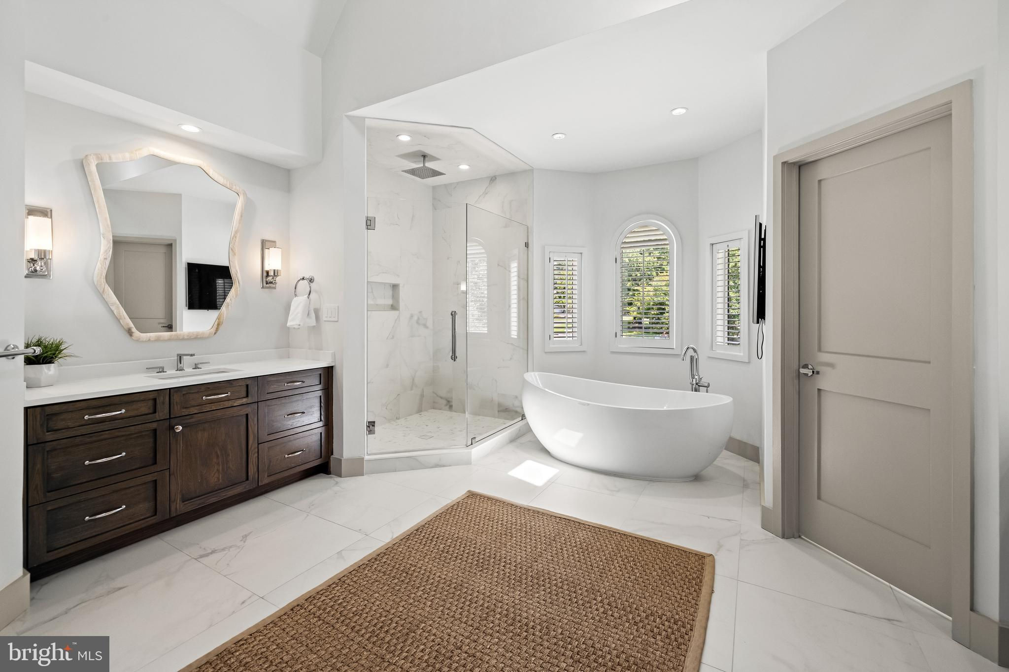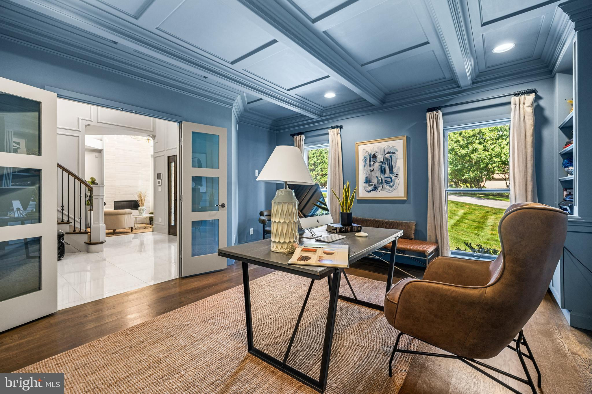 The look and feel of a new home! Built in 1990 but thoroughly renovated and updated by an interior designer with many fine features, finishes and modern amenities yet with a classic vibe. The vaulted Foyer welcomes guests with gleaming porcelain flooring and beautiful staircase. Modern French doors lead to a an office with coffered ceiling and built-ins. Vaulted Living Room with bay window and gas fireplace in porcelain tiled chimney wall flows to the formal Dining Room with French doors to a walled garden. The gourmet Kitchen with white Shaker cabinets, quartz counters, Viking appliances and large breakfast area flows to the Family room with coffered ceiling, gas fireplace and surround sound. French doors lead to a stunning elevated covered porch with a Wolf gas grill cooking center, retractable screens and ceiling mount heaters. Porcelain tiled Powder Room, custom fitted Laundry Room and 3-car Garage complete the main level. A sumptuous vaulted Primary Bedroom with fireplace and luxurious vaulted spa Bath shares the upper level with 3 additional Bedrooms, 2 Baths and a Study with custom built-ins, access to the Sun Deck and library ladder to a Loft. The walk-out lower level includes a Rec Room with fireplace, surround sound, French doors to patio and wet bar. A glass wall with sliding doors to an Exercise Room, Bedroom 5 and full Bath. The Utility Room is fitted out with state-of-the-art systems. Outdoor venues include a fenced back yard with firepit and dog run, lower level covered patio, main level covered porch and upper level sun deck. Perfect for large scale entertaining or intimate family gatherings- inside and out.