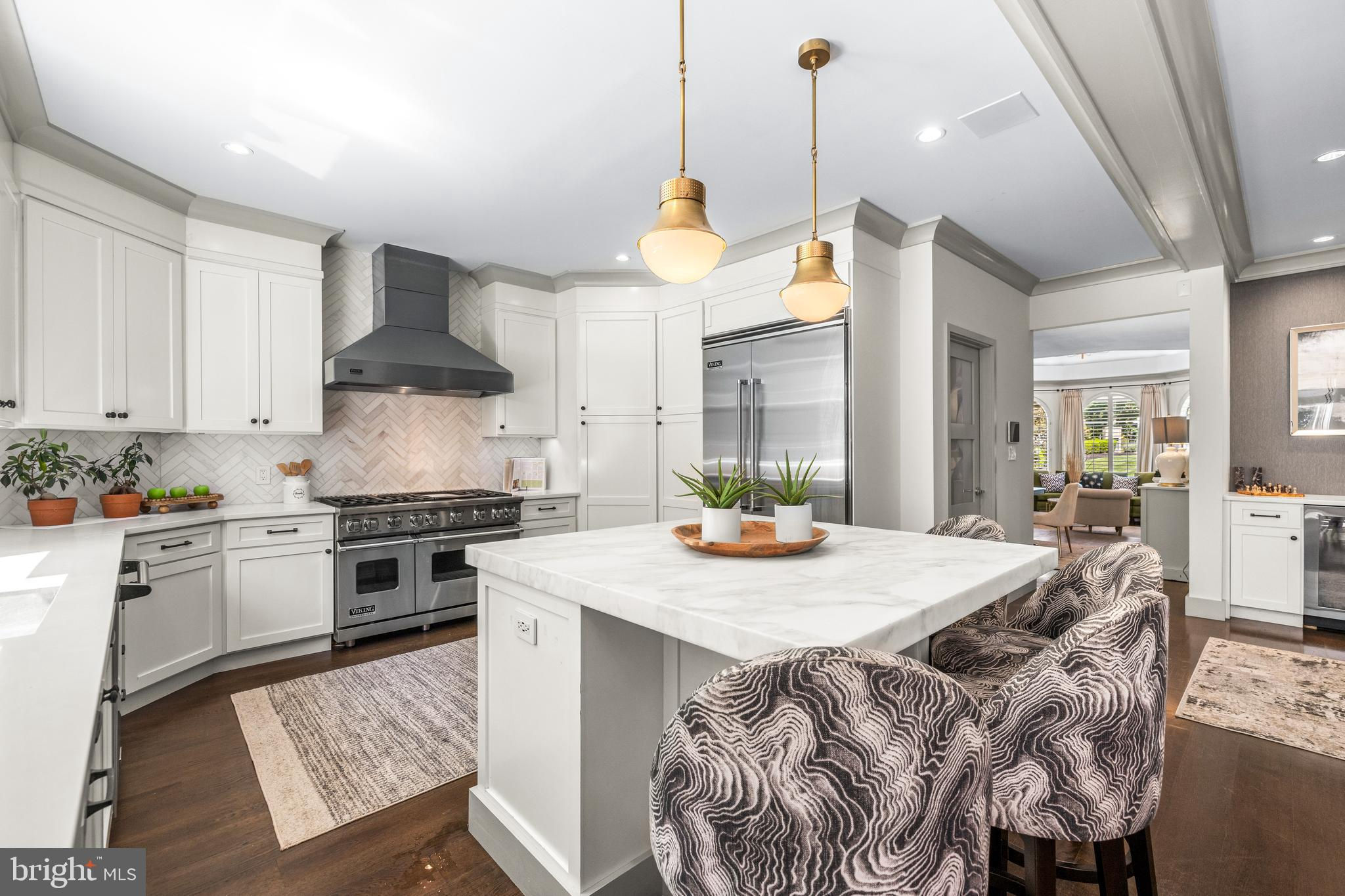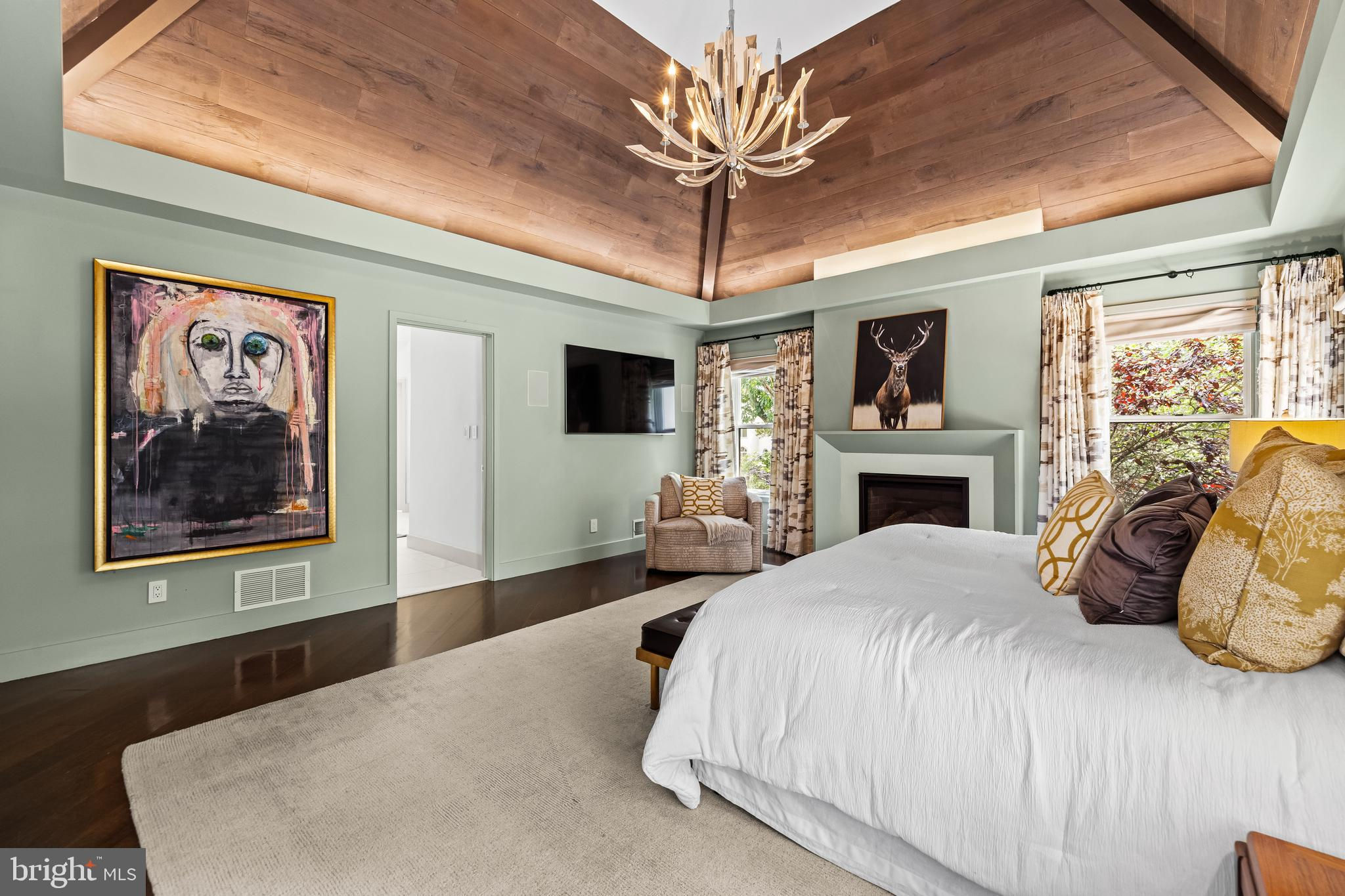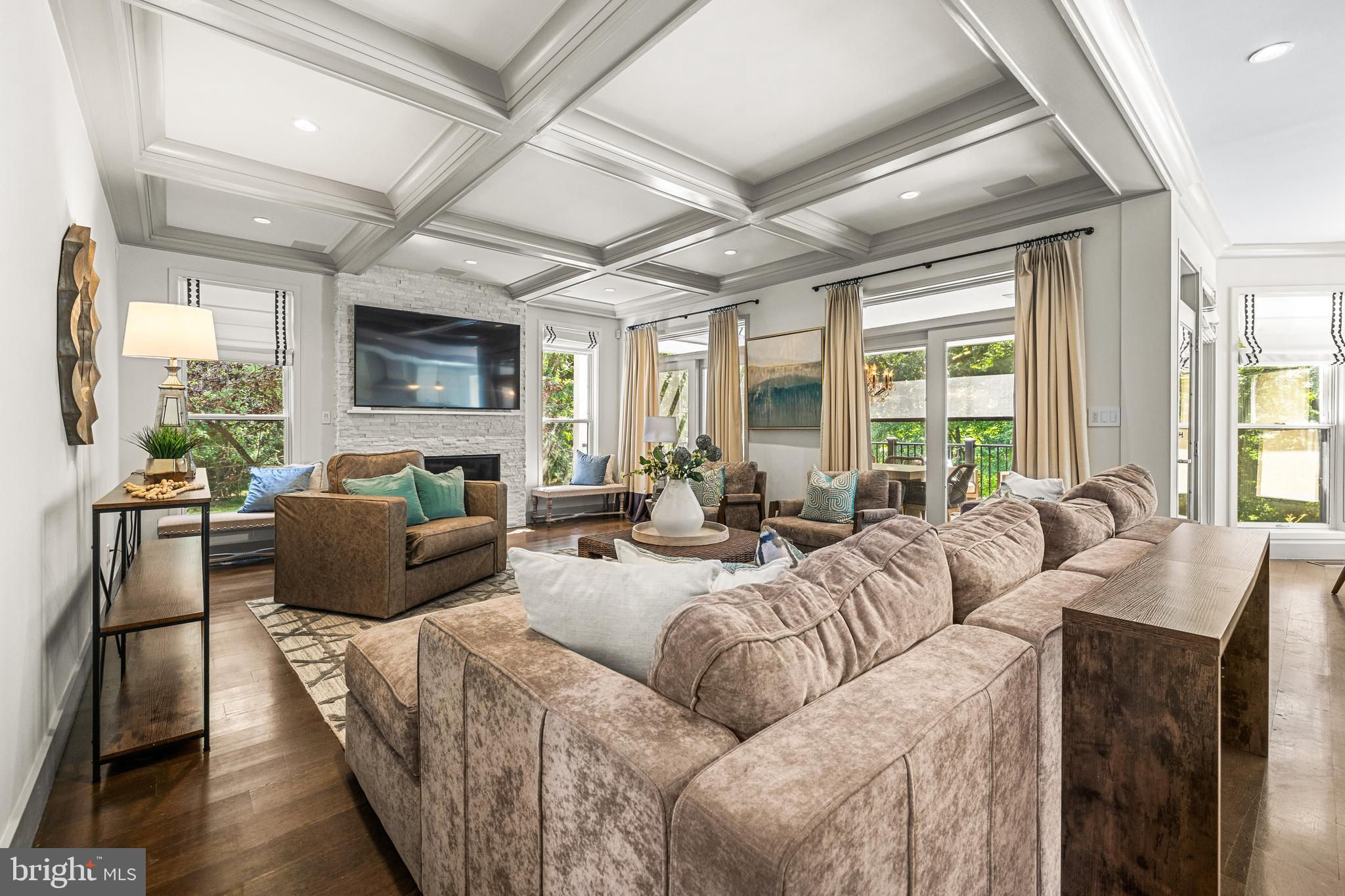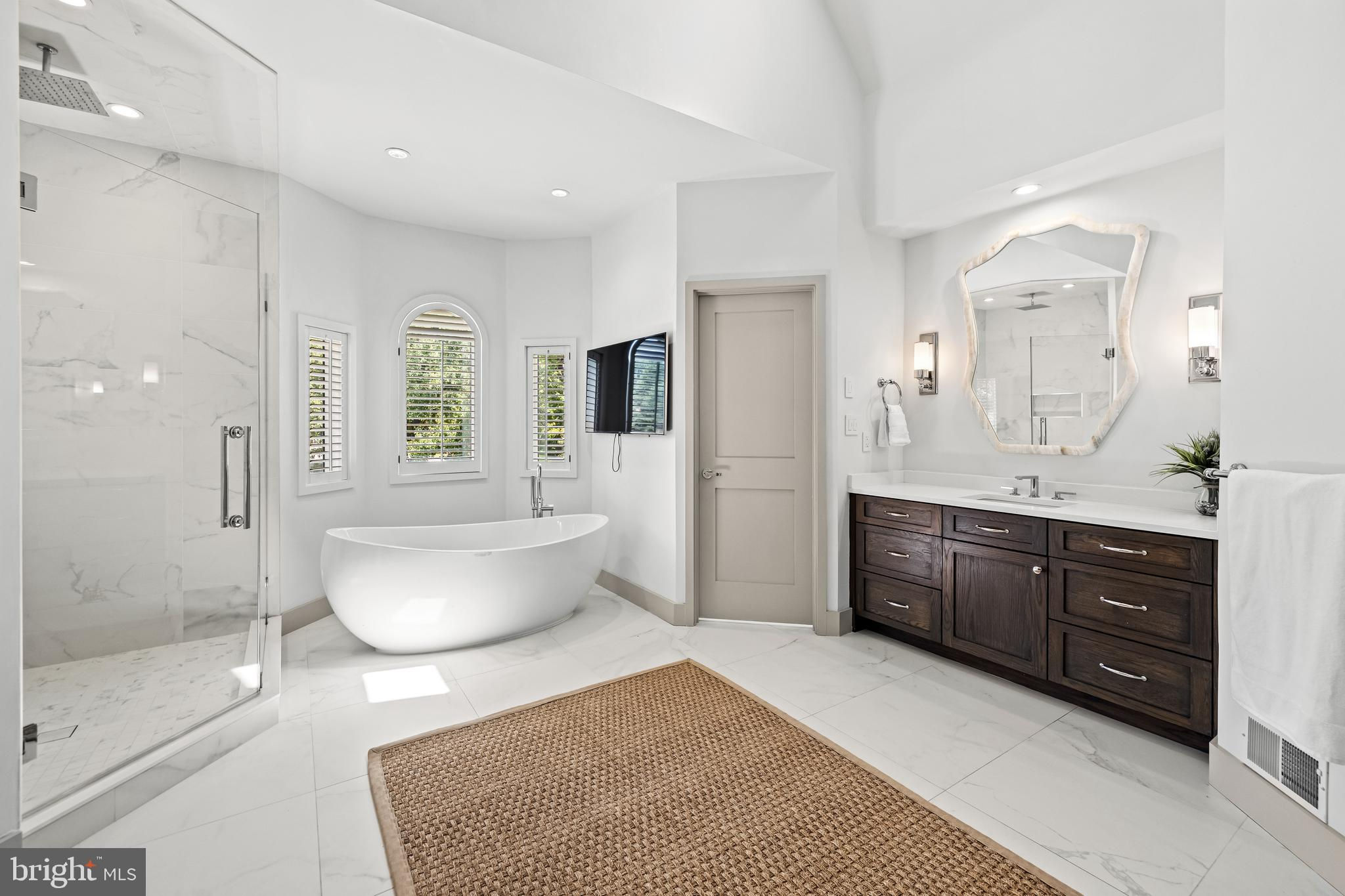The look and feel of a new home! Built in 1990 but thoroughly renovated and updated by an interior designer with many fine features, finishes and modern amenities yet with a classic vibe. The vaulted Foyer welcomes guests with gleaming porcelain flooring and beautiful staircase. Modern French doors lead to a an office with coffered ceiling and built-ins. Vaulted Living Room with bay window and gas fireplace in porcelain tiled chimney wall flows to the formal Dining Room with French doors to a walled garden. The gourmet Kitchen with white Shaker cabinets, quartz counters, Viking appliances and large breakfast area flows to the Family room with coffered ceiling, gas fireplace and surround sound. French doors lead to a stunning elevated covered porch with a Wolf gas grill cooking center, retractable screens and ceiling mount heaters. Porcelain tiled Powder Room, custom fitted Laundry Room and 3-car Garage complete the main level. A sumptuous vaulted Primary Bedroom with fireplace and luxurious vaulted spa Bath shares the upper level with 3 additional Bedrooms, 2 Baths and a Study with custom built-ins, access to the Sun Deck and library ladder to a Loft. The walk-out lower level includes a Rec Room with fireplace, surround sound, French doors to patio and wet bar. A glass wall with sliding doors to an Exercise Room, Bedroom 5 and full Bath. The Utility Room is fitted out with state-of-the-art systems. Outdoor venues include a fenced back yard with firepit and dog run, lower level covered patio, main level covered porch and upper level sun deck. Perfect for large scale entertaining or intimate family gatherings- inside and out.