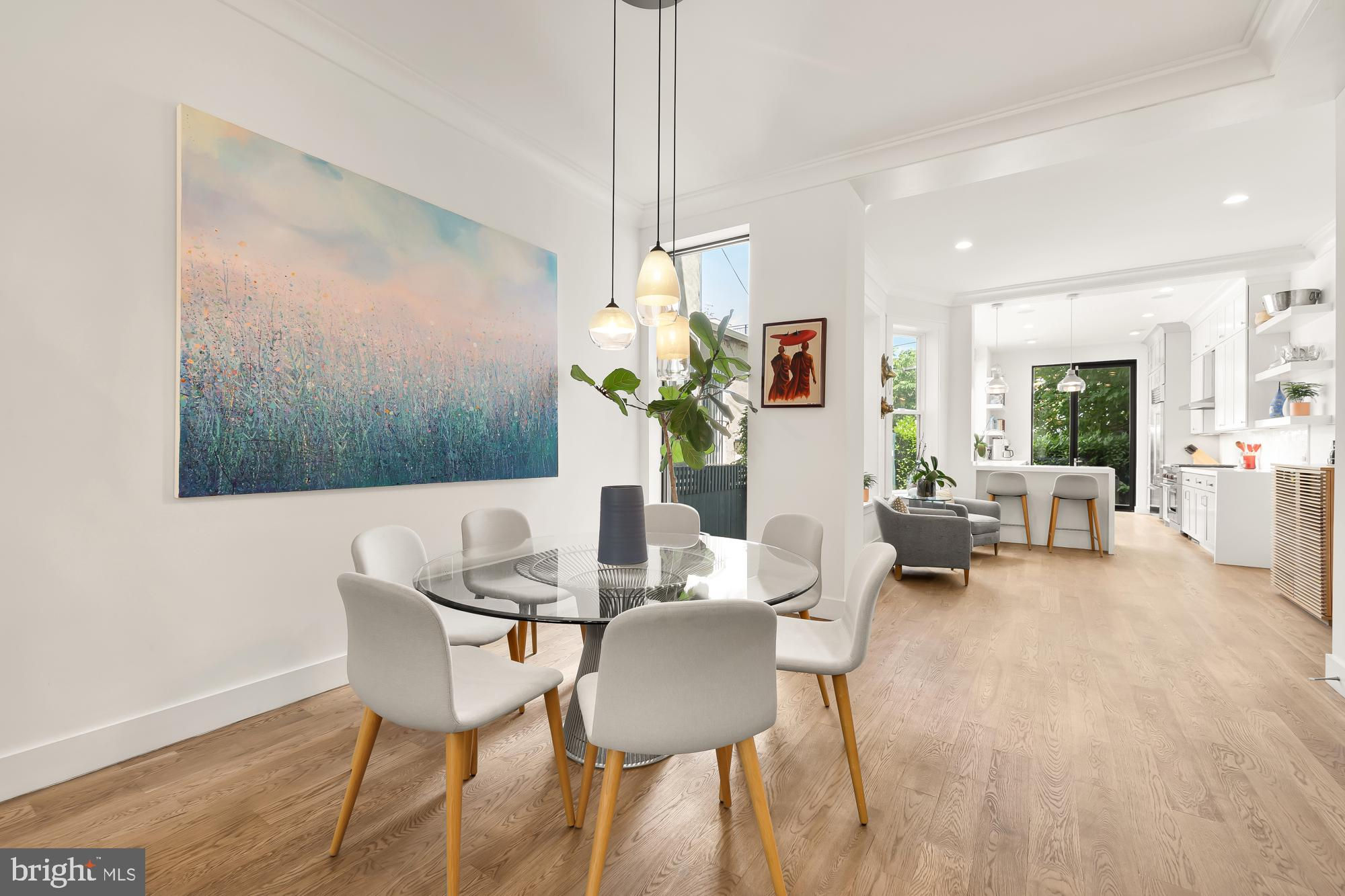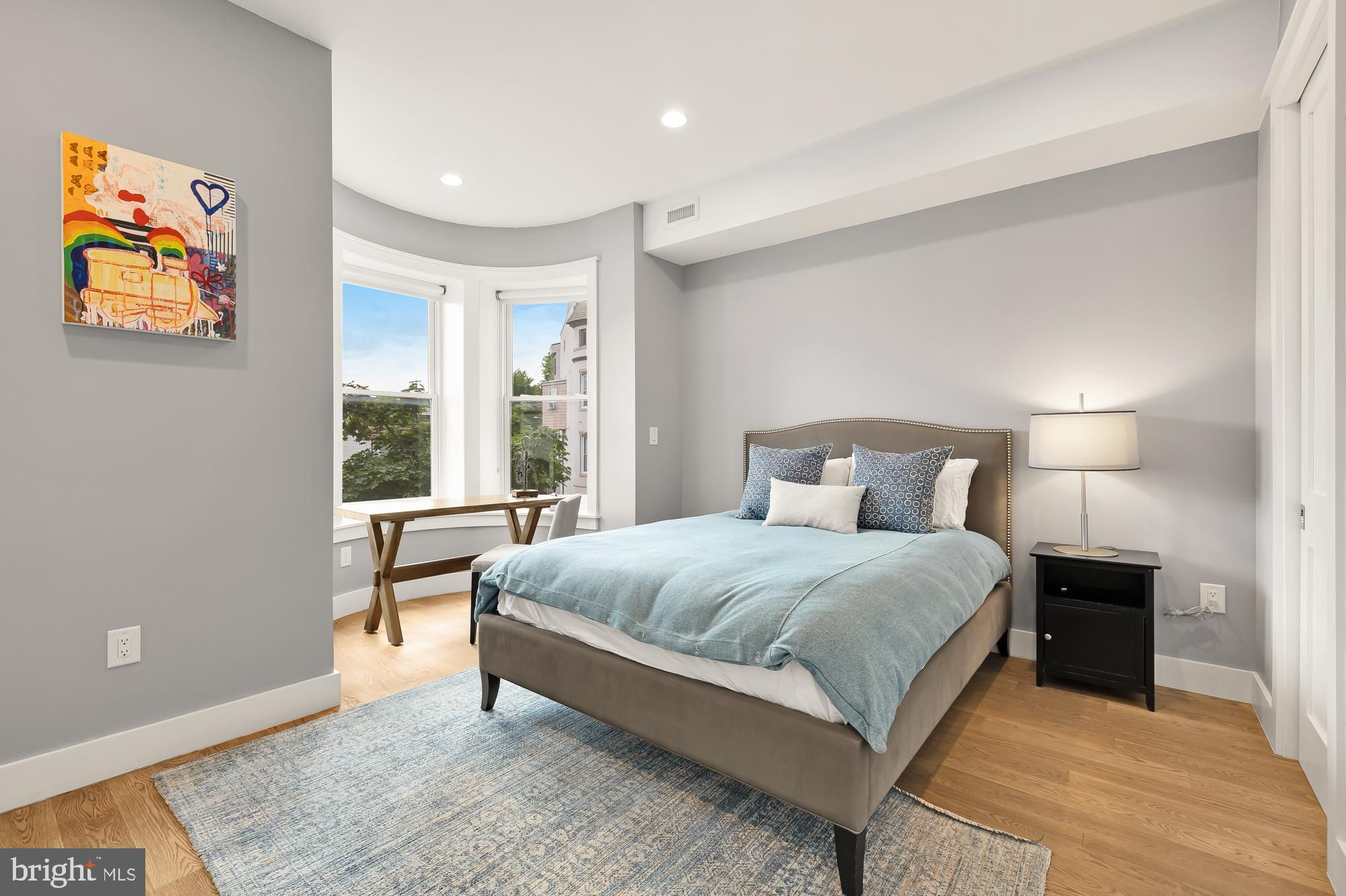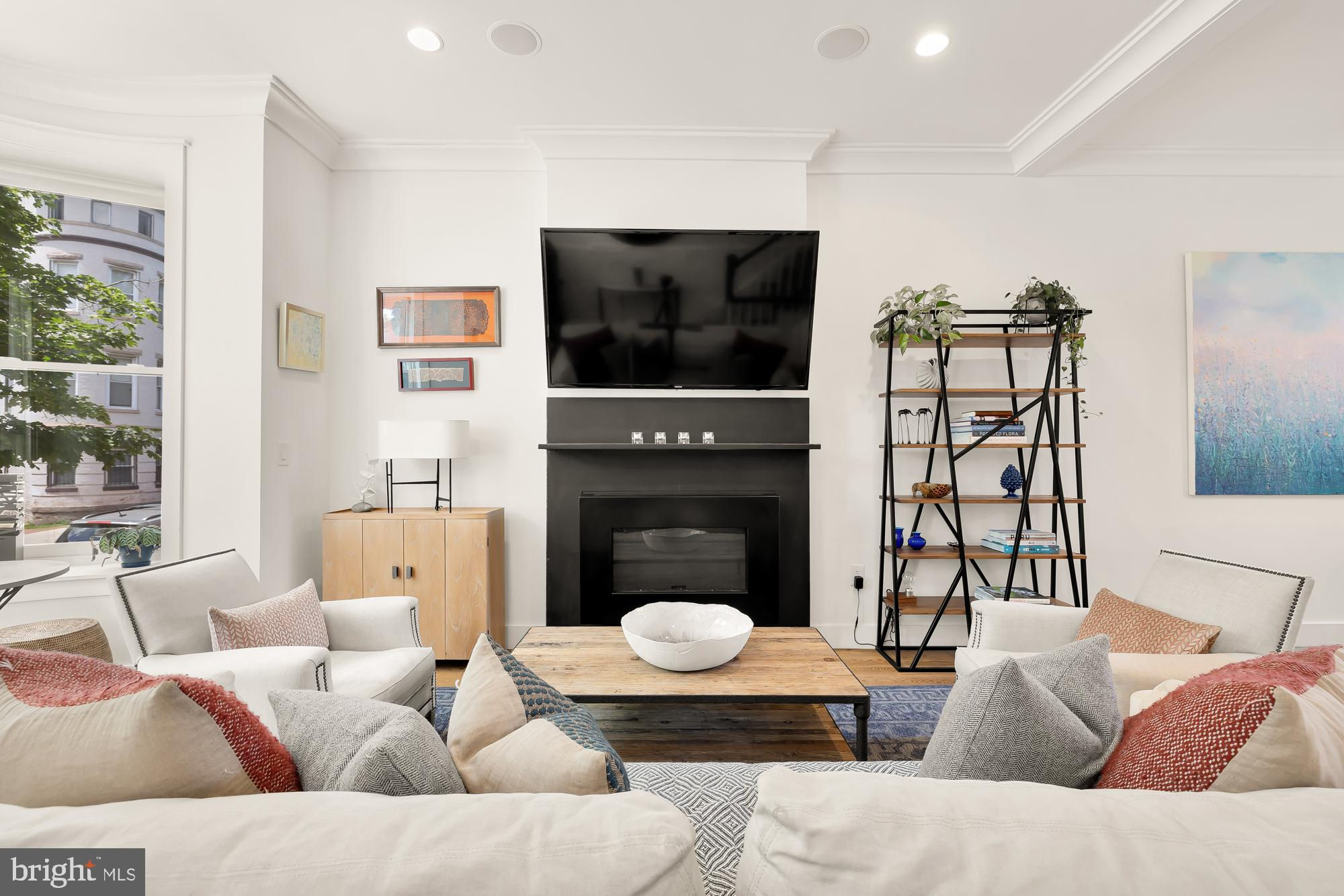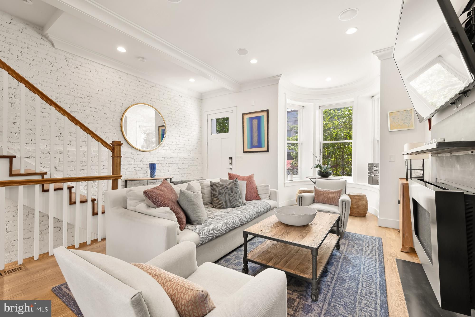 Welcome to this stunning townhouse at 1831 5th St NW, Washington, DC. This immaculate property offers over 3000 SF of luxurious living space. Conveniently located in LeDroit Park, a sought-after neighborhood, this townhouse offers access to various dining, shopping, and entertainment options. With its modern design, spacious layout, and prime location, this property presents an exceptional opportunity for sophisticated urban living. This home boasts four bedrooms and 4.5 bathrooms throughout four sprawling levels, providing ample space for comfortable living and entertaining. As you step inside, you'll be greeted by a spacious and bright open interior featuring a seamless flow from room to room. The main level showcases a large living room with a gas fireplace, a dining area fitting a large table to fit eight and a modern kitchen with high-end appliances, sleek countertops, large picture frame window letting the inside in and an open layout that seamlessly transitions to the outdoors through the floor to ceiling glass doors, making it perfect for hosting gatherings and dinner parties. On the third level, discover a bedroom with its own attached deck and a convenient hall bath, while the second bedroom boasts a spacious walk-in closet and ensuite bathroom. Completing this level is a laundry closet. Ascend to the fourth level, where the primary suite awaits, complete with a delightful dress room overlooking the sprawling deck. Indulge in the luxurious full bathroom with its inviting tub and shower, and enjoy the bedroom's custom closet systems and delightful window accents. The walk-out lower level, offering additional living space and a minibar, is perfectly suited for a cozy family room, a welcoming guest bedroom, and an extra full bathroom for added convenience and comfort. Two private parking spaces in the rear of the home complete this spectacular home. Don't miss the chance to make this exquisite townhouse your new home!