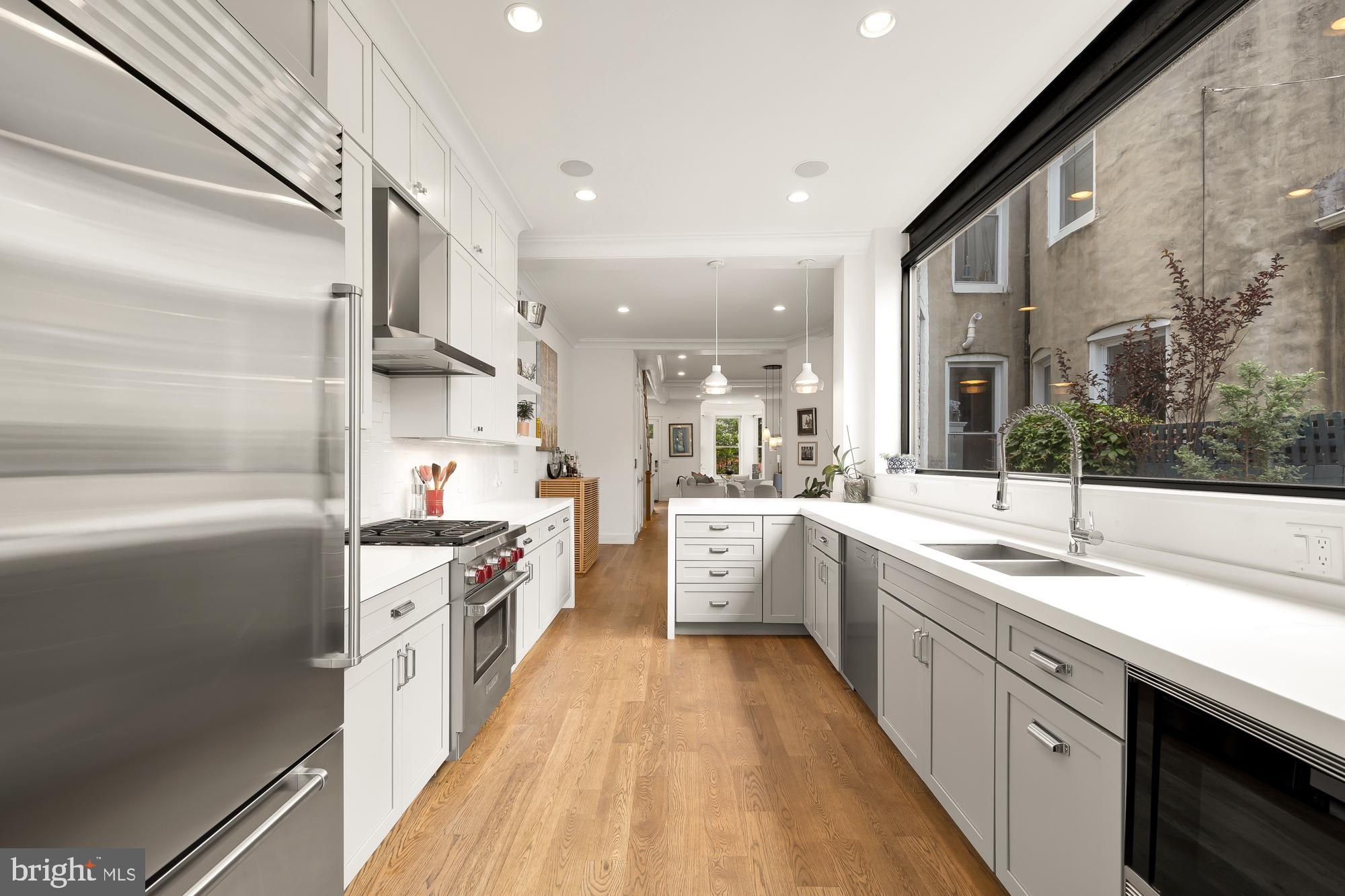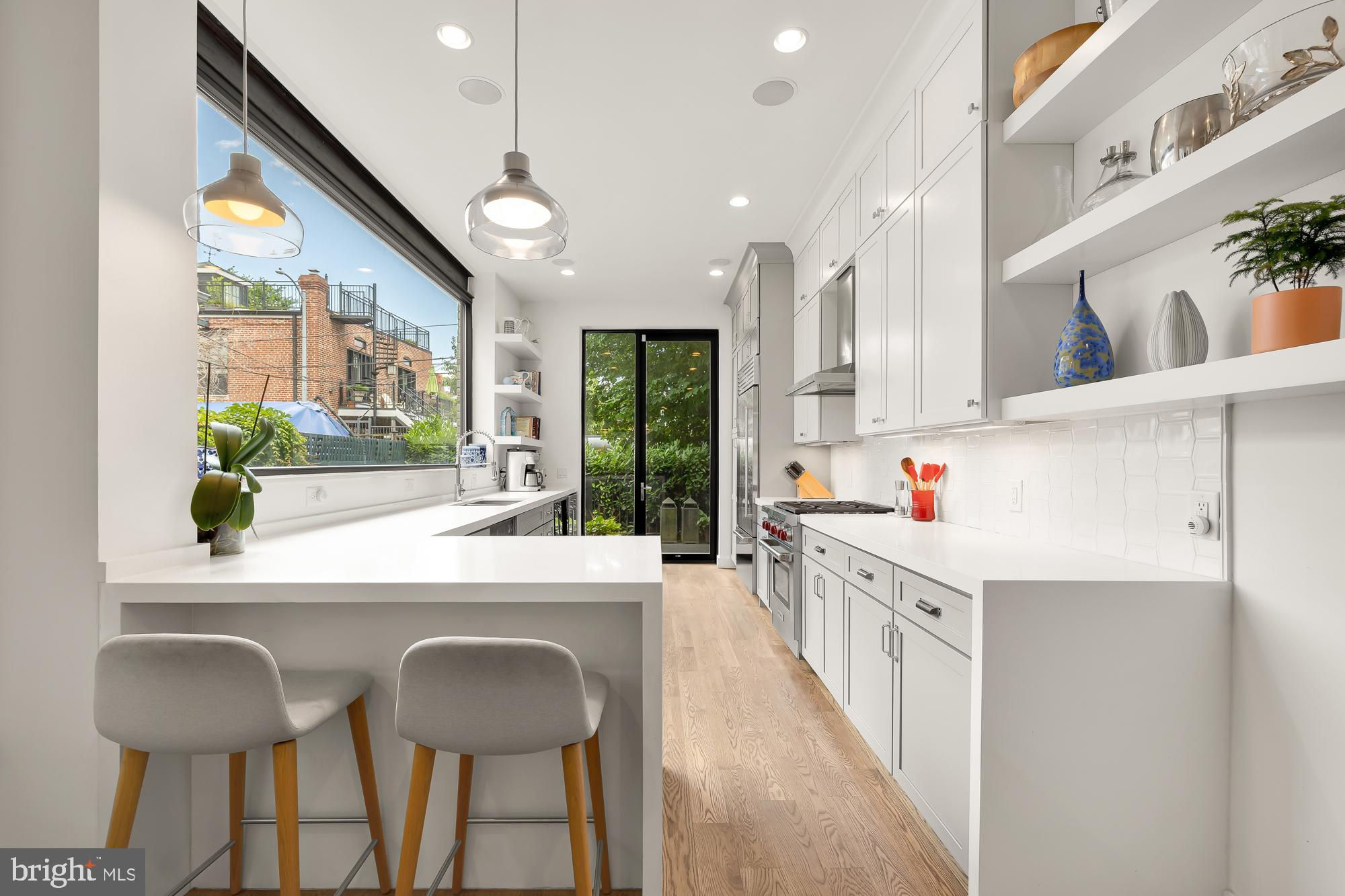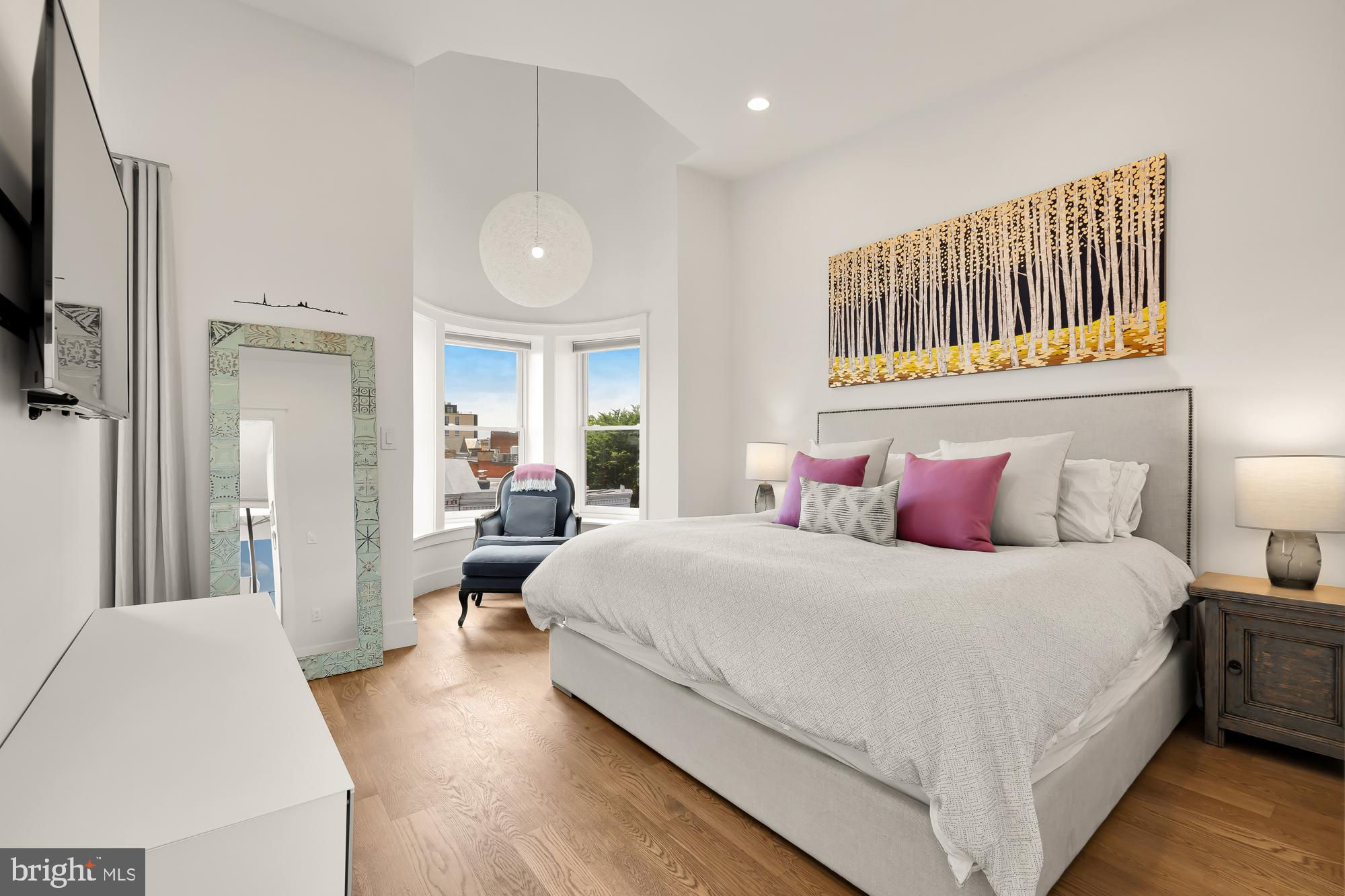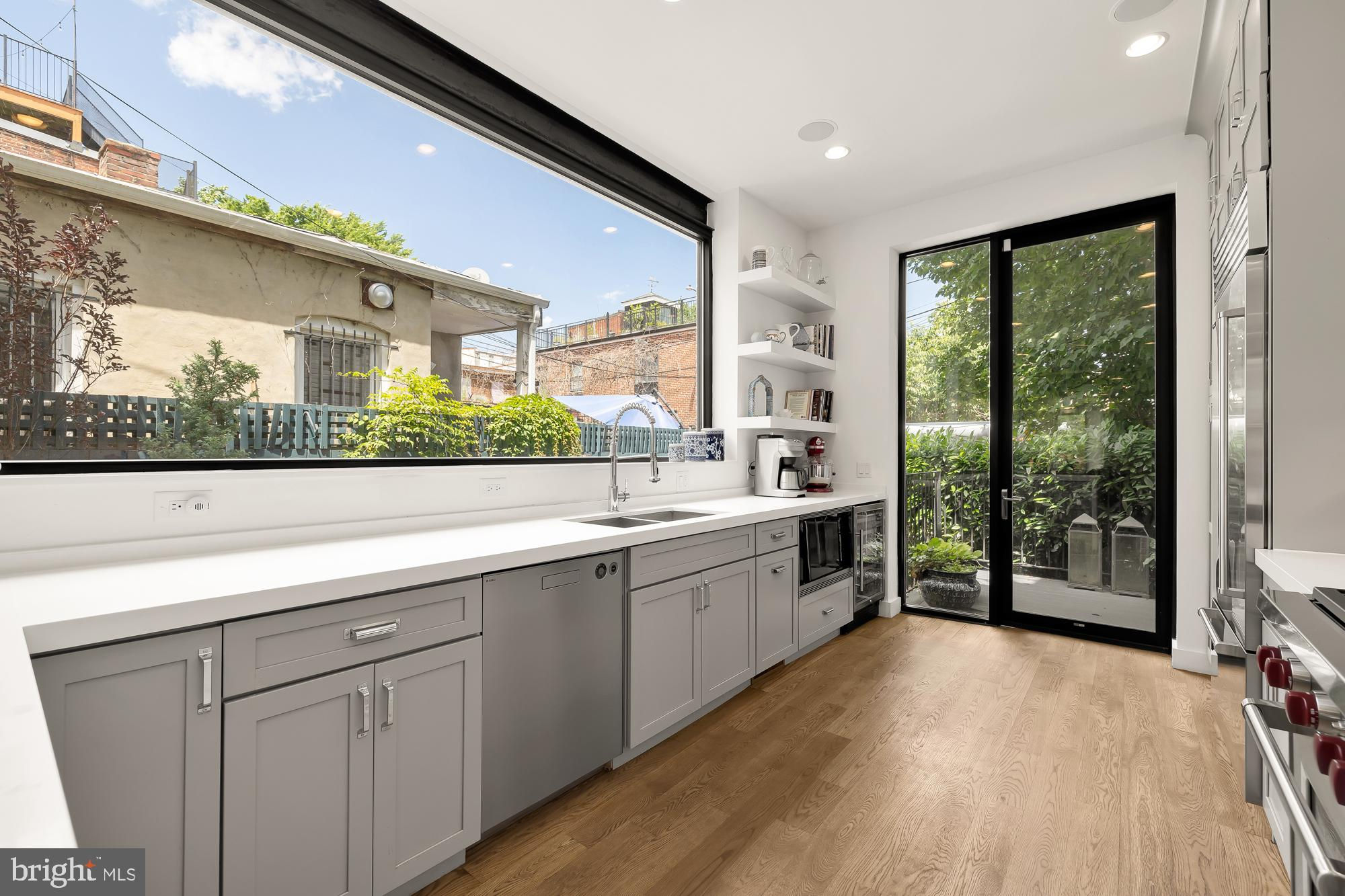 Welcome to this stunning townhouse at 1831 5th St NW, Washington, DC. This immaculate property offers over 3000 SF of luxurious living space. Conveniently located in LeDroit Park, a sought-after neighborhood, this townhouse offers access to various dining, shopping, and entertainment options. With its modern design, spacious layout, and prime location, this property presents an exceptional opportunity for sophisticated urban living. This home boasts four bedrooms and 4.5 bathrooms throughout four sprawling levels, providing ample space for comfortable living and entertaining. As you step inside, you'll be greeted by a spacious and bright open interior featuring a seamless flow from room to room. The main level showcases a large living room with a gas fireplace, a dining area fitting a large table to fit eight and a modern kitchen with high-end appliances, sleek countertops, large picture frame window letting the inside in and an open layout that seamlessly transitions to the outdoors through the floor to ceiling glass doors, making it perfect for hosting gatherings and dinner parties. On the third level, discover a bedroom with its own attached deck and a convenient hall bath, while the second bedroom boasts a spacious walk-in closet and ensuite bathroom. Completing this level is a laundry closet. Ascend to the fourth level, where the primary suite awaits, complete with a delightful dress room overlooking the sprawling deck. Indulge in the luxurious full bathroom with its inviting tub and shower, and enjoy the bedroom's custom closet systems and delightful window accents. The walk-out lower level, offering additional living space and a minibar, is perfectly suited for a cozy family room, a welcoming guest bedroom, and an extra full bathroom for added convenience and comfort. Two private parking spaces in the rear of the home complete this spectacular home. Don't miss the chance to make this exquisite townhouse your new home!