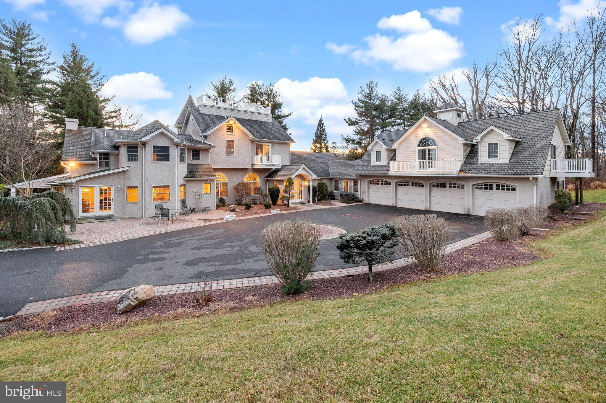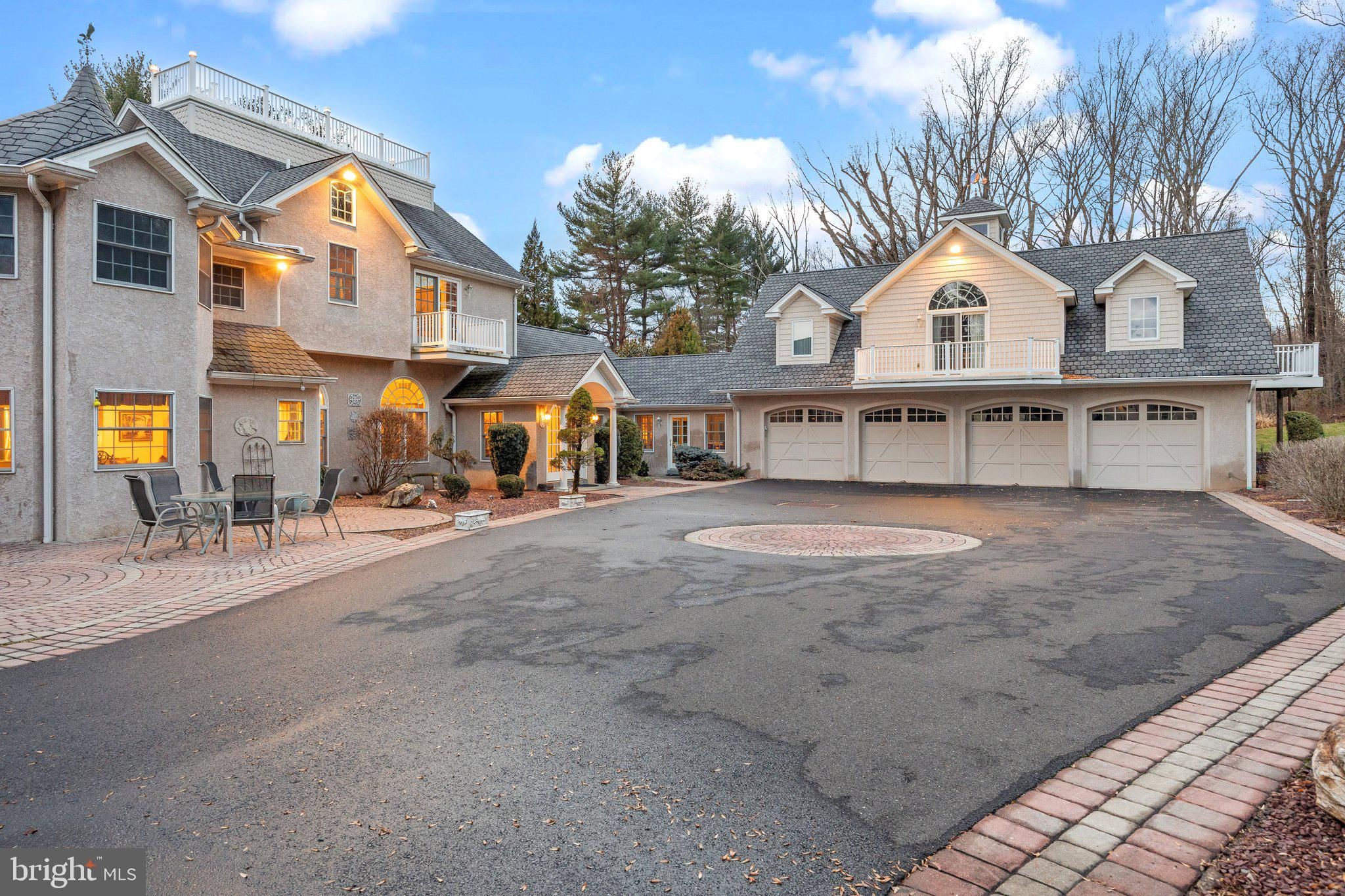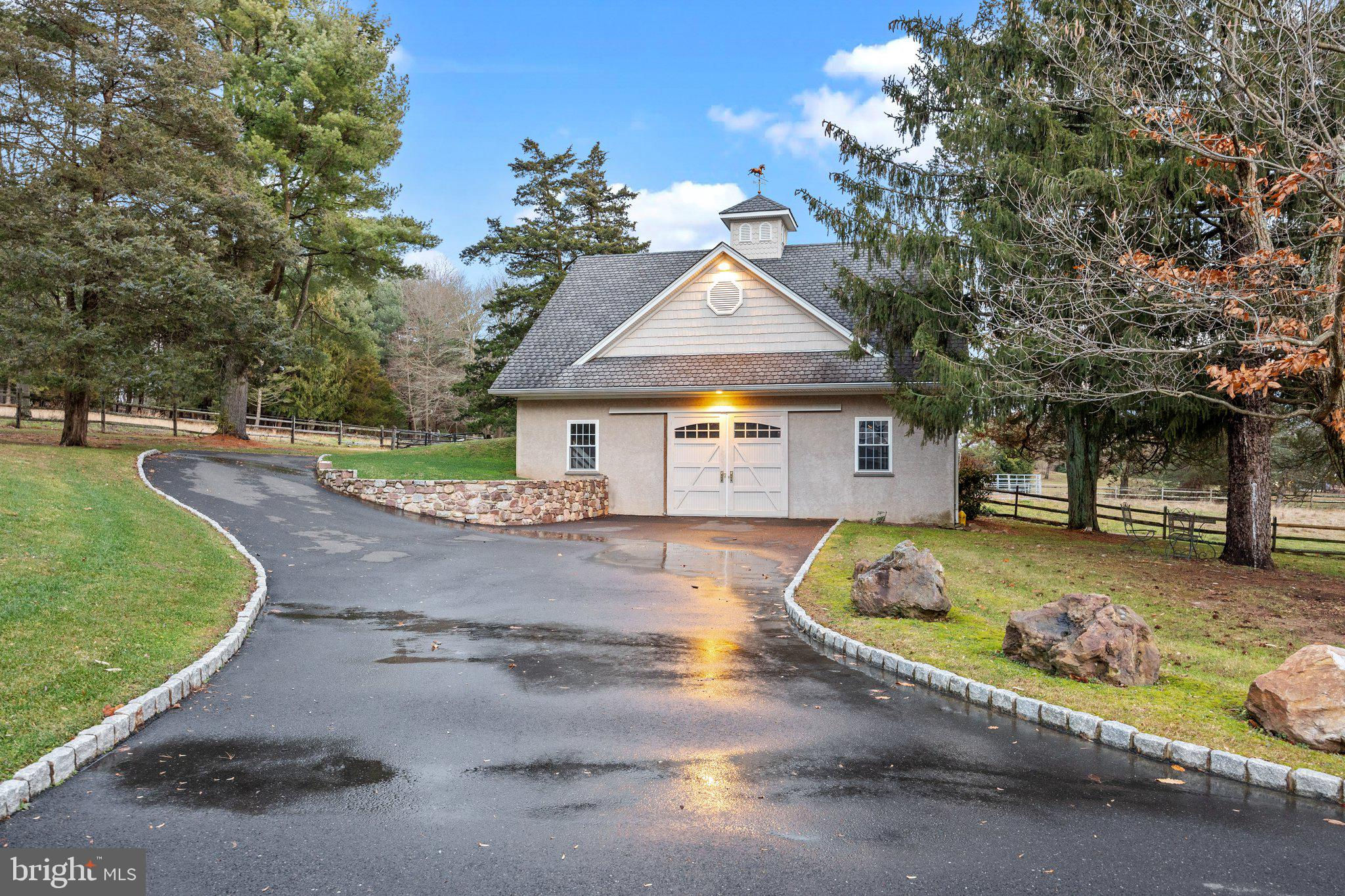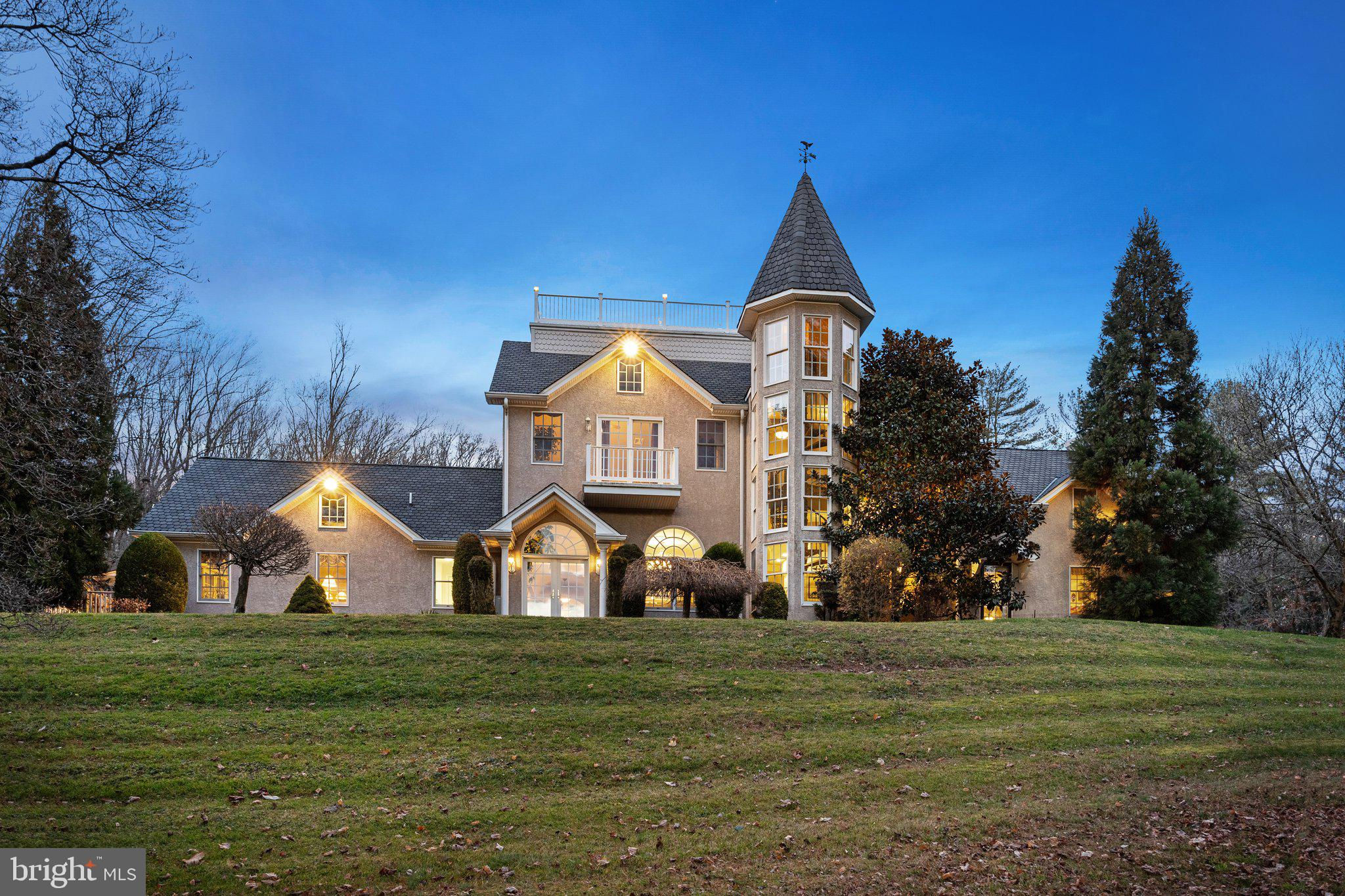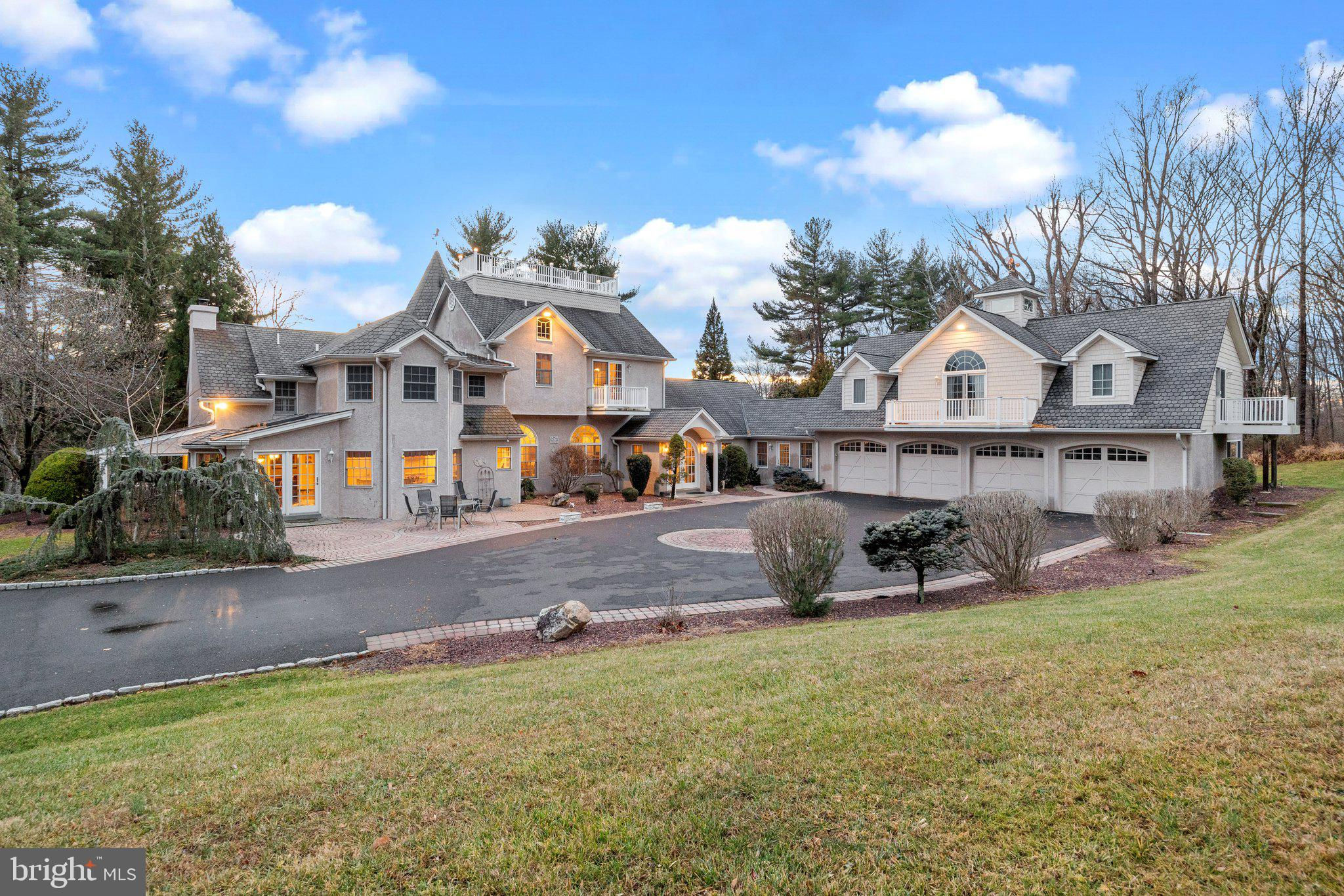 Nestled within the enchanting landscapes of New Hope, this unique 14.8-acre property beckons discerning home buyers with its secluded charm and exquisite craftsmanship. A bespoke manor, spanning six bedrooms and five-and-a-half bathrooms, unfolds over 7,000 sq ft of luxurious living space. A picturesque drive along a tree-lined pathway introduces you to this country haven, surrounded by manicured hedges and lush paddocks. Enter through glass French doors into a world of artisanal hardwoods and refined marble tiles. The gourmet kitchen boasts stainless steel appliances, granite countertops, and a charming breakfast nook. A wood-burning fireplace graces the formal dining room, perfect for hosting elegant dinner parties. The main floor primary suite, a private retreat with an exclusive terrace and indoor hot tub room, adds an extra layer of opulence. The expansive living room, adorned with a wet bar and gas fireplace, leads to a wrought-iron staircase ascending to the second-floor primary suite with plush carpeting and Juliet balconies. This suite features a large en-suite bath with dual marble vanities and a glass-enclosed marble shower. Two additional bedrooms, a pass-through den, and another bathroom complete the second floor. Above the heated four-car garage, an in-law apartment offers an open floor plan, a chef’s kitchen, and spacious living areas. Two graciously sized bedrooms with en-suite bathrooms flank a balcony-perched owner's suite. The four-stall barn, architecturally aligned with the custom home, includes a tack room, loft, and wash stall area. Just a few miles away from golf courses, restaurants, and major shopping, An unfinished basement featuring 10-foot ceilings – an ideal canvas for creating your dream space. Enjoy year-round comfort with 4-zone AC and 6 zones of radiant/forced air heat, ensuring personalized climate control throughout. Revel in the beauty of natural light streaming through high-quality Anderson 400 series windows and doors, accentuating the home's elegance. Ascend three floors on a custom spiral staircase to reach the crowning jewel – a unique Widow's Walk offering breathtaking views of Buckingham Mountain. Immerse yourself in the beauty of the surroundings from this exclusive vantage point, creating a daily retreat for contemplation and relaxation. The property extends its charm beyond the walls, with 6 acres of fenced pastures providing an idyllic setting for various outdoor activities. Whether you envision a serene escape or an entertainer's paradise, this home seamlessly blends thoughtful design with panoramic views, promising an unparalleled living experience.