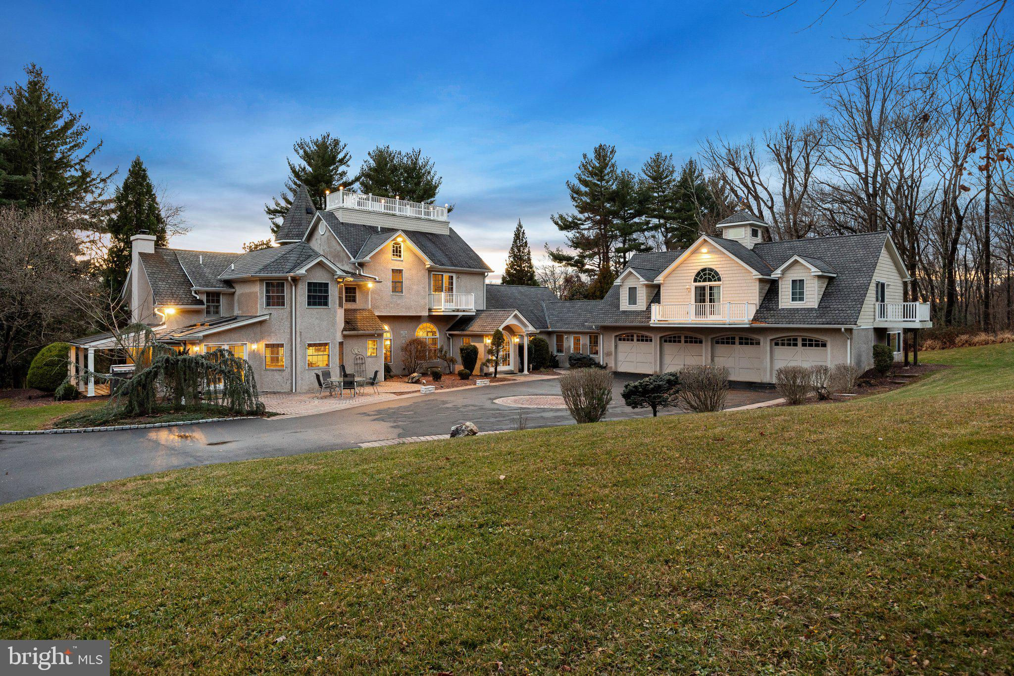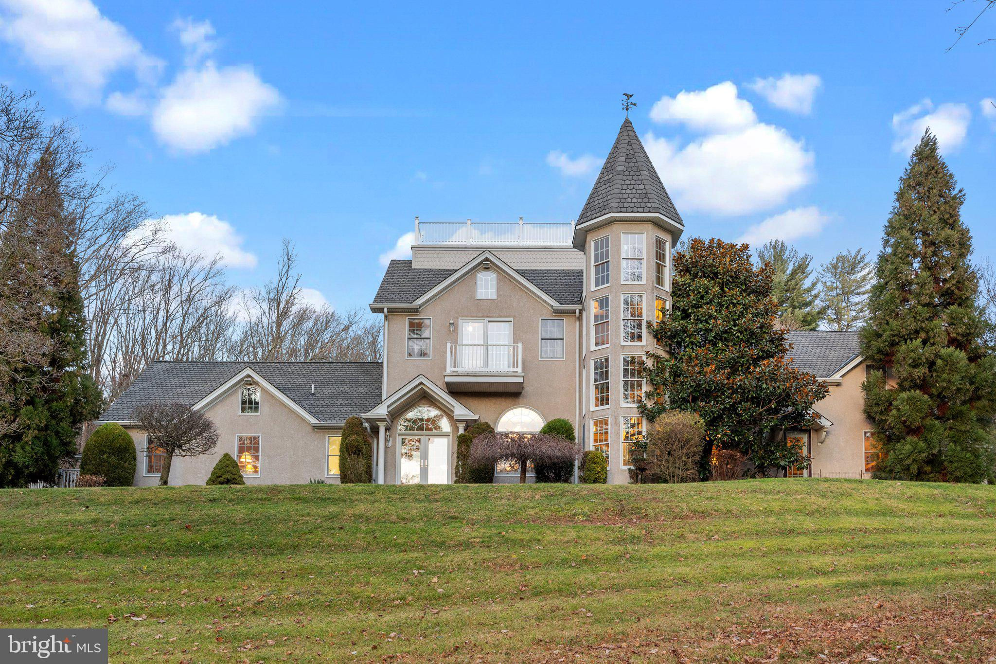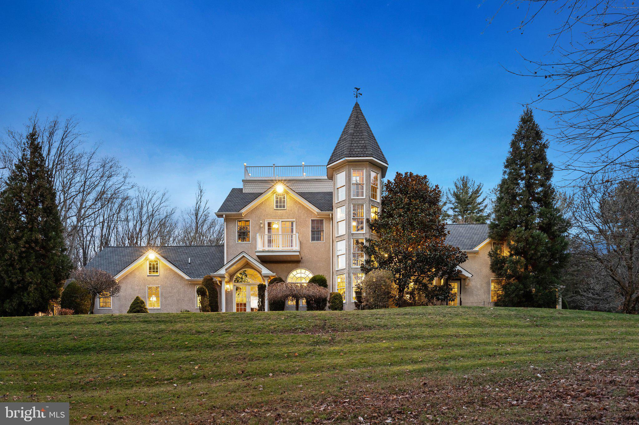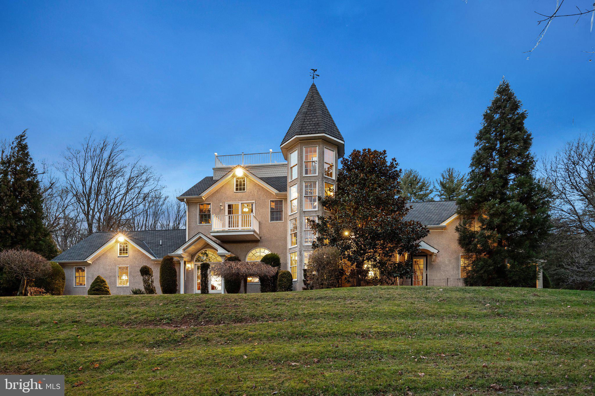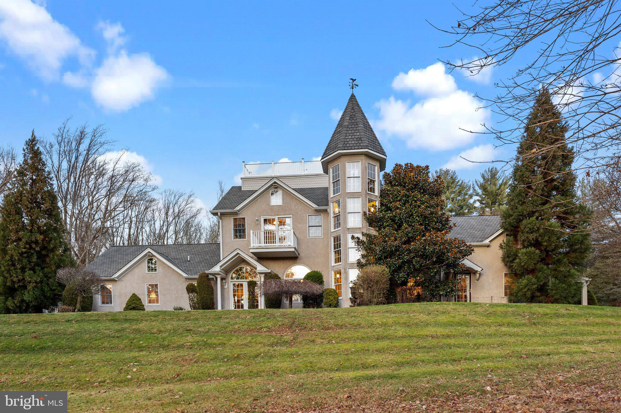 Nestled within the enchanting landscapes of New Hope, this unique 14.8-acre property beckons discerning home buyers with its secluded charm and exquisite craftsmanship. A bespoke manor, spanning six bedrooms and five-and-a-half bathrooms, unfolds over 7,000 sq ft of luxurious living space. A picturesque drive along a tree-lined pathway introduces you to this country haven, surrounded by manicured hedges and lush paddocks. Enter through glass French doors into a world of artisanal hardwoods and refined marble tiles. The gourmet kitchen boasts stainless steel appliances, granite countertops, and a charming breakfast nook. A wood-burning fireplace graces the formal dining room, perfect for hosting elegant dinner parties. The main floor primary suite, a private retreat with an exclusive terrace and indoor hot tub room, adds an extra layer of opulence. The expansive living room, adorned with a wet bar and gas fireplace, leads to a wrought-iron staircase ascending to the second-floor primary suite with plush carpeting and Juliet balconies. This suite features a large en-suite bath with dual marble vanities and a glass-enclosed marble shower. Two additional bedrooms, a pass-through den, and another bathroom complete the second floor. Above the heated four-car garage, an in-law apartment offers an open floor plan, a chef’s kitchen, and spacious living areas. Two graciously sized bedrooms with en-suite bathrooms flank a balcony-perched owner's suite. The four-stall barn, architecturally aligned with the custom home, includes a tack room, loft, and wash stall area. Just a few miles away from golf courses, restaurants, and major shopping, An unfinished basement featuring 10-foot ceilings – an ideal canvas for creating your dream space. Enjoy year-round comfort with 4-zone AC and 6 zones of radiant/forced air heat, ensuring personalized climate control throughout. Revel in the beauty of natural light streaming through high-quality Anderson 400 series windows and doors, accentuating the home's elegance. Ascend three floors on a custom spiral staircase to reach the crowning jewel – a unique Widow's Walk offering breathtaking views of Buckingham Mountain. Immerse yourself in the beauty of the surroundings from this exclusive vantage point, creating a daily retreat for contemplation and relaxation. The property extends its charm beyond the walls, with 6 acres of fenced pastures providing an idyllic setting for various outdoor activities. Whether you envision a serene escape or an entertainer's paradise, this home seamlessly blends thoughtful design with panoramic views, promising an unparalleled living experience.