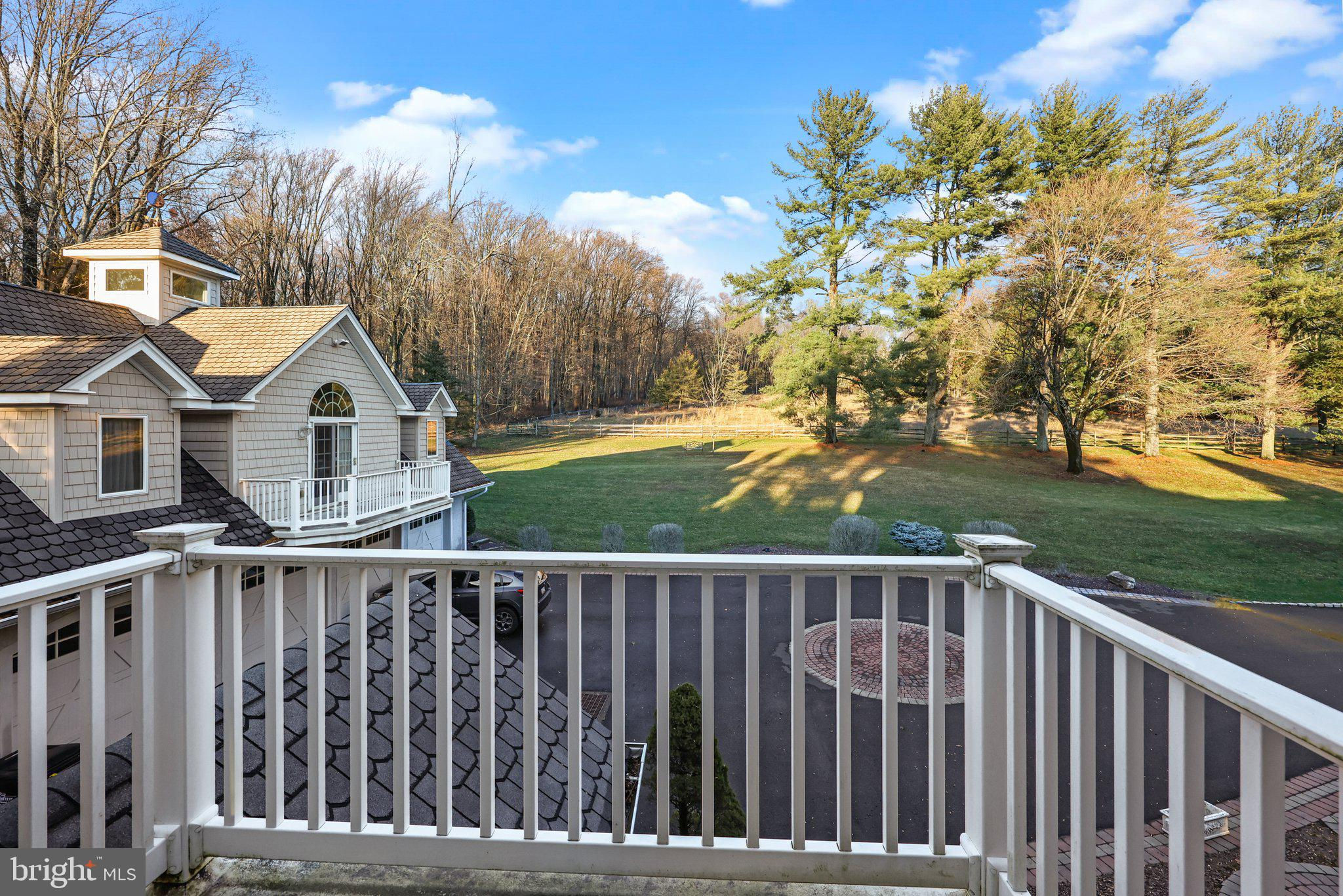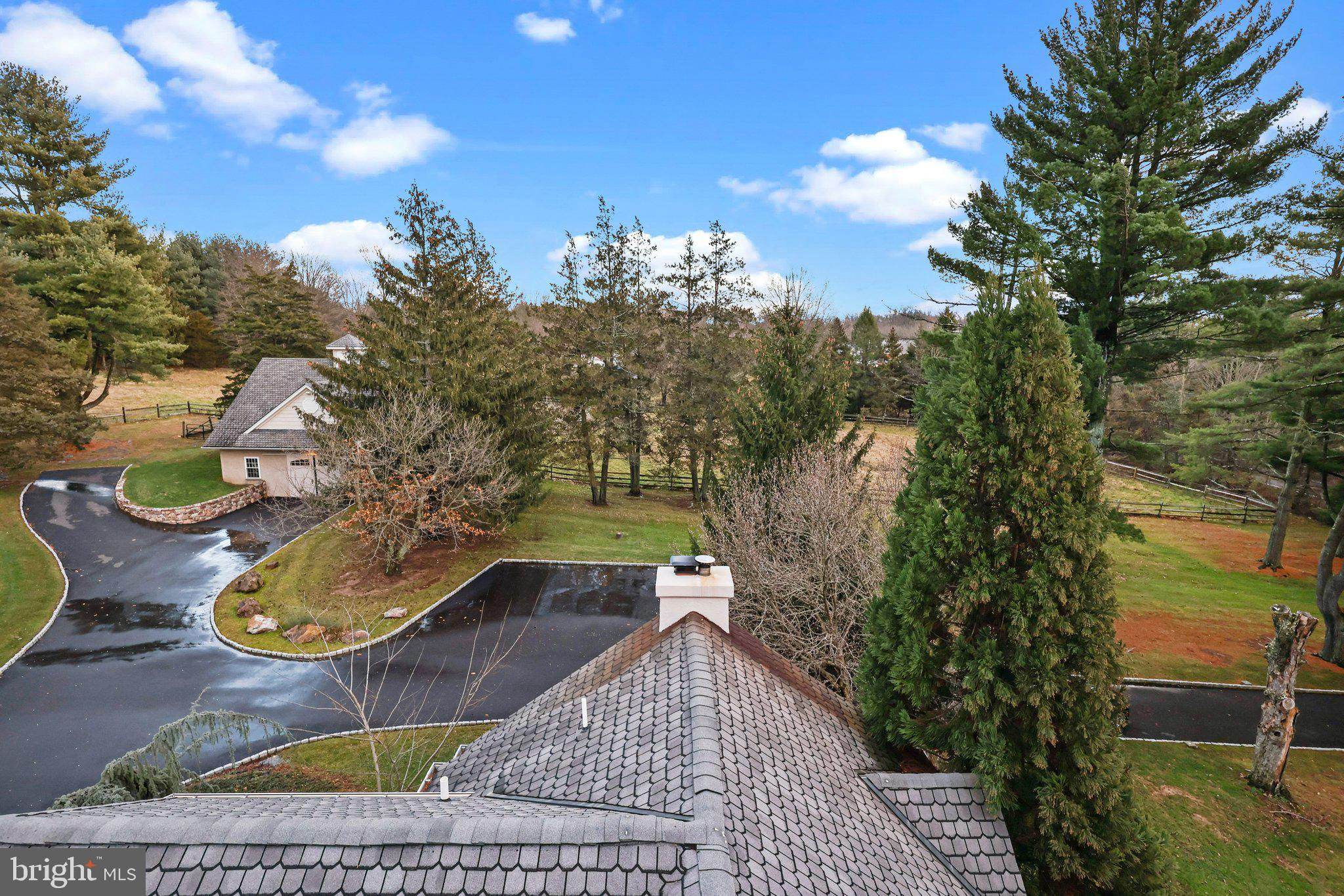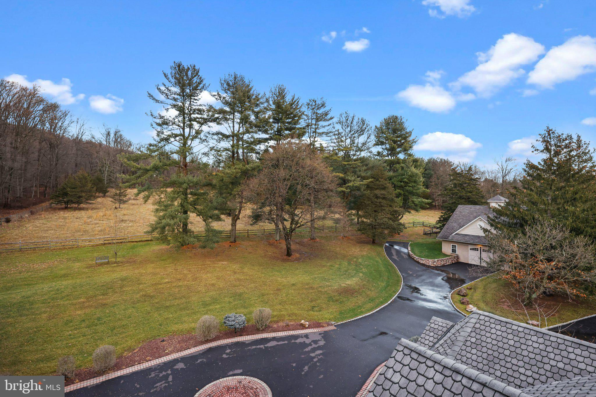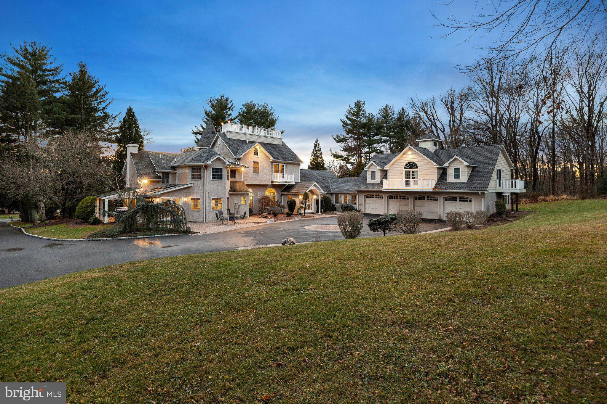 Nestled within the enchanting landscapes of New Hope, this unique 14.8-acre property beckons discerning home buyers with its secluded charm and exquisite craftsmanship. A bespoke manor, spanning six bedrooms and five-and-a-half bathrooms, unfolds over 7,000 sq ft of luxurious living space. A picturesque drive along a tree-lined pathway introduces you to this country haven, surrounded by manicured hedges and lush paddocks. Enter through glass French doors into a world of artisanal hardwoods and refined marble tiles. The gourmet kitchen boasts stainless steel appliances, granite countertops, and a charming breakfast nook. A wood-burning fireplace graces the formal dining room, perfect for hosting elegant dinner parties. The main floor primary suite, a private retreat with an exclusive terrace and indoor hot tub room, adds an extra layer of opulence. The expansive living room, adorned with a wet bar and gas fireplace, leads to a wrought-iron staircase ascending to the second-floor primary suite with plush carpeting and Juliet balconies. This suite features a large en-suite bath with dual marble vanities and a glass-enclosed marble shower. Two additional bedrooms, a pass-through den, and another bathroom complete the second floor. Above the heated four-car garage, an in-law apartment offers an open floor plan, a chef’s kitchen, and spacious living areas. Two graciously sized bedrooms with en-suite bathrooms flank a balcony-perched owner's suite. The four-stall barn, architecturally aligned with the custom home, includes a tack room, loft, and wash stall area. Just a few miles away from golf courses, restaurants, and major shopping, An unfinished basement featuring 10-foot ceilings – an ideal canvas for creating your dream space. Enjoy year-round comfort with 4-zone AC and 6 zones of radiant/forced air heat, ensuring personalized climate control throughout. Revel in the beauty of natural light streaming through high-quality Anderson 400 series windows and doors, accentuating the home's elegance. Ascend three floors on a custom spiral staircase to reach the crowning jewel – a unique Widow's Walk offering breathtaking views of Buckingham Mountain. Immerse yourself in the beauty of the surroundings from this exclusive vantage point, creating a daily retreat for contemplation and relaxation. The property extends its charm beyond the walls, with 6 acres of fenced pastures providing an idyllic setting for various outdoor activities. Whether you envision a serene escape or an entertainer's paradise, this home seamlessly blends thoughtful design with panoramic views, promising an unparalleled living experience.