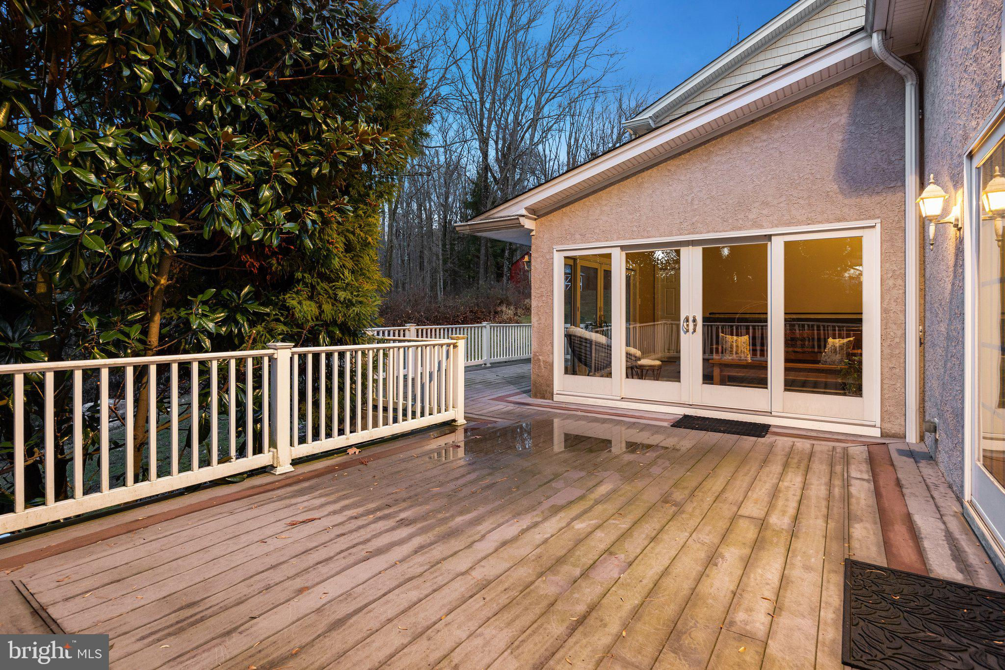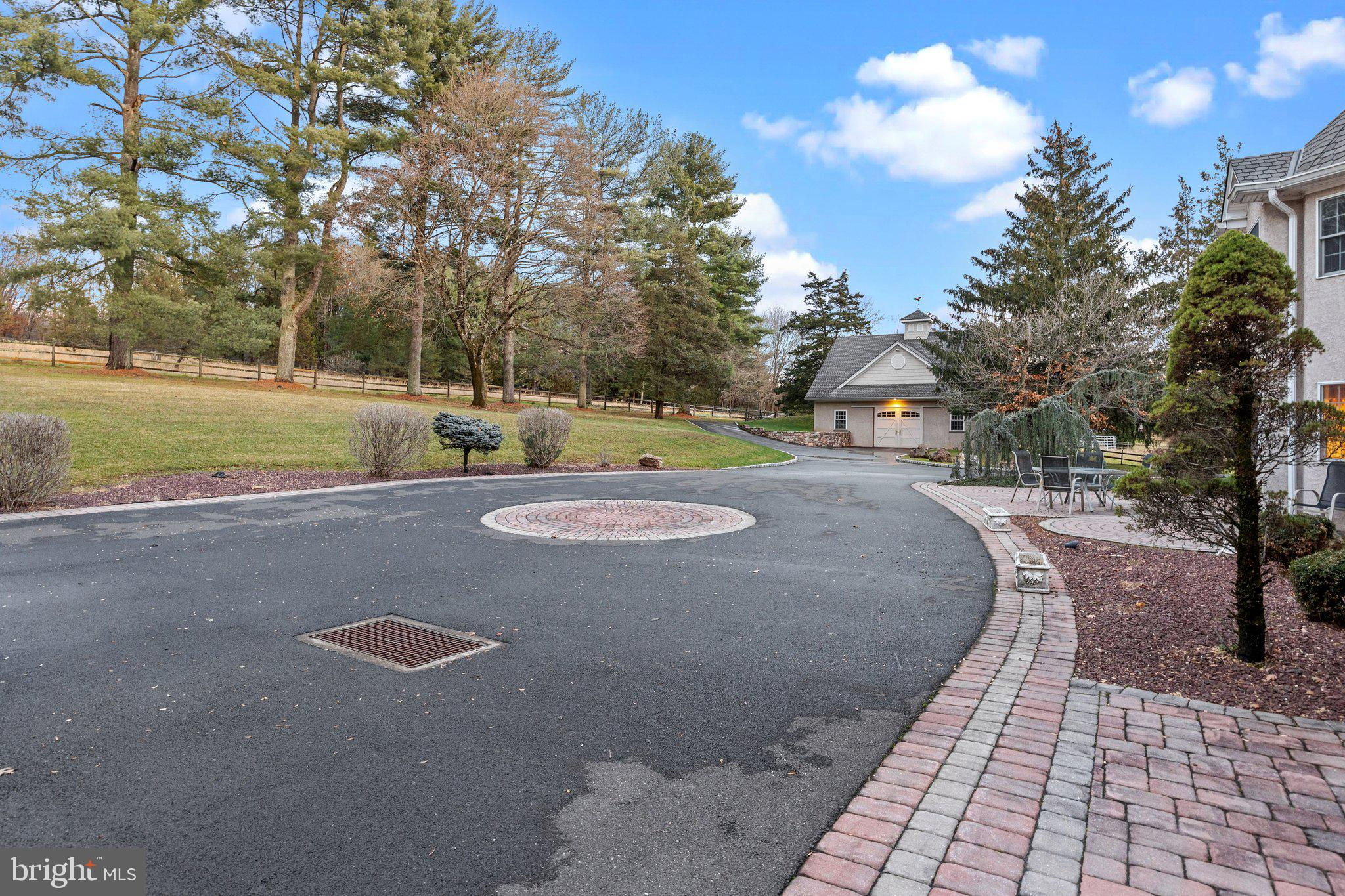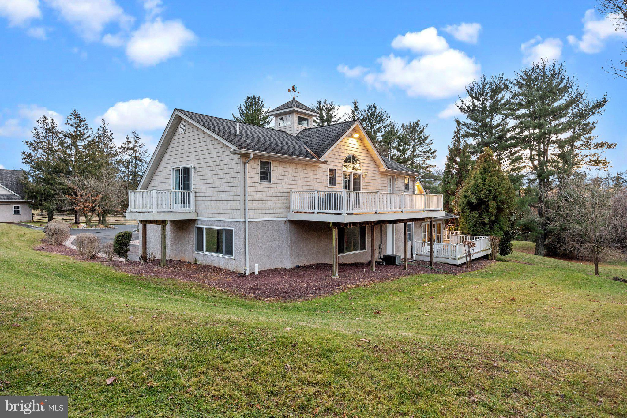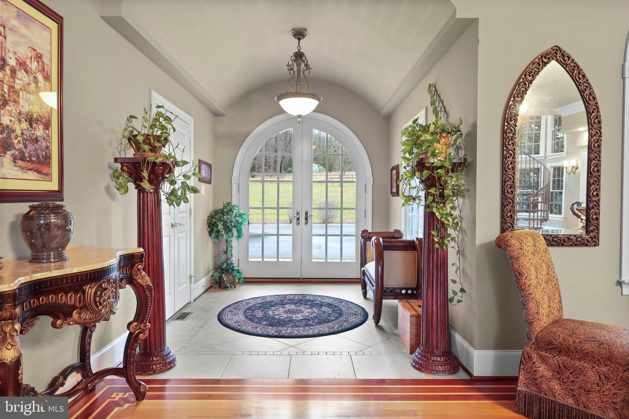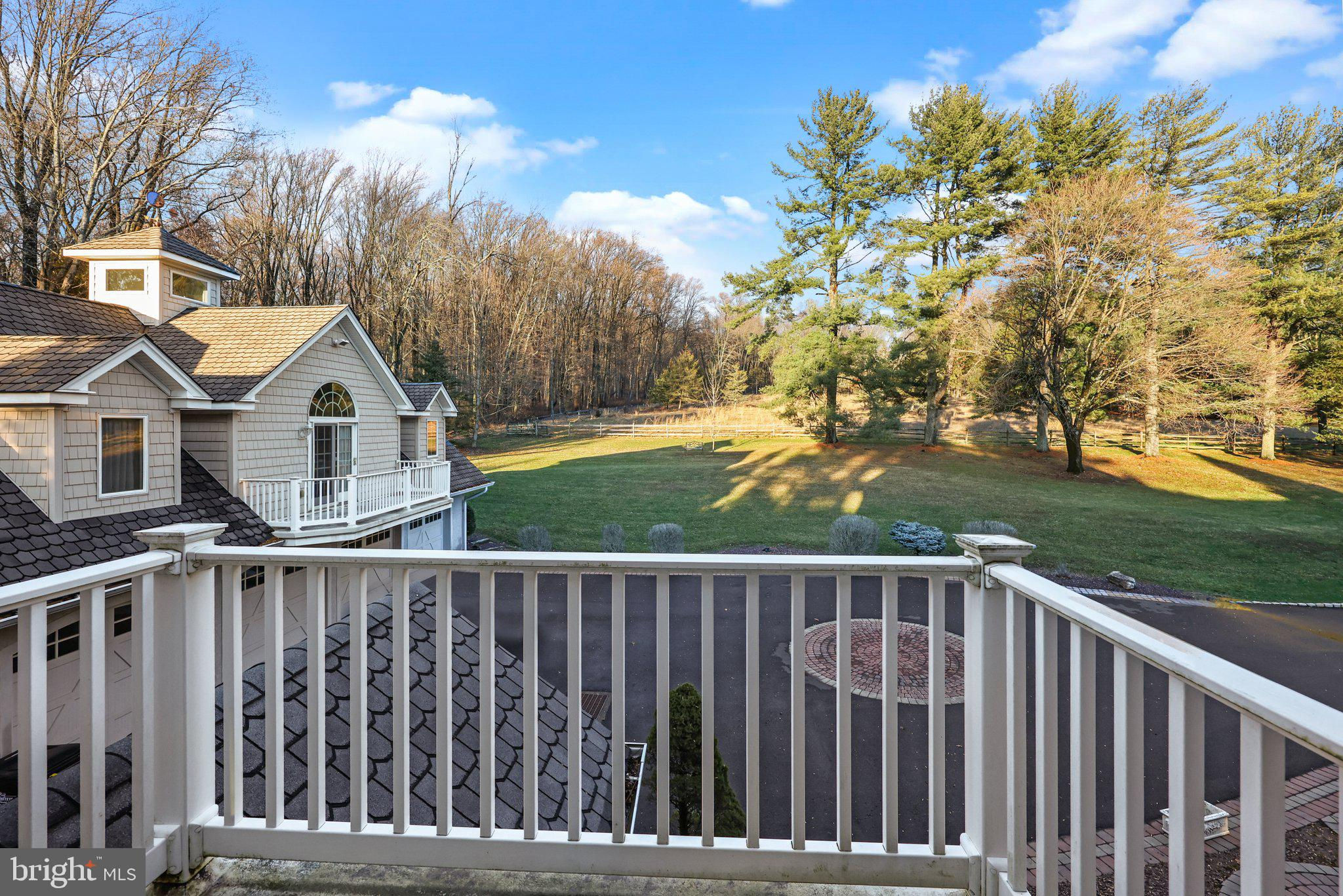 Nestled within the enchanting landscapes of New Hope, this unique 14.8-acre property beckons discerning home buyers with its secluded charm and exquisite craftsmanship. A bespoke manor, spanning six bedrooms and five-and-a-half bathrooms, unfolds over 7,000 sq ft of luxurious living space. A picturesque drive along a tree-lined pathway introduces you to this country haven, surrounded by manicured hedges and lush paddocks. Enter through glass French doors into a world of artisanal hardwoods and refined marble tiles. The gourmet kitchen boasts stainless steel appliances, granite countertops, and a charming breakfast nook. A wood-burning fireplace graces the formal dining room, perfect for hosting elegant dinner parties. The main floor primary suite, a private retreat with an exclusive terrace and indoor hot tub room, adds an extra layer of opulence. The expansive living room, adorned with a wet bar and gas fireplace, leads to a wrought-iron staircase ascending to the second-floor primary suite with plush carpeting and Juliet balconies. This suite features a large en-suite bath with dual marble vanities and a glass-enclosed marble shower. Two additional bedrooms, a pass-through den, and another bathroom complete the second floor. Above the heated four-car garage, an in-law apartment offers an open floor plan, a chef’s kitchen, and spacious living areas. Two graciously sized bedrooms with en-suite bathrooms flank a balcony-perched owner's suite. The four-stall barn, architecturally aligned with the custom home, includes a tack room, loft, and wash stall area. Just a few miles away from golf courses, restaurants, and major shopping, An unfinished basement featuring 10-foot ceilings – an ideal canvas for creating your dream space. Enjoy year-round comfort with 4-zone AC and 6 zones of radiant/forced air heat, ensuring personalized climate control throughout. Revel in the beauty of natural light streaming through high-quality Anderson 400 series windows and doors, accentuating the home's elegance. Ascend three floors on a custom spiral staircase to reach the crowning jewel – a unique Widow's Walk offering breathtaking views of Buckingham Mountain. Immerse yourself in the beauty of the surroundings from this exclusive vantage point, creating a daily retreat for contemplation and relaxation. The property extends its charm beyond the walls, with 6 acres of fenced pastures providing an idyllic setting for various outdoor activities. Whether you envision a serene escape or an entertainer's paradise, this home seamlessly blends thoughtful design with panoramic views, promising an unparalleled living experience.