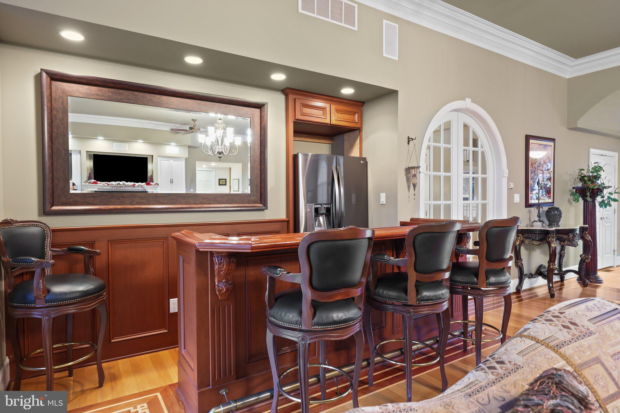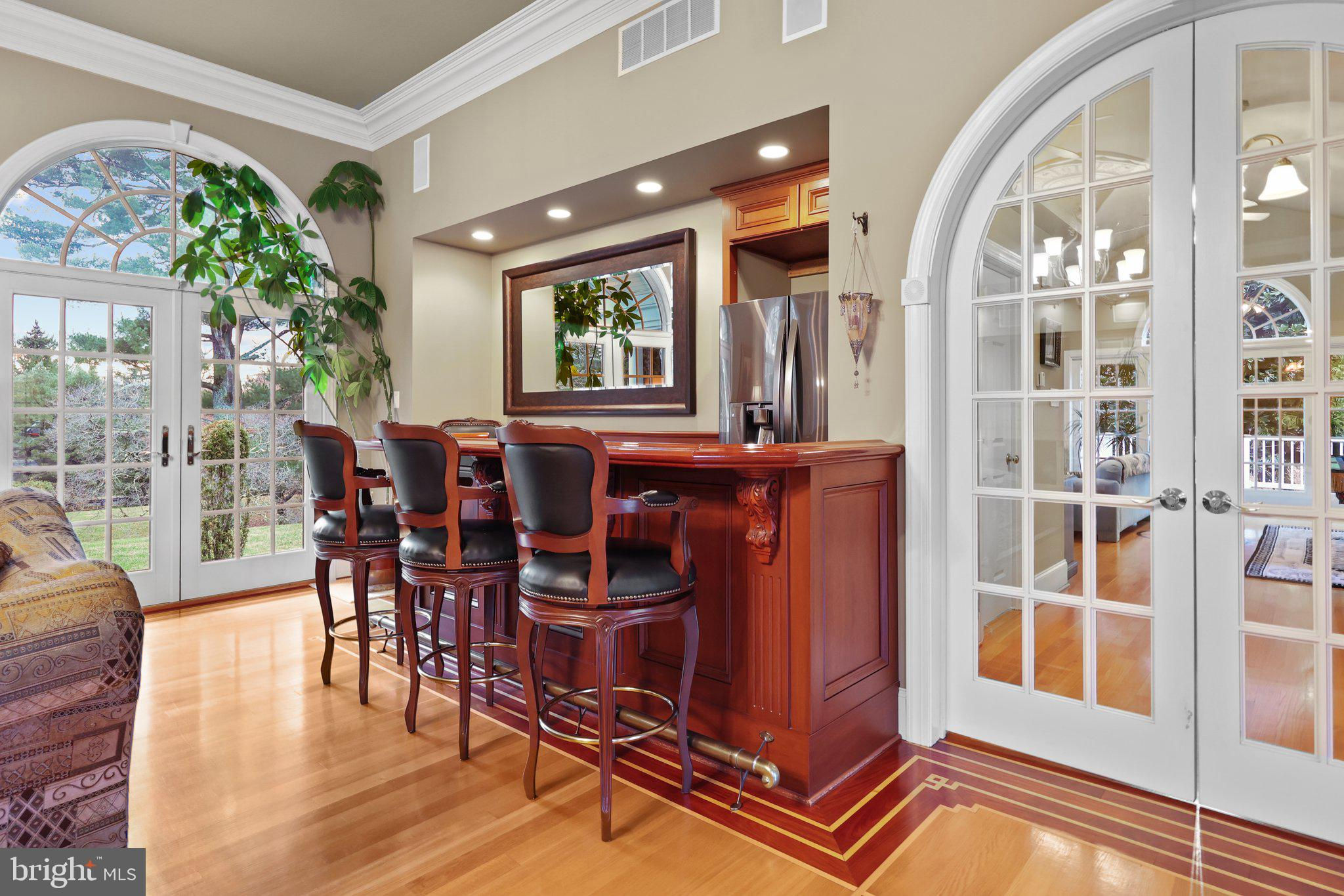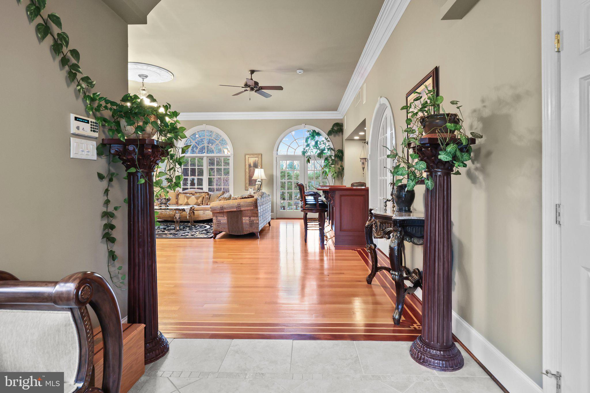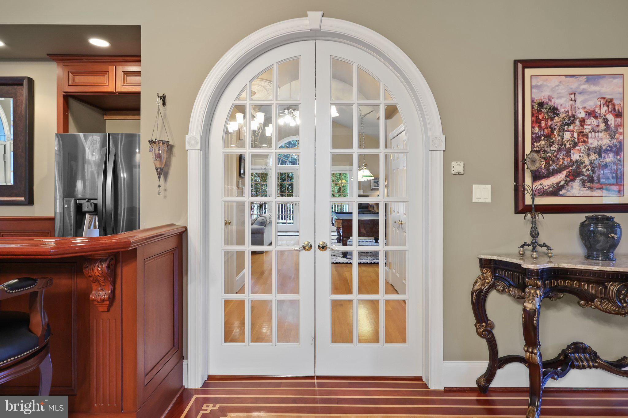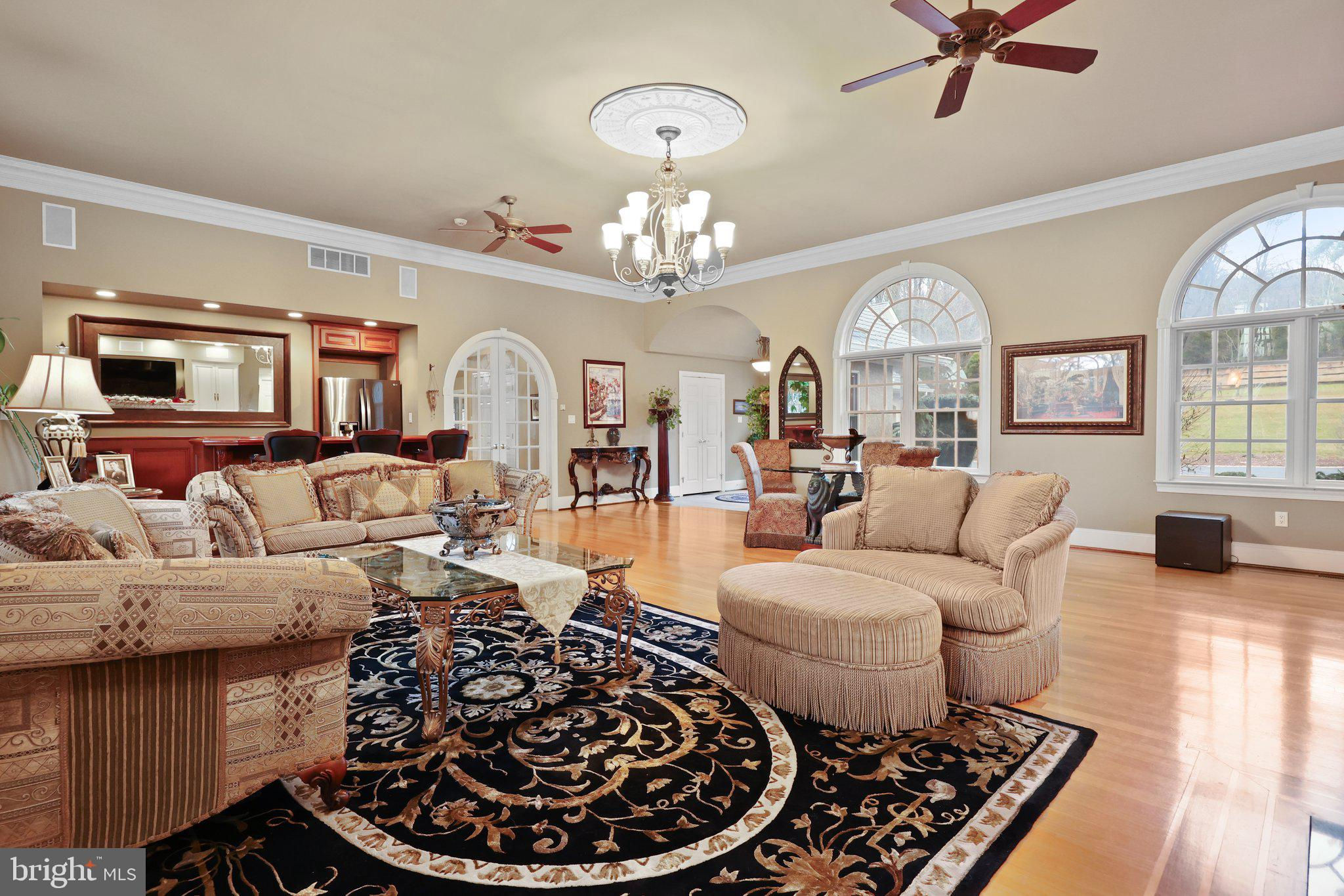 Nestled within the enchanting landscapes of New Hope, this unique 14.8-acre property beckons discerning home buyers with its secluded charm and exquisite craftsmanship. A bespoke manor, spanning six bedrooms and five-and-a-half bathrooms, unfolds over 7,000 sq ft of luxurious living space. A picturesque drive along a tree-lined pathway introduces you to this country haven, surrounded by manicured hedges and lush paddocks. Enter through glass French doors into a world of artisanal hardwoods and refined marble tiles. The gourmet kitchen boasts stainless steel appliances, granite countertops, and a charming breakfast nook. A wood-burning fireplace graces the formal dining room, perfect for hosting elegant dinner parties. The main floor primary suite, a private retreat with an exclusive terrace and indoor hot tub room, adds an extra layer of opulence. The expansive living room, adorned with a wet bar and gas fireplace, leads to a wrought-iron staircase ascending to the second-floor primary suite with plush carpeting and Juliet balconies. This suite features a large en-suite bath with dual marble vanities and a glass-enclosed marble shower. Two additional bedrooms, a pass-through den, and another bathroom complete the second floor. Above the heated four-car garage, an in-law apartment offers an open floor plan, a chef’s kitchen, and spacious living areas. Two graciously sized bedrooms with en-suite bathrooms flank a balcony-perched owner's suite. The four-stall barn, architecturally aligned with the custom home, includes a tack room, loft, and wash stall area. Just a few miles away from golf courses, restaurants, and major shopping, An unfinished basement featuring 10-foot ceilings – an ideal canvas for creating your dream space. Enjoy year-round comfort with 4-zone AC and 6 zones of radiant/forced air heat, ensuring personalized climate control throughout. Revel in the beauty of natural light streaming through high-quality Anderson 400 series windows and doors, accentuating the home's elegance. Ascend three floors on a custom spiral staircase to reach the crowning jewel – a unique Widow's Walk offering breathtaking views of Buckingham Mountain. Immerse yourself in the beauty of the surroundings from this exclusive vantage point, creating a daily retreat for contemplation and relaxation. The property extends its charm beyond the walls, with 6 acres of fenced pastures providing an idyllic setting for various outdoor activities. Whether you envision a serene escape or an entertainer's paradise, this home seamlessly blends thoughtful design with panoramic views, promising an unparalleled living experience.