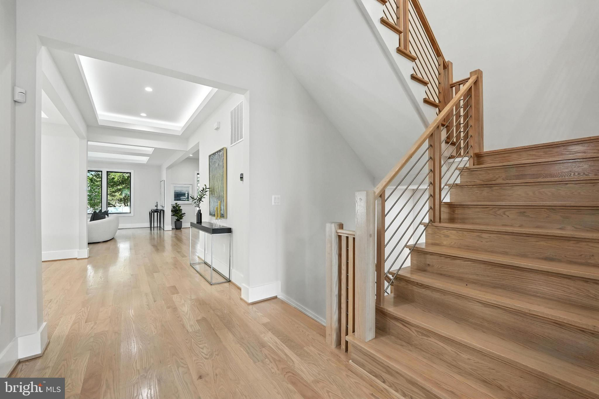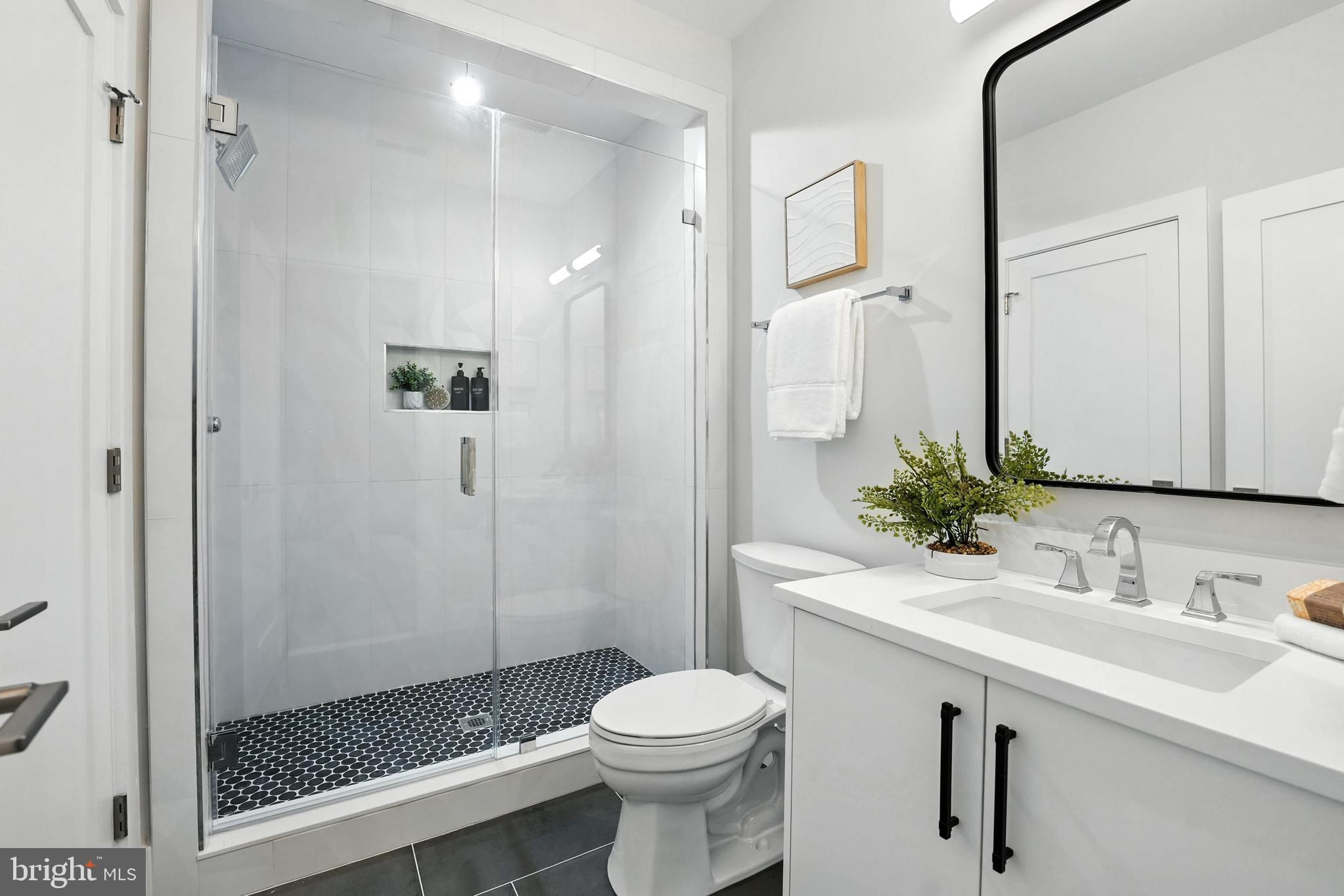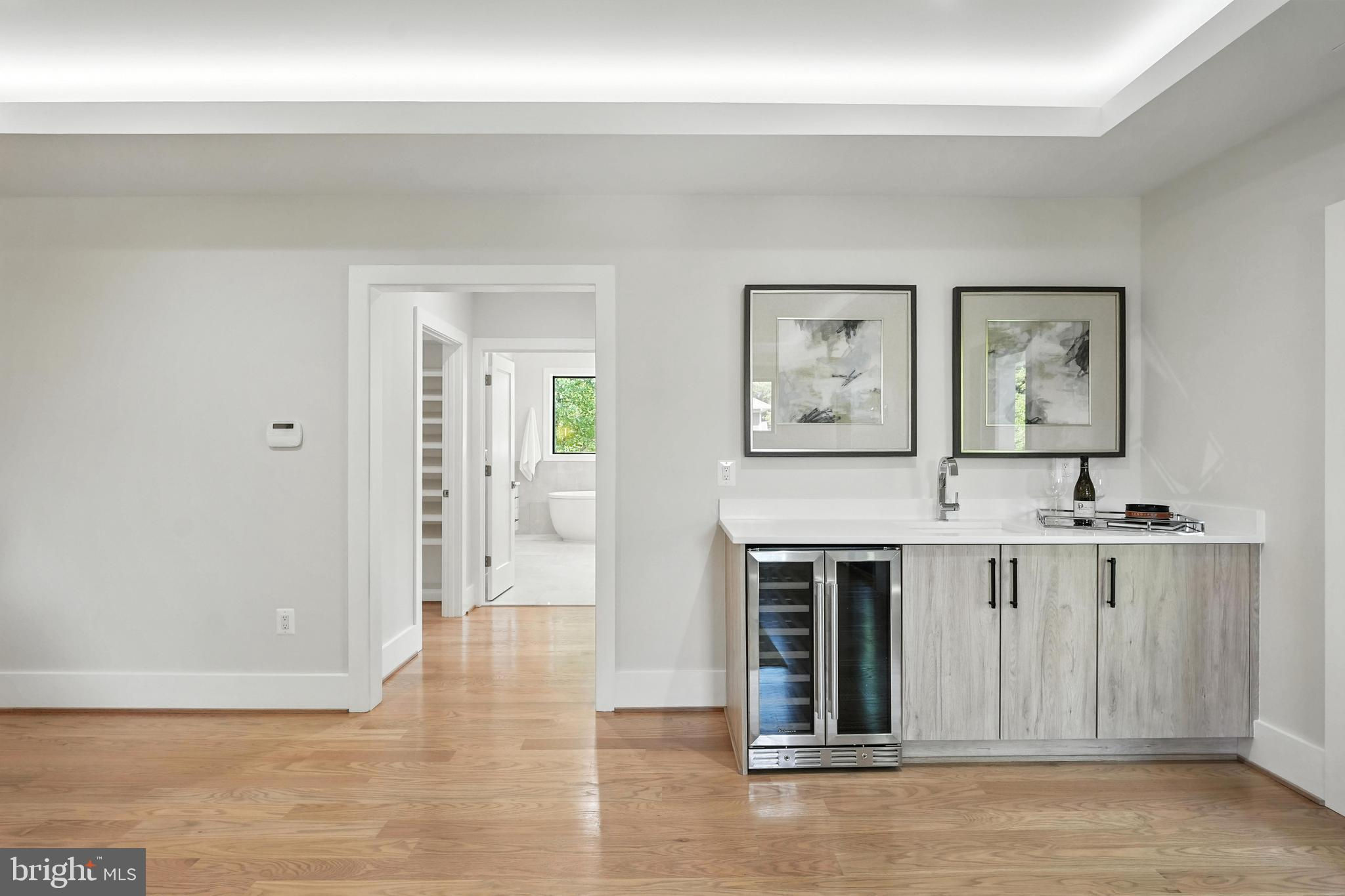 QUALITY CONSTRUCTION- GORGEOUS LOT - Located in a prime location between Tysons and McLean This contemporary residence, encompassing around 6,638 square feet of open layout, offers an inviting atmosphere with its bold yet warm features. Constructed with premium materials and elegant modern finishes, the home is graced with large, beautiful windows that flood the space with natural light. It boasts suspended ceilings and hardwood floors on the upper levels, with luxury vinyl plank flooring on the lower level. The remarkable Chef’s Kitchen is equipped with 52-inch cabinets, Quartz countertops, a spacious center island featuring a waterfall edge, modern pendant lighting, state-of-the-art appliances, a generous walk-in pantry, and a dedicated dining area. The large family room includes an electric fireplace and suspended ceiling. On the main level, there is a versatile space that can serve as a bedroom or office, complete with an ensuite bathroom. The Primary Bedroom Suite offers trey ceilings, an electric fireplace, a coffee wet bar with a beverage cooler, dual custom walk-in closets, and a luxurious primary bathroom with dual Quartz vanities, an expansive rain shower with body sprays, and a separate soaking tub. The upper level also features four private en suite bedrooms, each with a bath, along with a spacious laundry room with tiled floors, built-in cabinetry with a sink, and a sunlit window. The expansive walk-up lower-level entertainment area is bathed in natural light and includes a stunning Quartz wet bar with a beverage/wine cooler, dishwasher, and glass shelves, as well as a large rec room, a media room with wall sconces, a seventh bedroom with a walk-in closet, and a full bathroom. The exterior is beautifully landscaped with a stone front porch, a covered stone deck, and a 2-car garage featuring modern slit garage doors.