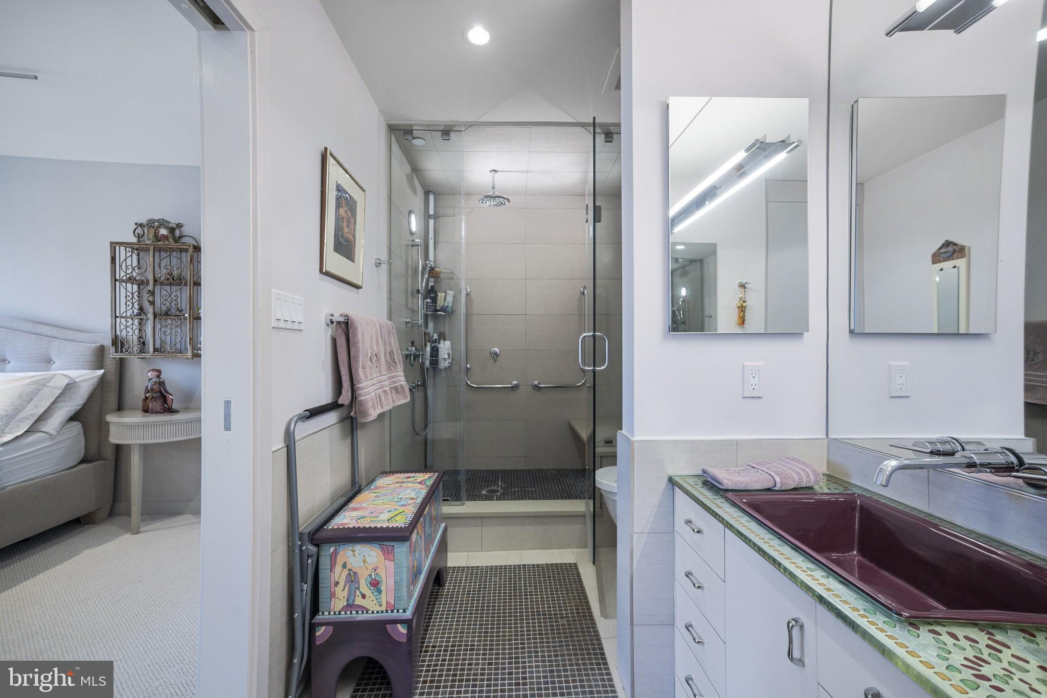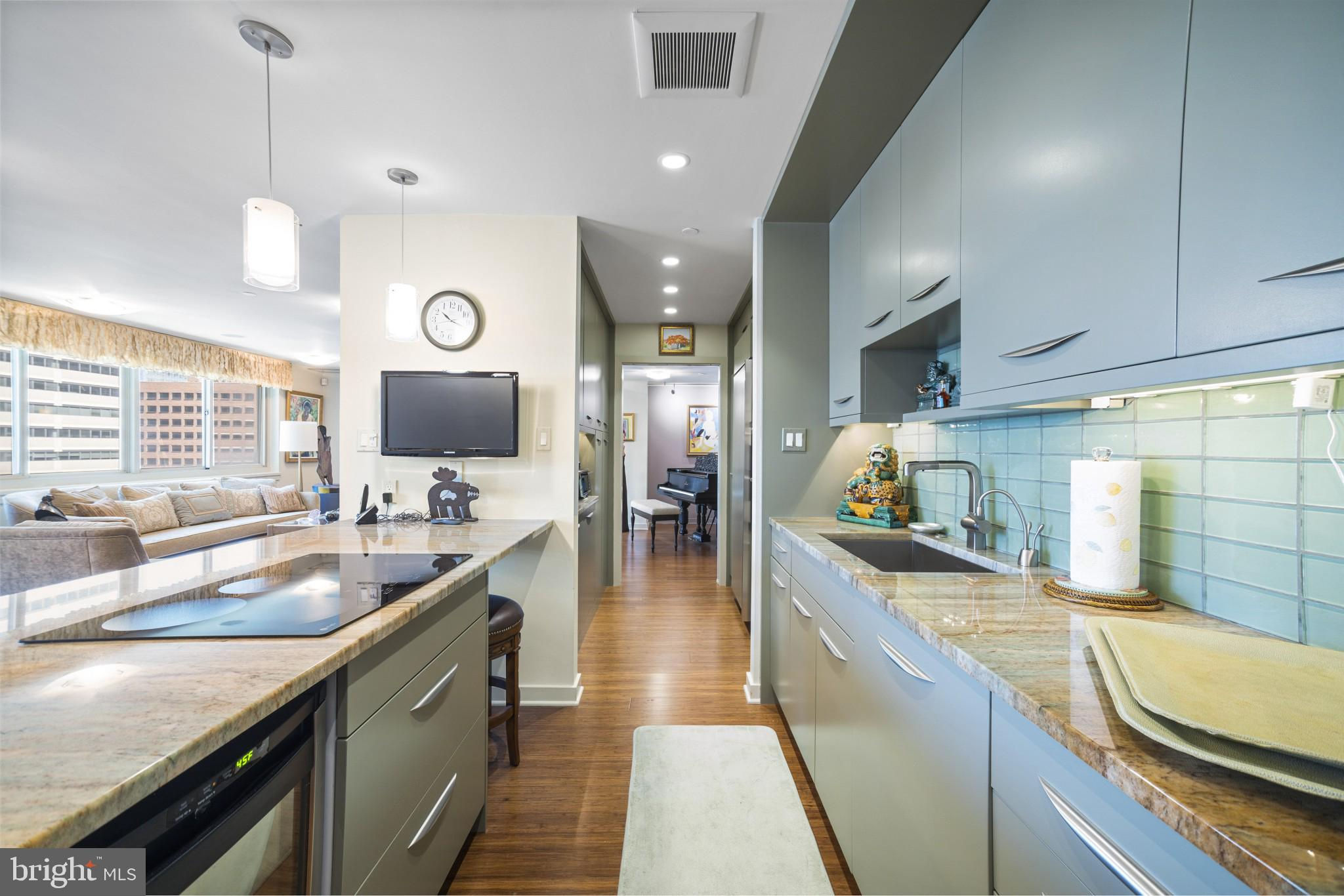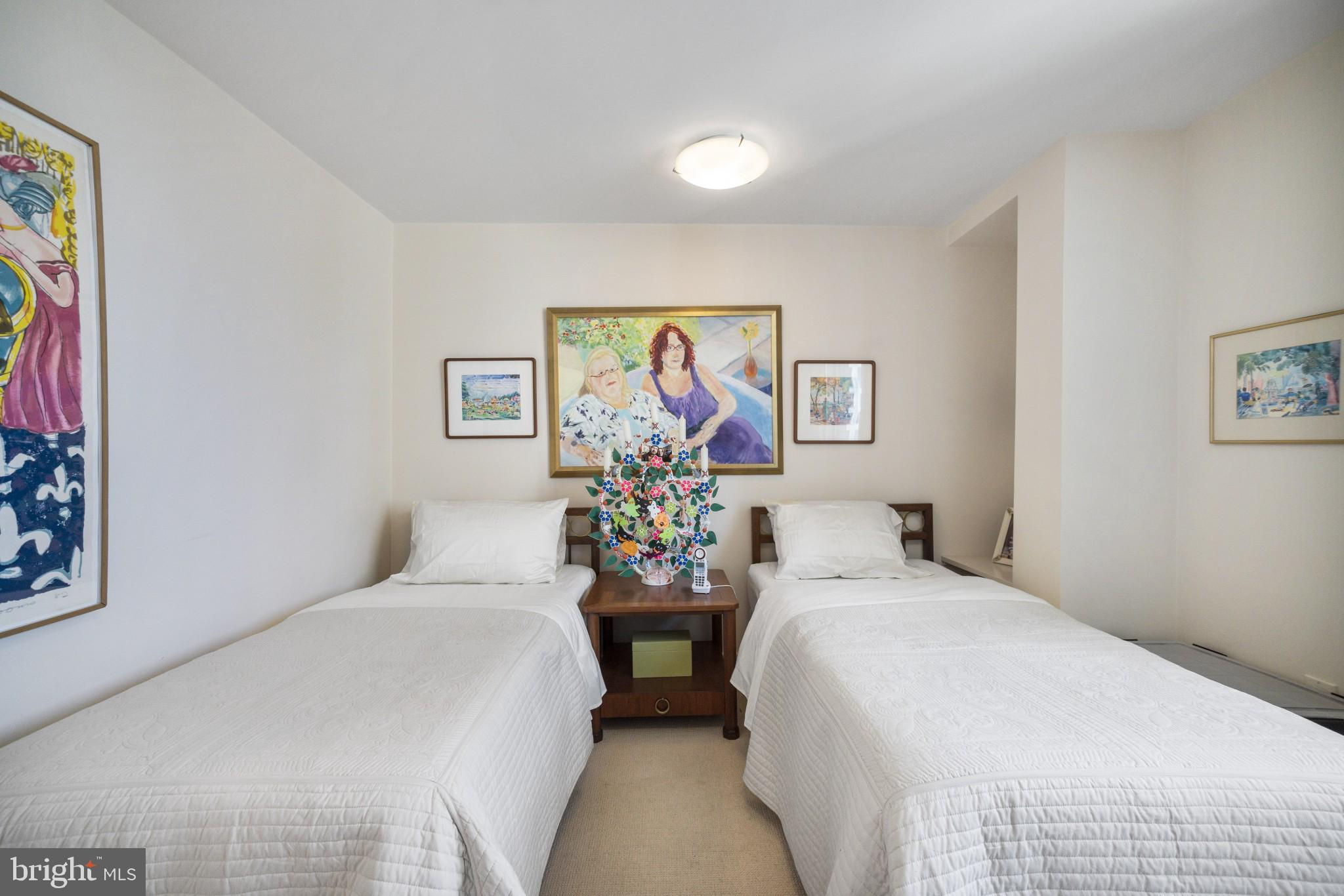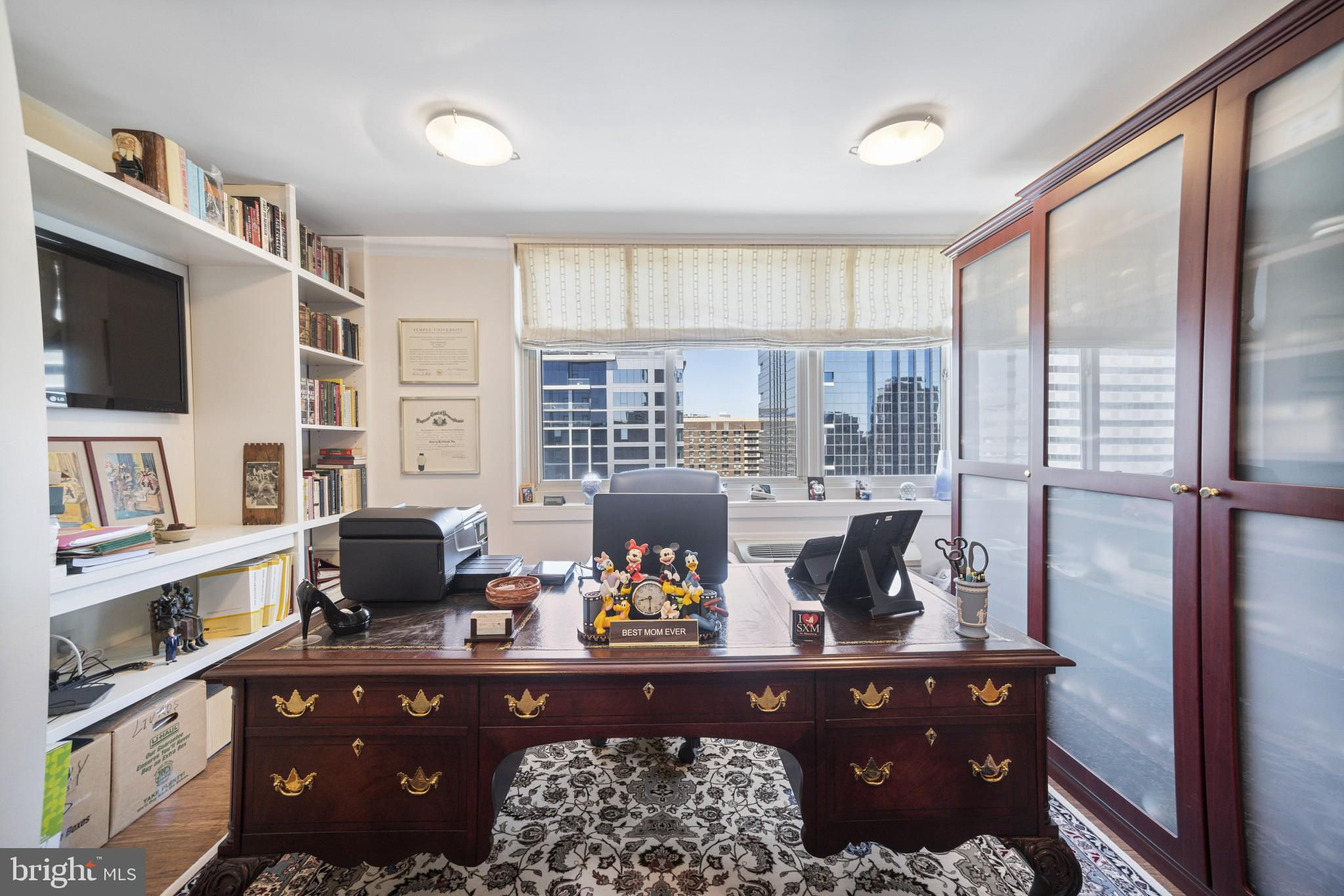 Perched above the buildings and rooftops of Center City, on the 29th floor of the iconic William Penn house is a one-of-a-kind home, comprised of 3 separate units (with 4 separate bedroom/office spaces) that were tastefully combined to make one expansive and upgraded residence. Enjoy an abundance of indirect natural light flowing in from all windows, soaking each corner of this amazing space. The main unit consists of an entry foyer with two large closets, an extra spacious living and dining area with plenty of wall space to display artwork plus a custom chef’s kitchen and 2 spacious bedrooms with 2 full baths. The kitchen features Quartz countertops with waterfall, GE Monogram refrigerator, GE Profile wall oven and built-in microwave plus a convenient coffee bar area with abundant pantry space. The hall bath features a custom modern vanity and an extra deep Jacuzzi soaking tub. The second bedroom is spacious with a full closet. The oversized primary suite offers a wall of closets, 2 incredible walk-in closets, plus a separate walk-in shoe closet and a custom tiled bathroom with walk-in shower, a built-in makeup vanity area plus linen/ medicine storage drawers and cabinetry. The second unit is an entirely self-contained studio apartment with full kitchen featuring granite countertops, spacious living area, a renovated neutral bath with Quartz countertops and a custom shower stall. Abundant closet space and a stackable washer/dryer is located off the bath area. The third unit also has a private entrance and is currently used as a private office/bedroom space with a wall of built-ins, a storage closet, a full laundry room with front loading GE Profile washer and dryer, a laundry sink with abundant storage all around. The William Penn House offers incredible amenities, making this building a perfect choice for easy city living. The William Penn House has never had a special assessment and since it is a coop building taxes are including in it’s low monthly maintenance fee. This building consists of 600 units with an attached parking garage (additional fee) and a rooftop entertainment space and swimming pool. Other perks of living at 1919 Chestnut Street include 24 hour security, on-site maintenance and management, a fitness center, a hospitality suite for guests, resident activities and more! Located in the heart of Rittenhouse Square, one block from the park itself, you’ll be surrounded by world-class restaurants, fabulous retail shops, coffee shops, grocery stores, pharmacies, and so much more.