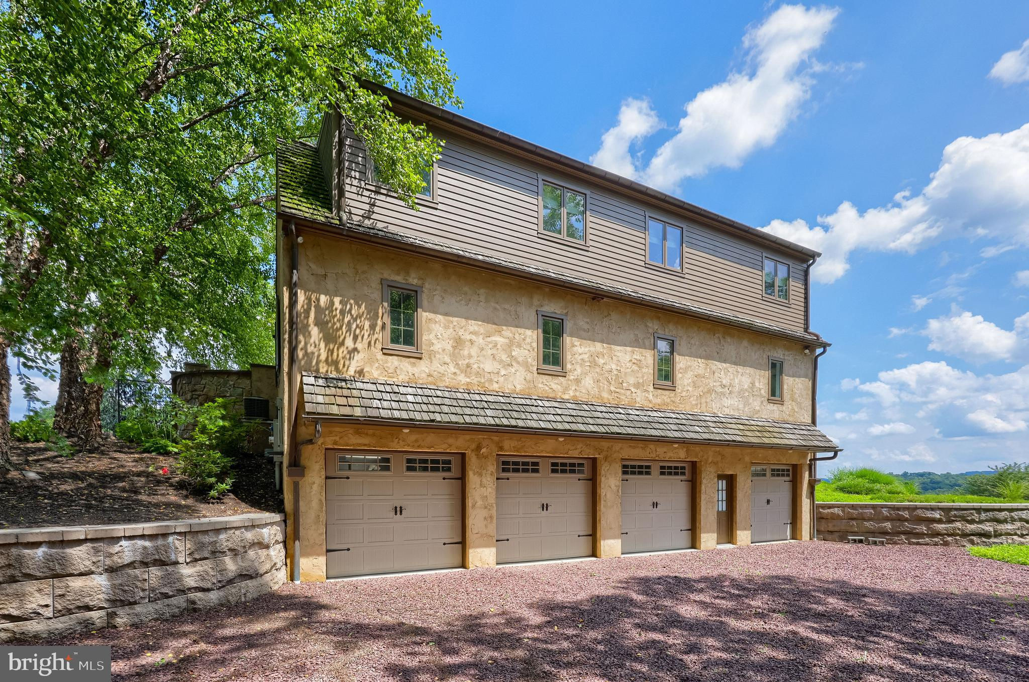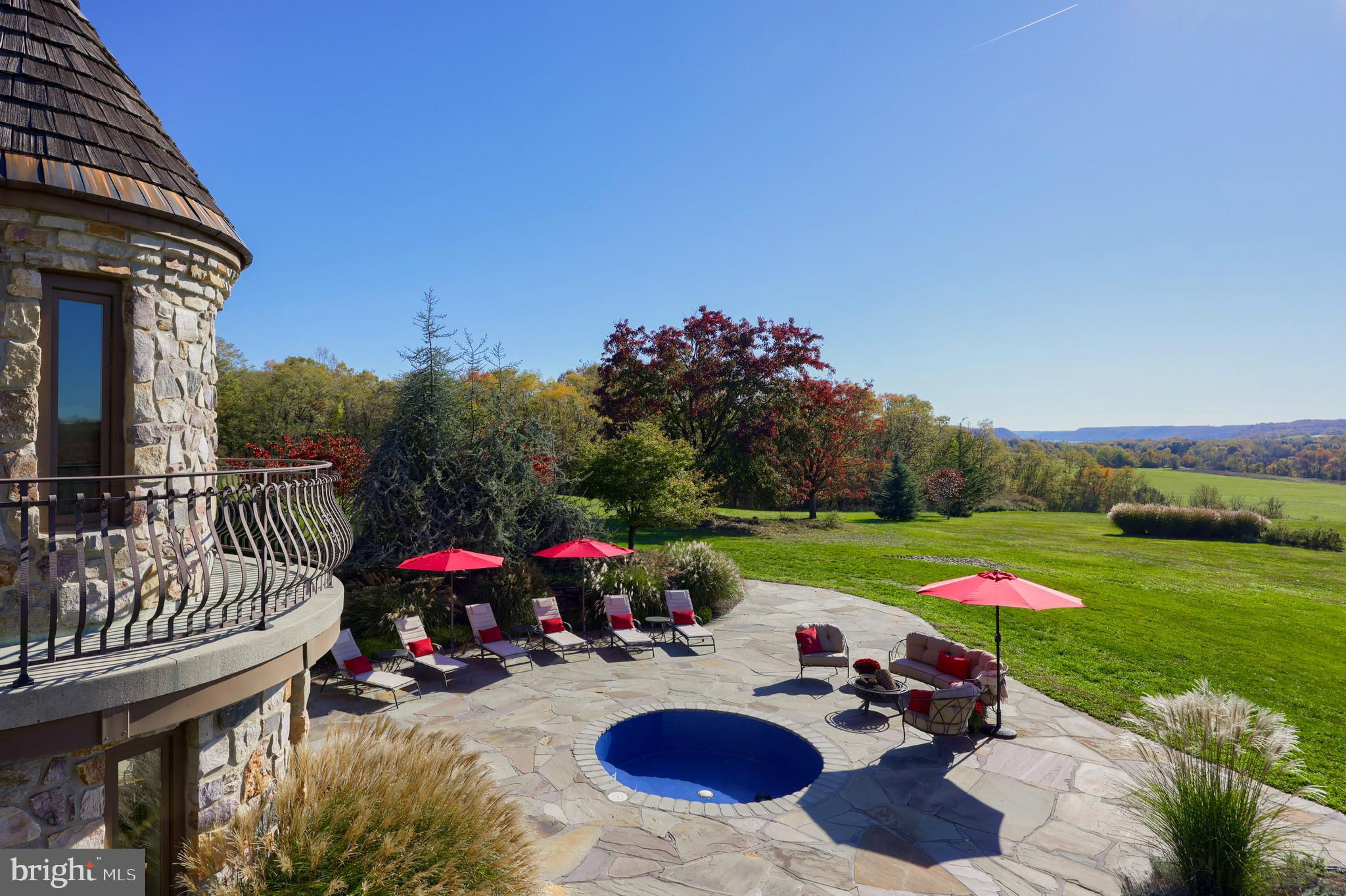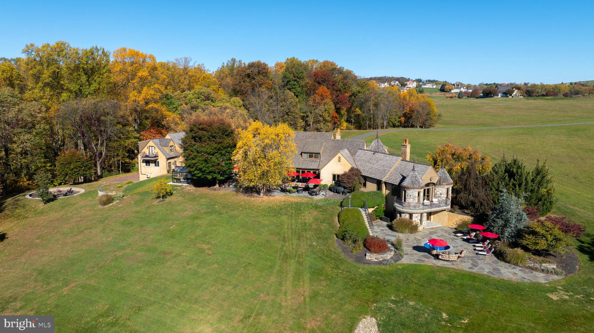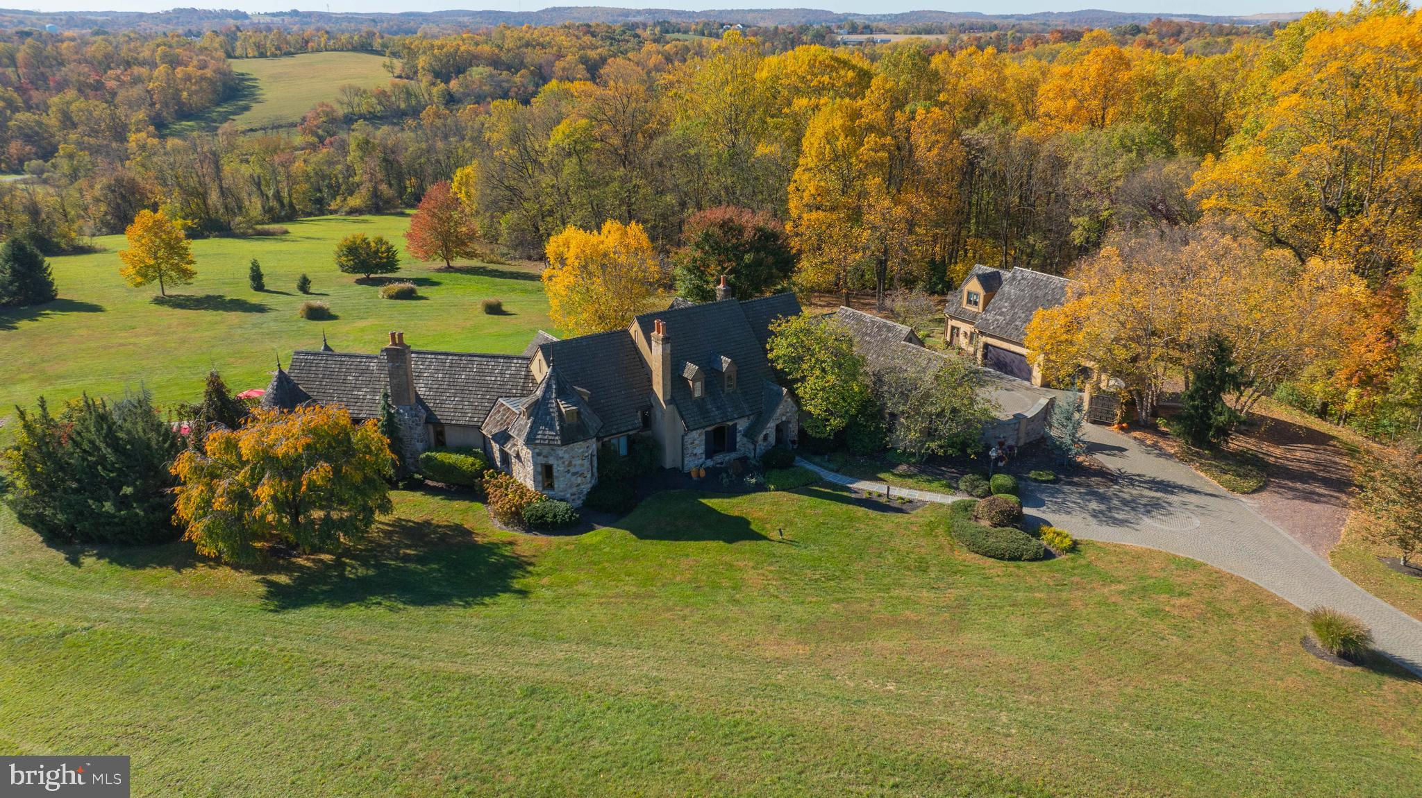 Your Private Oasis Awaits. Experience unparalleled luxury and breathtaking natural beauty in this magnificent 4-bedroom, 3.5-bathroom estate, encompassing nearly 5,000 square feet of refined living space. Nestled on 25.67 sprawling acres, this property offers panoramic views of the river and picturesque countryside, providing a serene and private sanctuary. Step into the heart of the home, a brand-new custom kitchen featuring a soaring cathedral ceiling, an enormous center island, top-of-the-line stainless steel appliances, and elegant granite countertops. A convenient walk-in pantry and a cozy fireplace complete this culinary dream. Throughout the home, you'll find a total of five fireplaces, each adding warmth and ambiance. The first-floor primary suite is a true retreat, boasting two walk-in closets and a spa-like primary bath with luxurious tile floors, a walk-in shower, and a jetted tub. Adjacent to the primary bedroom is a spacious sitting room with a cathedral ceiling, a charming rounded reading nook, and a private balcony offering breathtaking views. Spiral stairs from the sitting room lead down to the finished lower level. Entertain in style in the huge dining room, showcasing a sophisticated slate floor, crown molding, and direct access to a large paver patio. The elegant living room features a coffered ceiling, a gas fireplace, and gleaming wood floors. The family room is equally impressive with custom built-ins and a gas fireplace. A convenient first-floor laundry room adds to the home's practical design. The expansive finished lower level provides additional living space and incredible amenities. It includes a comfortable bedroom, a dedicated wine room with tile flooring, and a second full kitchen complete with granite counters, a tile backsplash, and stainless steel appliances. A full bath with a granite vanity and a custom walk-in shower serves the lower level. Enjoy gatherings in the impressive rec room, featuring wood floors, a stone fireplace, coffered ceilings, and elegant dentil moldings. The lower level also offers access to a private patio area with a relaxing jacuzzi. Step outside to discover multiple balconies, a custom greenhouse, and ample patio space, all designed to maximize your enjoyment of the spectacular views. Adding to the property's incredible value is a detached garage with a fully finished, 2-bedroom in-law apartment above. This apartment features wood floors, a family room with a gas fireplace, a stackable washer and dryer in the second bedroom, a kitchen with wood floors, a dining nook, and a private balcony off the kitchen. The first floor of the detached garage provides a three-car garage and a brand-new exercise room with LVT flooring, a mini-split system, and a half bath. Below this garage is an additional four-car garage and a generator, offering unparalleled storage and convenience. This is more than a home; it's a lifestyle. Don't miss the opportunity to own this truly exceptional property.