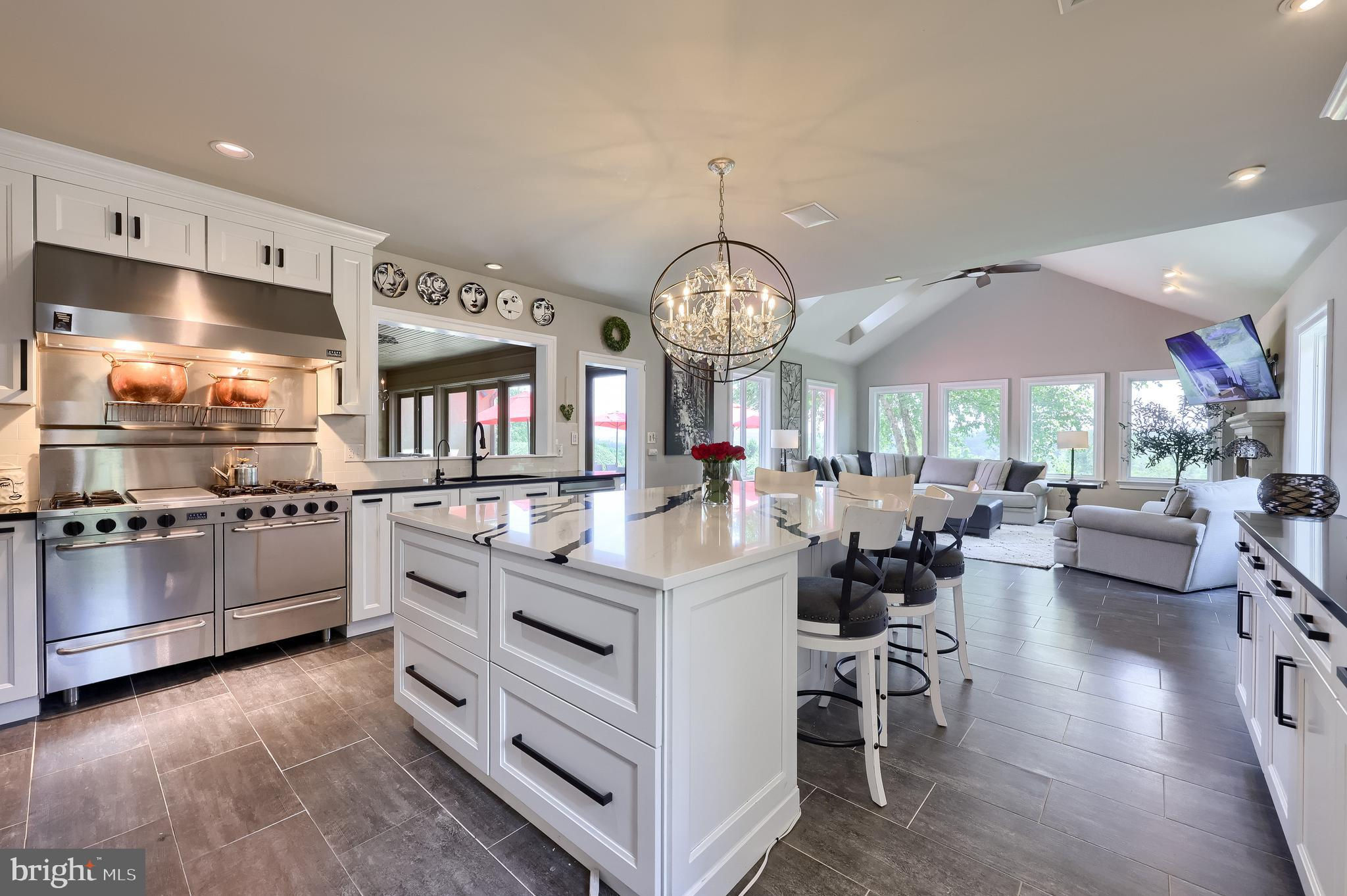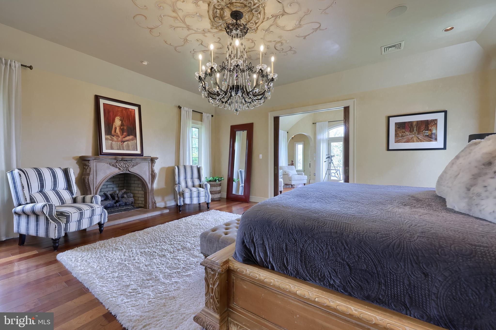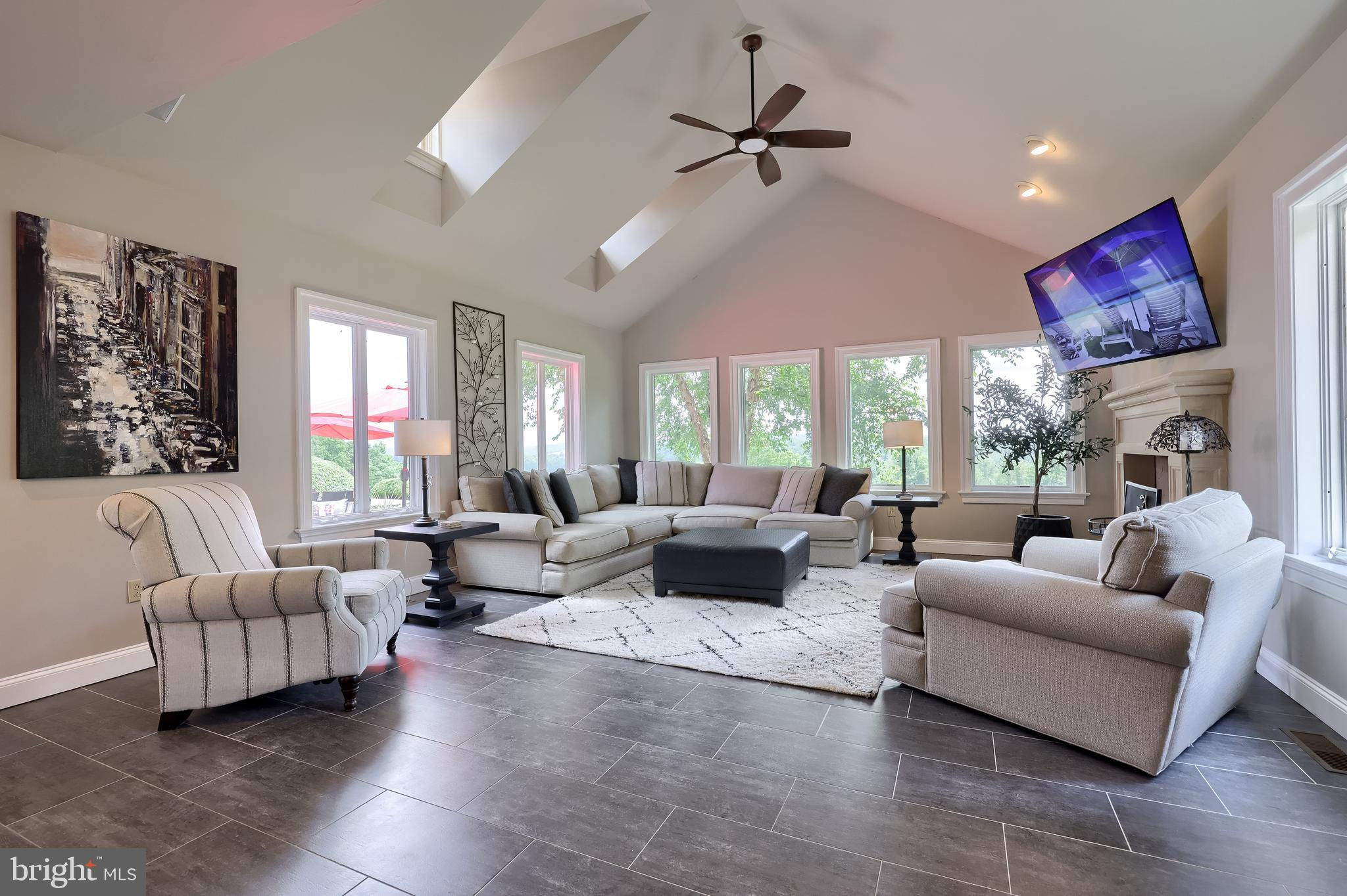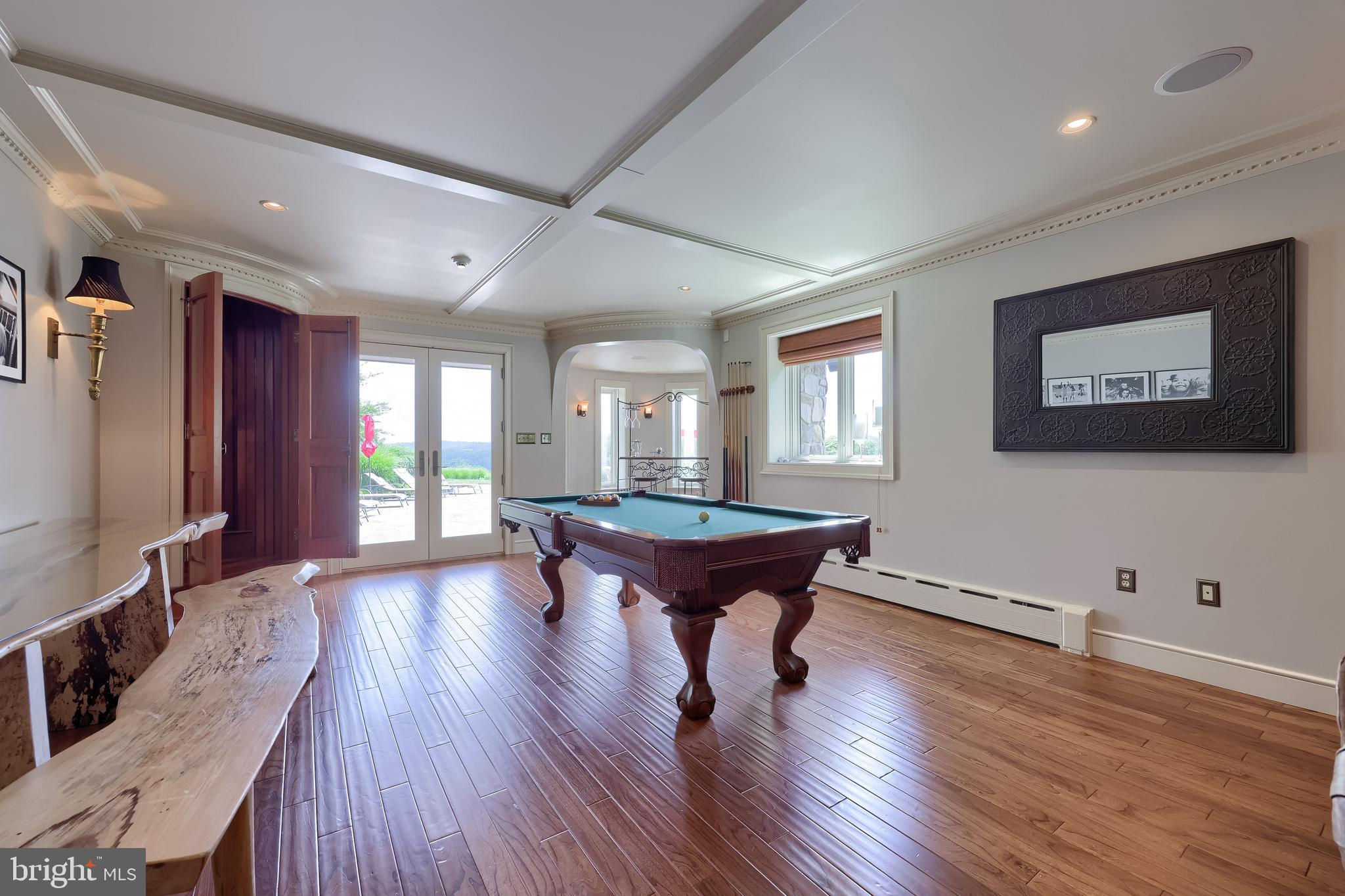 Your Private Oasis Awaits. Experience unparalleled luxury and breathtaking natural beauty in this magnificent 4-bedroom, 3.5-bathroom estate, encompassing nearly 5,000 square feet of refined living space. Nestled on 25.67 sprawling acres, this property offers panoramic views of the river and picturesque countryside, providing a serene and private sanctuary. Step into the heart of the home, a brand-new custom kitchen featuring a soaring cathedral ceiling, an enormous center island, top-of-the-line stainless steel appliances, and elegant granite countertops. A convenient walk-in pantry and a cozy fireplace complete this culinary dream. Throughout the home, you'll find a total of five fireplaces, each adding warmth and ambiance. The first-floor primary suite is a true retreat, boasting two walk-in closets and a spa-like primary bath with luxurious tile floors, a walk-in shower, and a jetted tub. Adjacent to the primary bedroom is a spacious sitting room with a cathedral ceiling, a charming rounded reading nook, and a private balcony offering breathtaking views. Spiral stairs from the sitting room lead down to the finished lower level. Entertain in style in the huge dining room, showcasing a sophisticated slate floor, crown molding, and direct access to a large paver patio. The elegant living room features a coffered ceiling, a gas fireplace, and gleaming wood floors. The family room is equally impressive with custom built-ins and a gas fireplace. A convenient first-floor laundry room adds to the home's practical design. The expansive finished lower level provides additional living space and incredible amenities. It includes a comfortable bedroom, a dedicated wine room with tile flooring, and a second full kitchen complete with granite counters, a tile backsplash, and stainless steel appliances. A full bath with a granite vanity and a custom walk-in shower serves the lower level. Enjoy gatherings in the impressive rec room, featuring wood floors, a stone fireplace, coffered ceilings, and elegant dentil moldings. The lower level also offers access to a private patio area with a relaxing jacuzzi. Step outside to discover multiple balconies, a custom greenhouse, and ample patio space, all designed to maximize your enjoyment of the spectacular views. Adding to the property's incredible value is a detached garage with a fully finished, 2-bedroom in-law apartment above. This apartment features wood floors, a family room with a gas fireplace, a stackable washer and dryer in the second bedroom, a kitchen with wood floors, a dining nook, and a private balcony off the kitchen. The first floor of the detached garage provides a three-car garage and a brand-new exercise room with LVT flooring, a mini-split system, and a half bath. Below this garage is an additional four-car garage and a generator, offering unparalleled storage and convenience. This is more than a home; it's a lifestyle. Don't miss the opportunity to own this truly exceptional property.