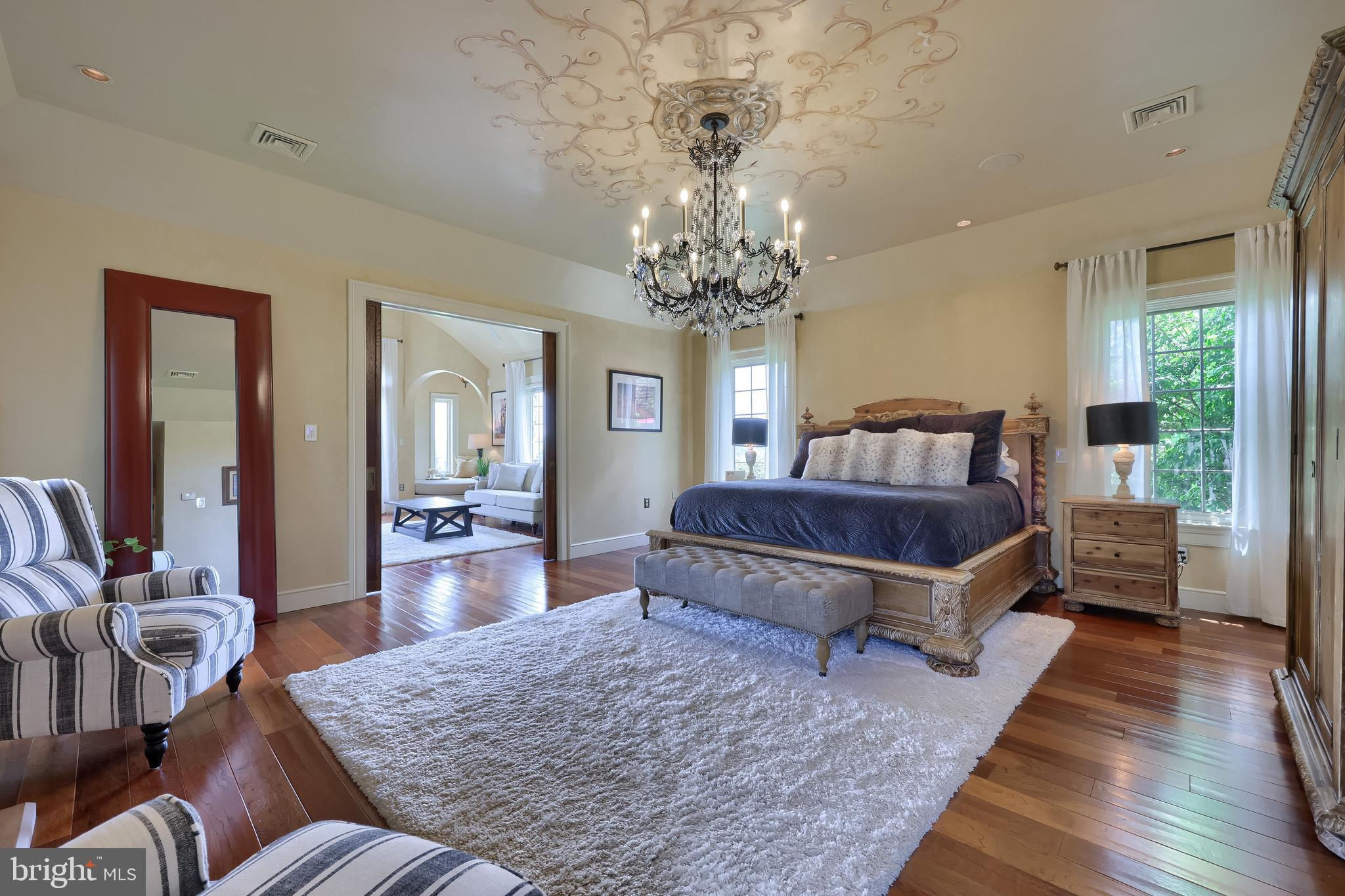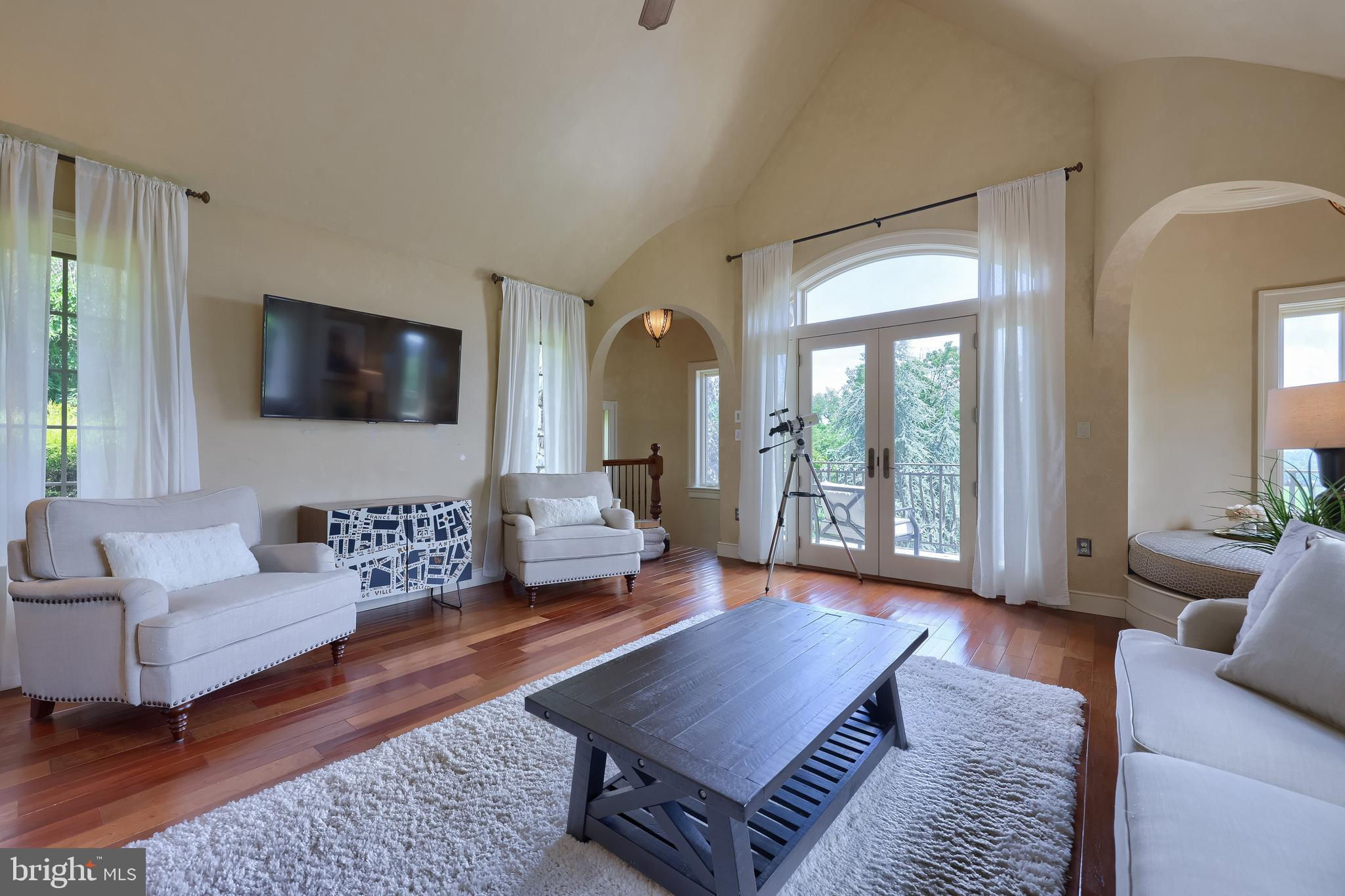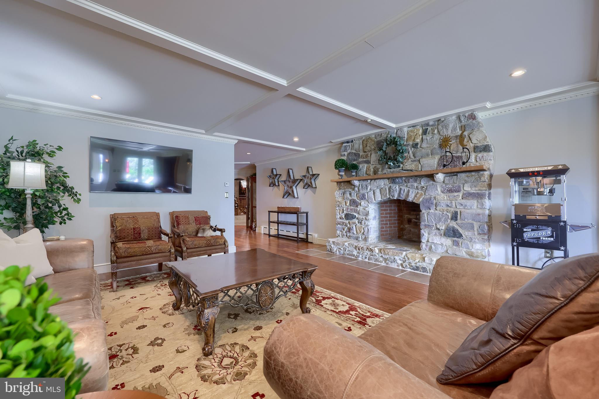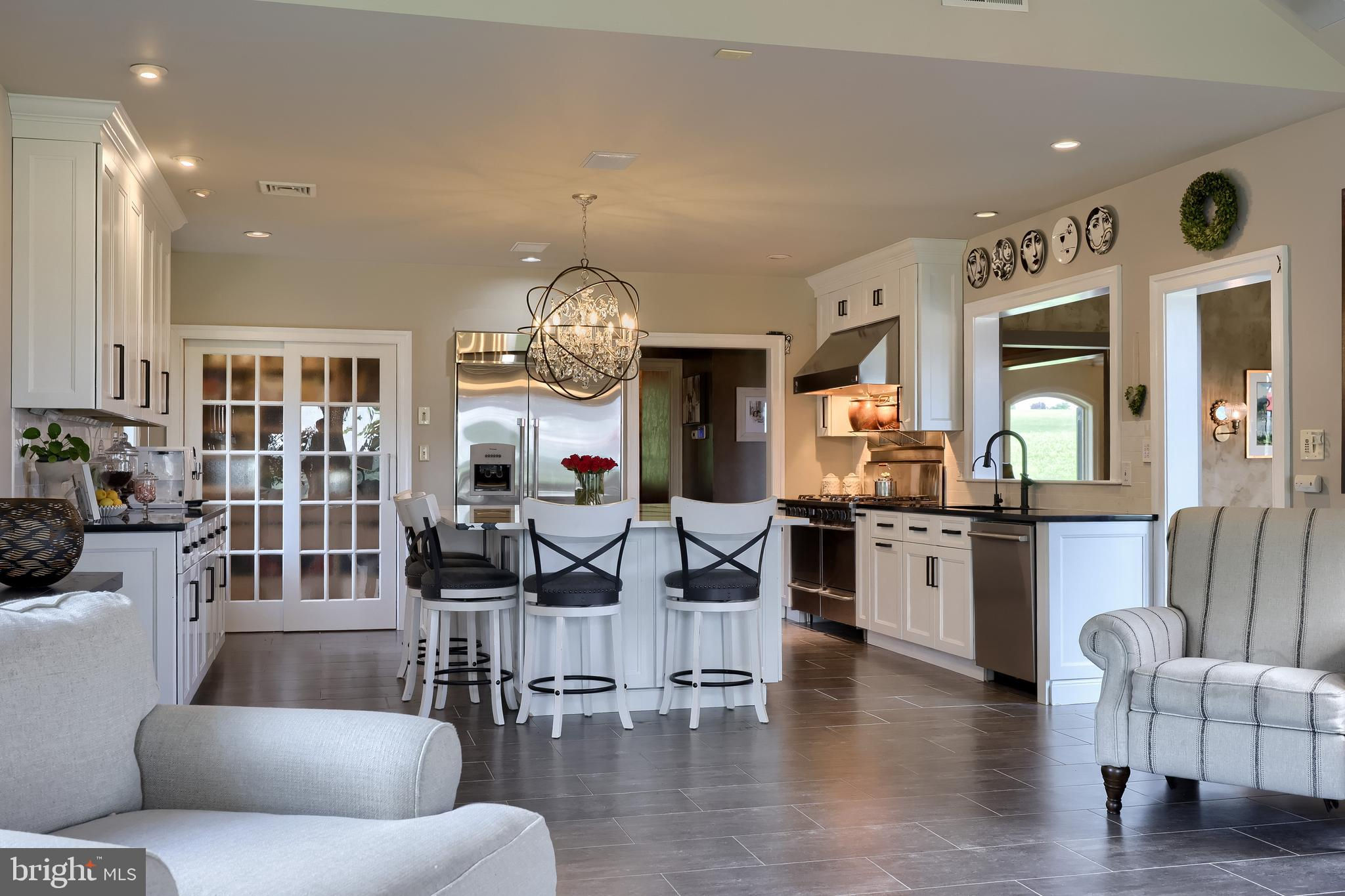 Your Private Oasis Awaits. Experience unparalleled luxury and breathtaking natural beauty in this magnificent 4-bedroom, 3.5-bathroom estate, encompassing nearly 5,000 square feet of refined living space. Nestled on 25.67 sprawling acres, this property offers panoramic views of the river and picturesque countryside, providing a serene and private sanctuary. Step into the heart of the home, a brand-new custom kitchen featuring a soaring cathedral ceiling, an enormous center island, top-of-the-line stainless steel appliances, and elegant granite countertops. A convenient walk-in pantry and a cozy fireplace complete this culinary dream. Throughout the home, you'll find a total of five fireplaces, each adding warmth and ambiance. The first-floor primary suite is a true retreat, boasting two walk-in closets and a spa-like primary bath with luxurious tile floors, a walk-in shower, and a jetted tub. Adjacent to the primary bedroom is a spacious sitting room with a cathedral ceiling, a charming rounded reading nook, and a private balcony offering breathtaking views. Spiral stairs from the sitting room lead down to the finished lower level. Entertain in style in the huge dining room, showcasing a sophisticated slate floor, crown molding, and direct access to a large paver patio. The elegant living room features a coffered ceiling, a gas fireplace, and gleaming wood floors. The family room is equally impressive with custom built-ins and a gas fireplace. A convenient first-floor laundry room adds to the home's practical design. The expansive finished lower level provides additional living space and incredible amenities. It includes a comfortable bedroom, a dedicated wine room with tile flooring, and a second full kitchen complete with granite counters, a tile backsplash, and stainless steel appliances. A full bath with a granite vanity and a custom walk-in shower serves the lower level. Enjoy gatherings in the impressive rec room, featuring wood floors, a stone fireplace, coffered ceilings, and elegant dentil moldings. The lower level also offers access to a private patio area with a relaxing jacuzzi. Step outside to discover multiple balconies, a custom greenhouse, and ample patio space, all designed to maximize your enjoyment of the spectacular views. Adding to the property's incredible value is a detached garage with a fully finished, 2-bedroom in-law apartment above. This apartment features wood floors, a family room with a gas fireplace, a stackable washer and dryer in the second bedroom, a kitchen with wood floors, a dining nook, and a private balcony off the kitchen. The first floor of the detached garage provides a three-car garage and a brand-new exercise room with LVT flooring, a mini-split system, and a half bath. Below this garage is an additional four-car garage and a generator, offering unparalleled storage and convenience. This is more than a home; it's a lifestyle. Don't miss the opportunity to own this truly exceptional property.
