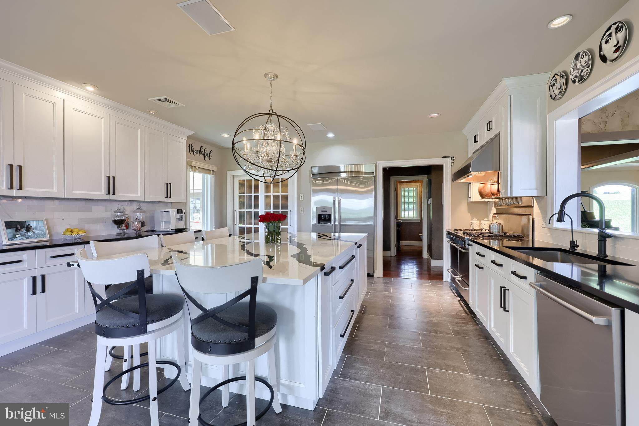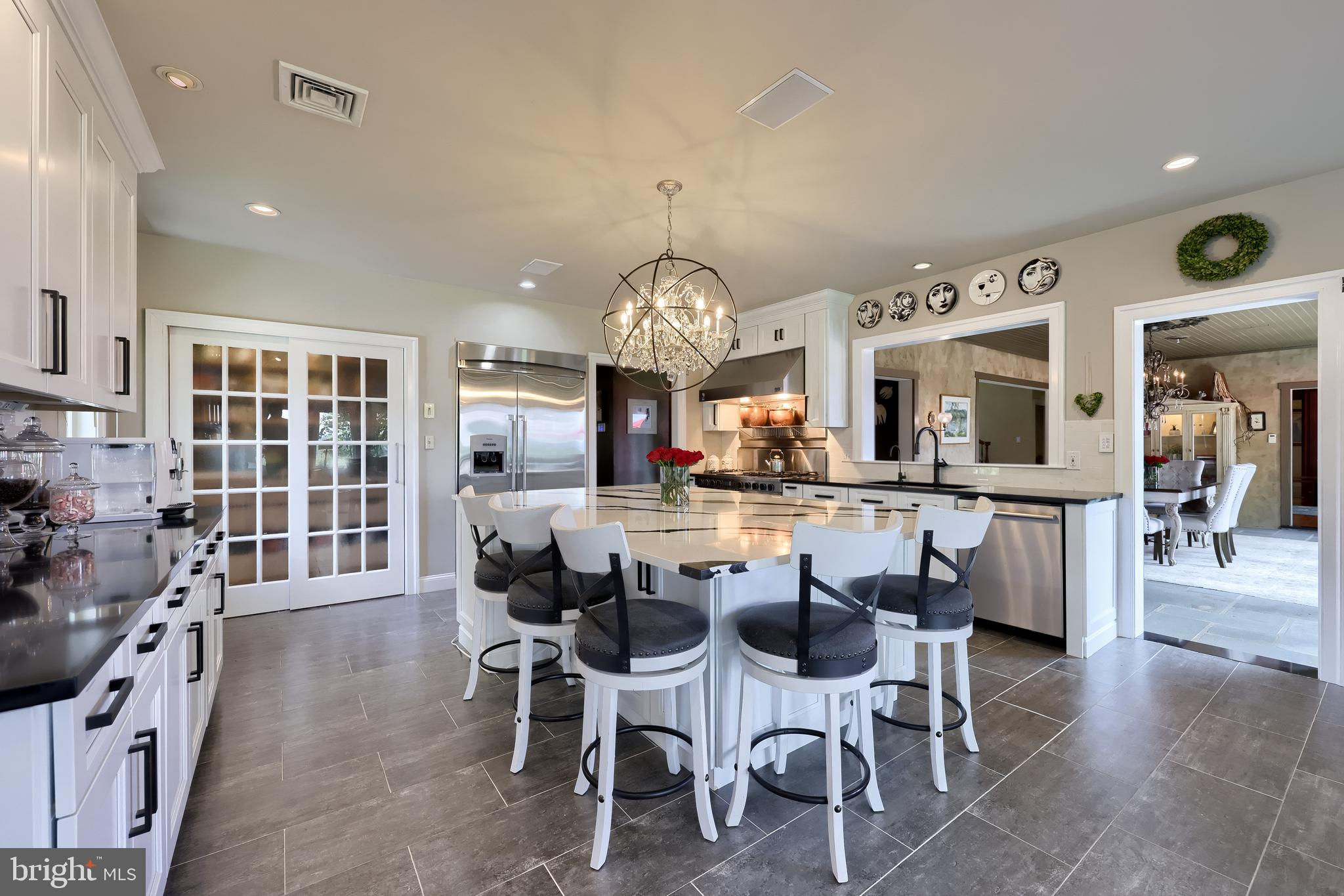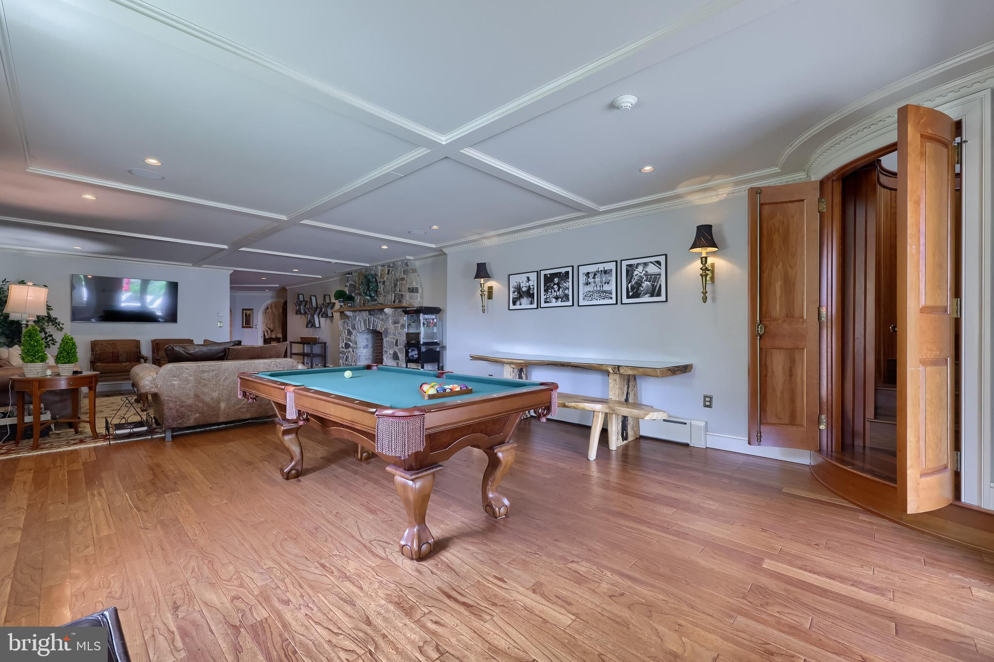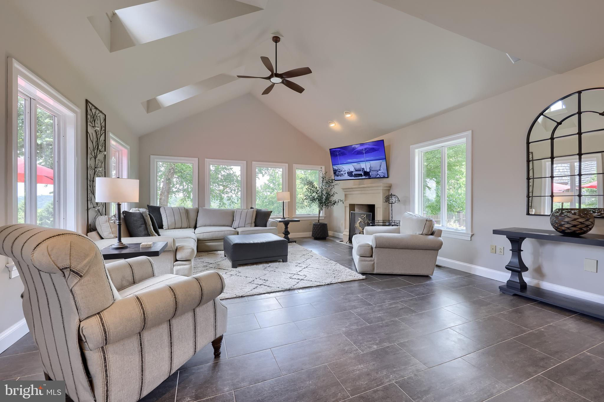 Your Private Oasis Awaits. Experience unparalleled luxury and breathtaking natural beauty in this magnificent 4-bedroom, 3.5-bathroom estate, encompassing nearly 5,000 square feet of refined living space. Nestled on 25.67 sprawling acres, this property offers panoramic views of the river and picturesque countryside, providing a serene and private sanctuary. Step into the heart of the home, a brand-new custom kitchen featuring a soaring cathedral ceiling, an enormous center island, top-of-the-line stainless steel appliances, and elegant granite countertops. A convenient walk-in pantry and a cozy fireplace complete this culinary dream. Throughout the home, you'll find a total of five fireplaces, each adding warmth and ambiance. The first-floor primary suite is a true retreat, boasting two walk-in closets and a spa-like primary bath with luxurious tile floors, a walk-in shower, and a jetted tub. Adjacent to the primary bedroom is a spacious sitting room with a cathedral ceiling, a charming rounded reading nook, and a private balcony offering breathtaking views. Spiral stairs from the sitting room lead down to the finished lower level. Entertain in style in the huge dining room, showcasing a sophisticated slate floor, crown molding, and direct access to a large paver patio. The elegant living room features a coffered ceiling, a gas fireplace, and gleaming wood floors. The family room is equally impressive with custom built-ins and a gas fireplace. A convenient first-floor laundry room adds to the home's practical design. The expansive finished lower level provides additional living space and incredible amenities. It includes a comfortable bedroom, a dedicated wine room with tile flooring, and a second full kitchen complete with granite counters, a tile backsplash, and stainless steel appliances. A full bath with a granite vanity and a custom walk-in shower serves the lower level. Enjoy gatherings in the impressive rec room, featuring wood floors, a stone fireplace, coffered ceilings, and elegant dentil moldings. The lower level also offers access to a private patio area with a relaxing jacuzzi. Step outside to discover multiple balconies, a custom greenhouse, and ample patio space, all designed to maximize your enjoyment of the spectacular views. Adding to the property's incredible value is a detached garage with a fully finished, 2-bedroom in-law apartment above. This apartment features wood floors, a family room with a gas fireplace, a stackable washer and dryer in the second bedroom, a kitchen with wood floors, a dining nook, and a private balcony off the kitchen. The first floor of the detached garage provides a three-car garage and a brand-new exercise room with LVT flooring, a mini-split system, and a half bath. Below this garage is an additional four-car garage and a generator, offering unparalleled storage and convenience. This is more than a home; it's a lifestyle. Don't miss the opportunity to own this truly exceptional property.