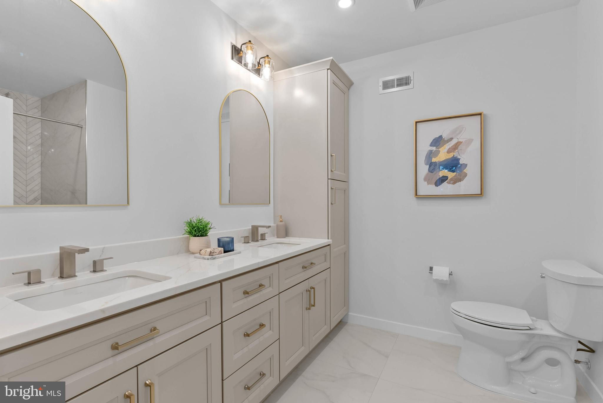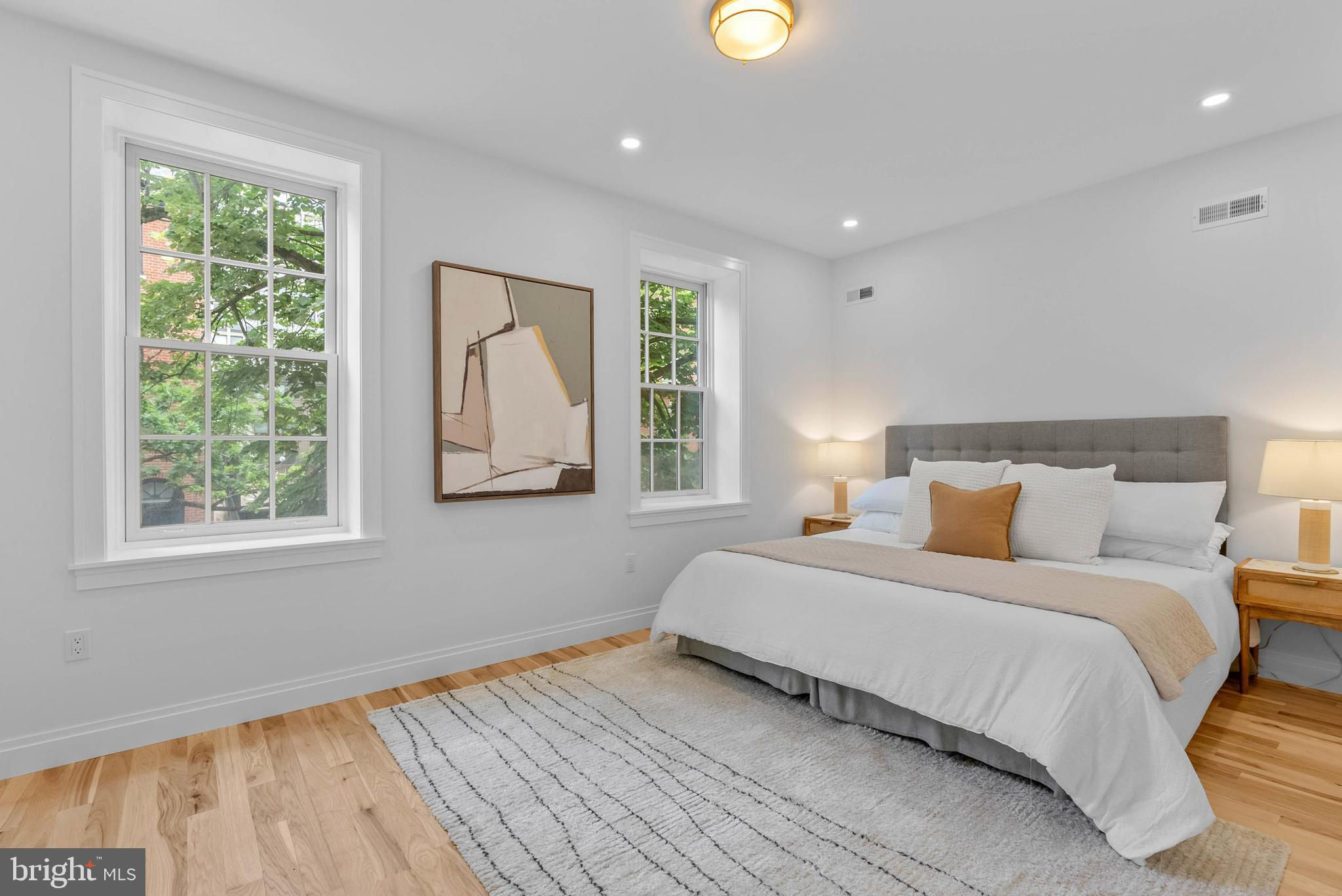 On offer is a rare chance to own a meticulously renovated luxury residence in the heart of Philly's sought-after Society Hill neighborhood. This large, 4-story home boasts 4 bedroom suites totaling 4 full and 3 half bathrooms, a finished basement, multiple outdoor spaces, a bonus kitchenette, dual-zone HVAC, PARKING, distinctive details throughout, and placement in the top-rated McCall School catchment. A historic block lined with mature trees and a brick sidewalk leads to 202 Spruce St's towering red brick facade. Inside, a vestibule ushers you into the open, bright, and airy main level, framed by hardwood floors and soaring ceilings. A pair of windows at the front illuminates the living room, where there's plenty of space for hosting guests. At the center is a gleaming, all-white gourmet kitchen fitted with custom shaker cabinetry, waterfall counters, high-end stainless steel appliances, brass fixtures, and a massive island with seating. A powder room sits by the staircase. Completing this level is a sun-soaked dining room showcasing dramatic 2-story ceilings and a wall of windows. Sliding doors open to the secluded patio, making indoor/outdoor entertaining a breeze. This peaceful space can be transformed into a private oasis perfect for relaxing away from the city's hustle. More living space, along with another powder room, is found in the expansive finished basement, ideal for a family room, gym, or hobbies. On the home's second level, there's a study area off the staircase that overlooks the dining room. Past one of two laundry closets, a hallway leads to the bright, spacious primary suite that features tall windows, two bespoke closets, a bonus flex space that could act as a dressing area, and a hotel-like bathroom adorned with a double vanity, linen cabinets, and a glass-enclosed rainfall shower. Up on the third level, a kitchenette and a powder room are by the stairs. A shady terrace off the rear is another outdoor spot where you can hang on good weather days. A second, large bedroom suite completes this level. Topping off the home are two more bedroom suites, an additional laundry closet, and a pair of balconies. 202 Spruce St's utilities include central a/c, gas heat, and electric hot water. This property also includes a 10 year tax abatement! In addition to everything inside, this fantastic location earns a Walk Score of 94! Top restaurants, friendly shops, popular markets, and lively entertainment fill the surrounding blocks. Nearby, Penn's Landing hosts holiday events and Spruce Street Harbor Park along the riverfront is a go-to destination all spring and summer. Neighboring Old City has lots to explore, plus idyllic Washington Sq Park, Pennsylvania & Jefferson Hospitals, and Center City are all within walking distance. There's also easy access to Columbus Blvd, I-95, I-676, and South Jersey. Schedule your tour today! Square footage amount includes finished lower level.