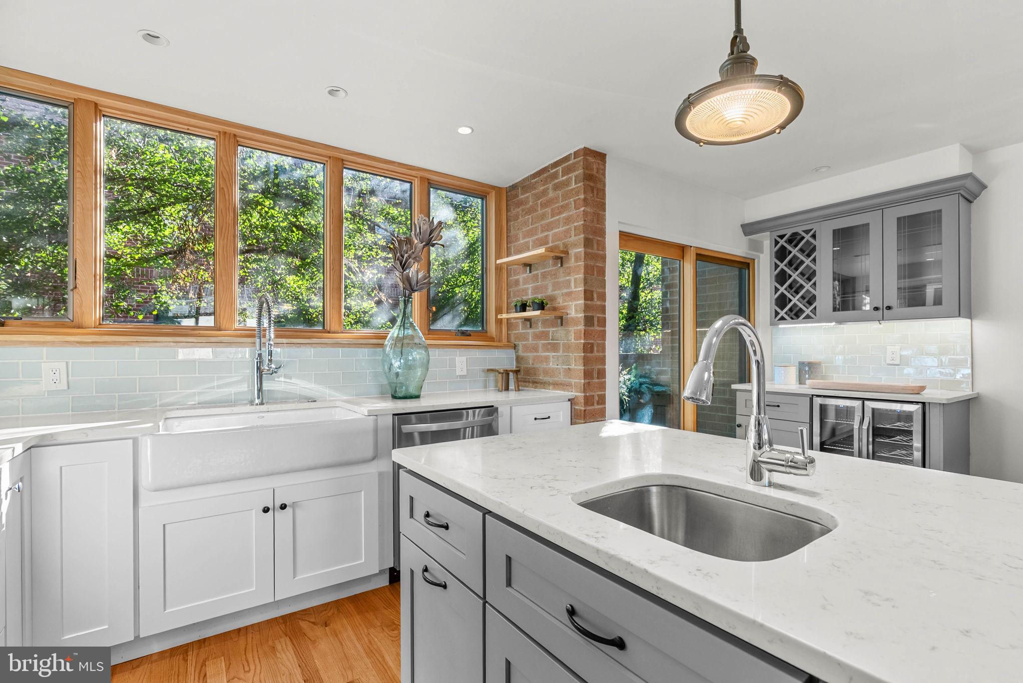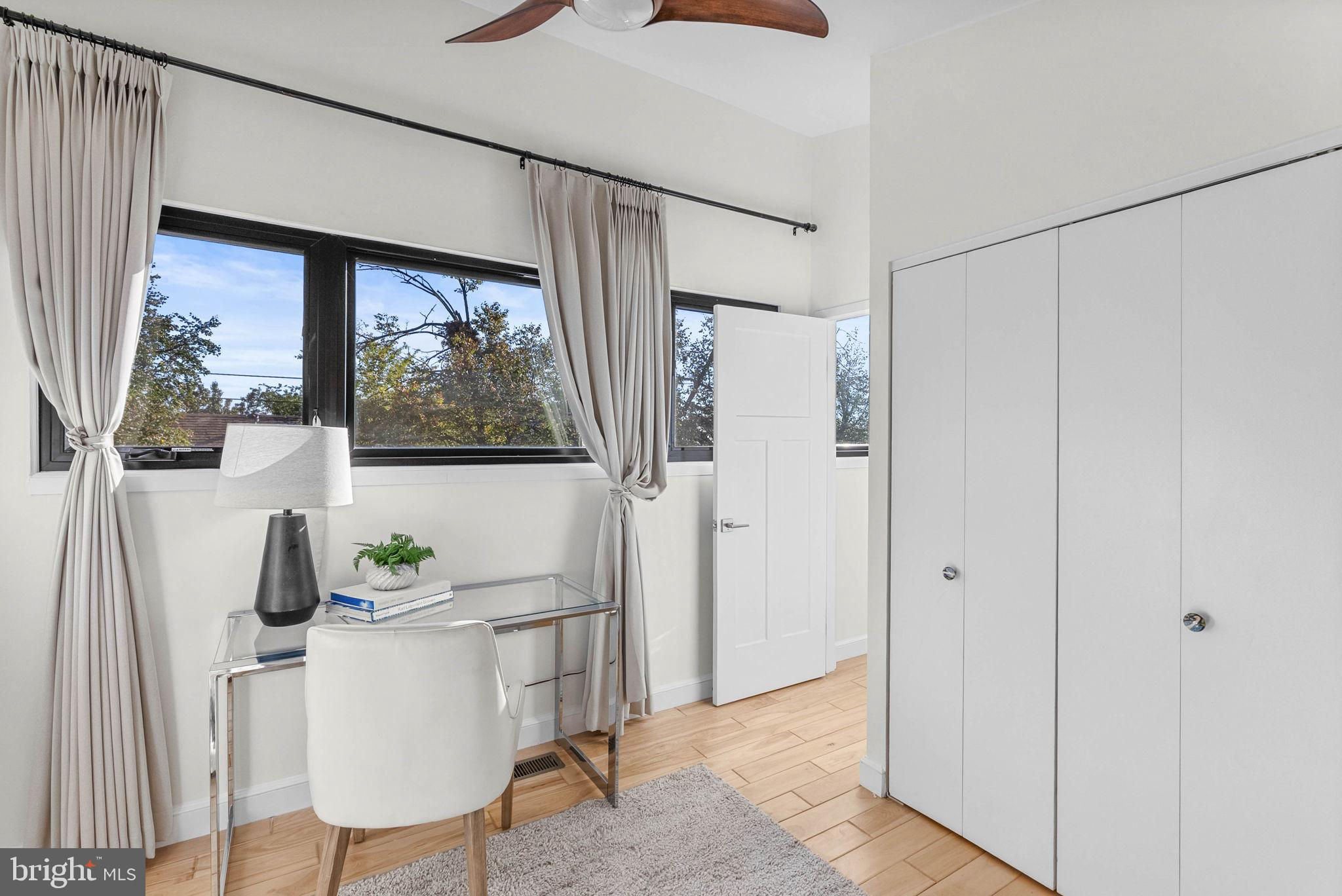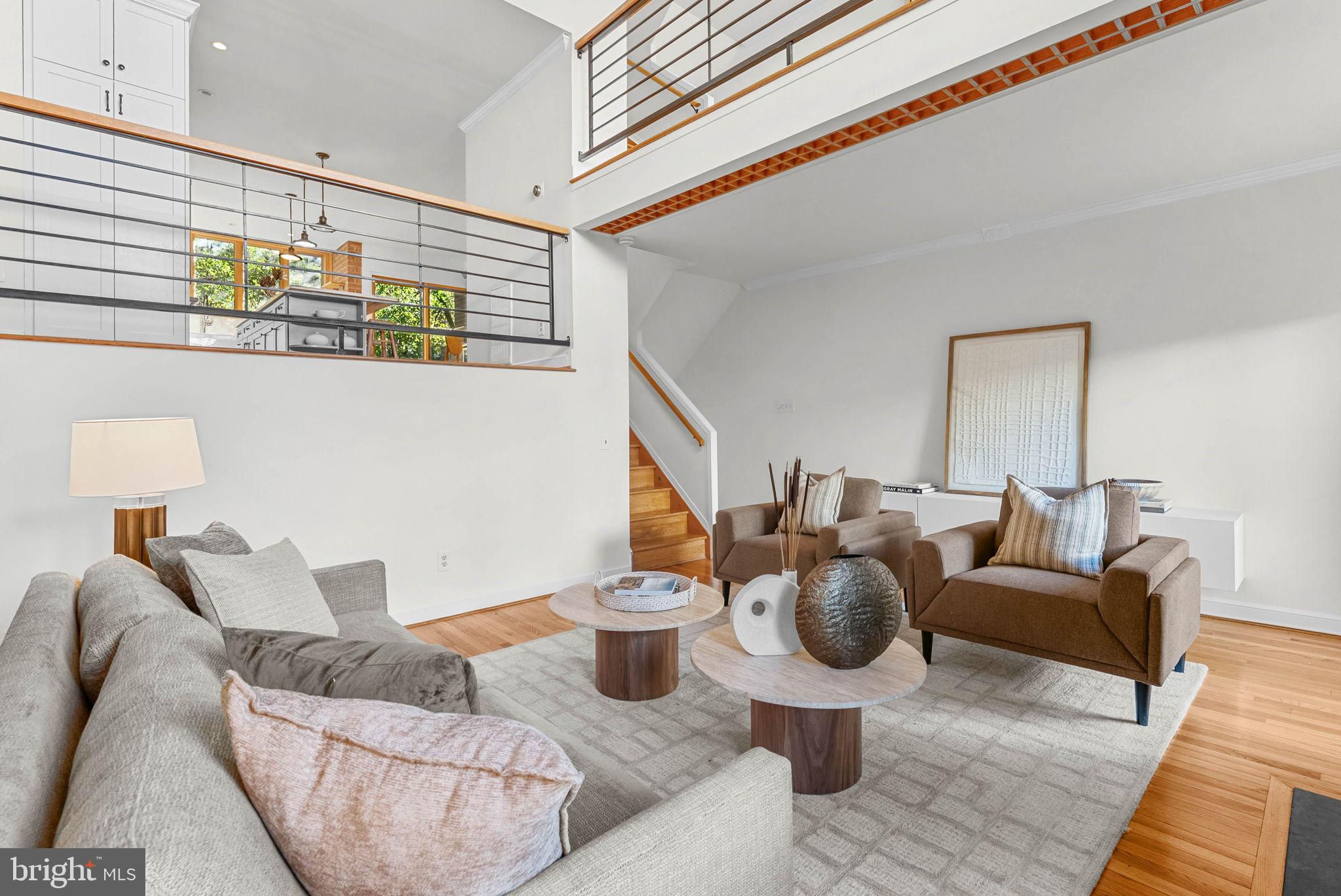 Located on a quiet, tree-lined street in the sought-after Greenfield Catchment School District, home to the nationally recognized Blue Ribbon Albert M. Greenfield School, this stunning townhome offers the perfect blend of comfort, style, and city convenience. Offering 3 spacious bedrooms, 2.5 bathrooms, and garage parking, this thoughtfully designed home boasts abundant natural light and stylish finishes throughout. Upon entry, you're welcomed by a large foyer with 9-foot ceilings, direct access to the attached garage; a few steps down leads to a versatile family/playroom and a convenient powder room. Upstairs, the dramatic 13-foot ceilings and expansive windows in the living room provide breathtaking skyline views. A wood-burning Franklin stove adds warmth and charm, while sliding glass doors open to a large private patio and garden. Overlooking the living area is the heart of the home: an impressive chef’s kitchen and dining space. The gourmet kitchen features high-end appliances, a farmhouse sink, quartz island with a second sink, gas range, coffee/wine bar, and a beverage refrigerator. A balcony overlooks the serene, tree-lined street. Just above, a cozy loft space serves as a perfect reading nook or home office, again offering those spectacular skyline views. The primary suite includes a skylight, custom cabinetry, radiant heated floors, and a luxurious rain shower. Additional levels feature two more spacious bedrooms, a full bathroom, and a dedicated laundry room. Throughout the home, you’ll find custom woodwork and hardwood flooring, adding warmth and character to every space. Just steps from Philadelphia’s best restaurants, shops, parks, and museums, this home is a rare find in an unbeatable location. Taxes and square footage is the responsibility of the buyer to have verified independently.