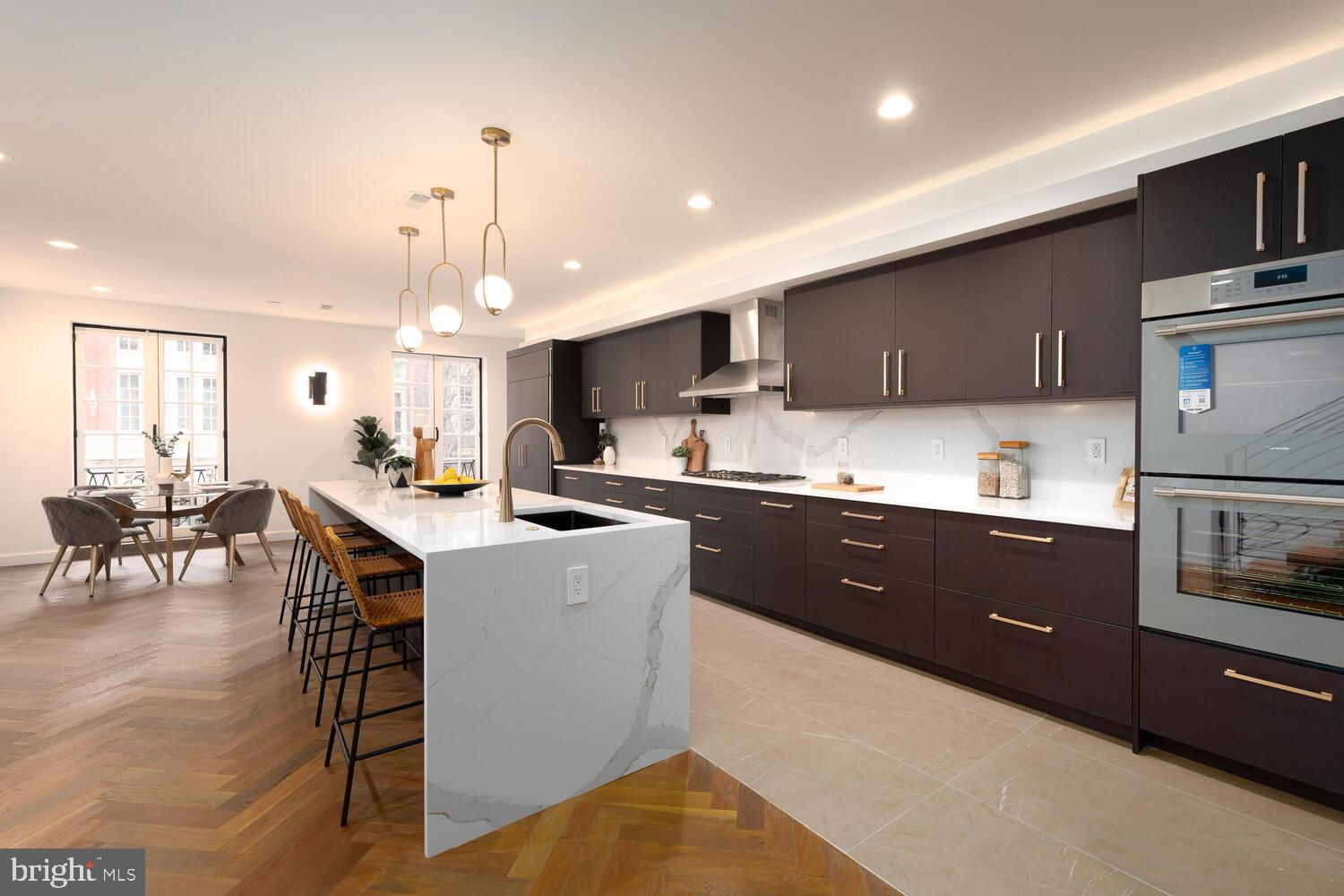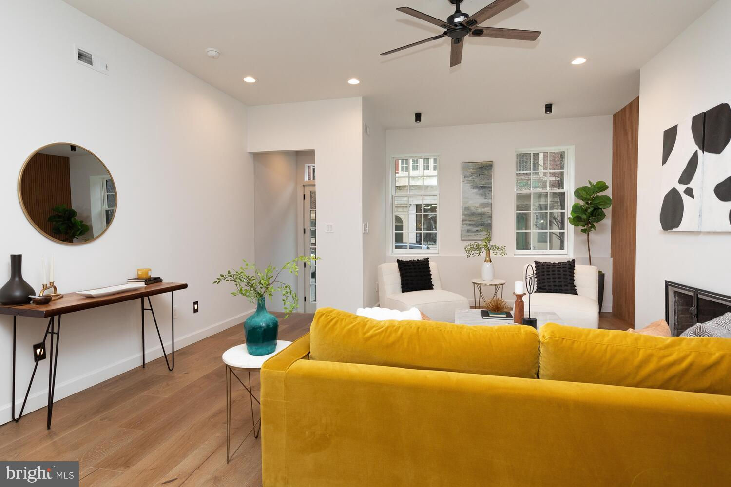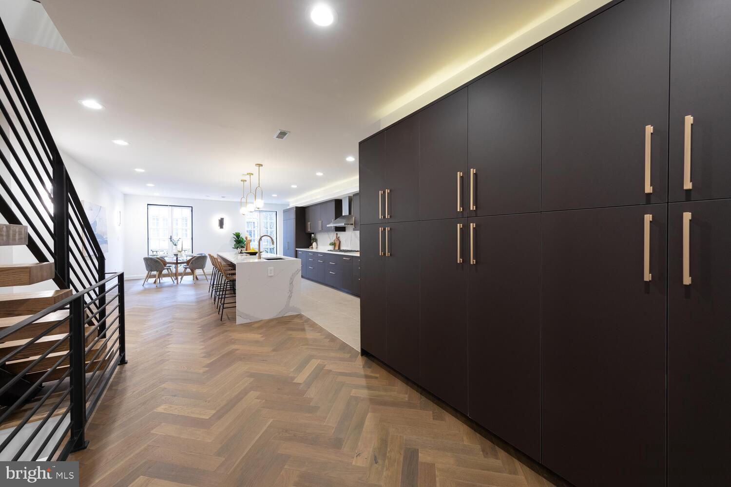 Welcome to the epitome of luxury urban living in the heart of Rittenhouse Square! This classic townhouse, meticulously renovated from top to bottom, seamlessly blends a timeless traditional exterior with a modern and sophisticated interior, offering over 4500 square feet of living space. As you step into this Center City mini-mansion, you are greeted by high ceilings on the first floor and a coat closet for convenience. The formal sitting area boasts a specious and welcoming space, creating an inviting ambiance. The first floor also features a versatile office or den with a full bathroom and powder room , providing flexibility for your lifestyle. The well-designed mudroom with custom built-ins leads to the back of the house, where ample options await to utilize this invaluable asset in the city. Ascend a beautiful floating staircase to the second floor, where a bright and sunny main living room opens up to a good-sized balcony. Large side windows and herringbone flooring give the space a classic charm. The heart of the home, the kitchen, is a chef's dream with stainless steel appliances, including a 48-inch fridge and a six-burner cooktop. Quartz countertops, a grand island with a rainfall feature, and two original and restored Juliete doors create a stunning culinary space with a southern exposure. An oversized pantry ensures ample storage for all your kitchen needs. The third floor features a master bedroom with an abundance of natural light, a large walk-in closet, and a second closet for added storage. The master bathroom is a sanctuary with heated flooring, a floating toilet, a large double vanity, and a luxurious rainfall shower. Additionally, a hallway laundry room with a sink for added convenience. A rear bedroom with a built-in closet system and a full bathroom in the hallway completes this floor. On the fourth floor, discover another bedroom, a hallway full bathroom, and a large wet bar with a fridge, leading to a 600-square-foot rooftop deck with breathtaking city views. This outdoor space is perfect for entertaining. The lower level features a finished basement, ideal for a playroom or home gym, providing additional living space to suit your needs. Perfectly located in the heart of Rittenhouse Square, this residence offers easy access to and from the city, as well as proximity to shopping, restaurants, supermarkets, and more. Don't miss the opportunity to make this exceptional property your own—schedule your appointment today!