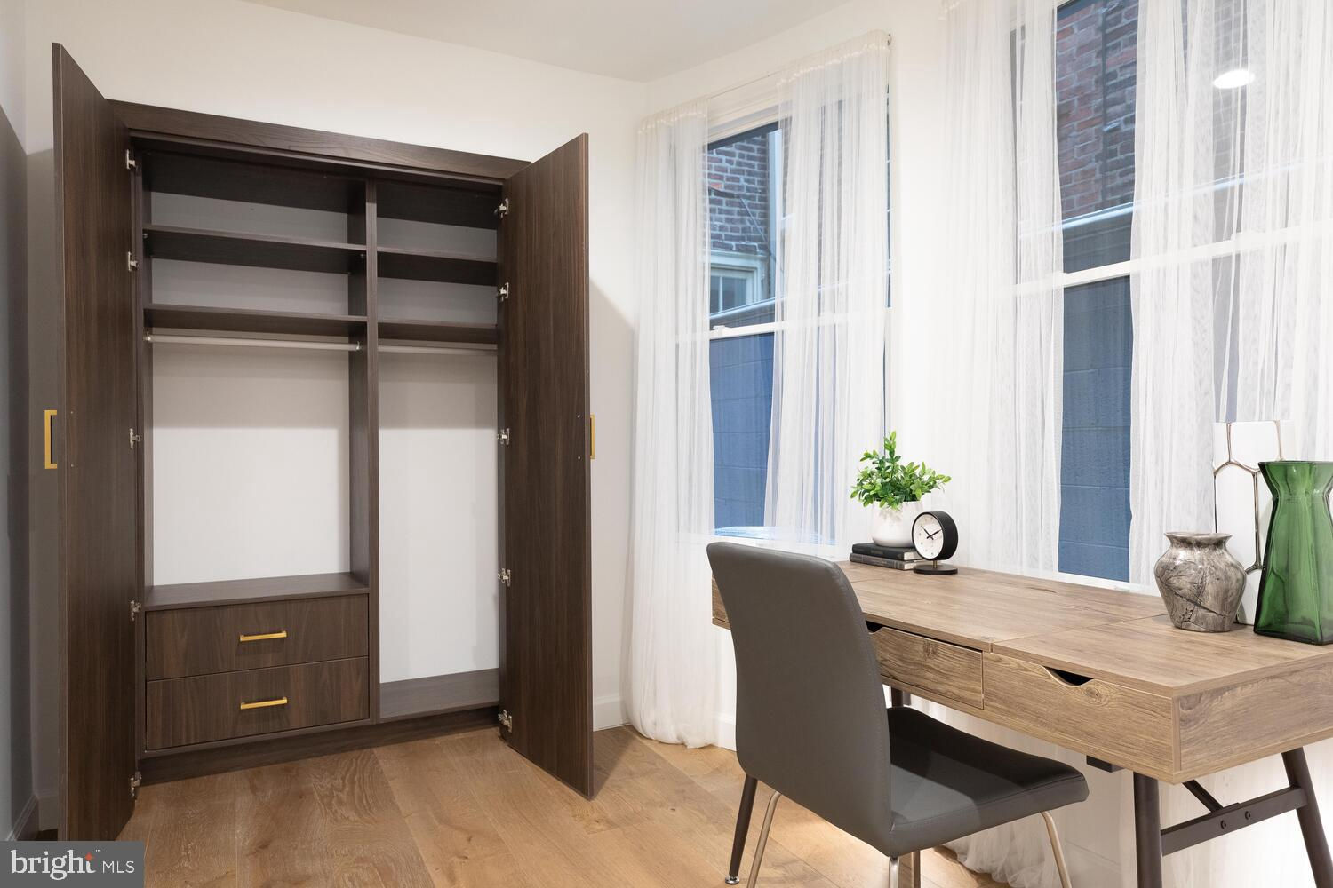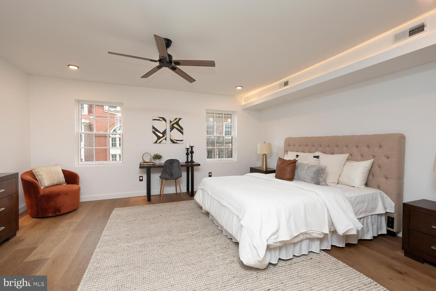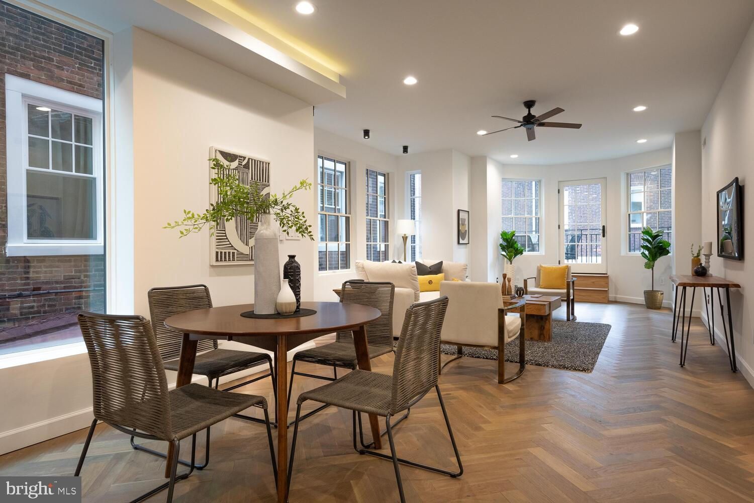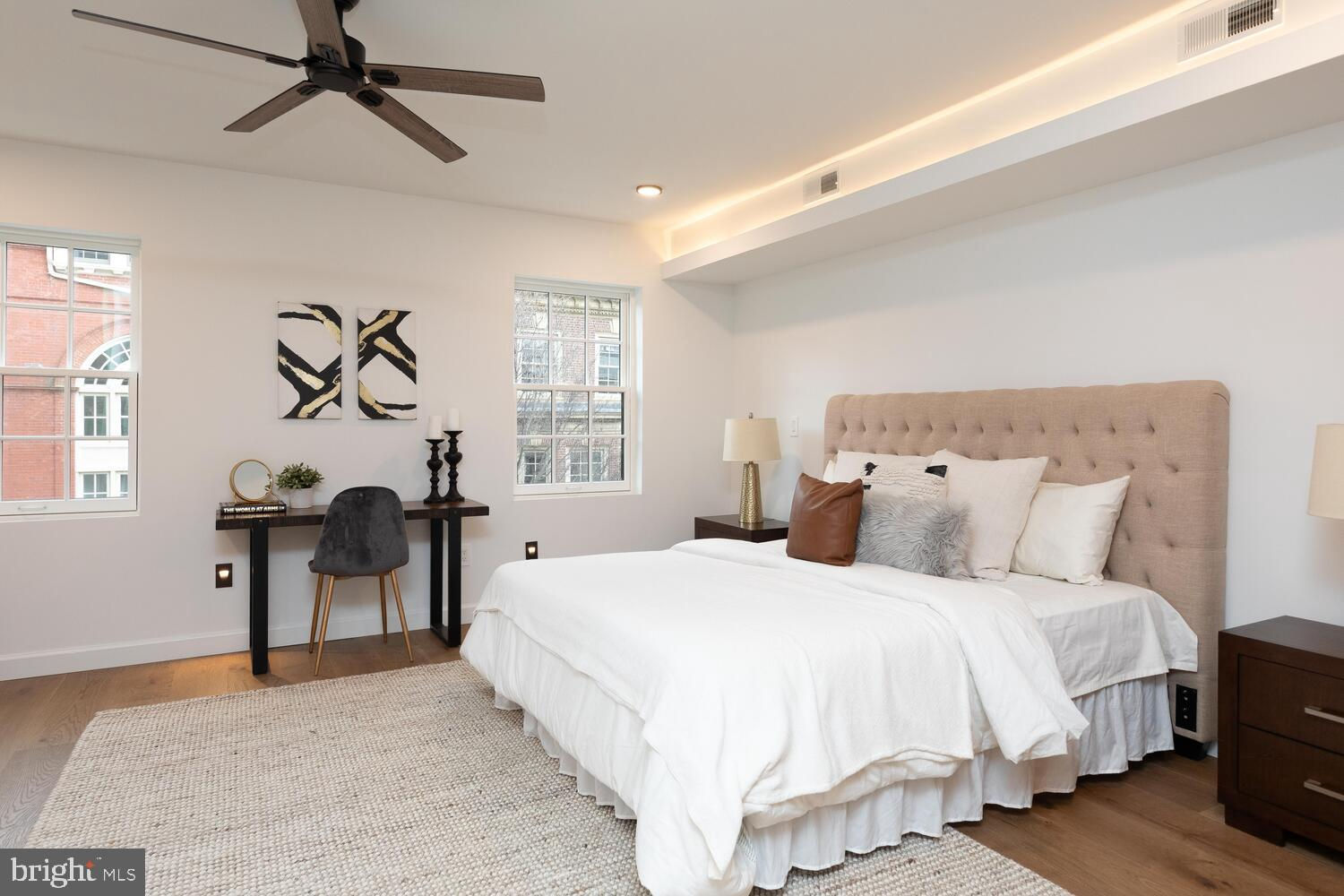 Welcome to the epitome of luxury urban living in the heart of Rittenhouse Square! This classic townhouse, meticulously renovated from top to bottom, seamlessly blends a timeless traditional exterior with a modern and sophisticated interior, offering over 4500 square feet of living space. As you step into this Center City mini-mansion, you are greeted by high ceilings on the first floor and a coat closet for convenience. The formal sitting area boasts a specious and welcoming space, creating an inviting ambiance. The first floor also features a versatile office or den with a full bathroom and powder room , providing flexibility for your lifestyle. The well-designed mudroom with custom built-ins leads to the back of the house, where ample options await to utilize this invaluable asset in the city. Ascend a beautiful floating staircase to the second floor, where a bright and sunny main living room opens up to a good-sized balcony. Large side windows and herringbone flooring give the space a classic charm. The heart of the home, the kitchen, is a chef's dream with stainless steel appliances, including a 48-inch fridge and a six-burner cooktop. Quartz countertops, a grand island with a rainfall feature, and two original and restored Juliete doors create a stunning culinary space with a southern exposure. An oversized pantry ensures ample storage for all your kitchen needs. The third floor features a master bedroom with an abundance of natural light, a large walk-in closet, and a second closet for added storage. The master bathroom is a sanctuary with heated flooring, a floating toilet, a large double vanity, and a luxurious rainfall shower. Additionally, a hallway laundry room with a sink for added convenience. A rear bedroom with a built-in closet system and a full bathroom in the hallway completes this floor. On the fourth floor, discover another bedroom, a hallway full bathroom, and a large wet bar with a fridge, leading to a 600-square-foot rooftop deck with breathtaking city views. This outdoor space is perfect for entertaining. The lower level features a finished basement, ideal for a playroom or home gym, providing additional living space to suit your needs. Perfectly located in the heart of Rittenhouse Square, this residence offers easy access to and from the city, as well as proximity to shopping, restaurants, supermarkets, and more. Don't miss the opportunity to make this exceptional property your own—schedule your appointment today!
