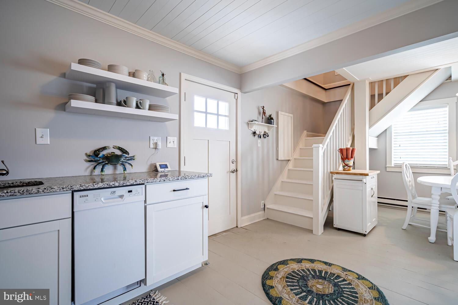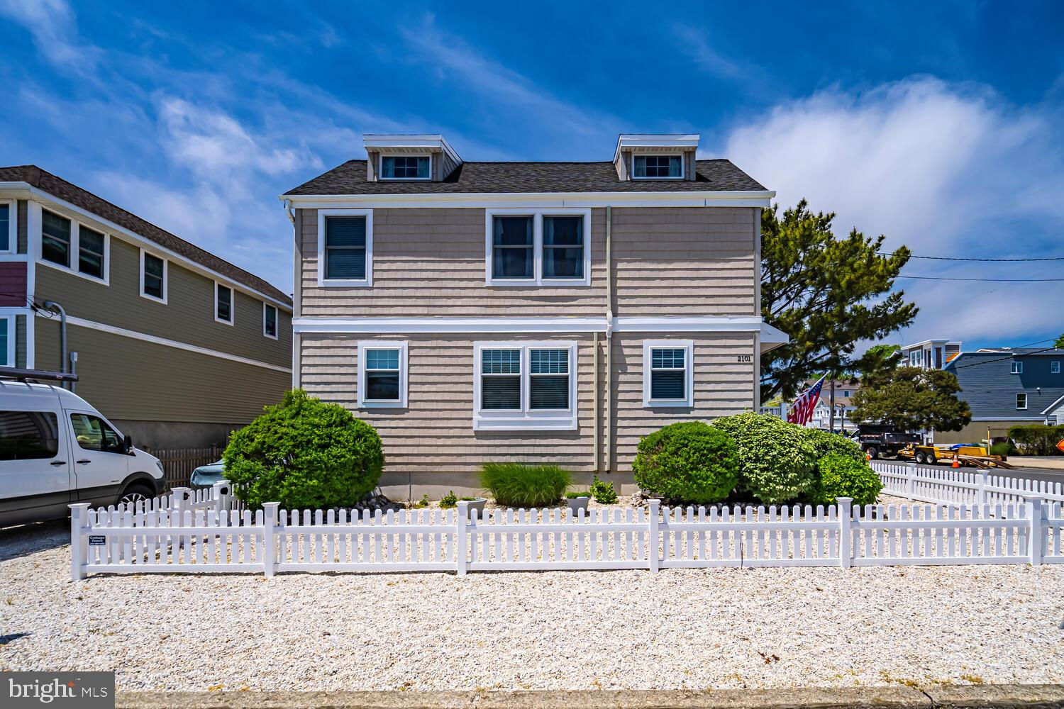 LBI. Immaculate, unique, and renovated home located on a large corner lot in the heart of Ship Bottom. This Beach Home is unique because of its custom design and private exterior bonus room. The property is located only steps from the beach. This 2.5-level home features, 4 bedrooms, 1 bonus room, 3 full baths, and a separate private exterior space for a legal office, studio, living, etc, the kitchen has stainless steel appliances and custom-designed acacia wood countertops, a living room - dining area with a vaulted ceiling, a sitting area, a staircase to a double loft space with a view of the ocean, custom coastal solid wood floors, kitchenette with granite countertops, recessed lighting, ductless air cooling plus heat, and an alarm system. The exterior features, an oversized detached heated garage with loft storage, an outdoor shower, 2 driveways, plenty of parking, a huge fenced-in yard for a future built-in pool, multiple large decks, a newer roof, and beautiful sunrise-to-bay sunset views. This is a must-see property with so many options.